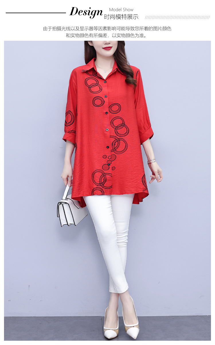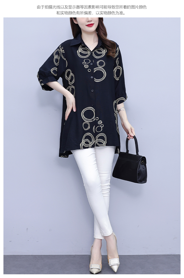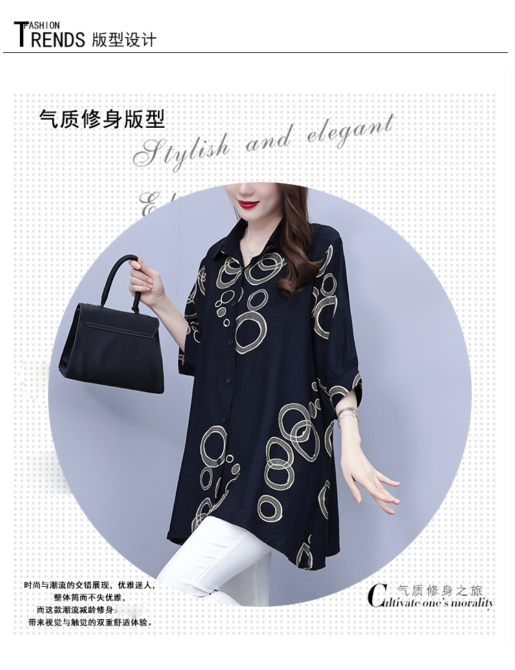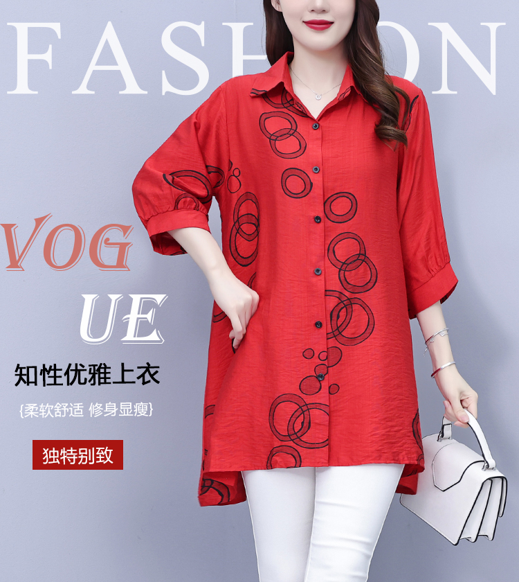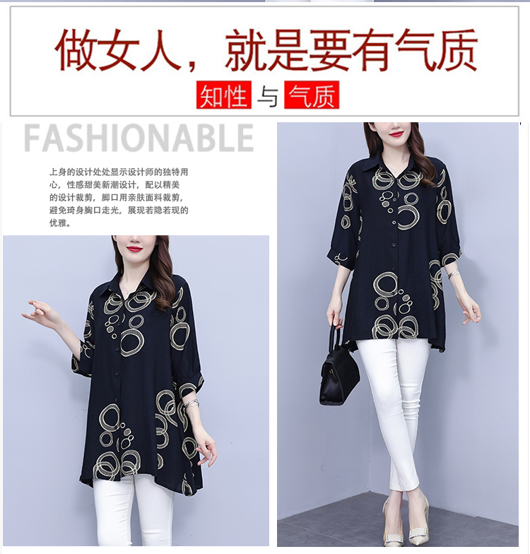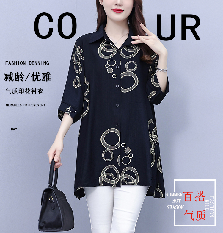 RY3851# 大码女装2026年夏装新款洋气印花时尚胖MM气质衬衣休闲宽松型上衣