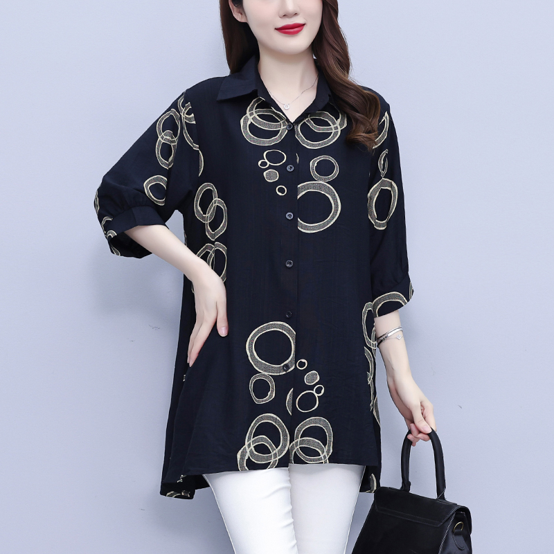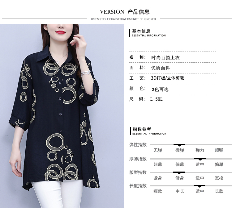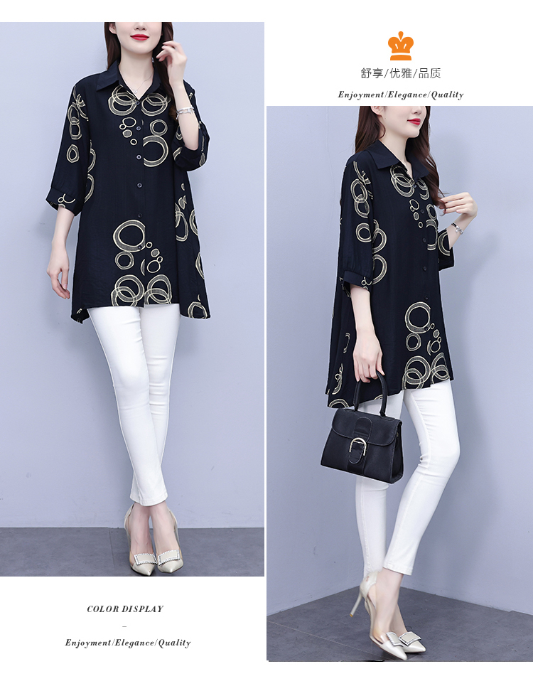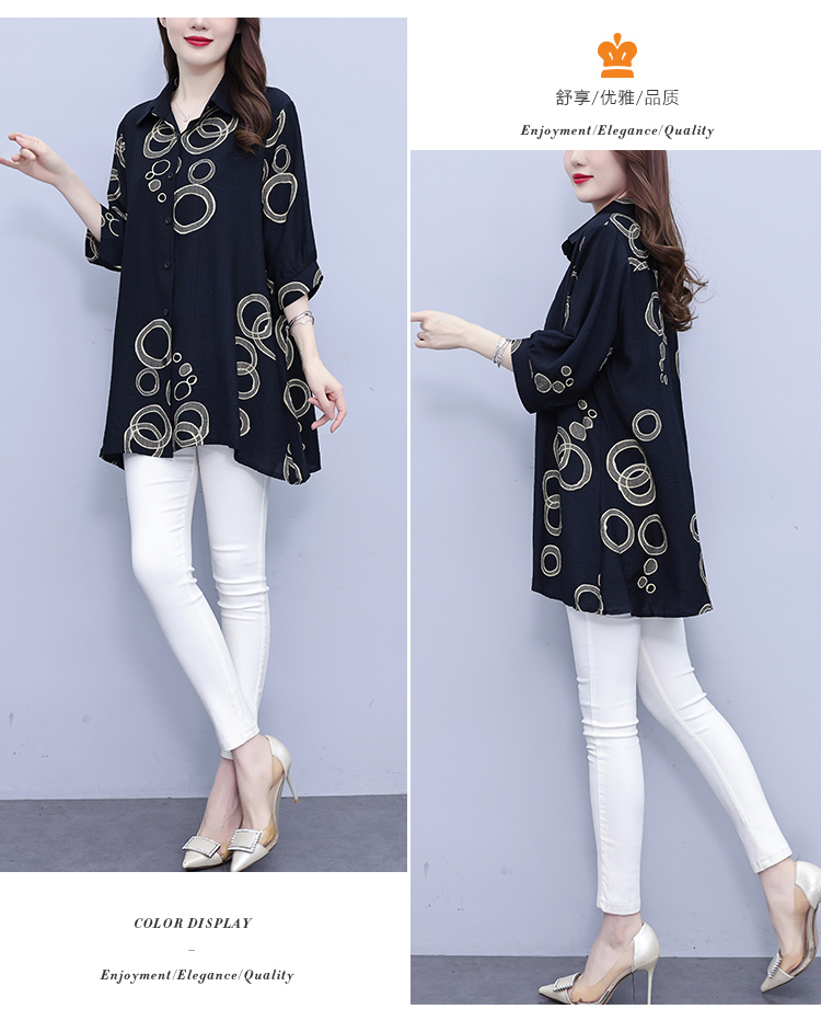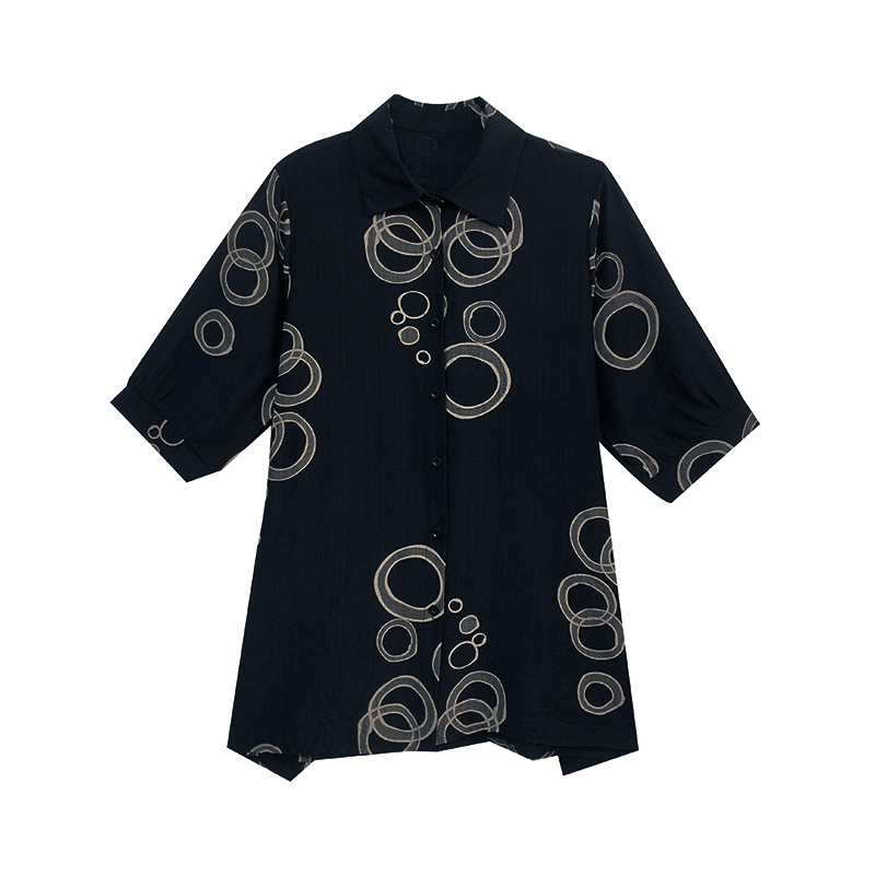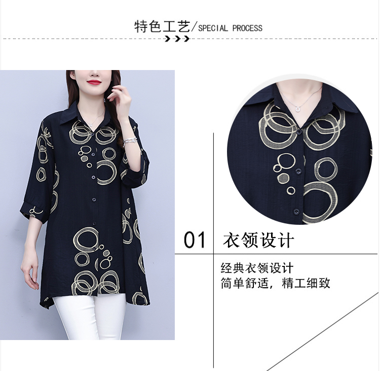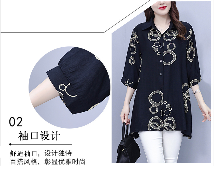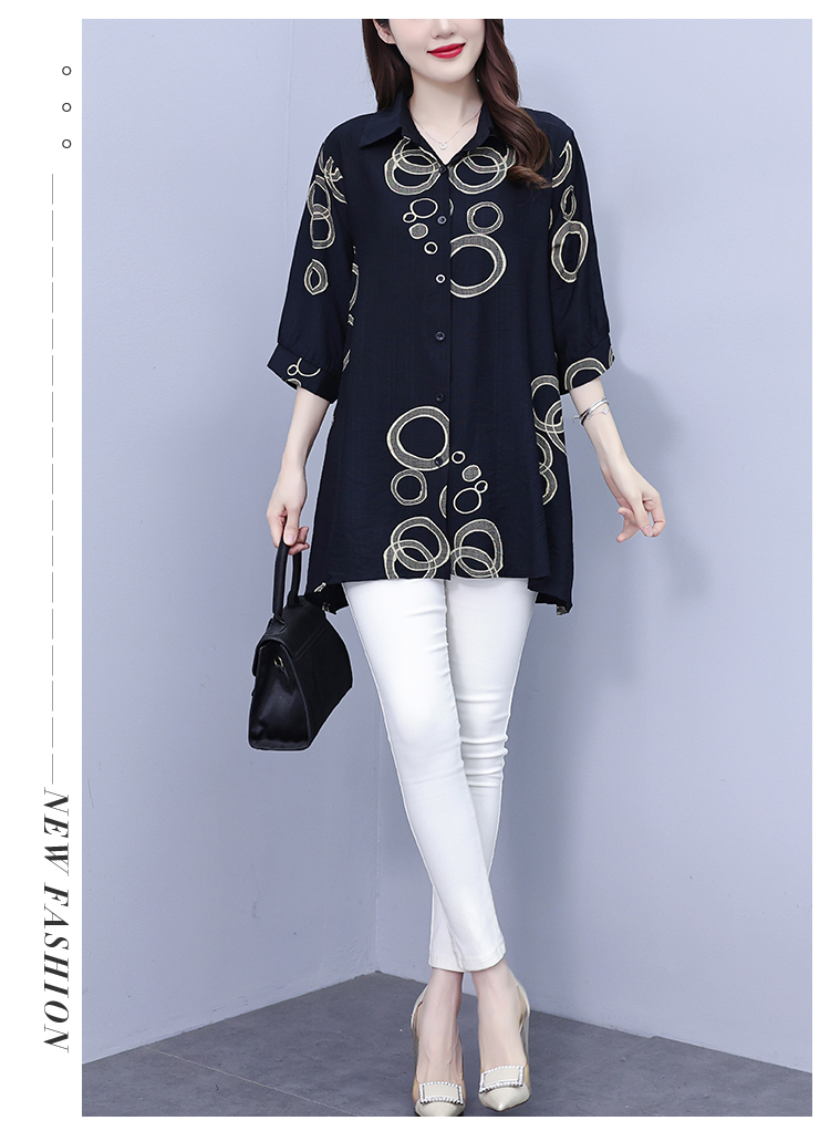 RY3851# 大码女装2026年夏装新款洋气印花时尚胖MM气质衬衣休闲宽松型上衣