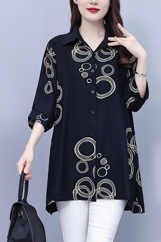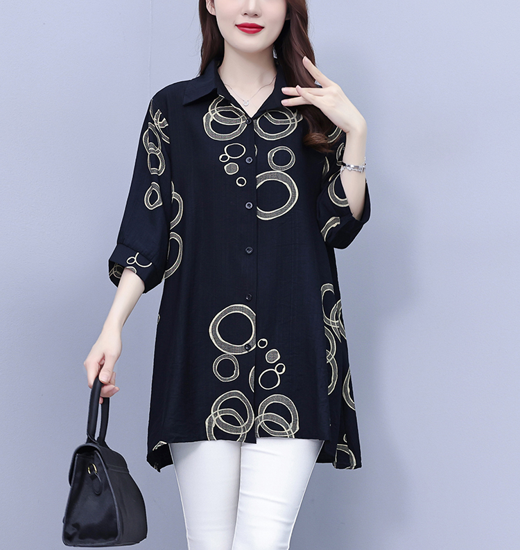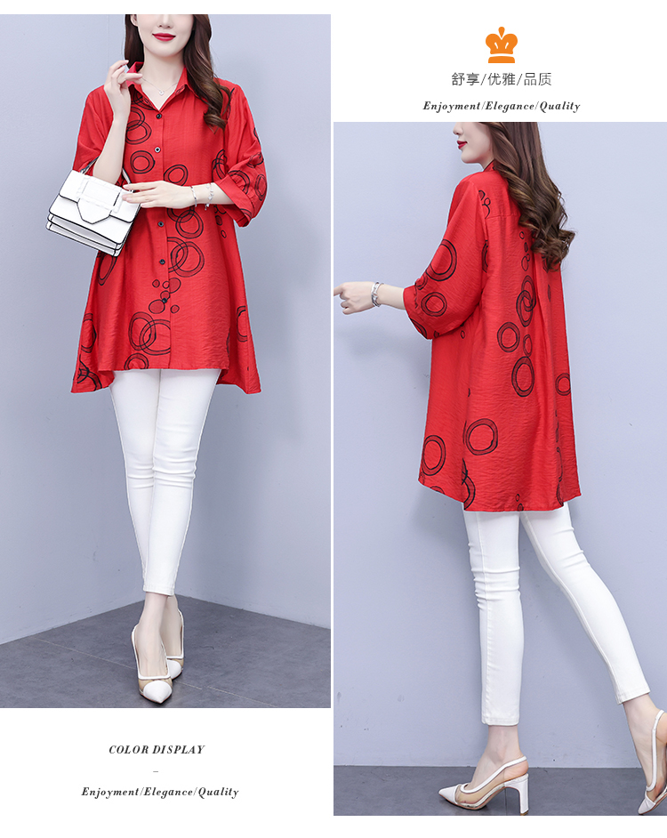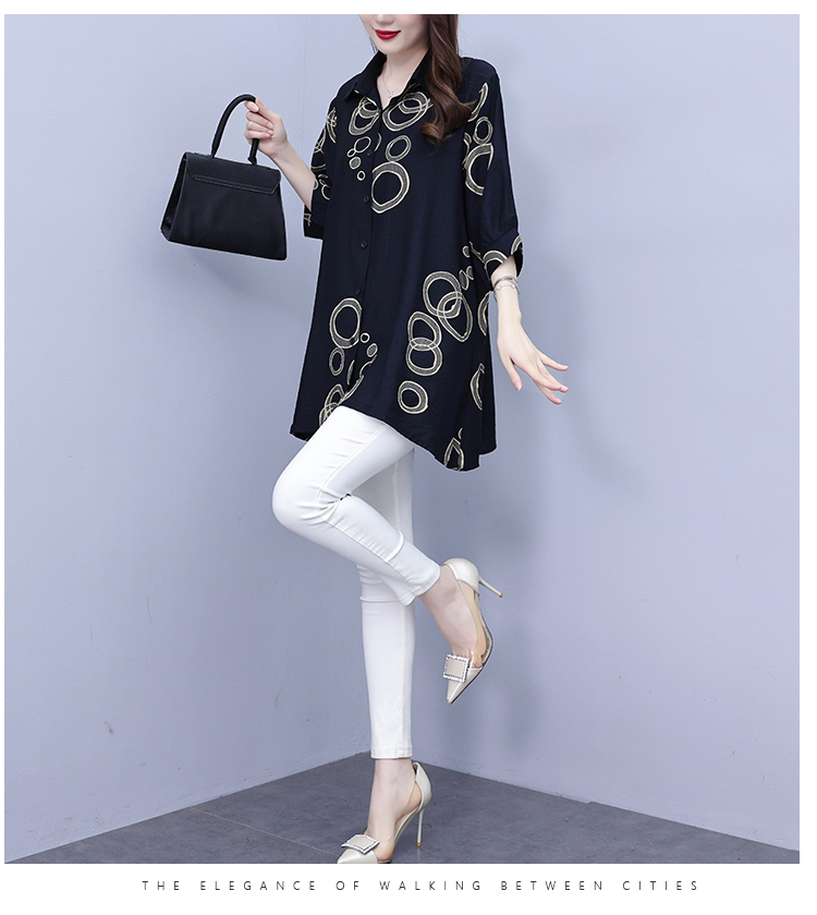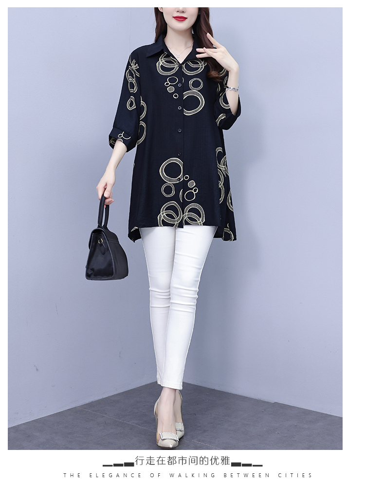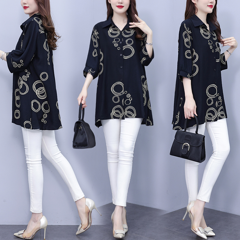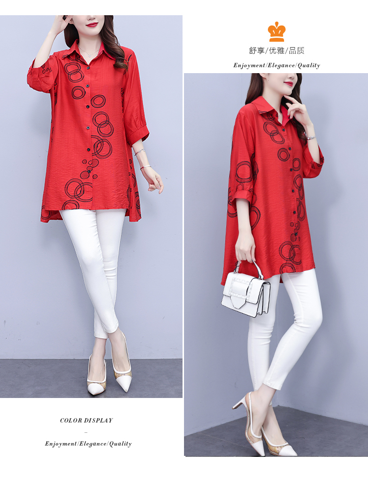 RY3851# 大码女装2026年夏装新款洋气印花时尚胖MM气质衬衣休闲宽松型上衣
