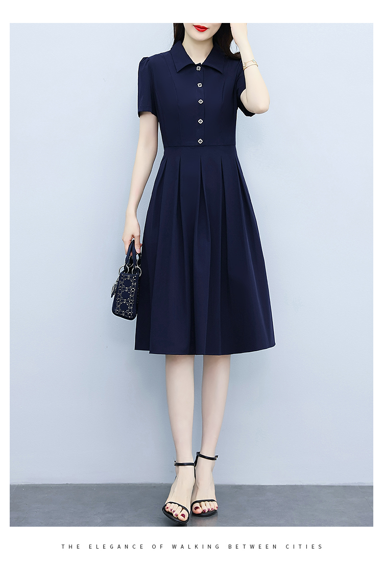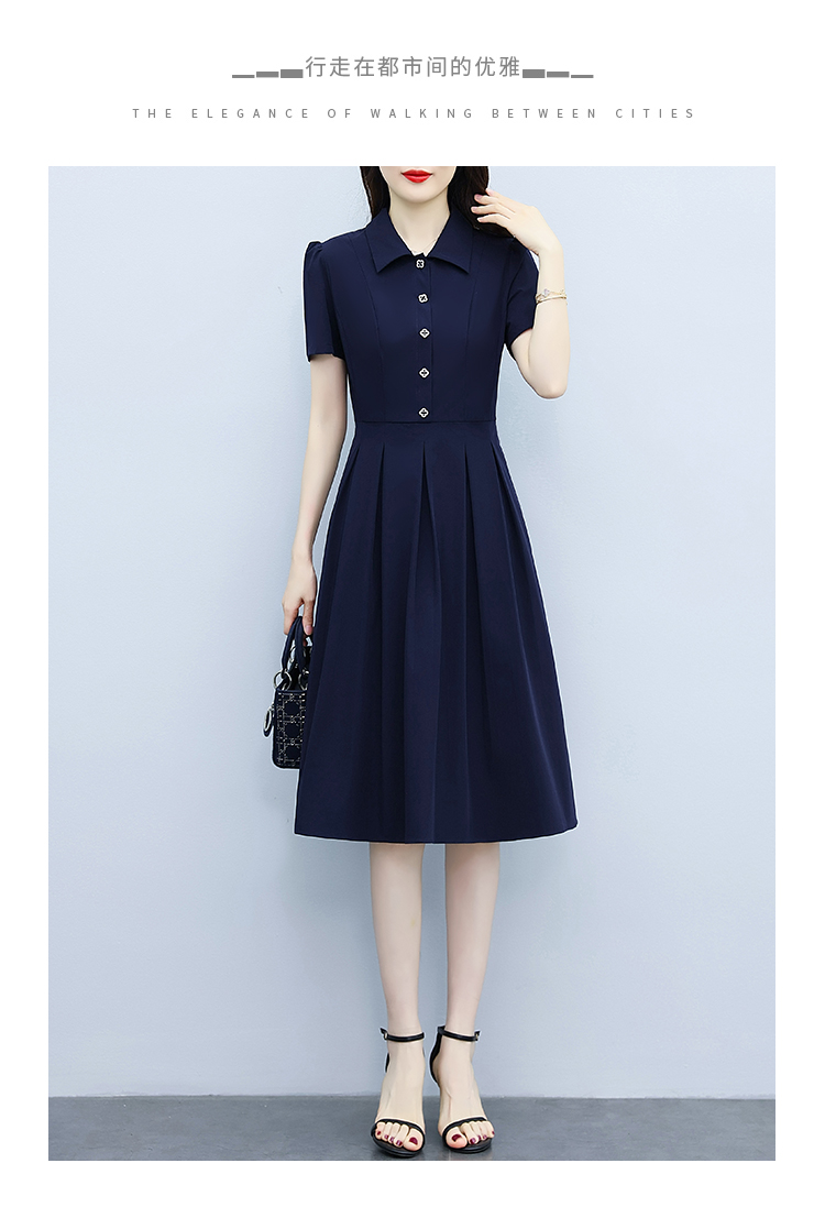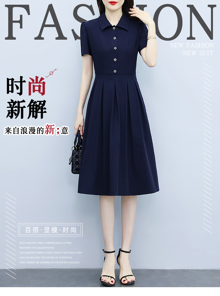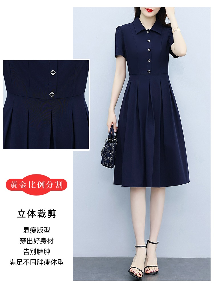 RY3856# 实拍#沐沐衣品#2026年夏季新款气质显瘦遮肚中长款大码短袖连衣裙