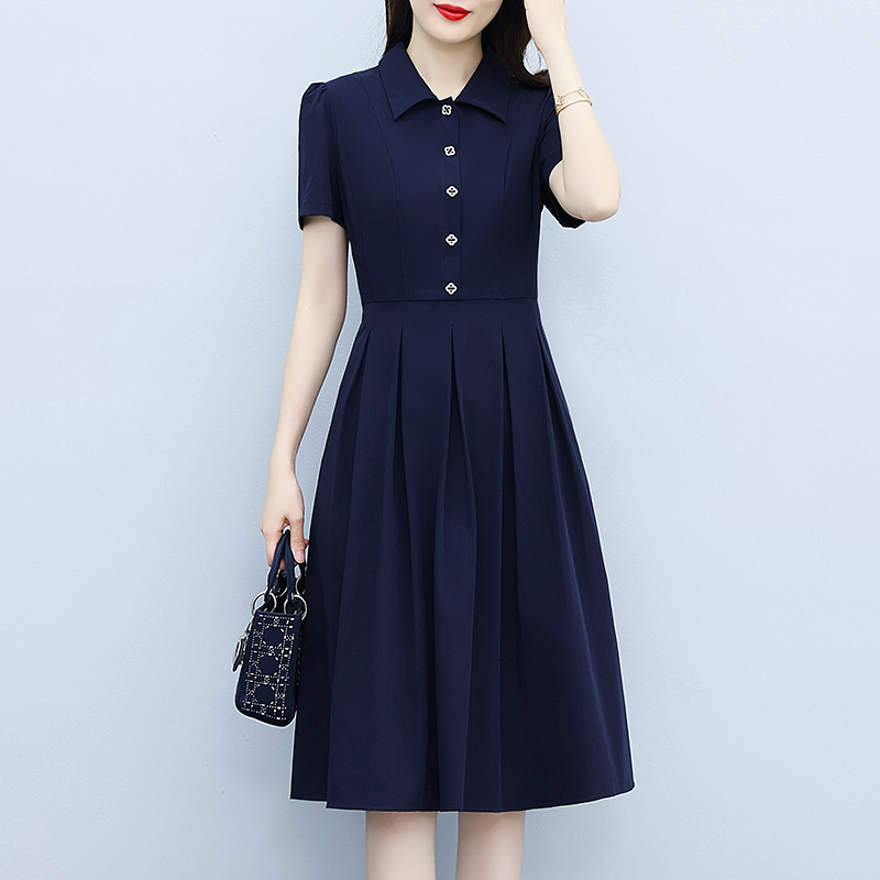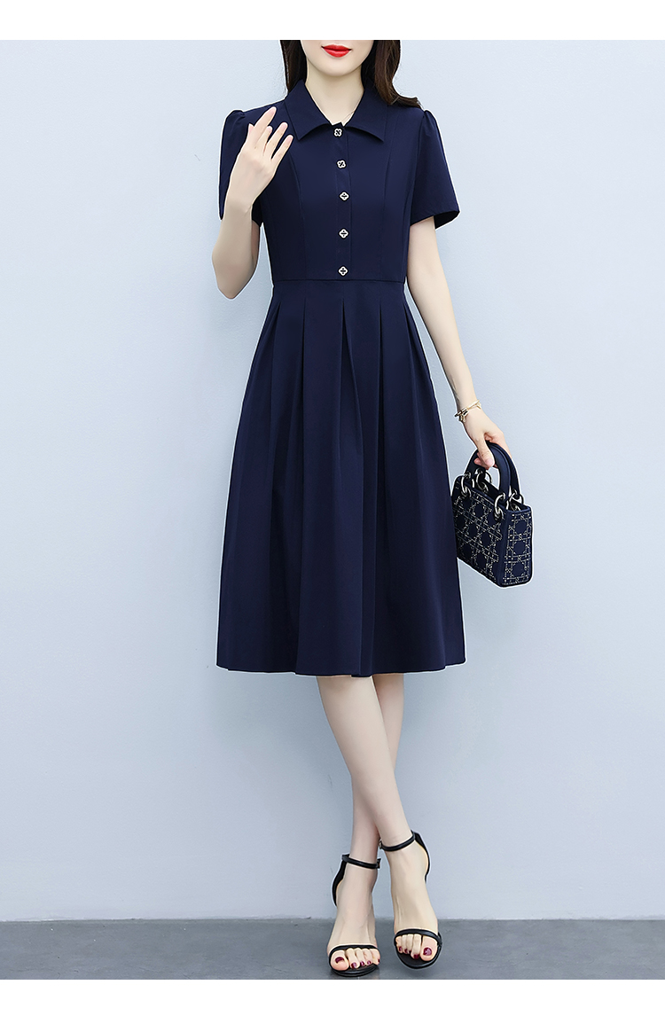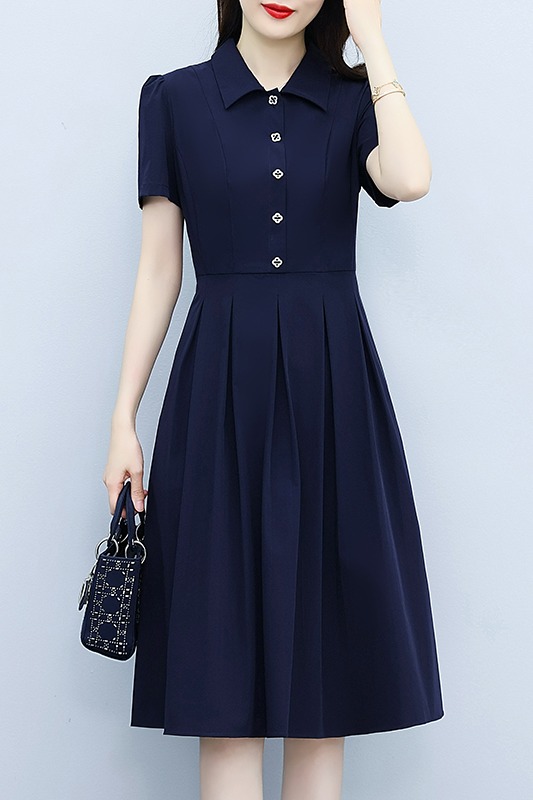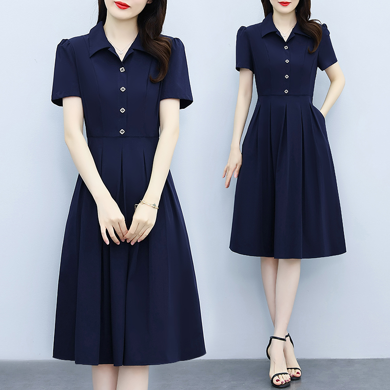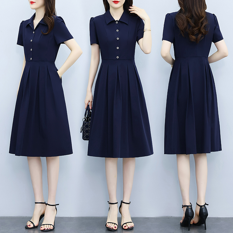 RY3856# 实拍#沐沐衣品#2026年夏季新款气质显瘦遮肚中长款大码短袖连衣裙