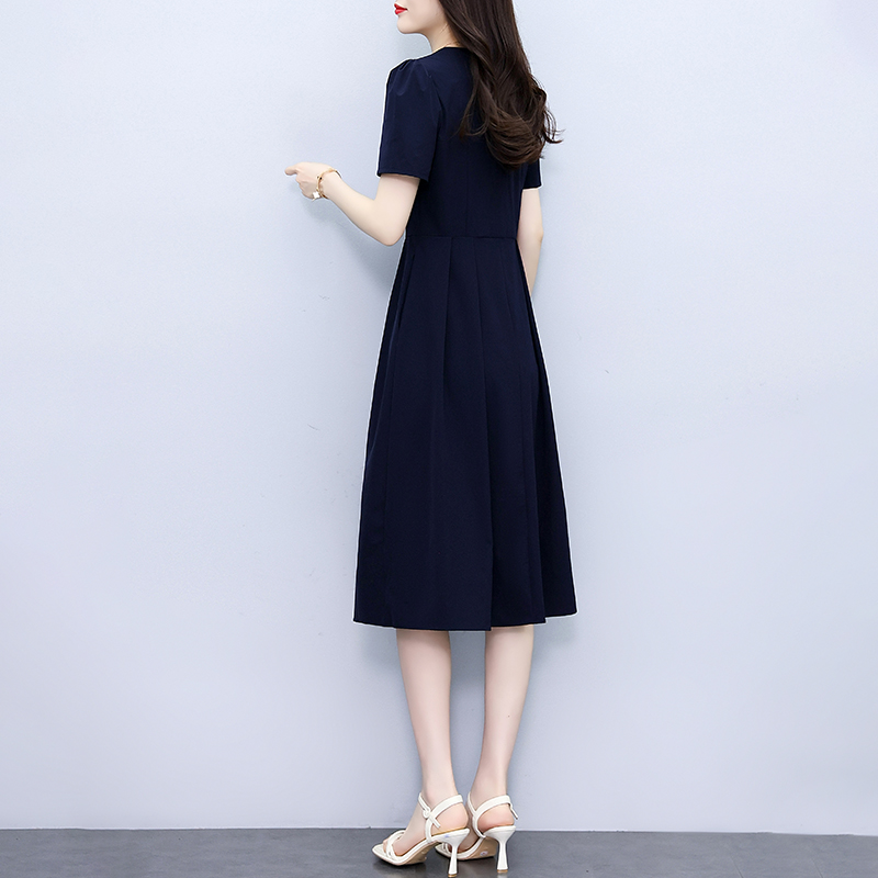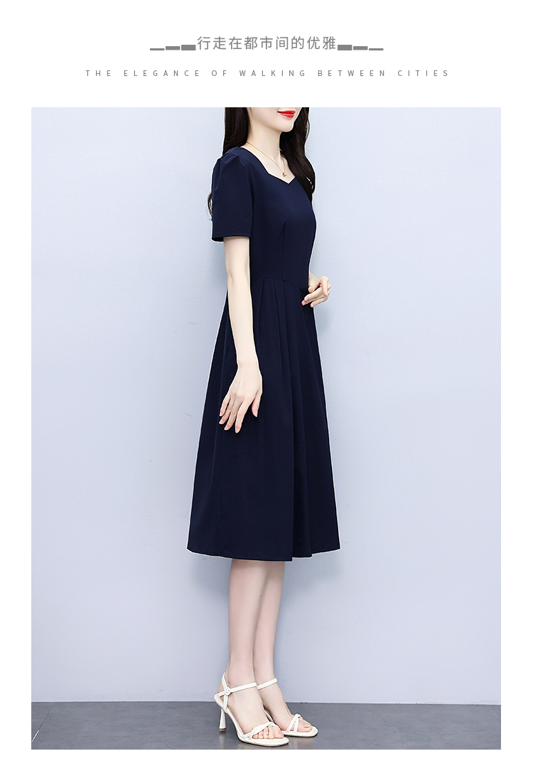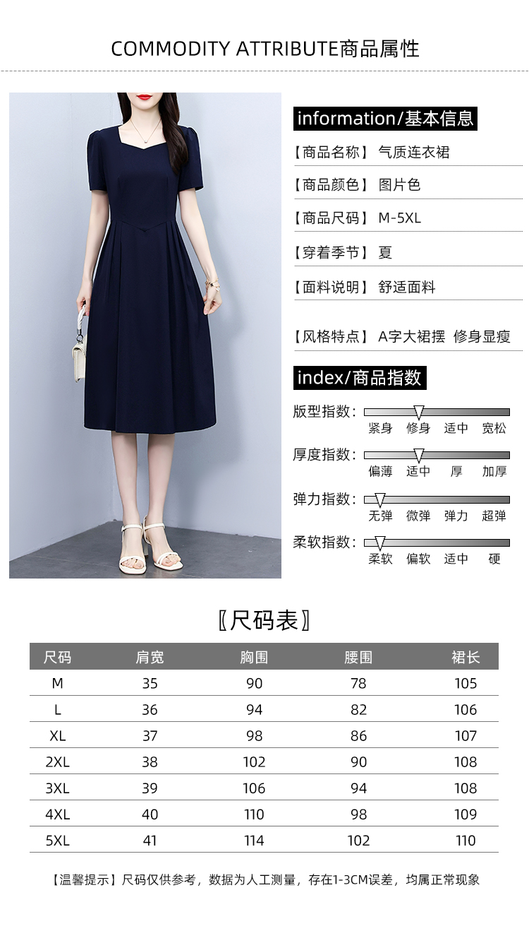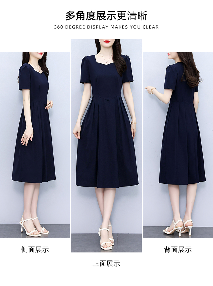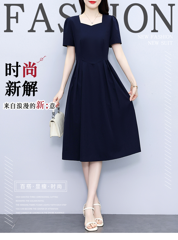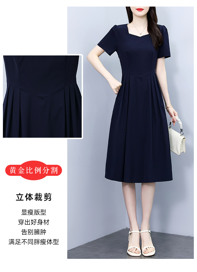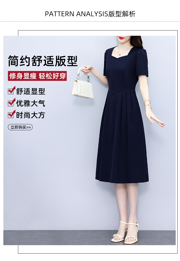 RY3858# 沐沐衣品#2026年夏季新款气质显瘦遮肚中长款V领大码短袖连衣裙