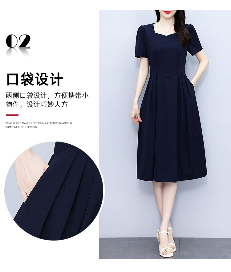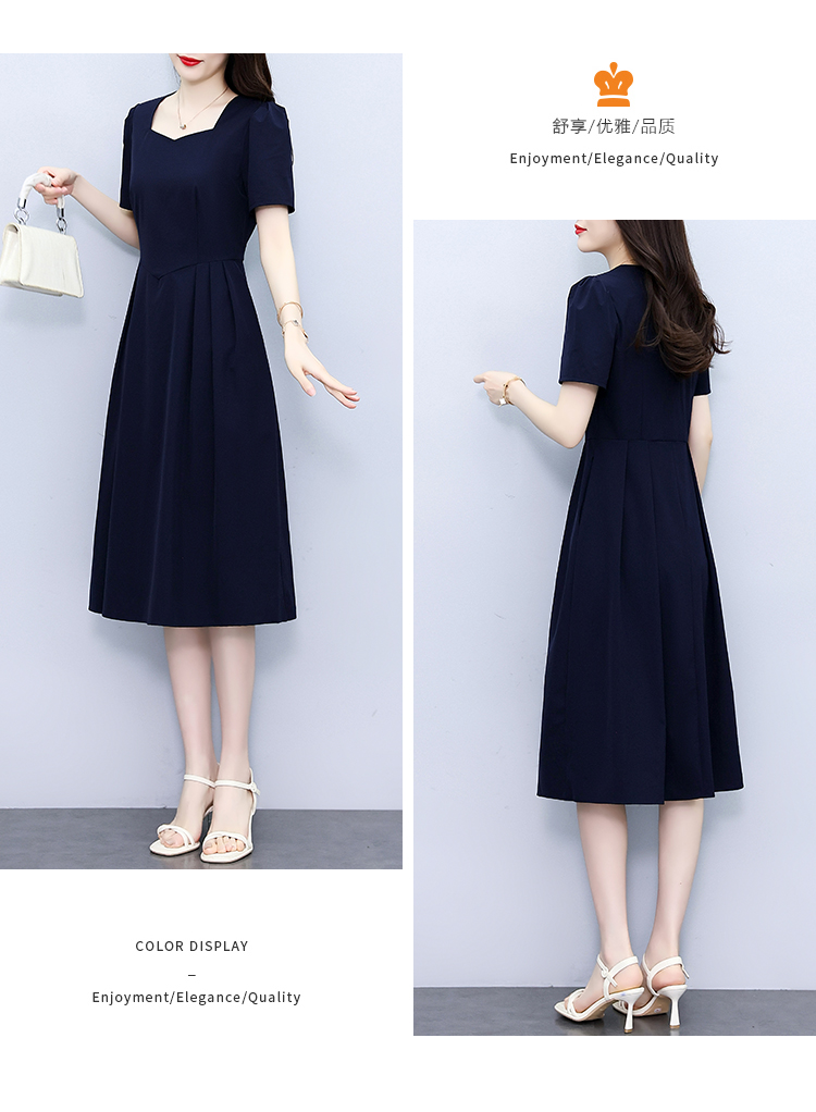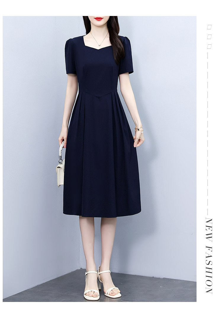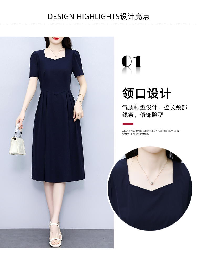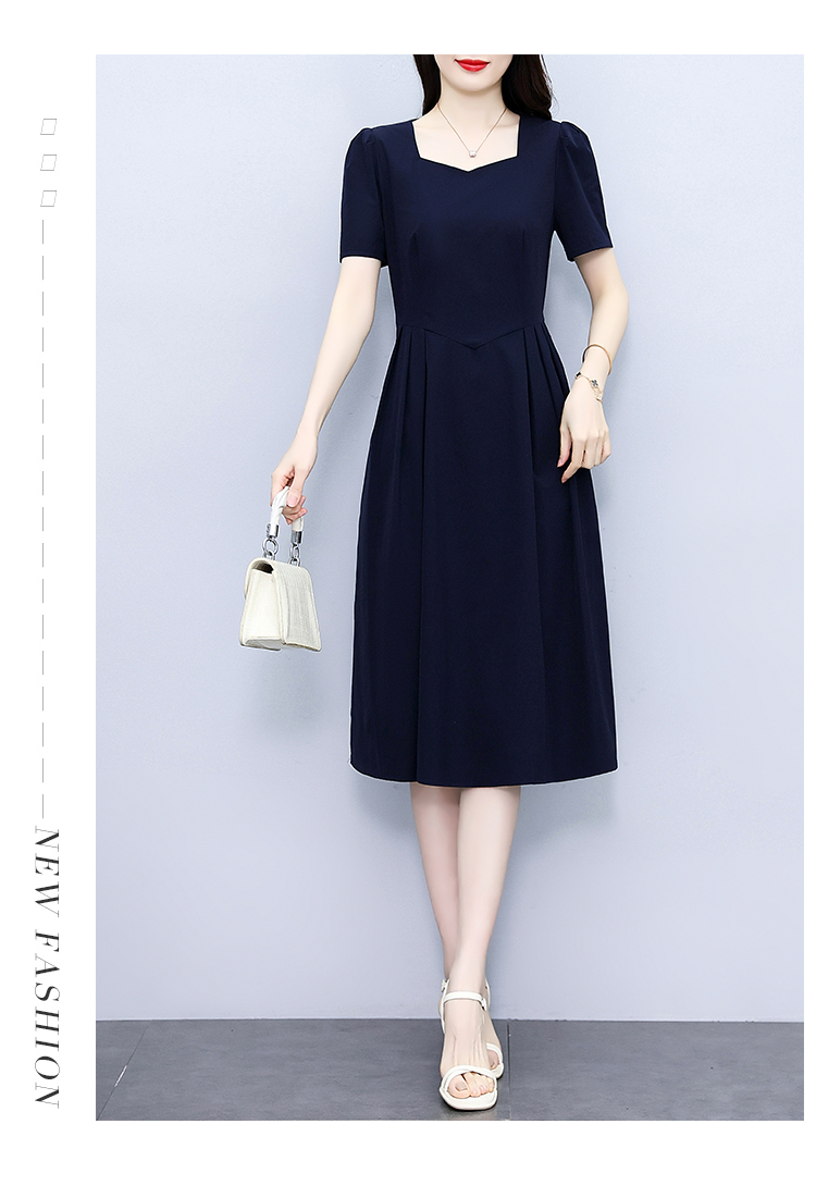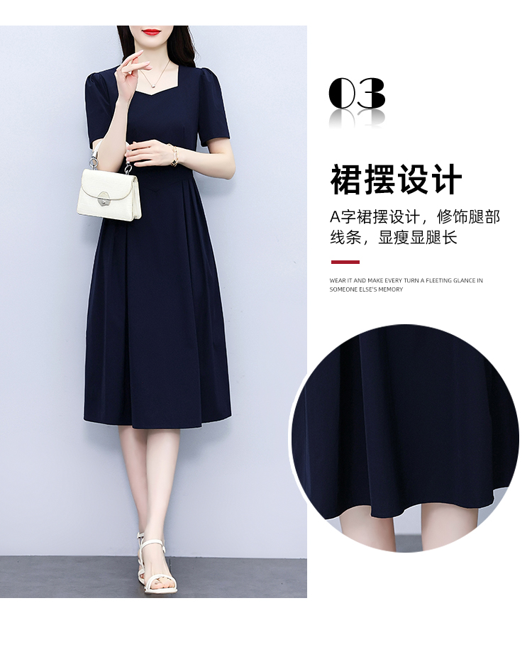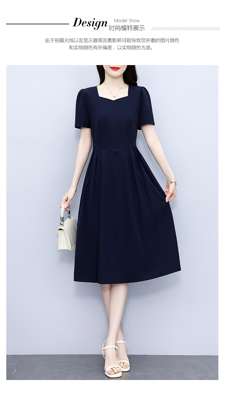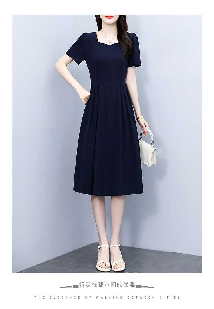 RY3858# 沐沐衣品#2026年夏季新款气质显瘦遮肚中长款V领大码短袖连衣裙