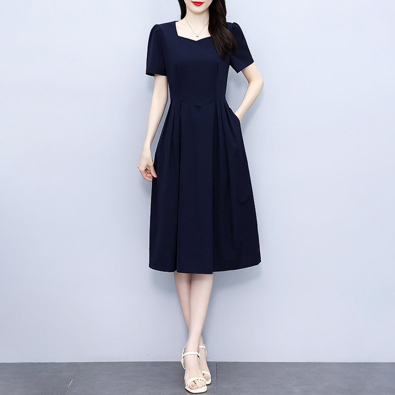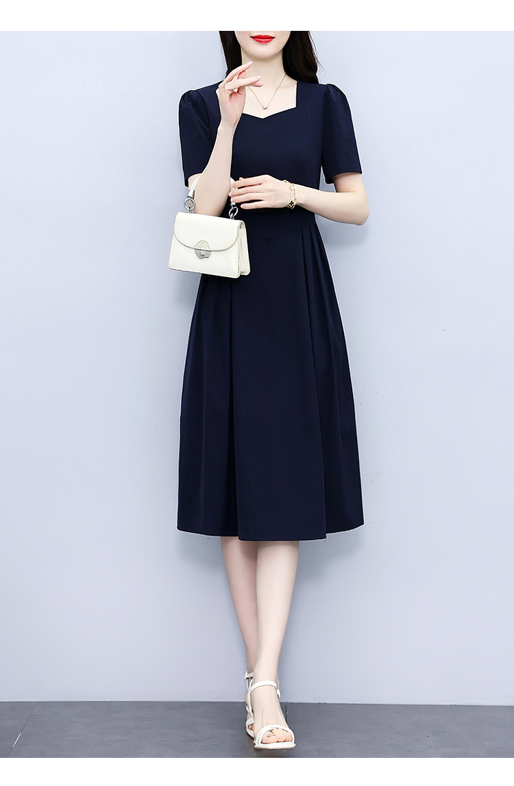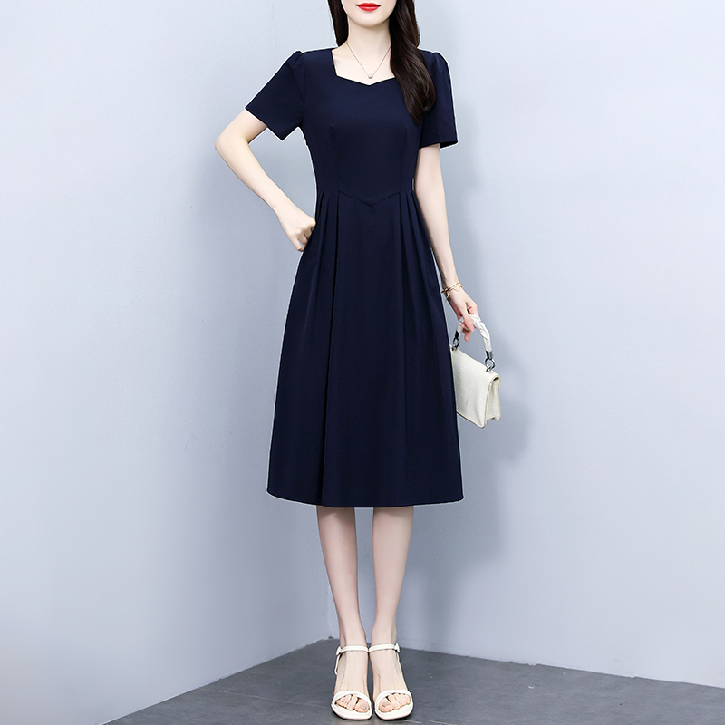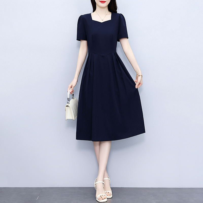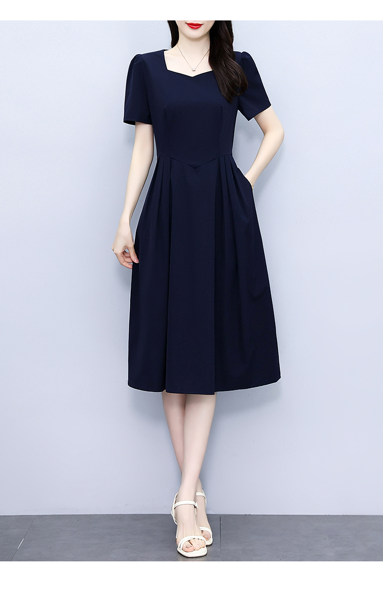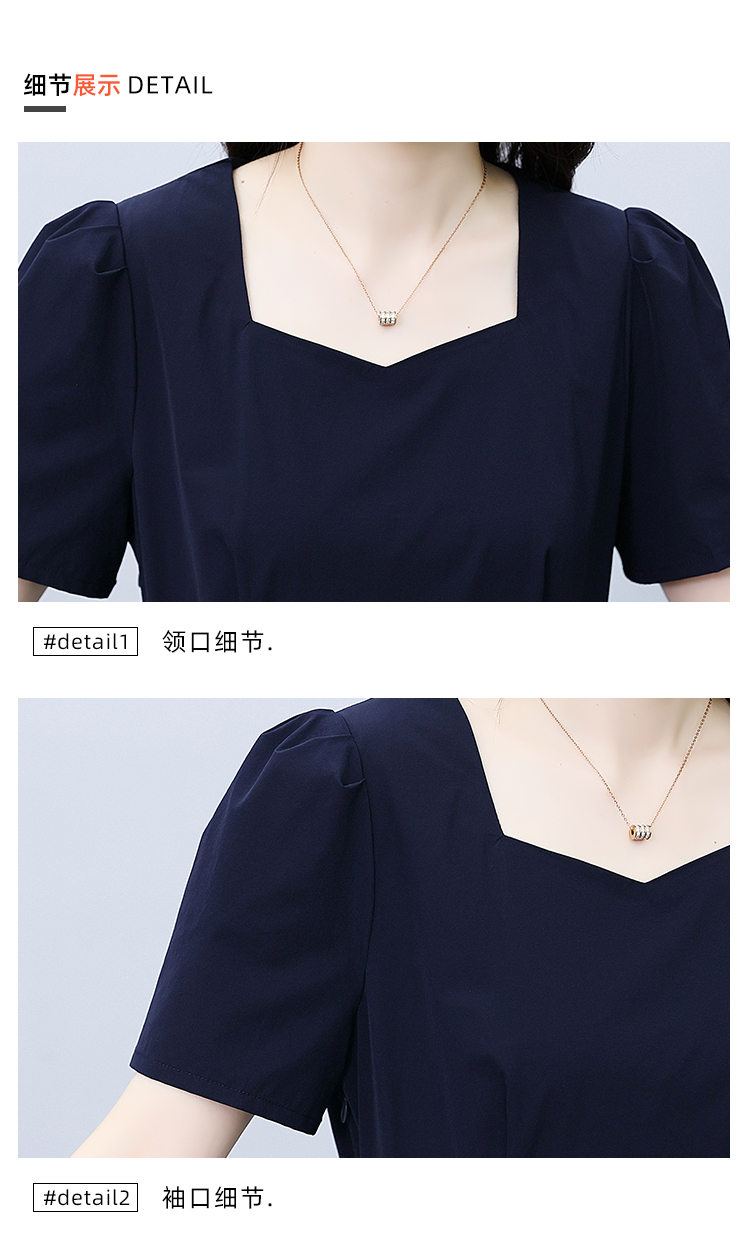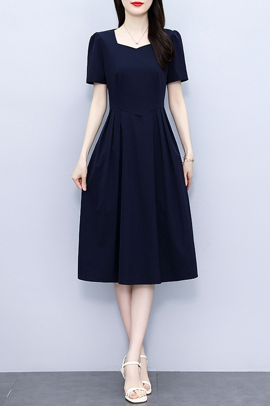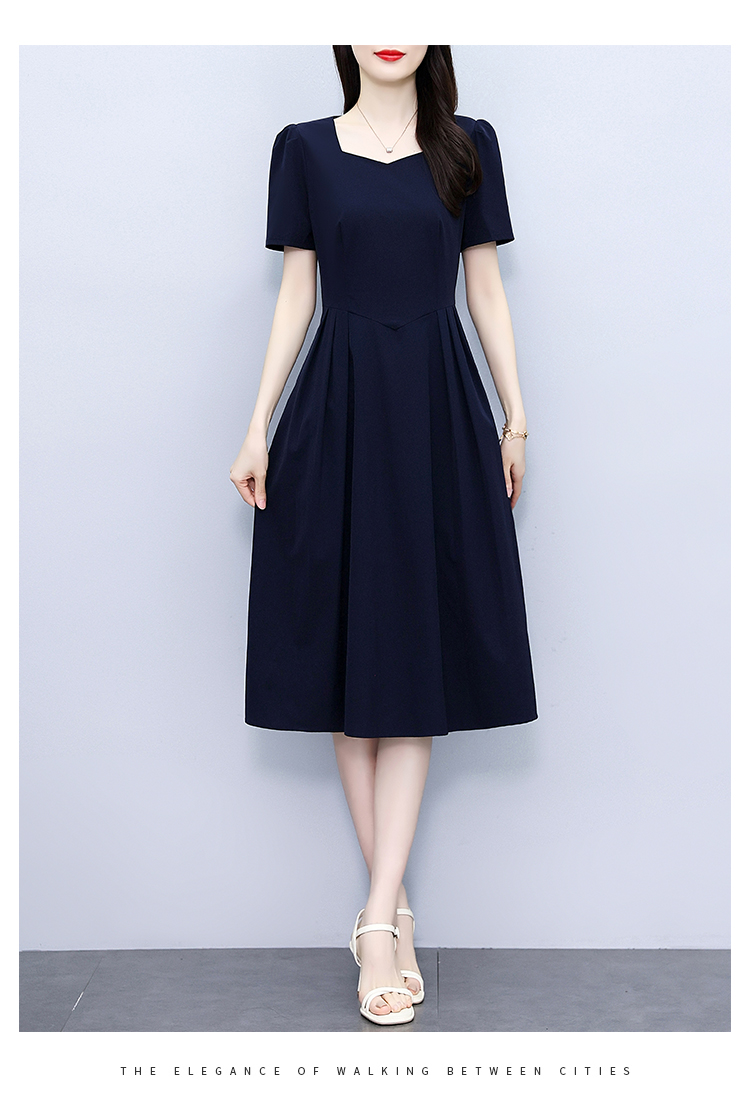 RY3858# 沐沐衣品#2026年夏季新款气质显瘦遮肚中长款V领大码短袖连衣裙