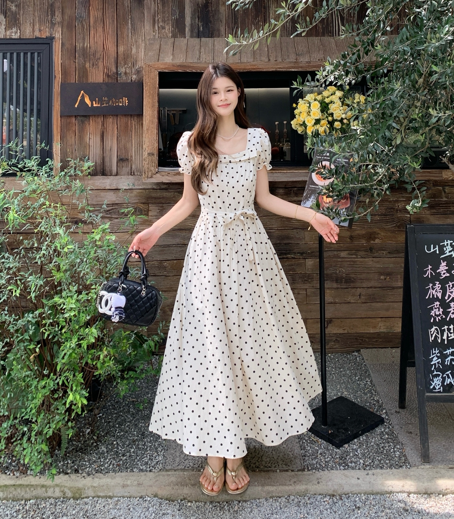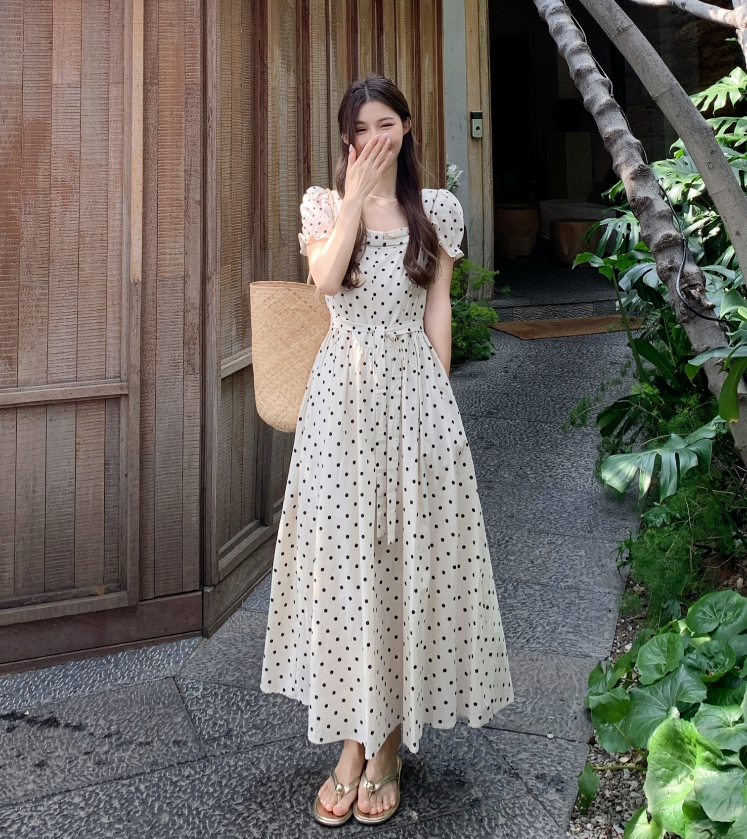 波点连衣裙