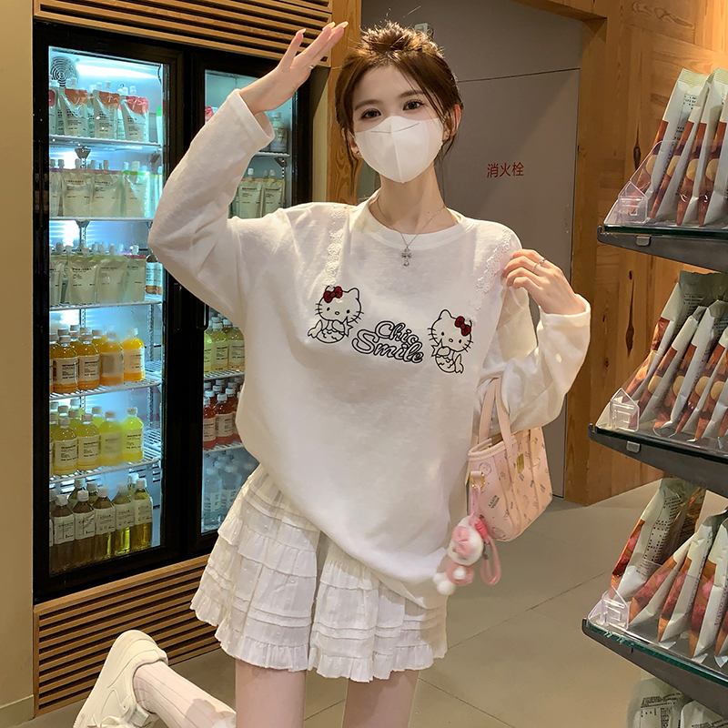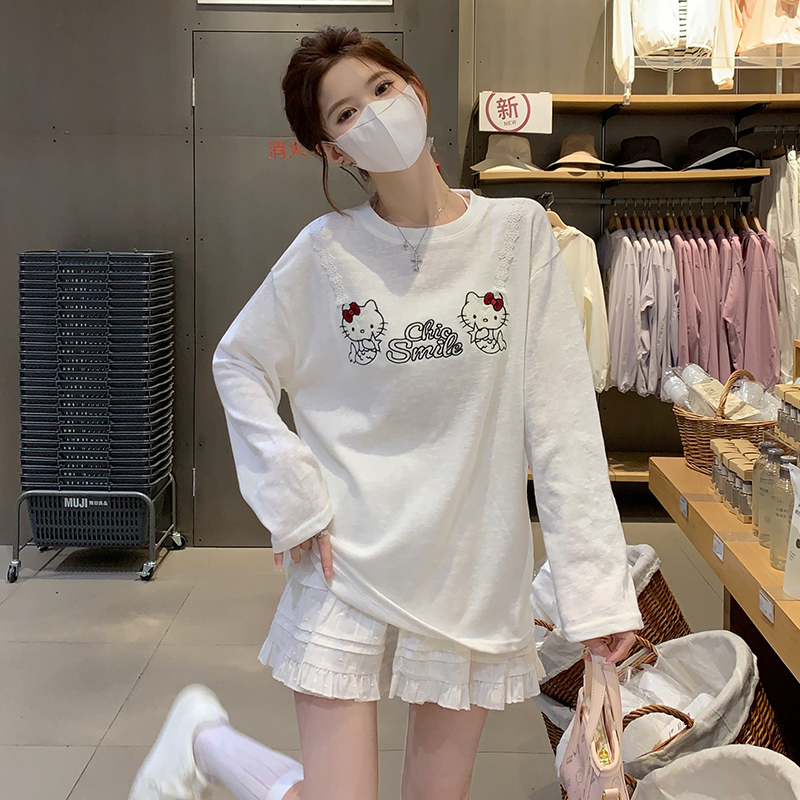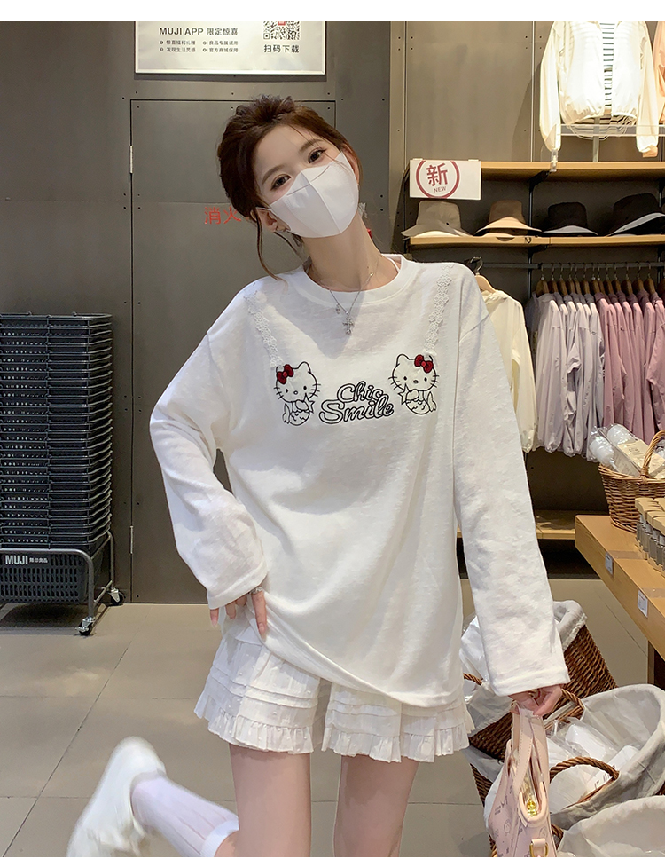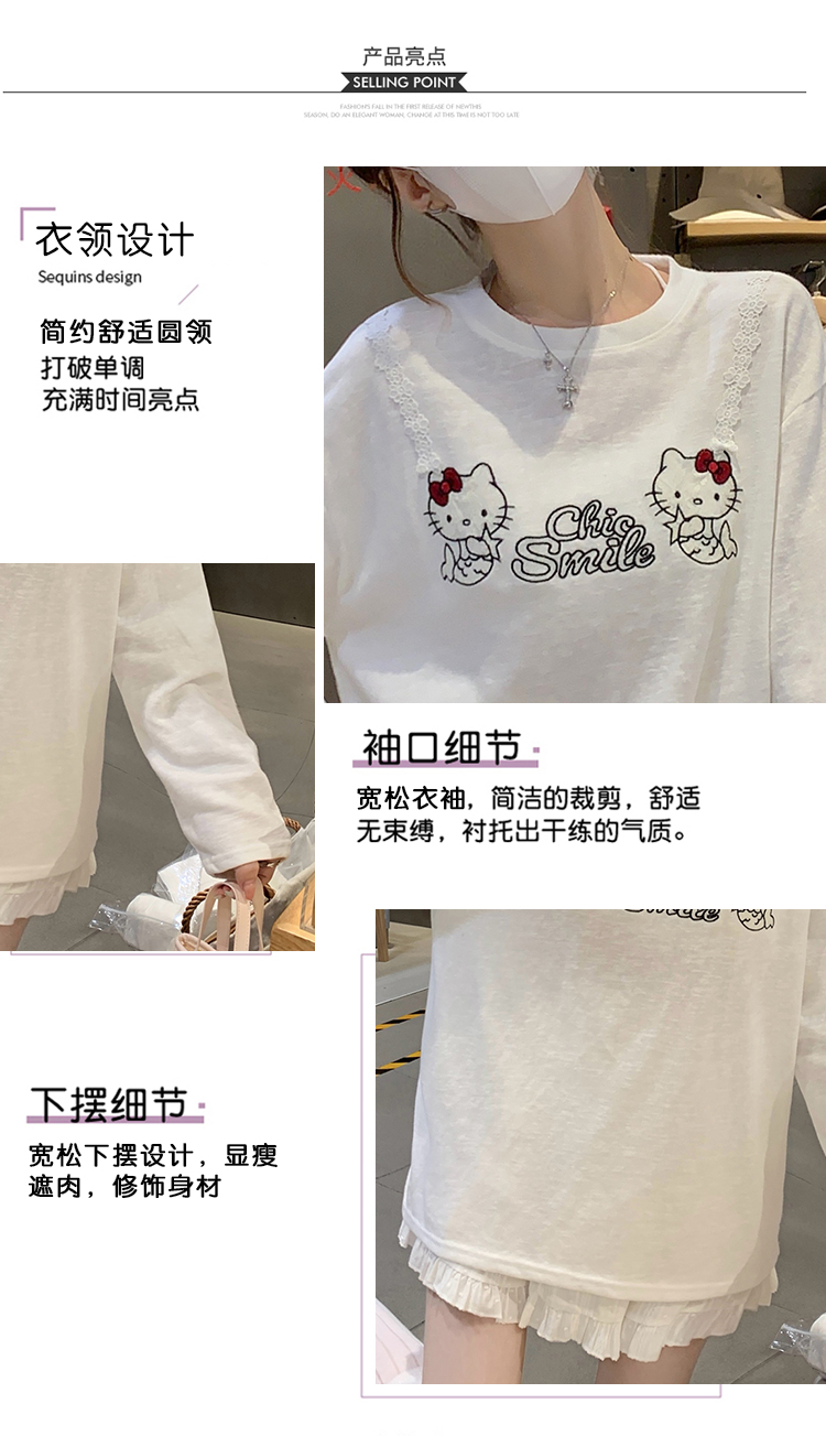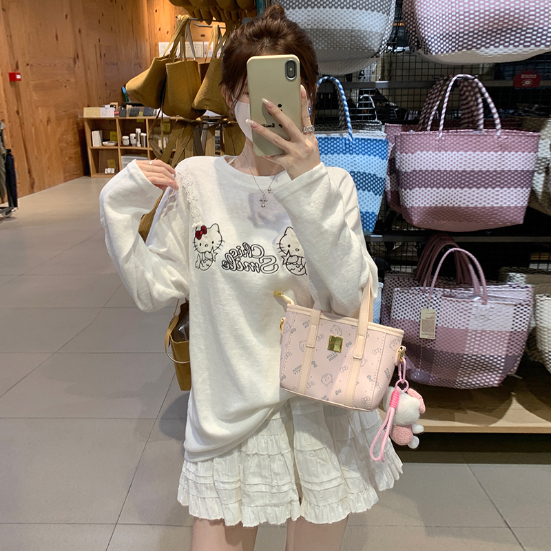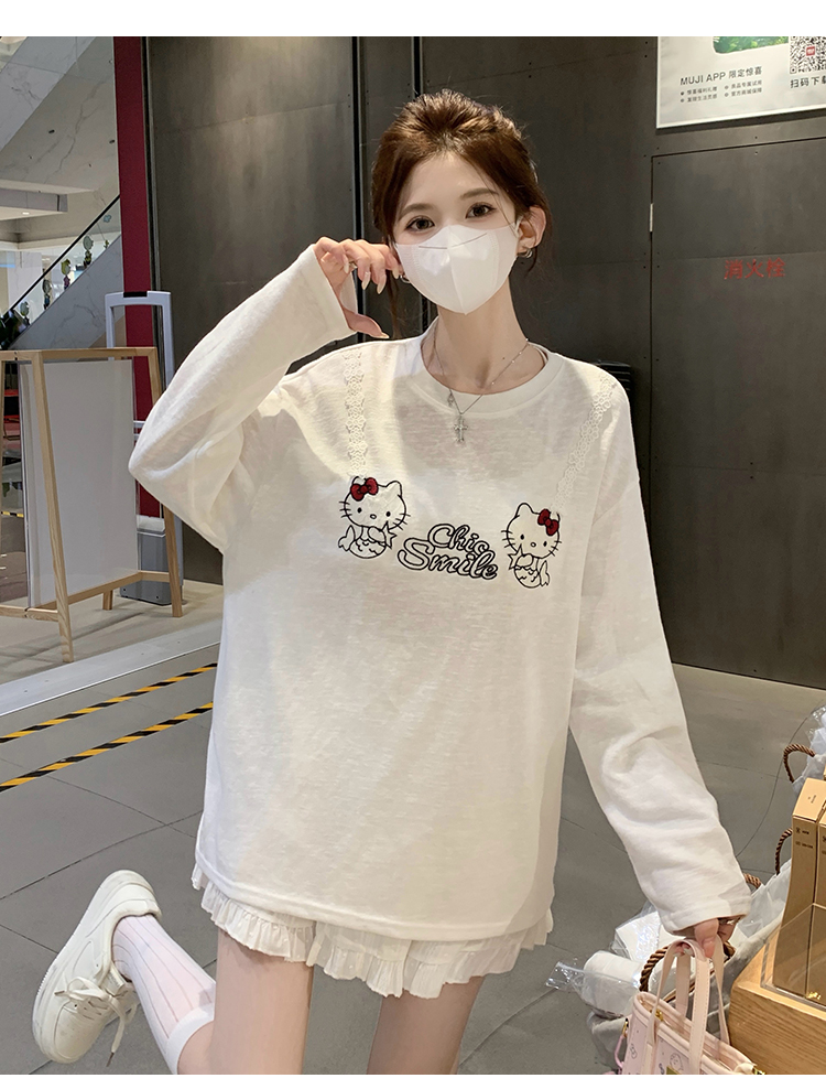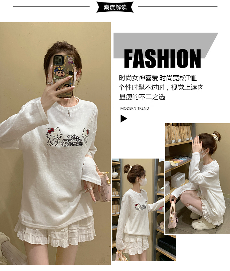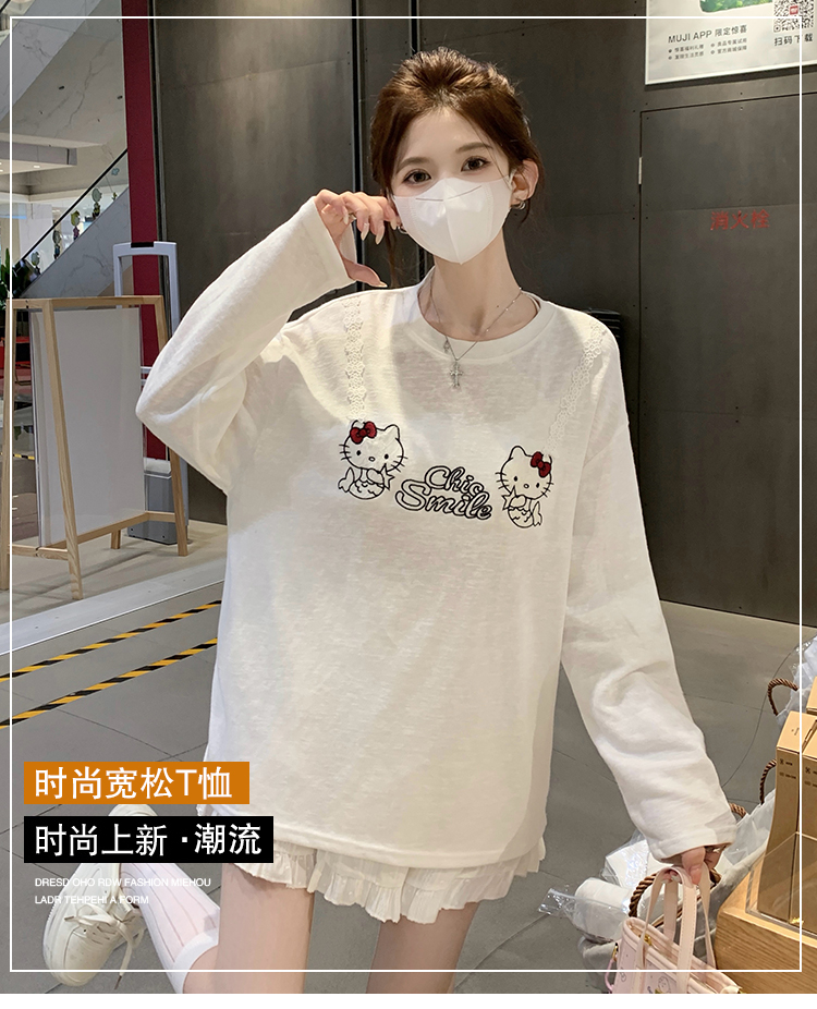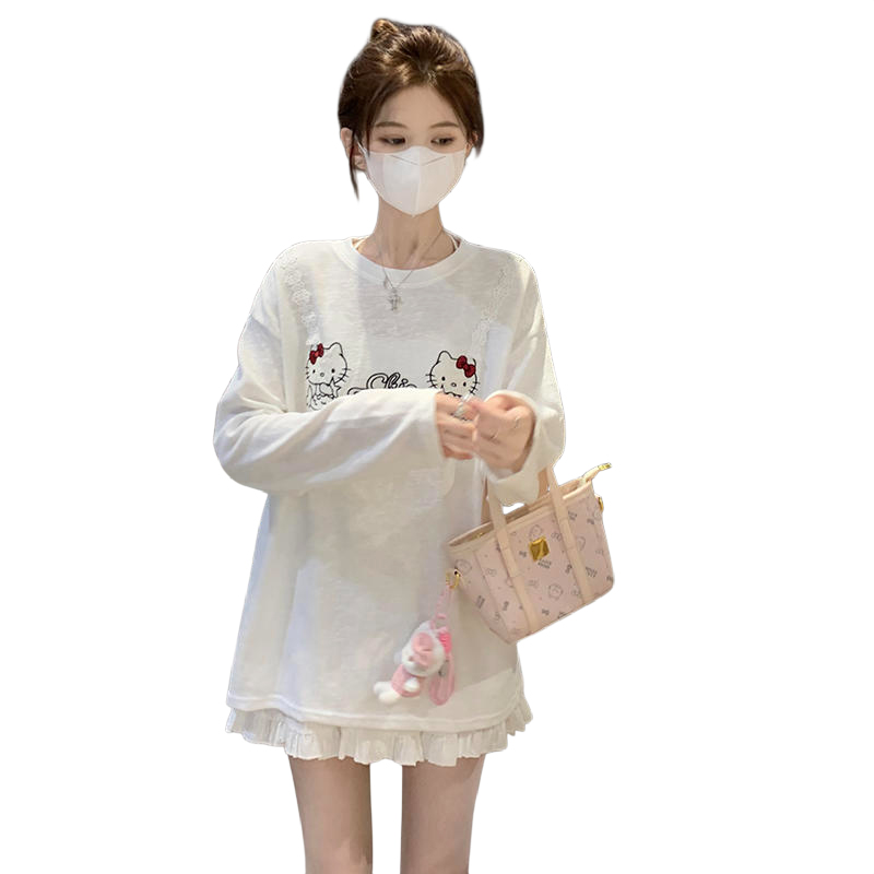 RY3874# 实拍 2026 KT猫大头贴印花宽松圆领打底短袖休闲减龄廓形内搭T恤