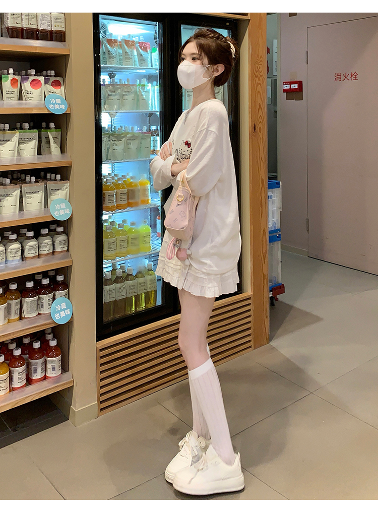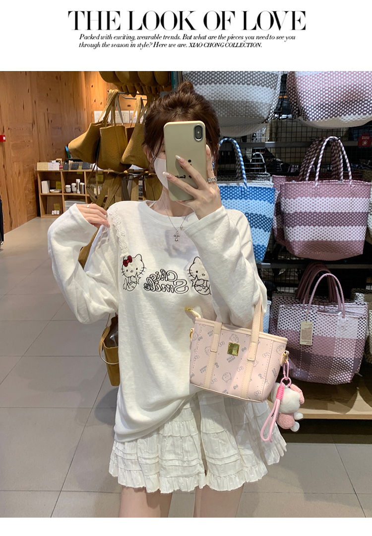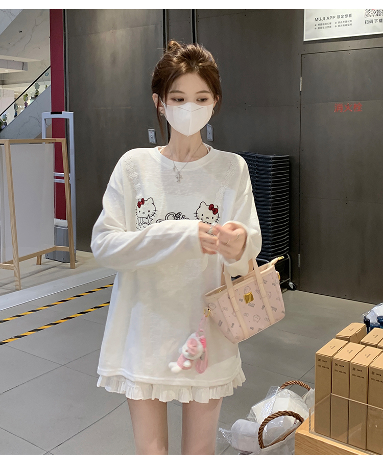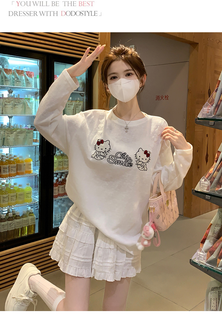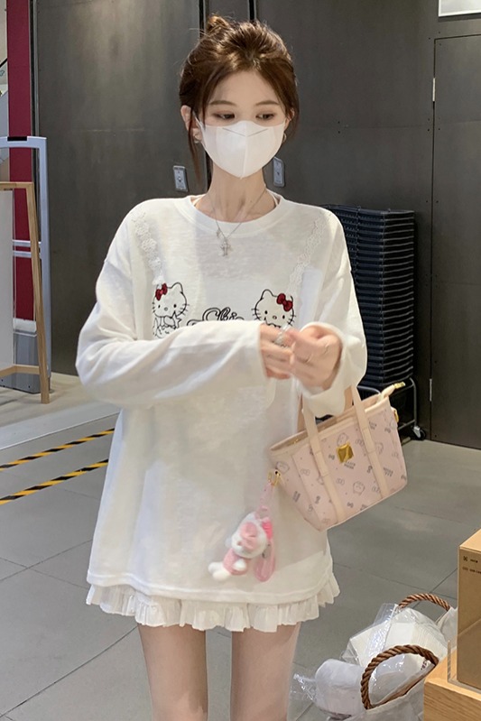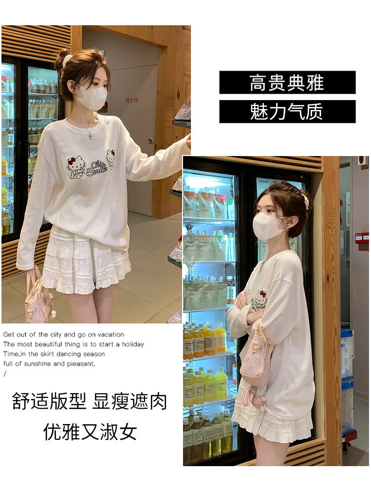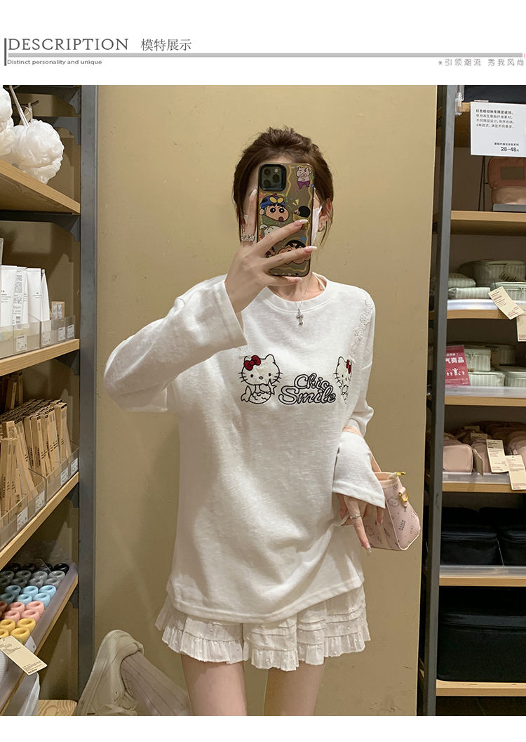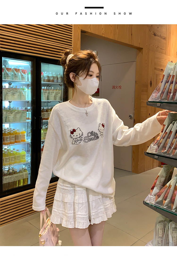 RY3874# 实拍 2026 KT猫大头贴印花宽松圆领打底短袖休闲减龄廓形内搭T恤