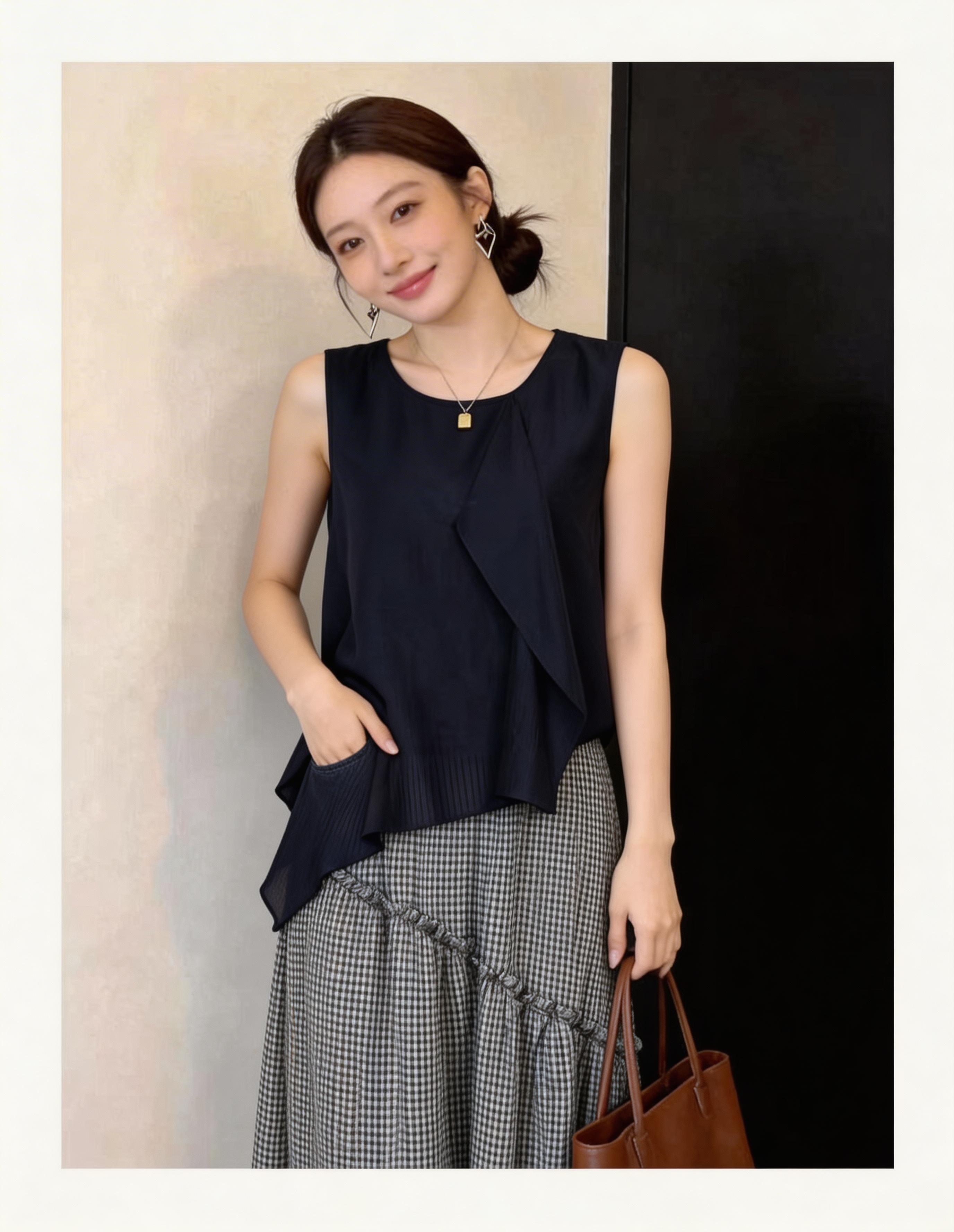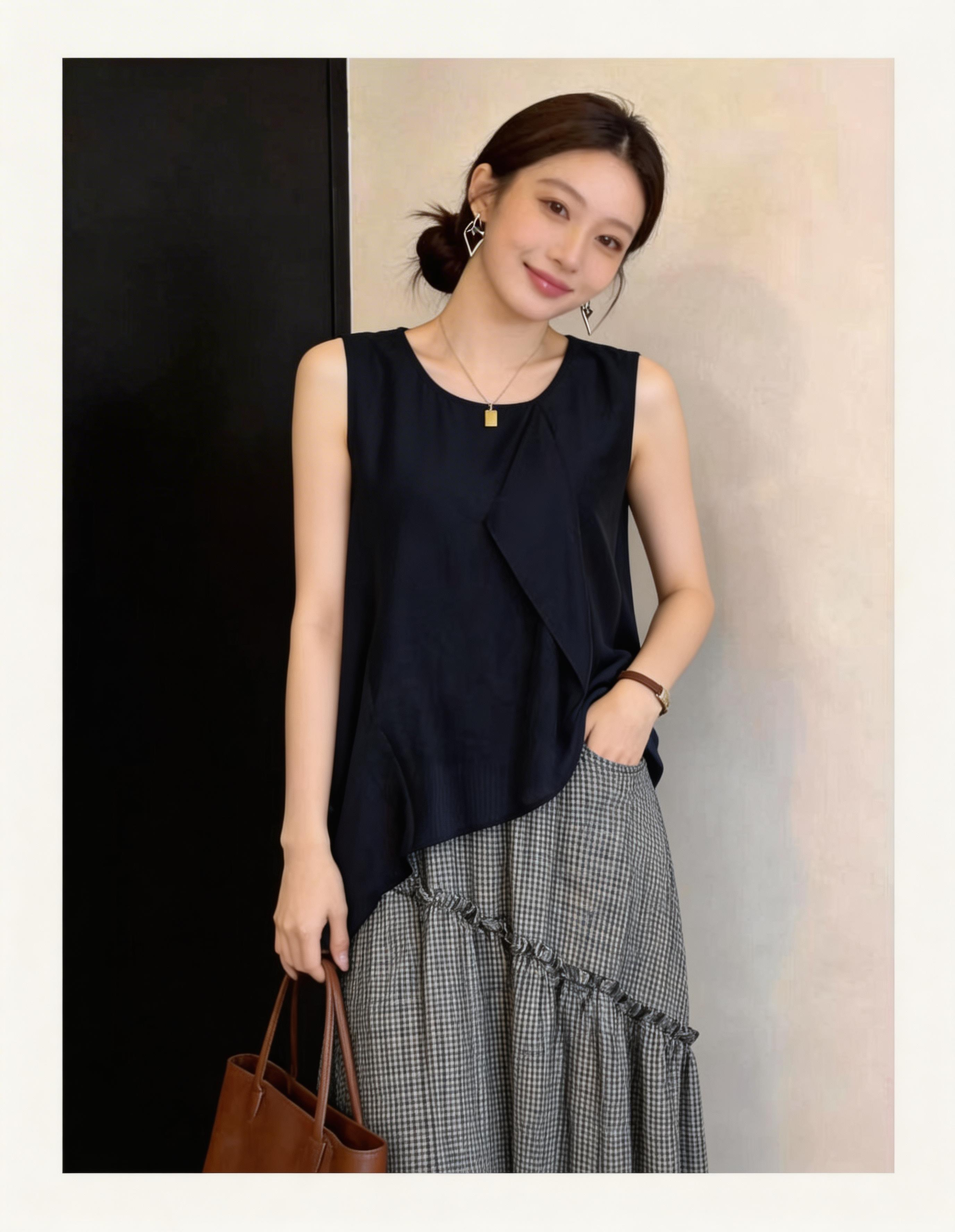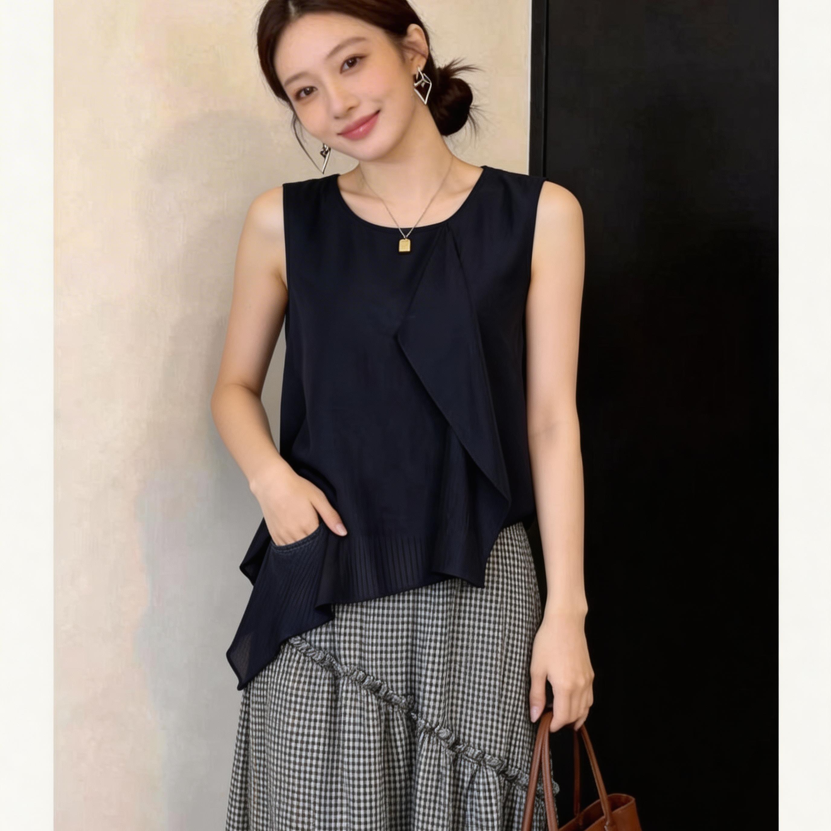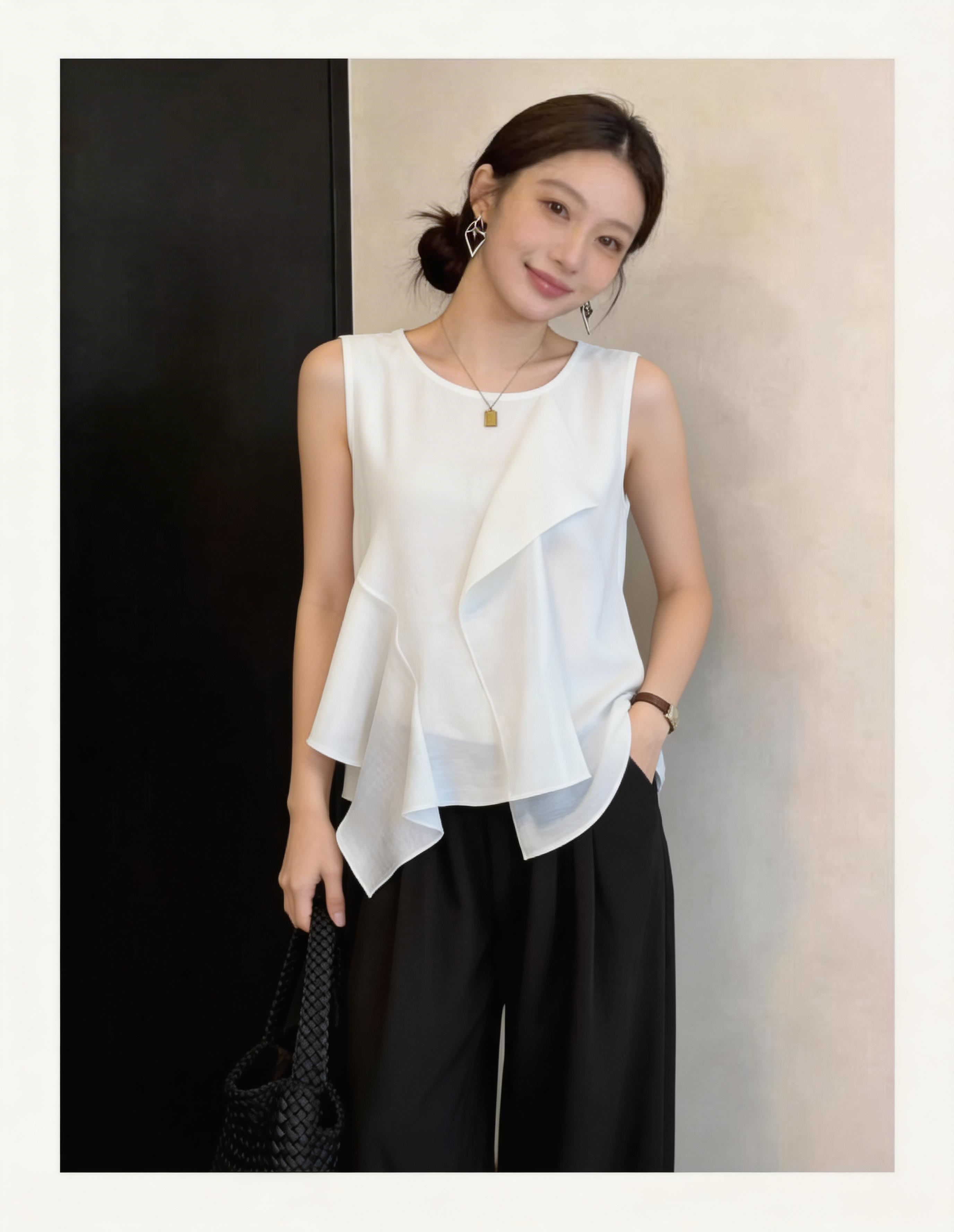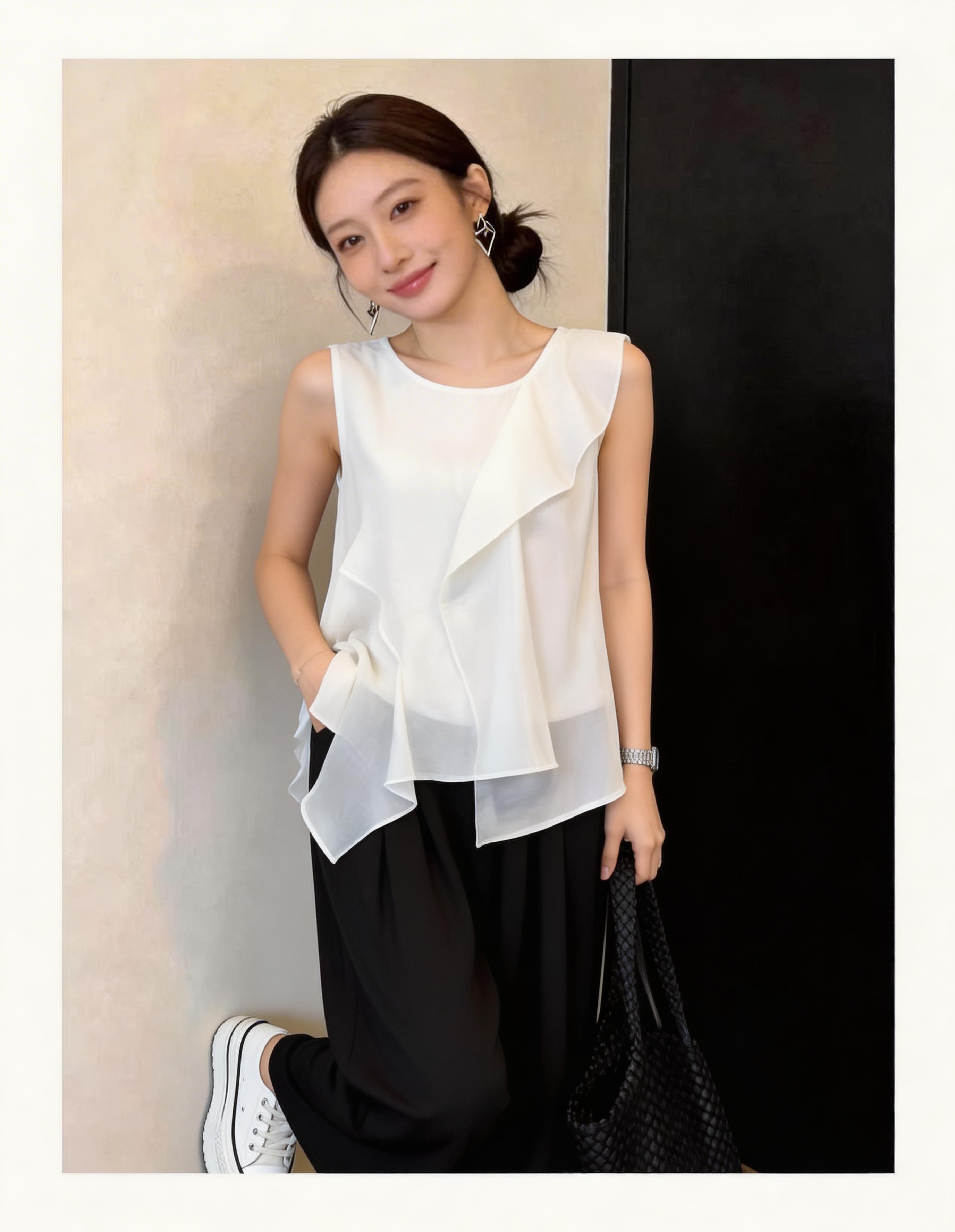 RY3886# 不规则下摆荷叶边醋酸无袖小衫女2026夏季新款天丝雪纺白衬衫