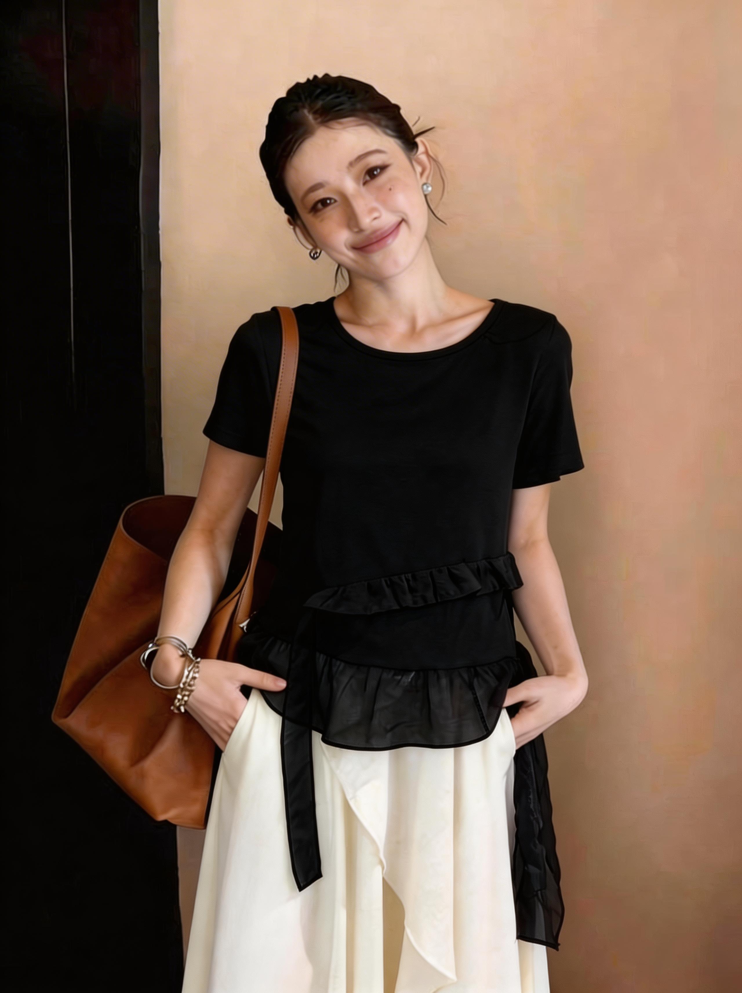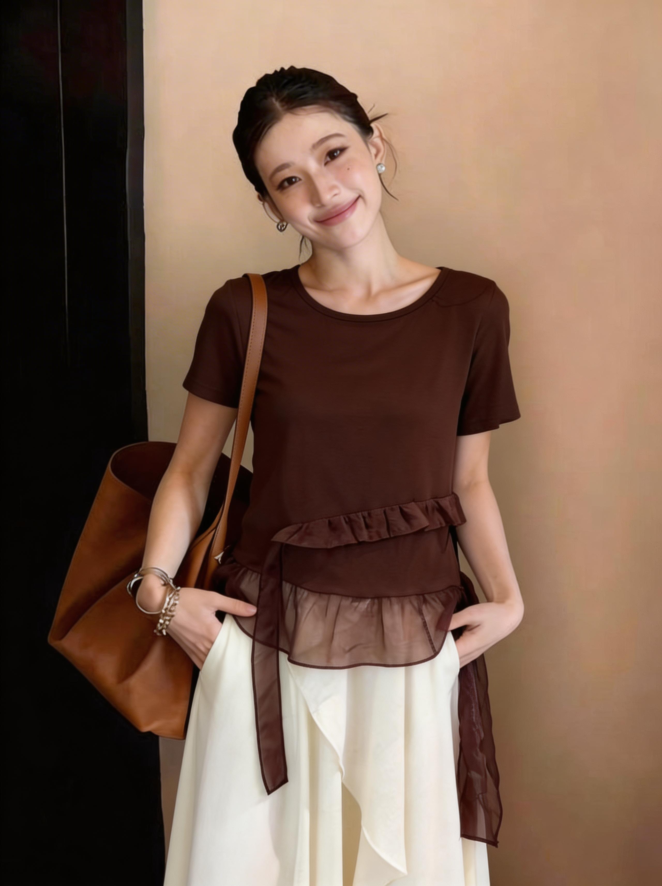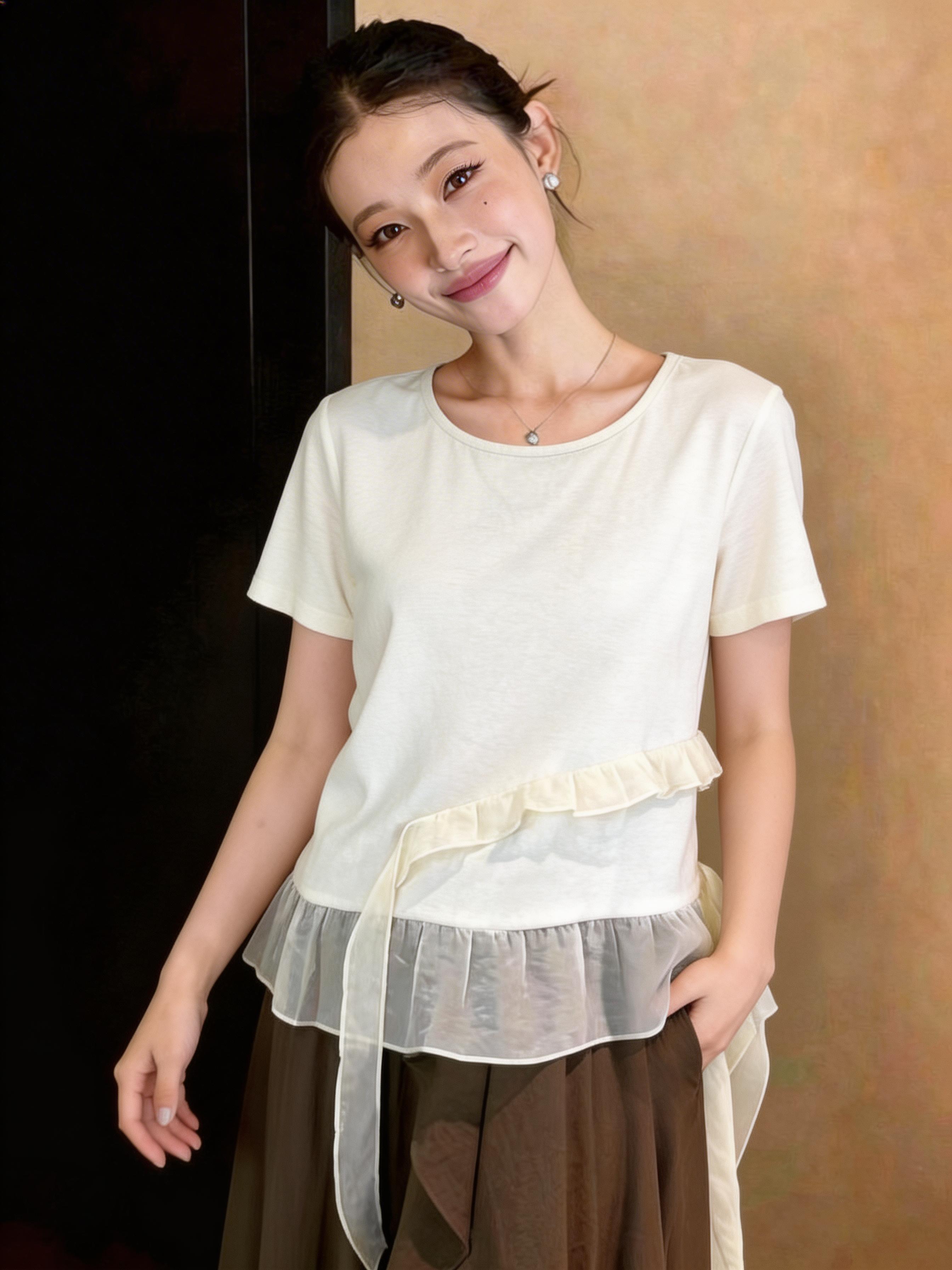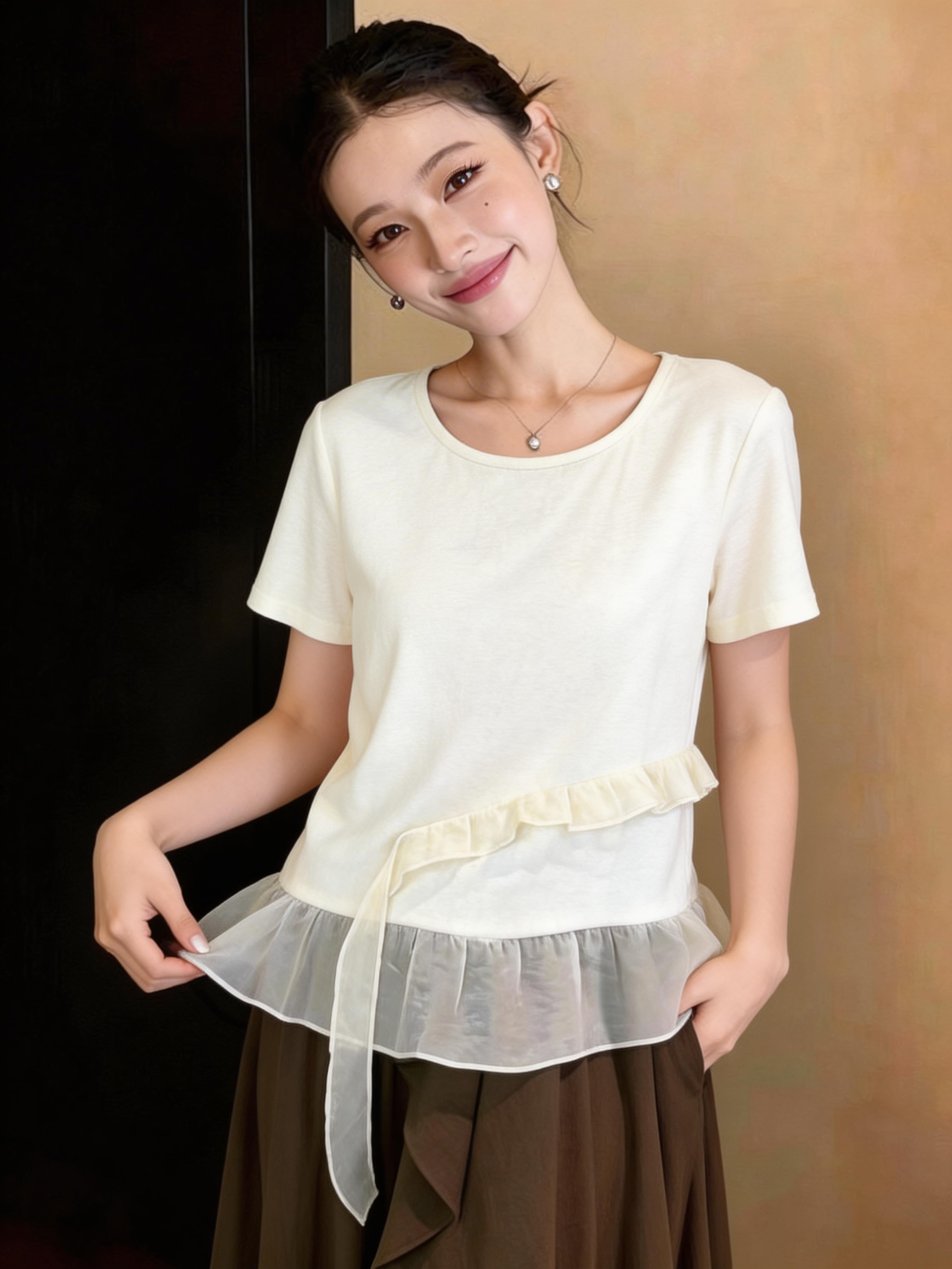 RY3888# 拼接蕾丝花边正肩短袖t恤女2026新款夏季宽松小个子洋气上衣