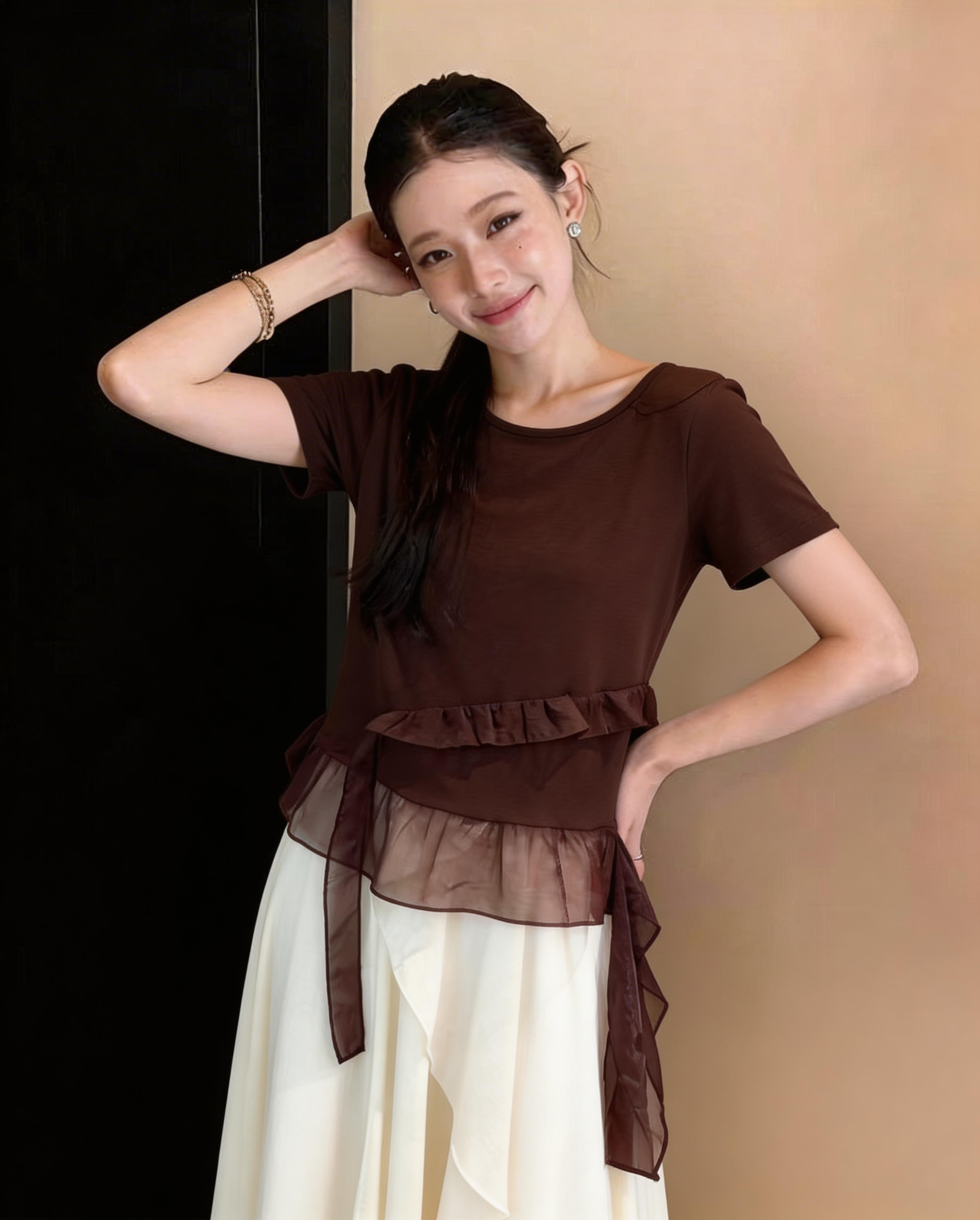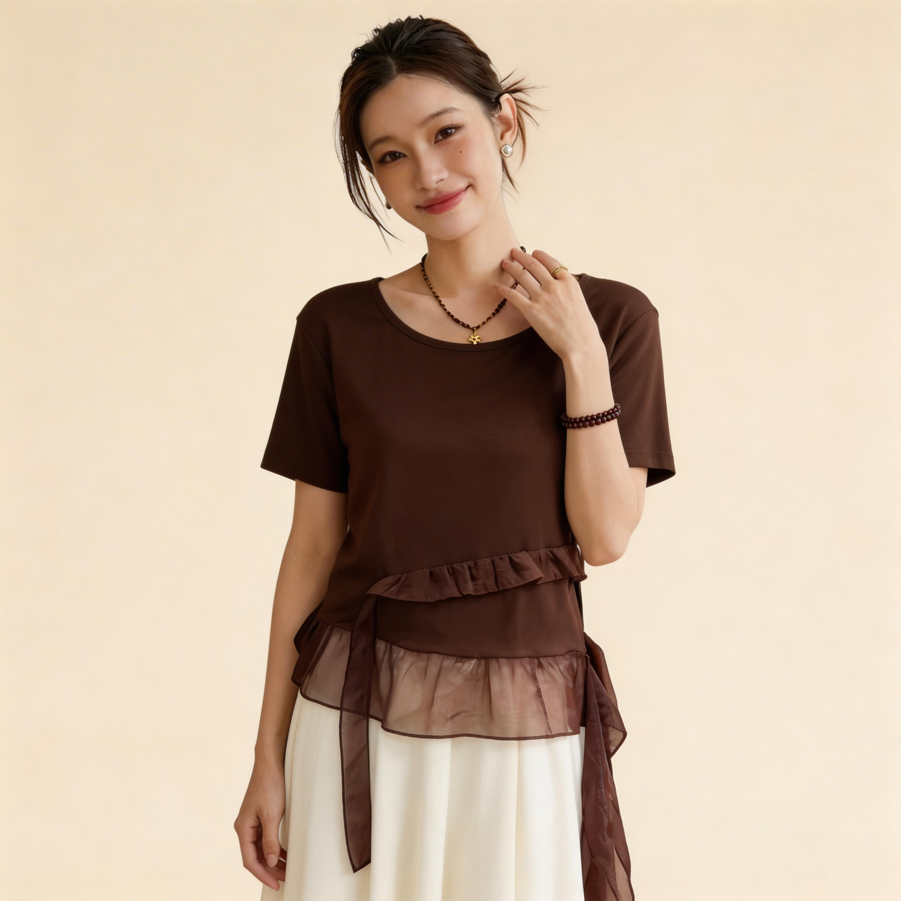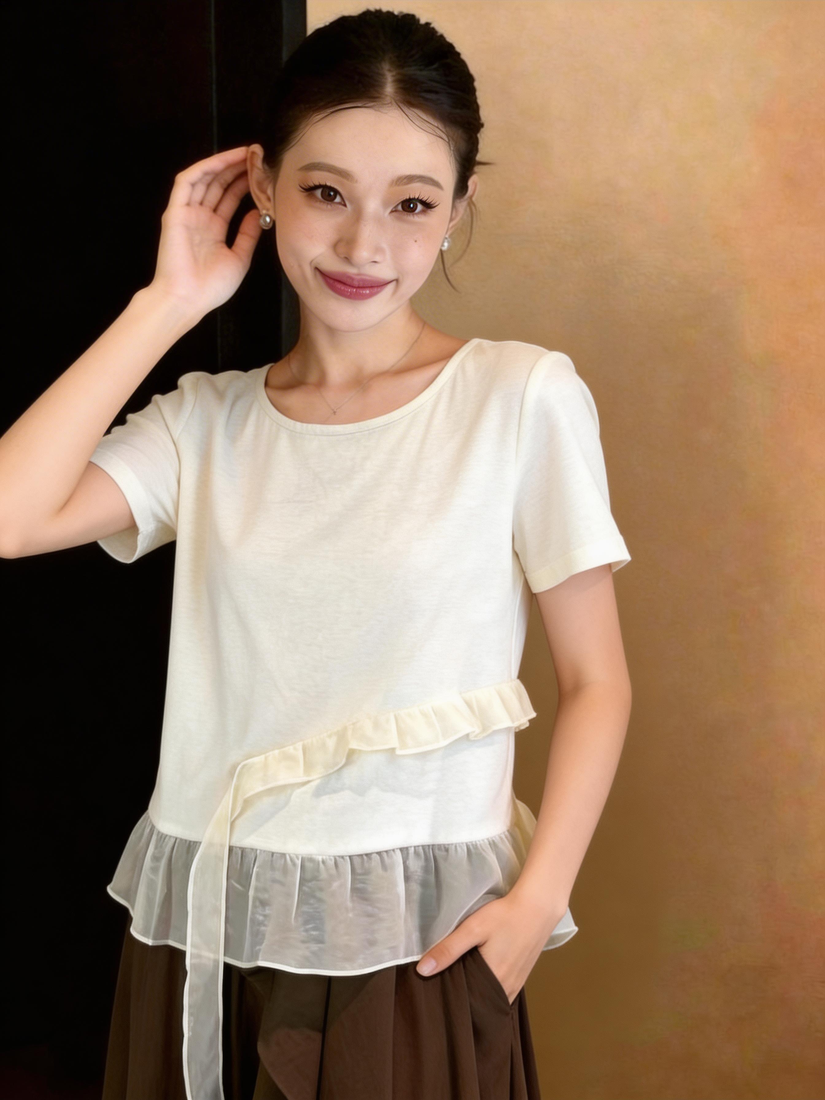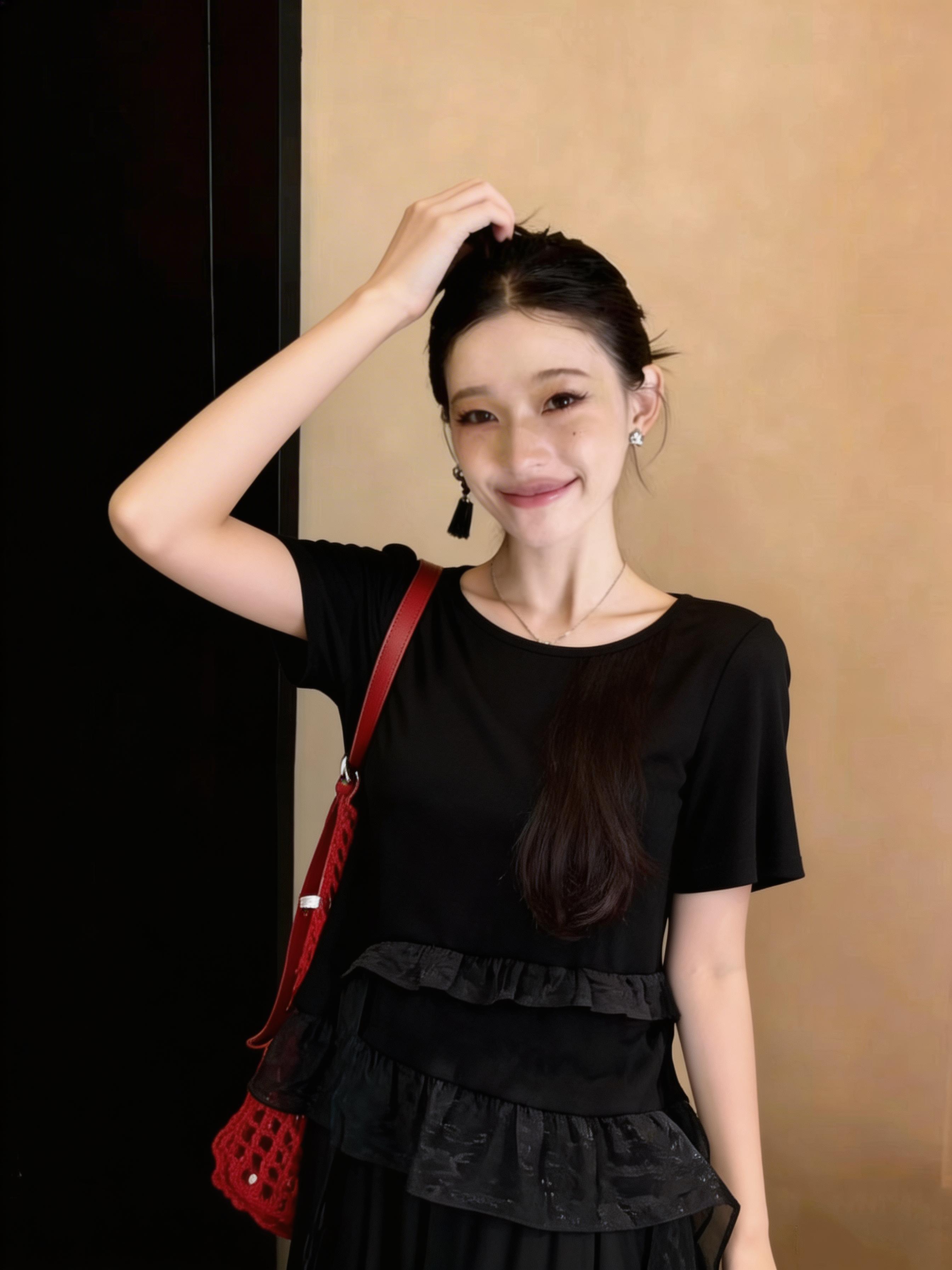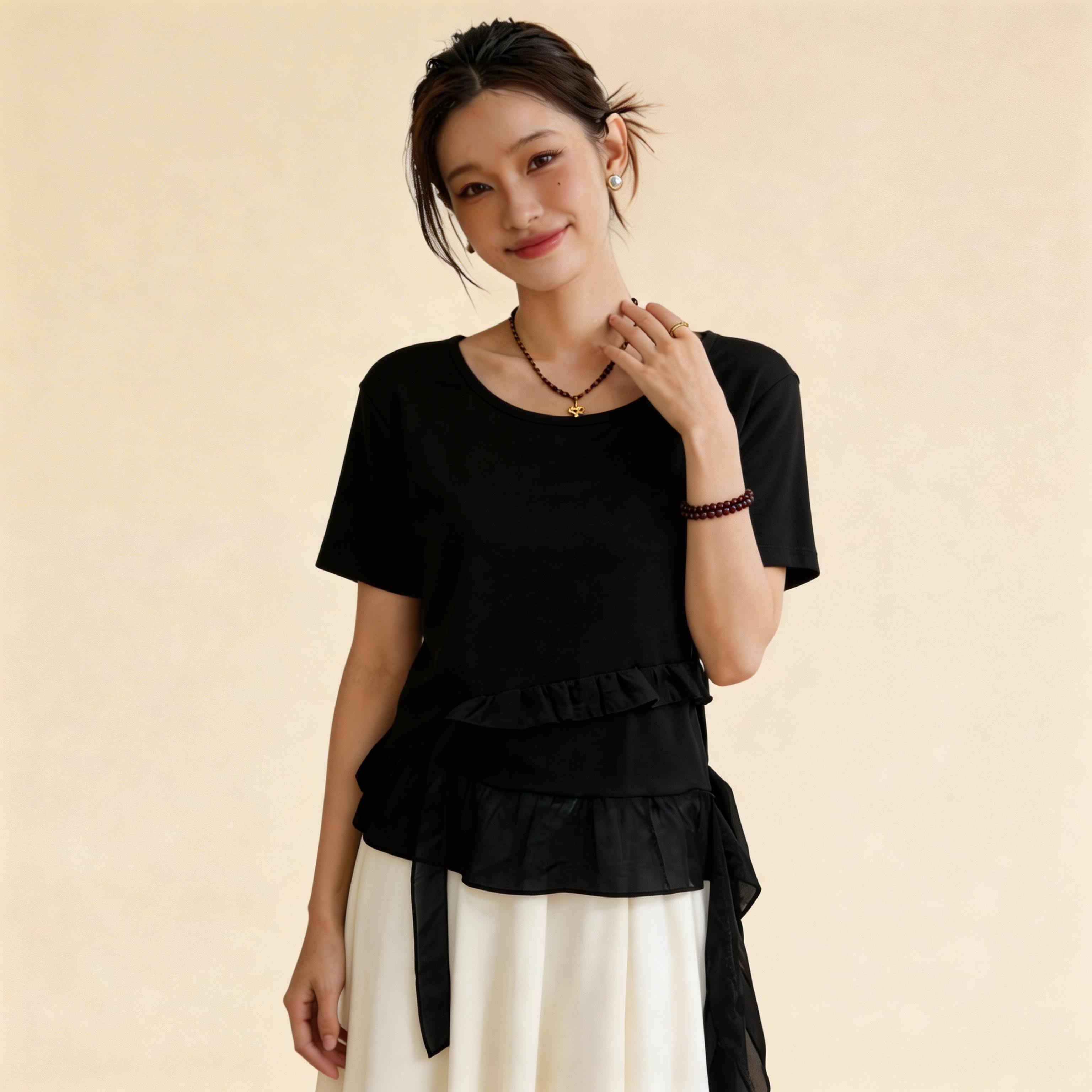RY3888# 拼接蕾丝花边正肩短袖t恤女2026新款夏季宽松小个子洋气上衣