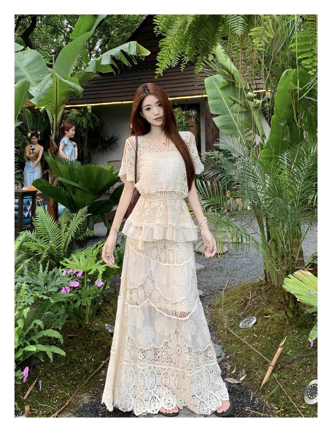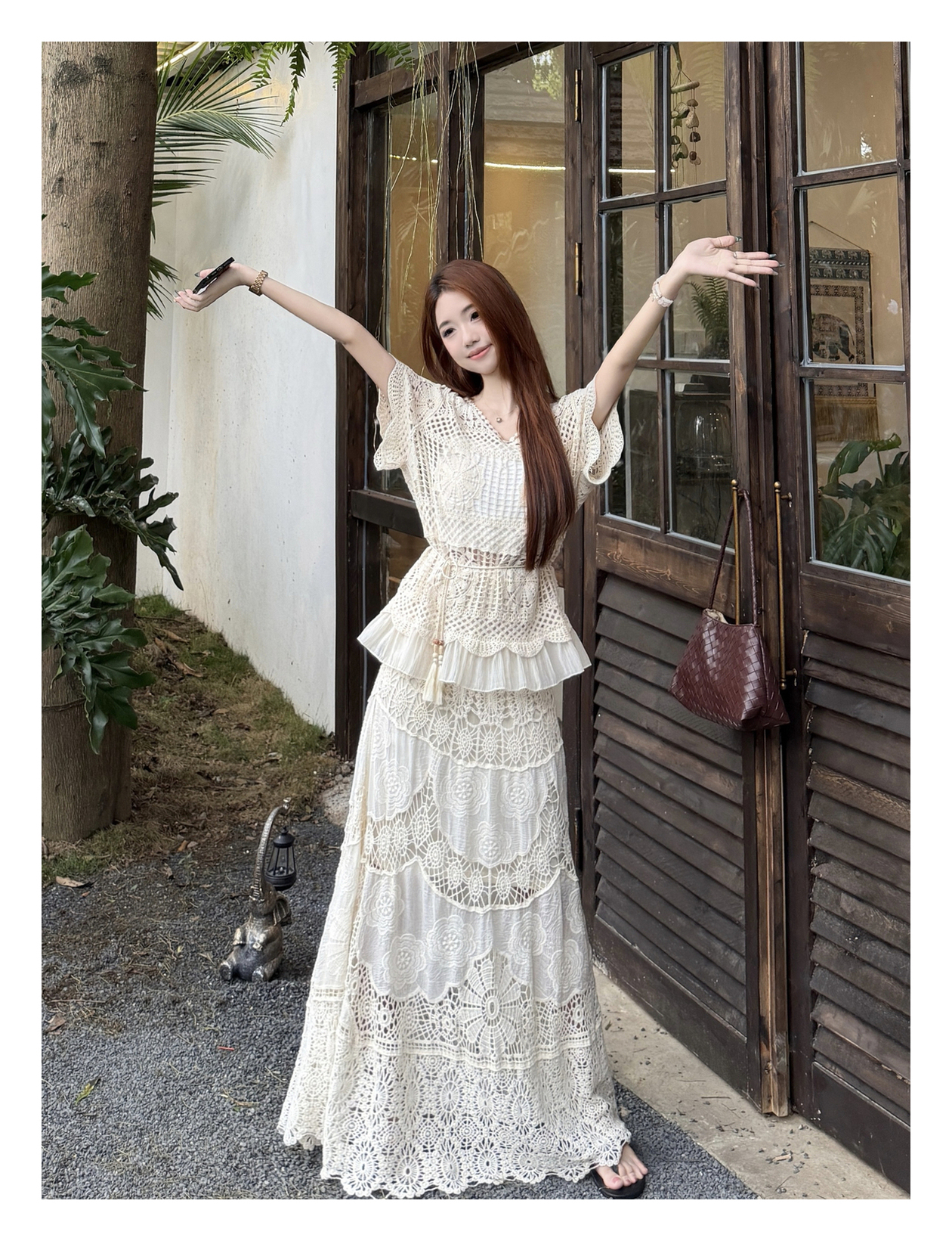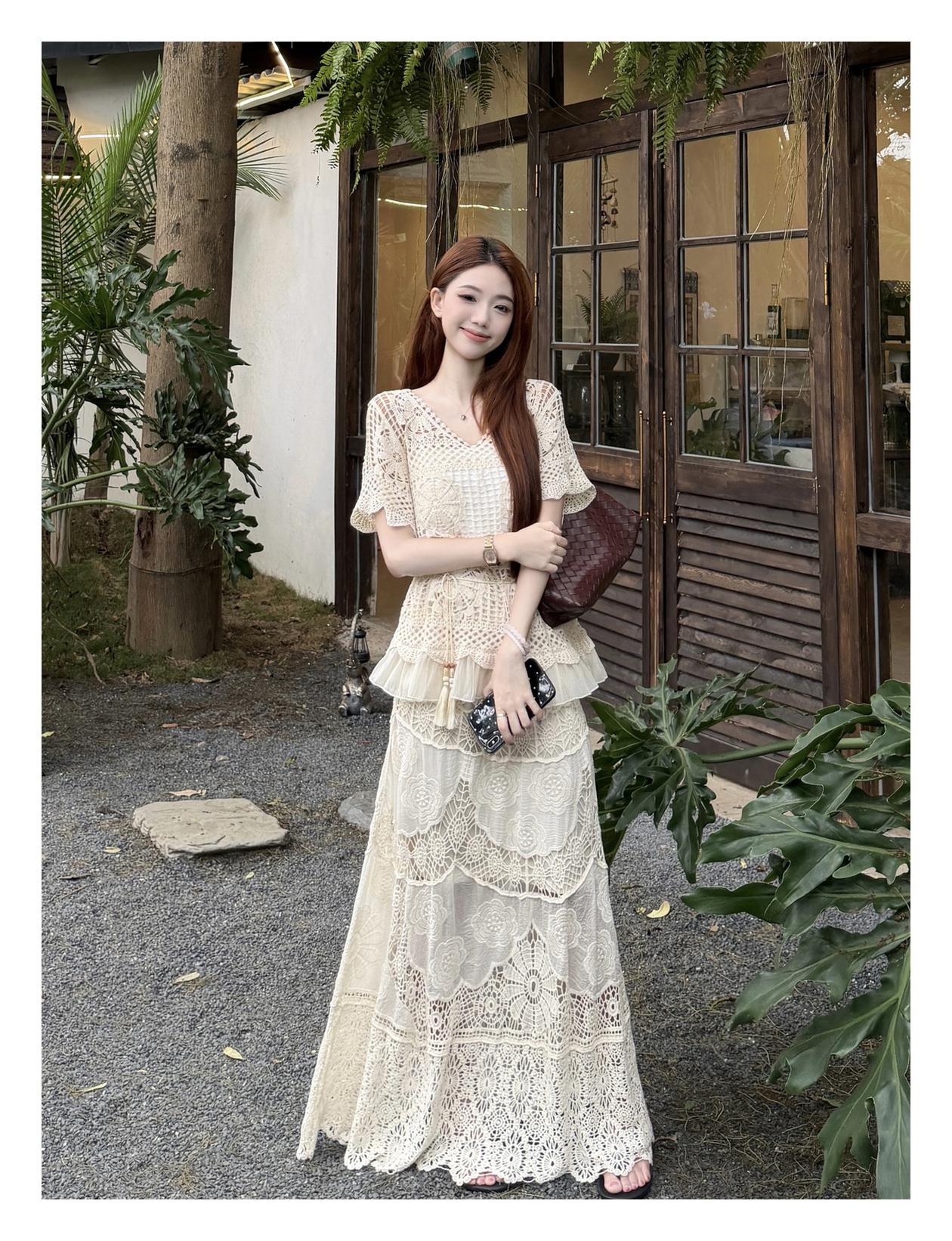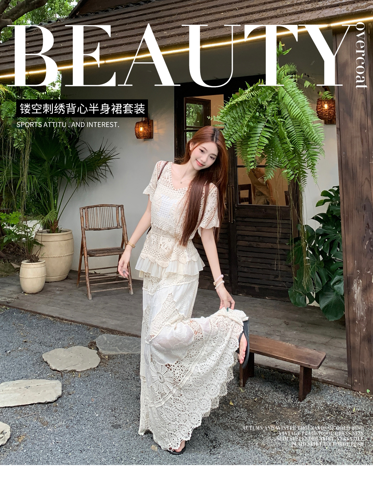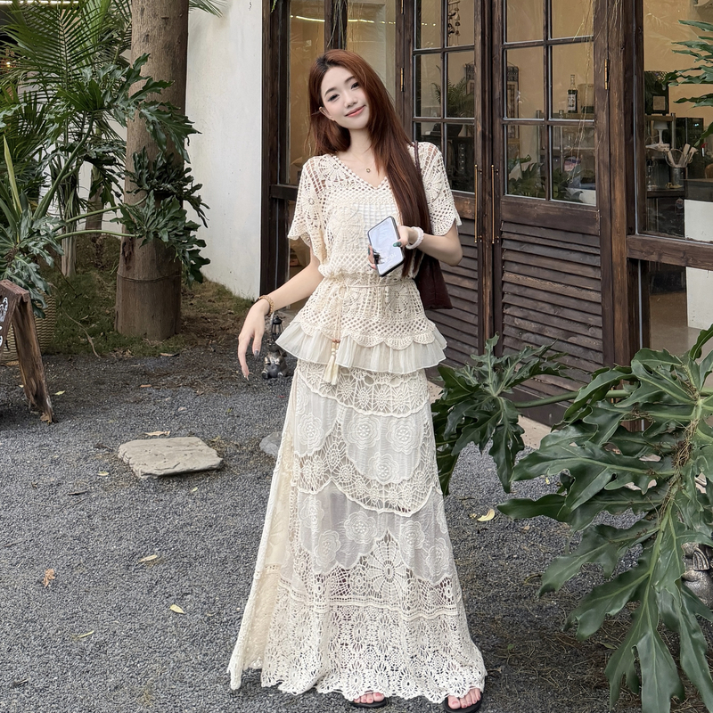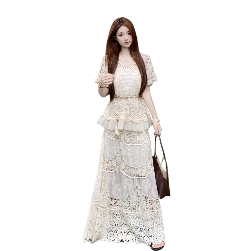 RY3898# 实拍~2026夏季新款大码套装钩花上衣+钩花半身裙两件套套装