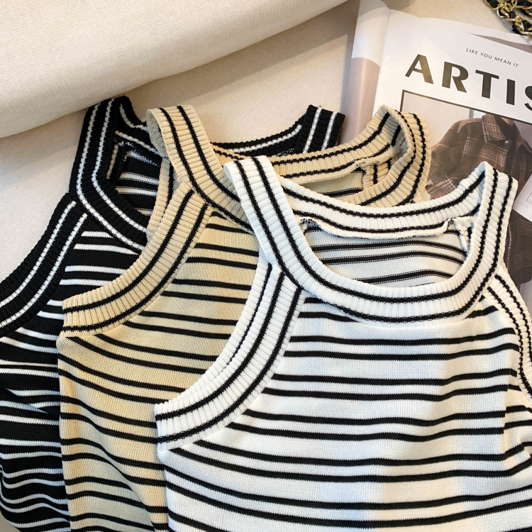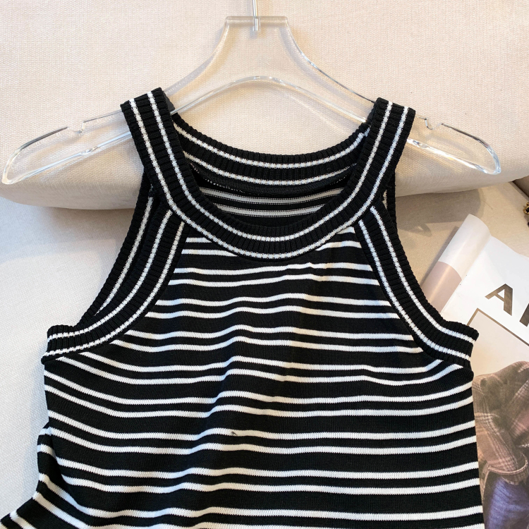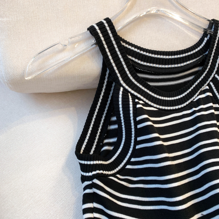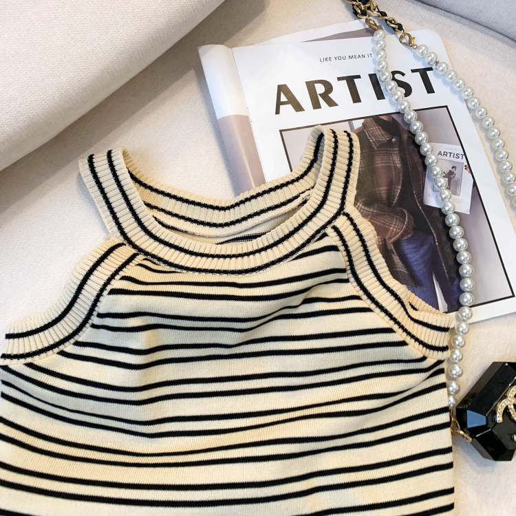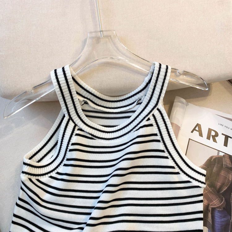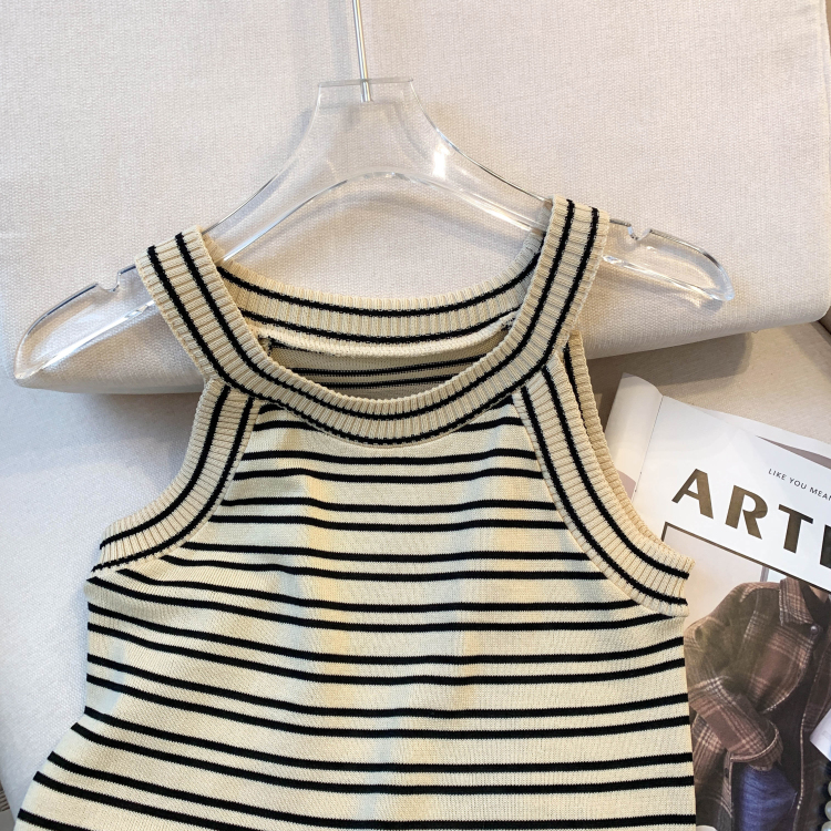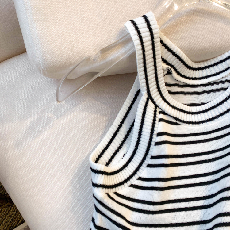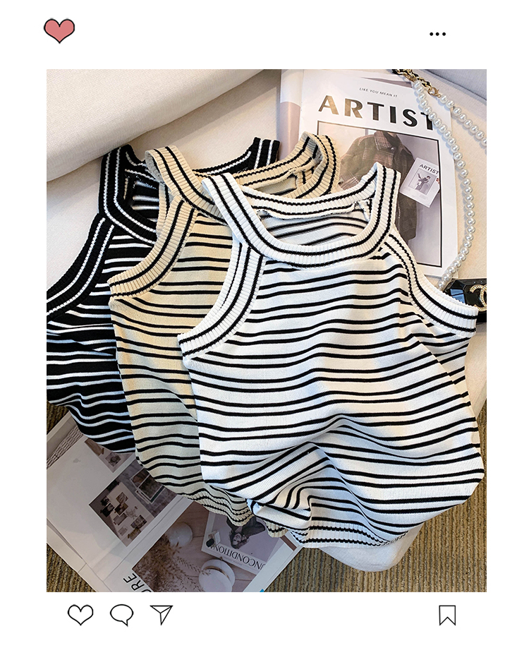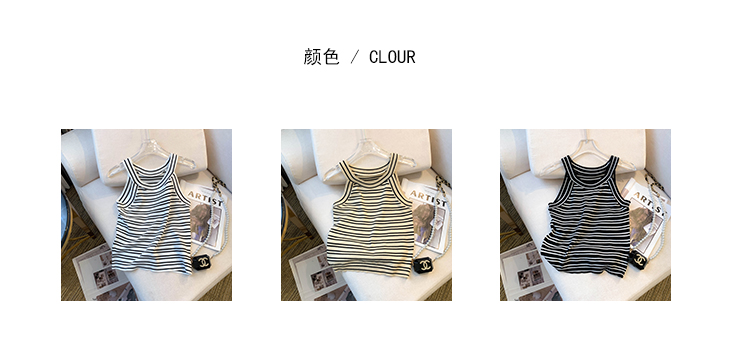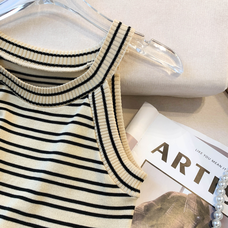 RY3905# 实拍 大货 2026夏季新款设计感条纹无袖T恤背心吊带针织冰丝女