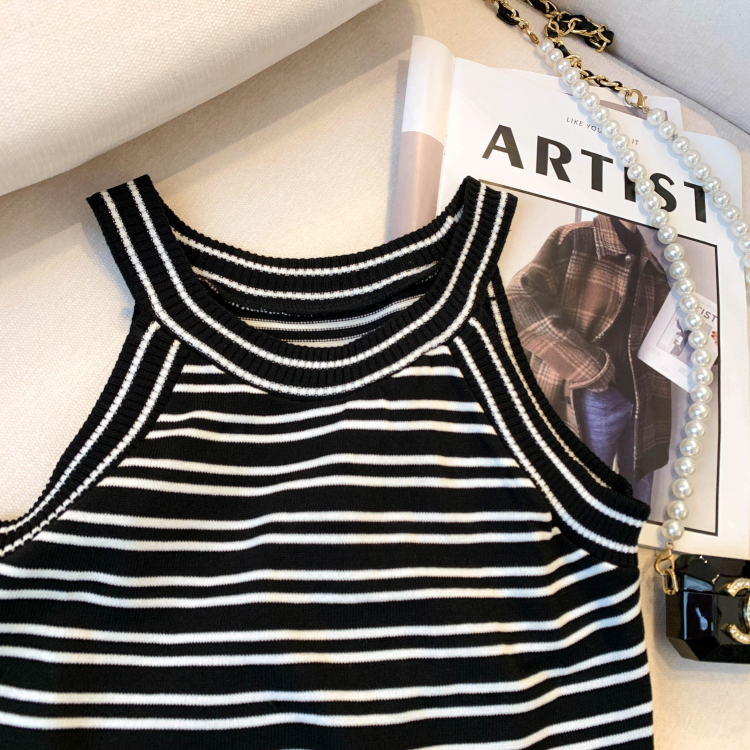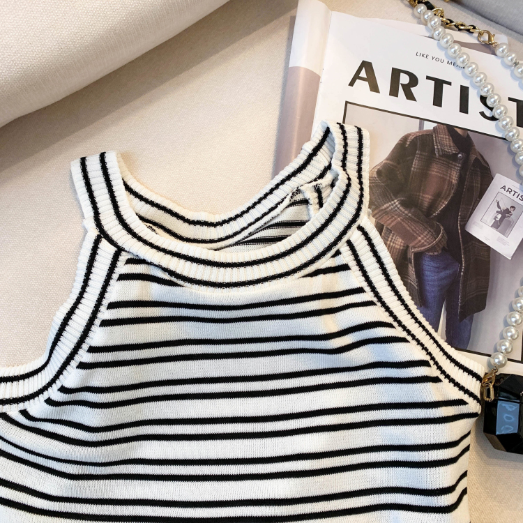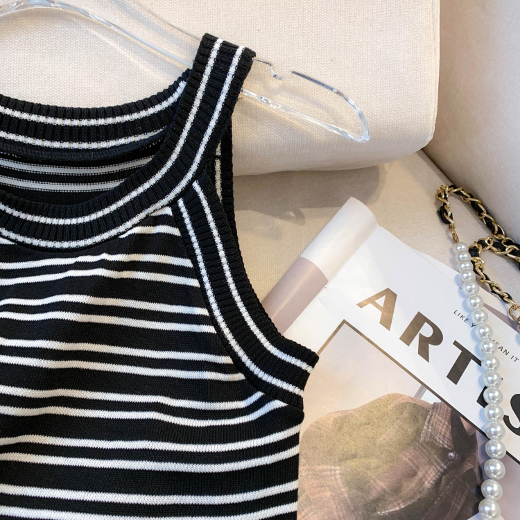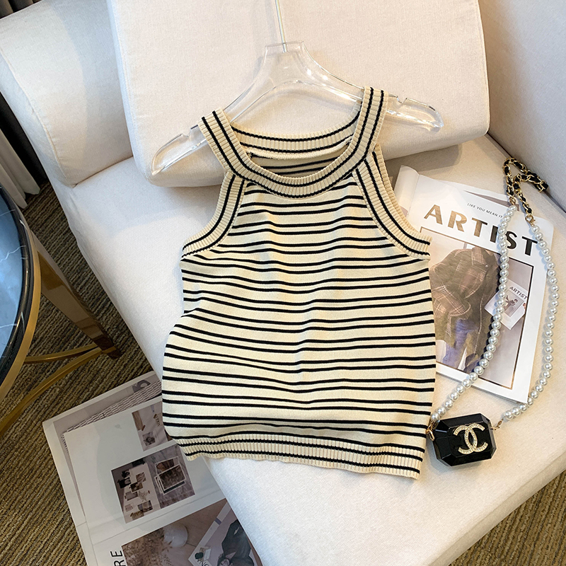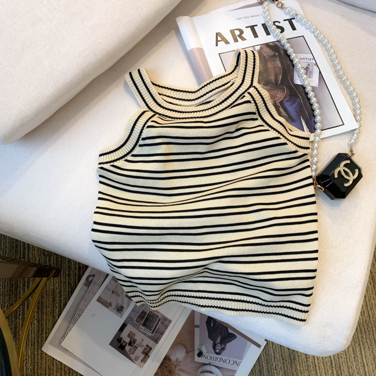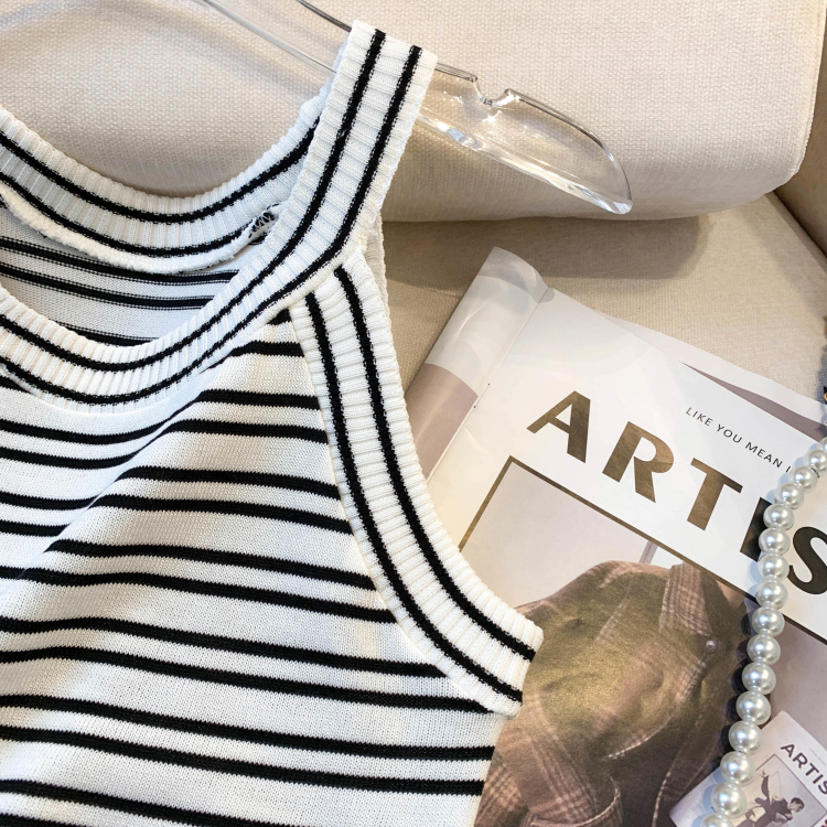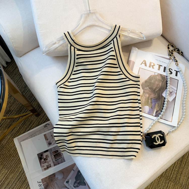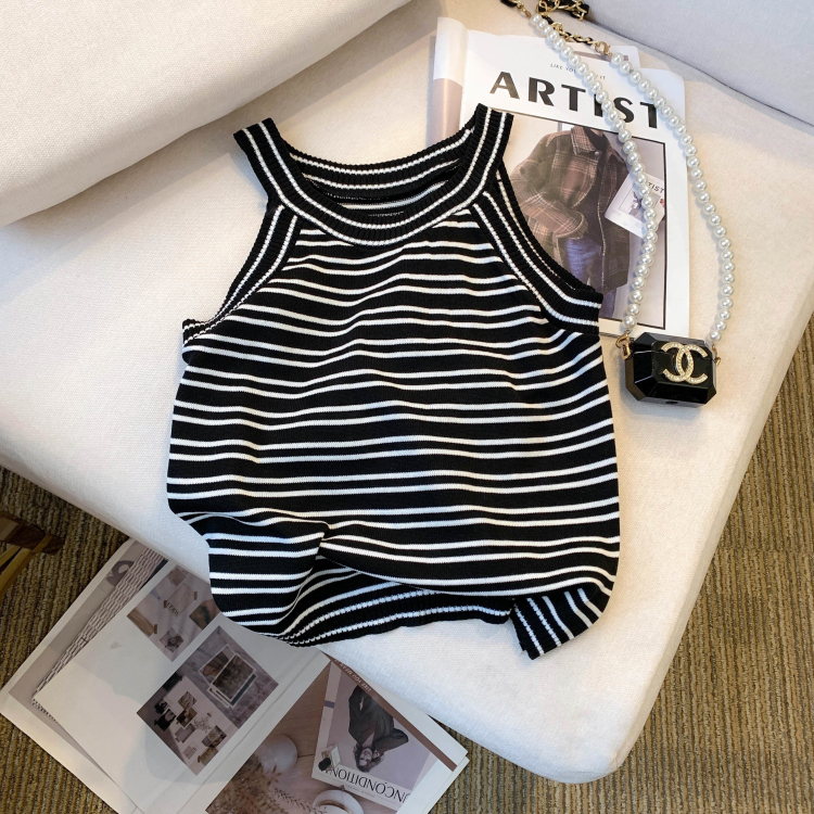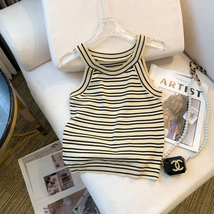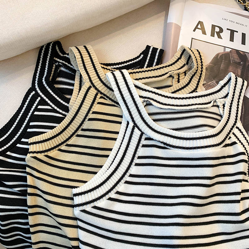 RY3905# 实拍 大货 2026夏季新款设计感条纹无袖T恤背心吊带针织冰丝女
