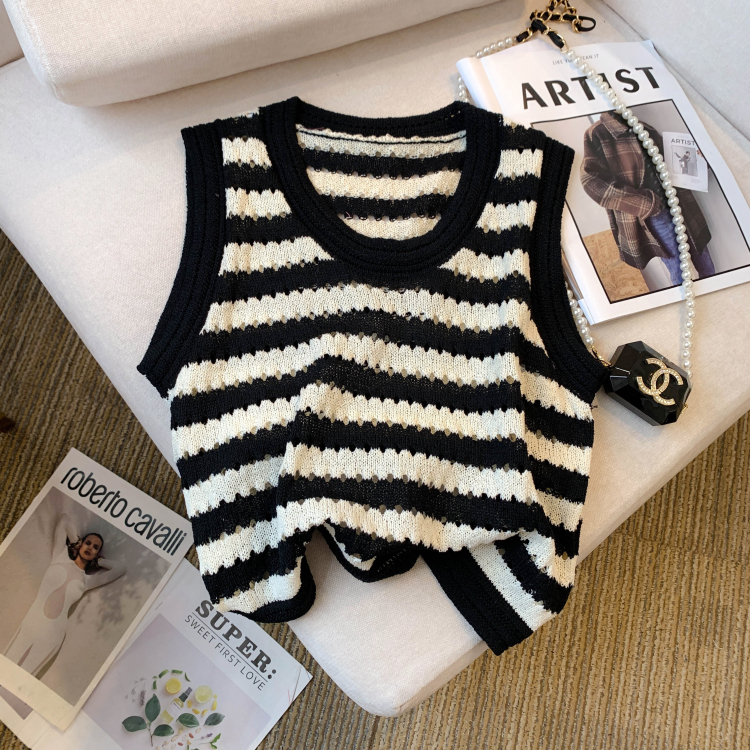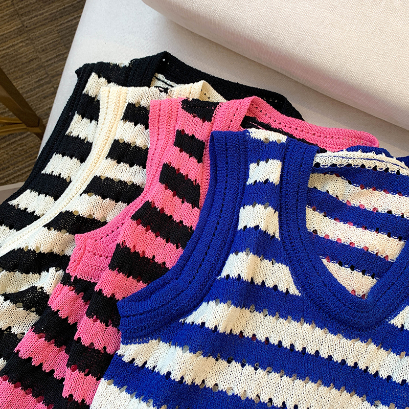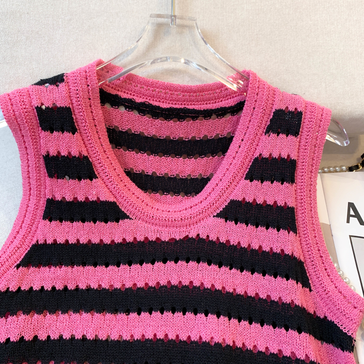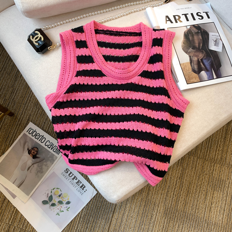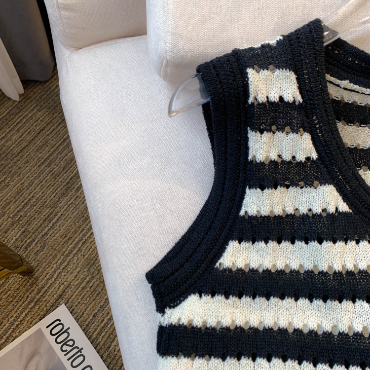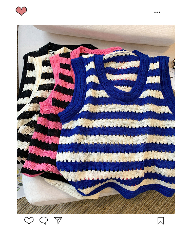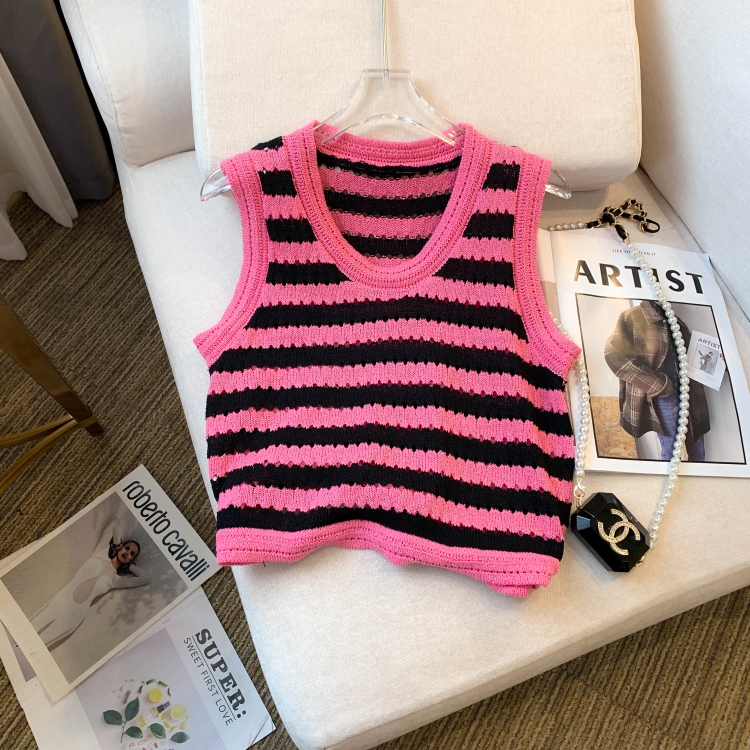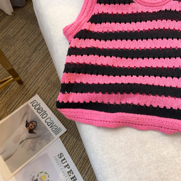 RY3906# 实拍 大货 2026夏季新款设计感条纹背心吊带无袖T恤冰丝针织女
