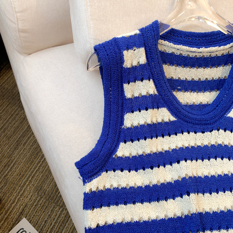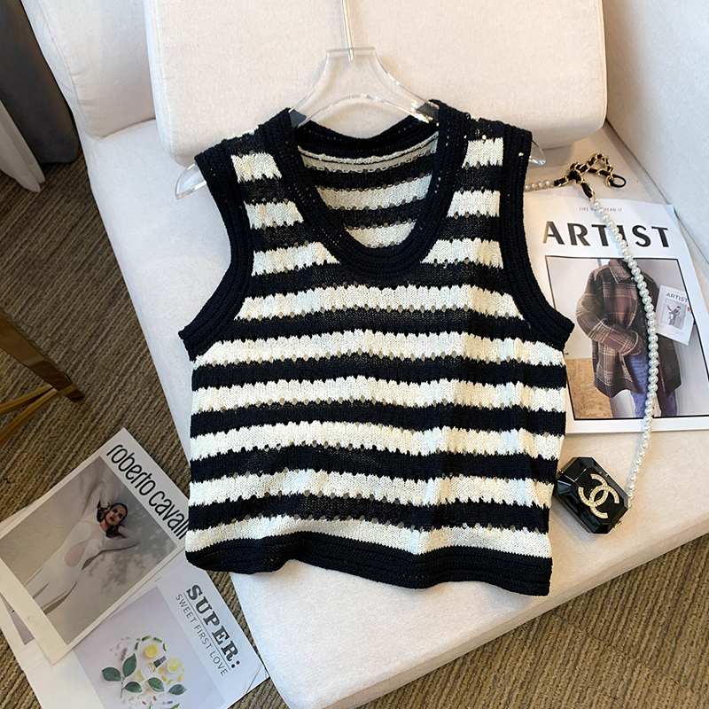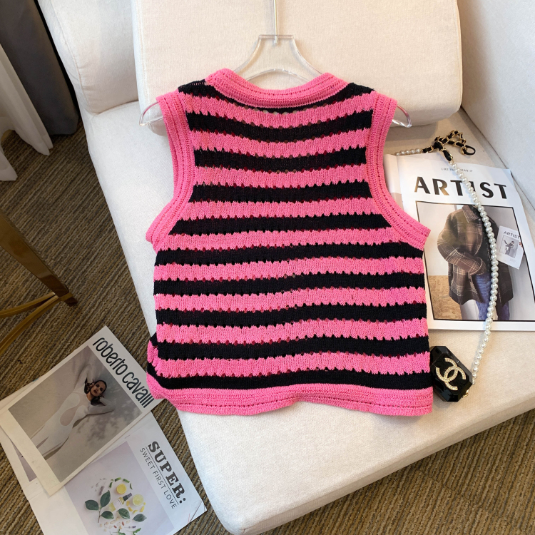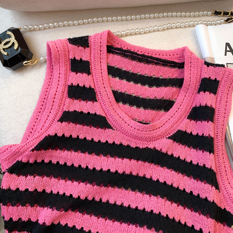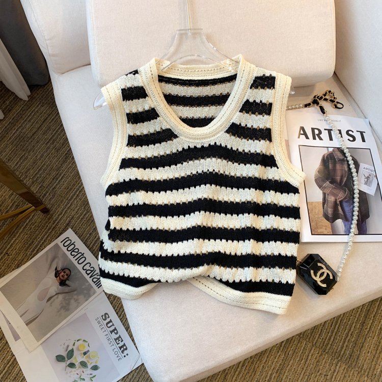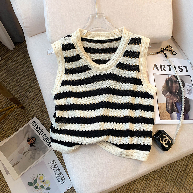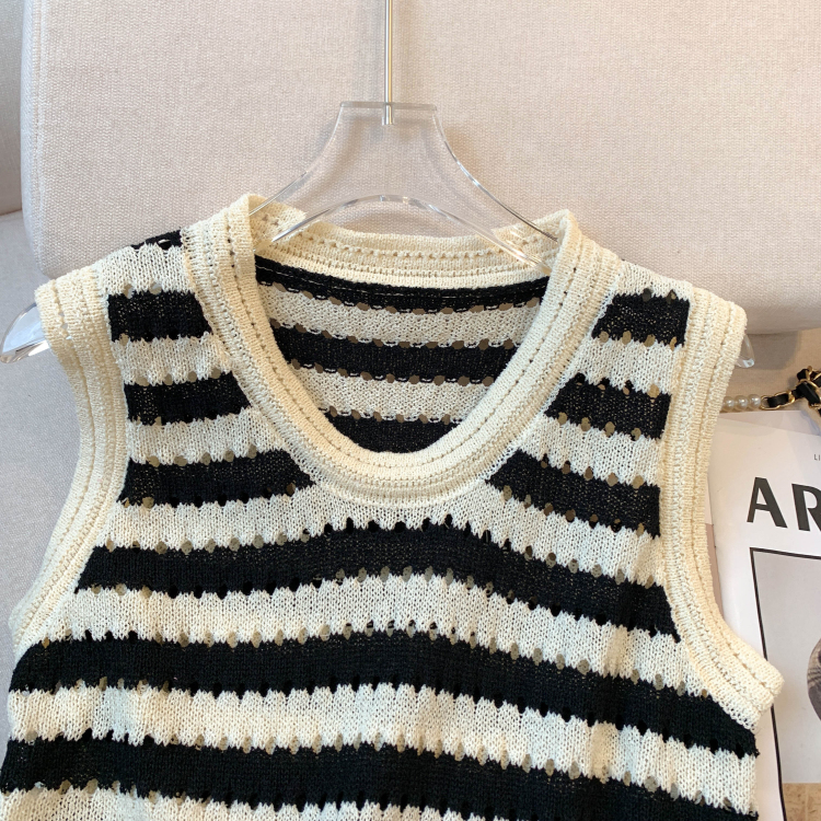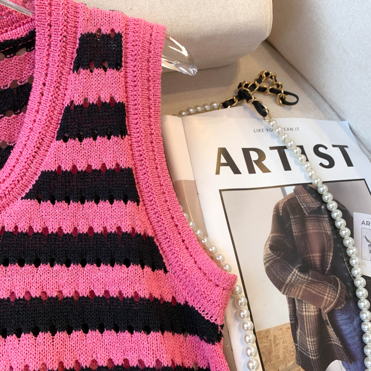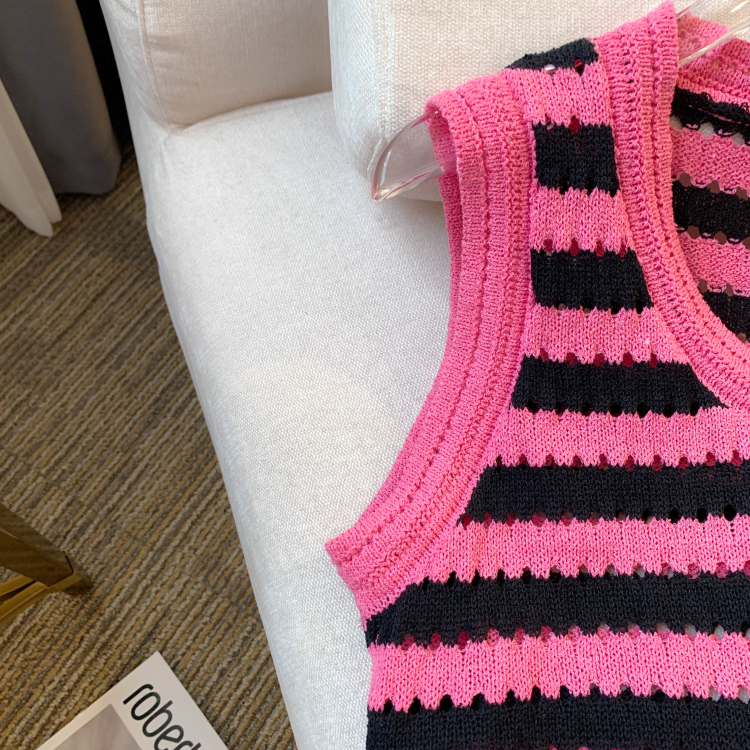 RY3906# 实拍 大货 2026夏季新款设计感条纹背心吊带无袖T恤冰丝针织女