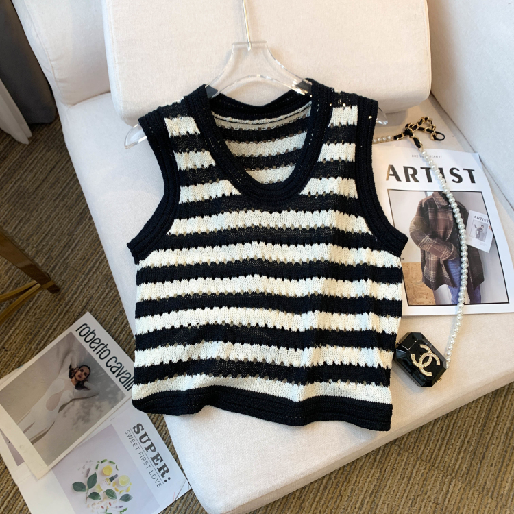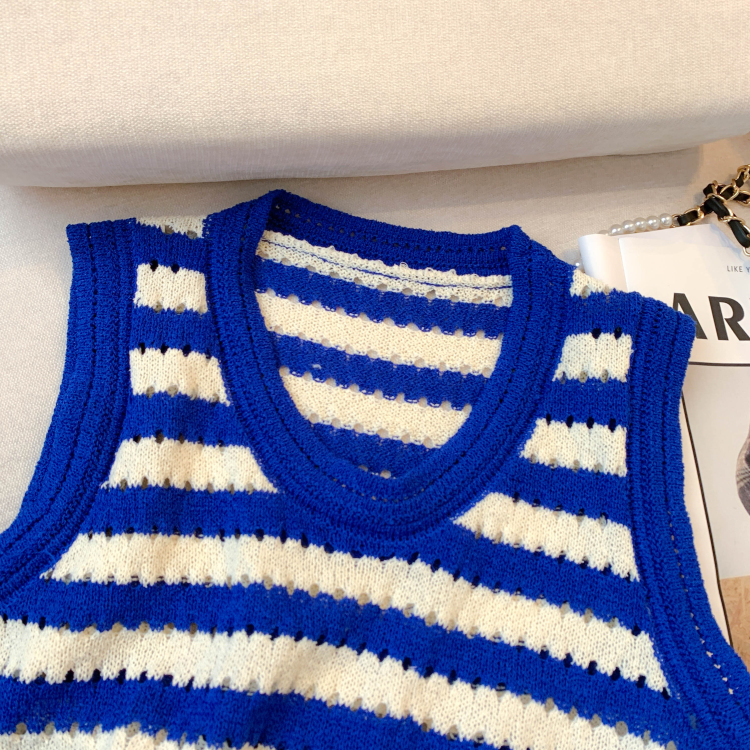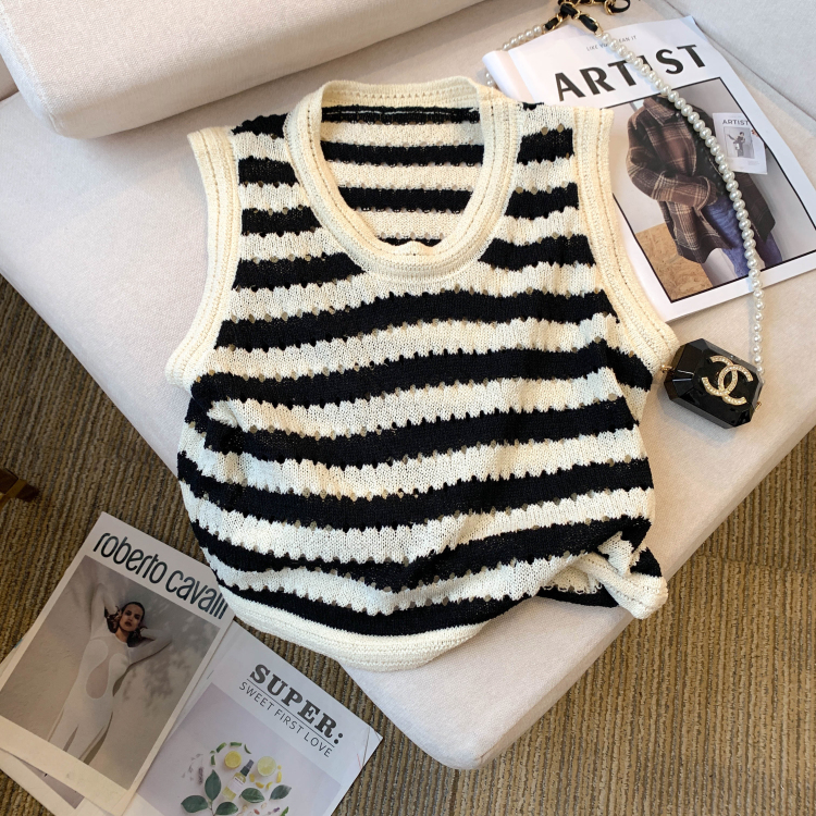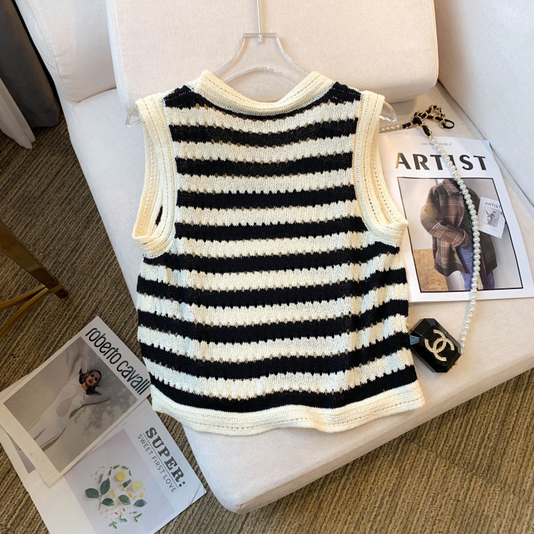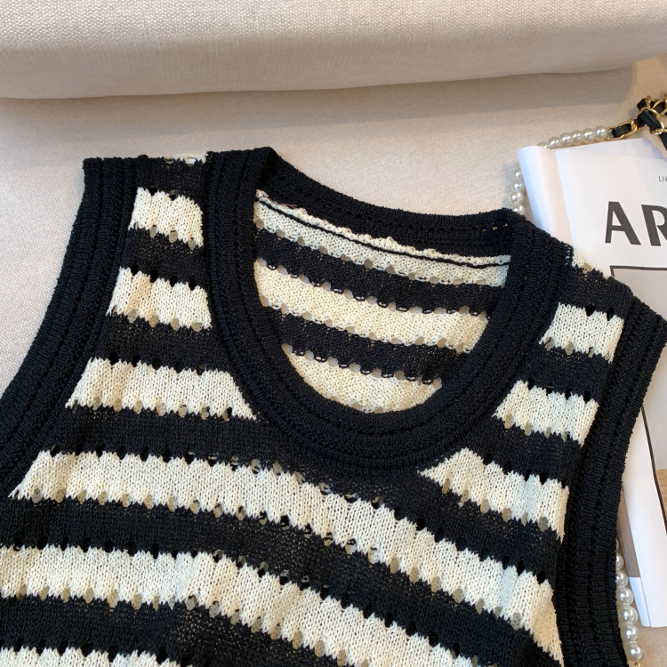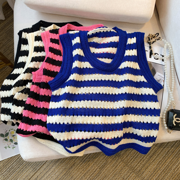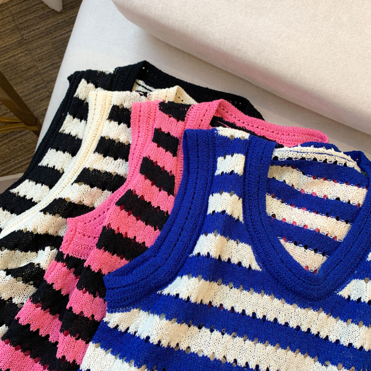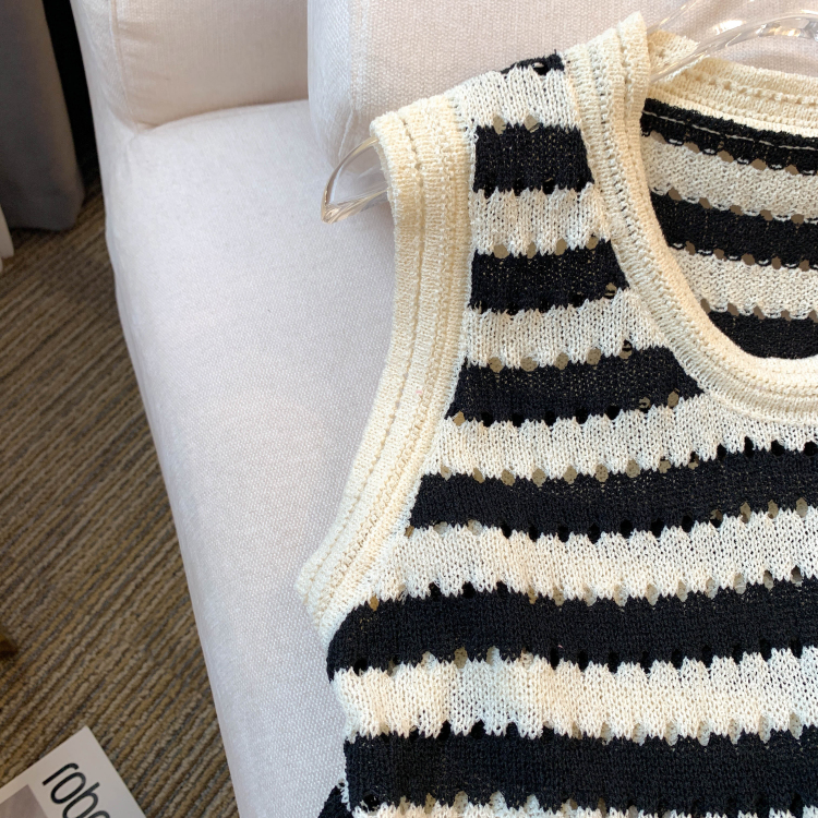 RY3906# 实拍 大货 2026夏季新款设计感条纹背心吊带无袖T恤冰丝针织女