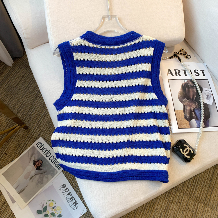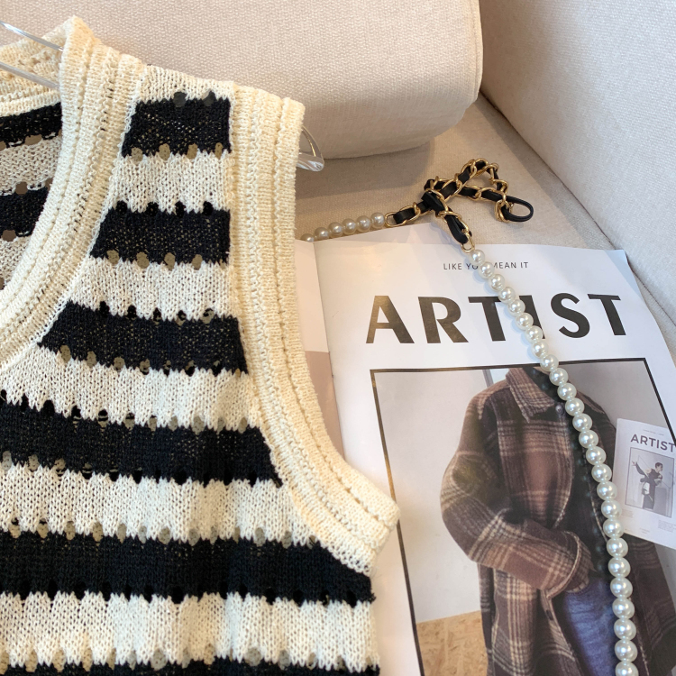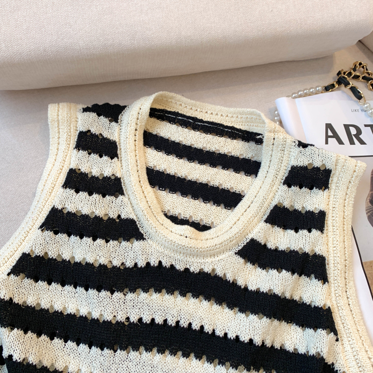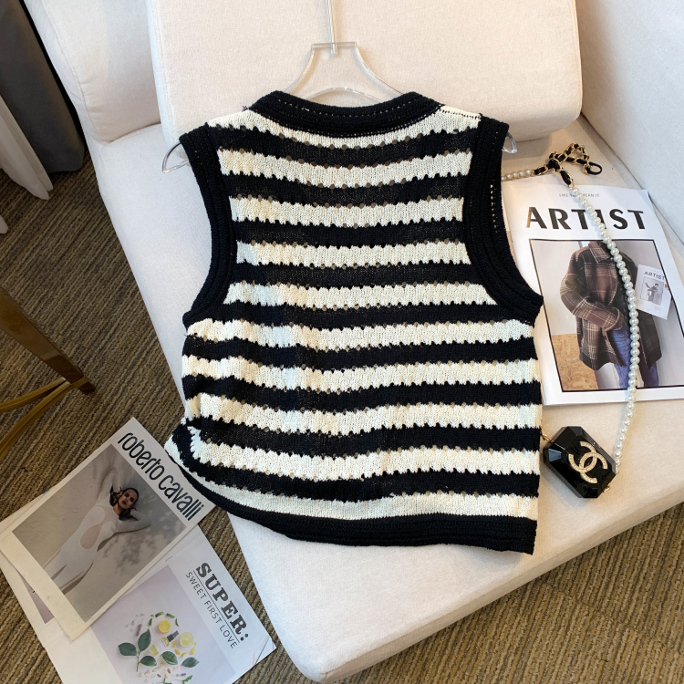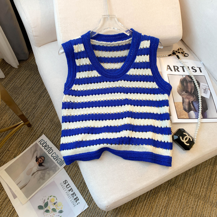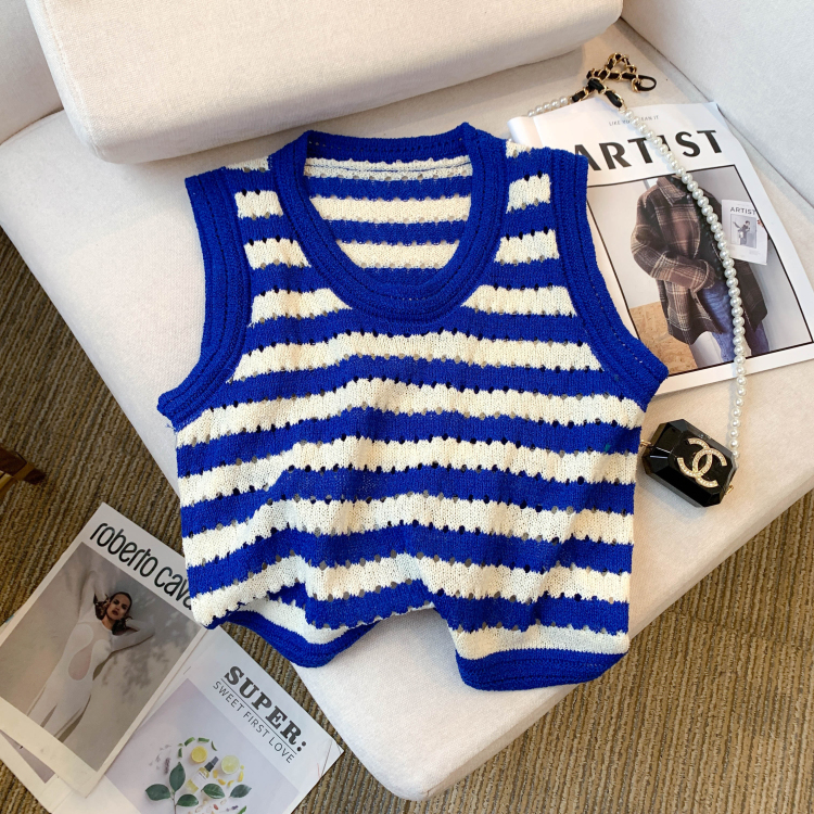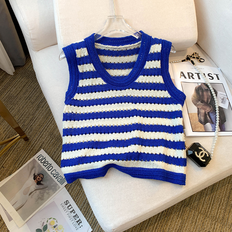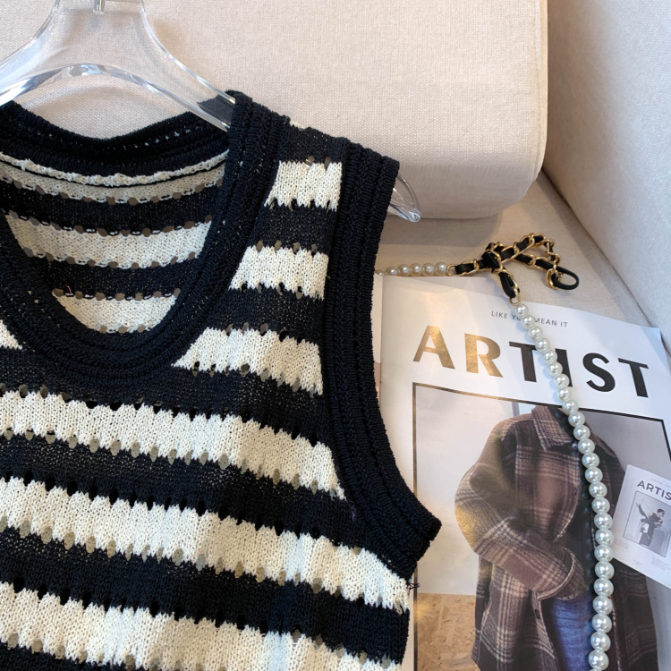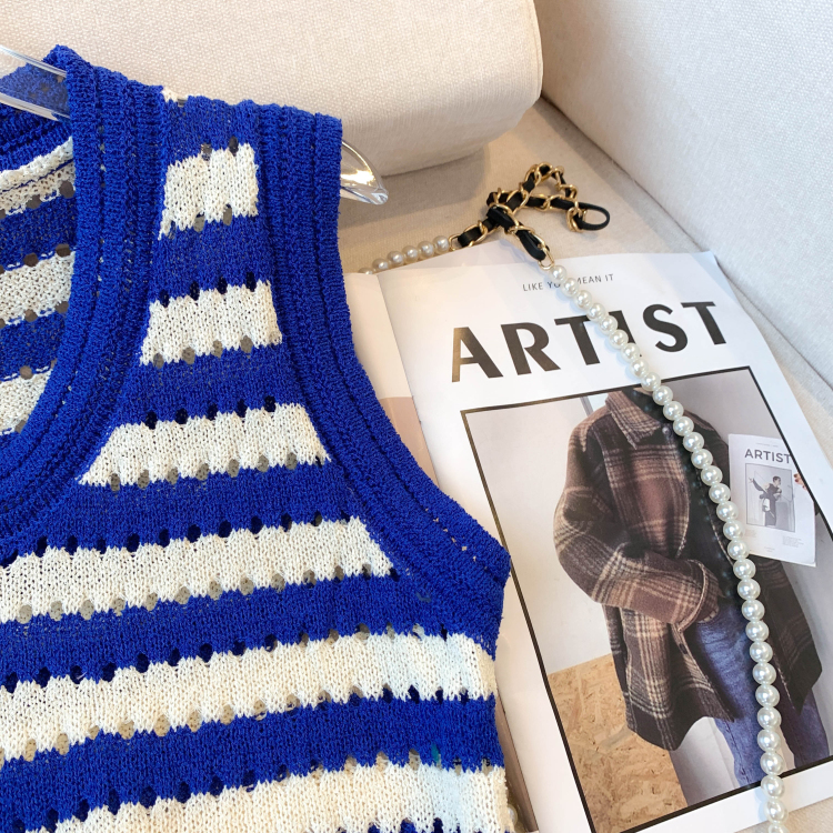 RY3906# 实拍 大货 2026夏季新款设计感条纹背心吊带无袖T恤冰丝针织女
