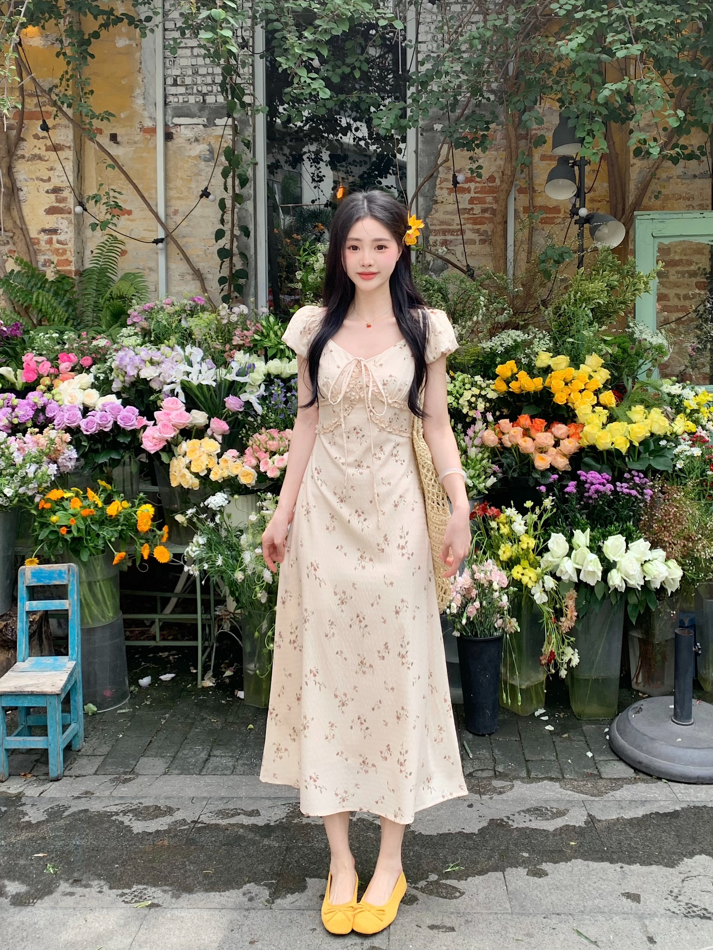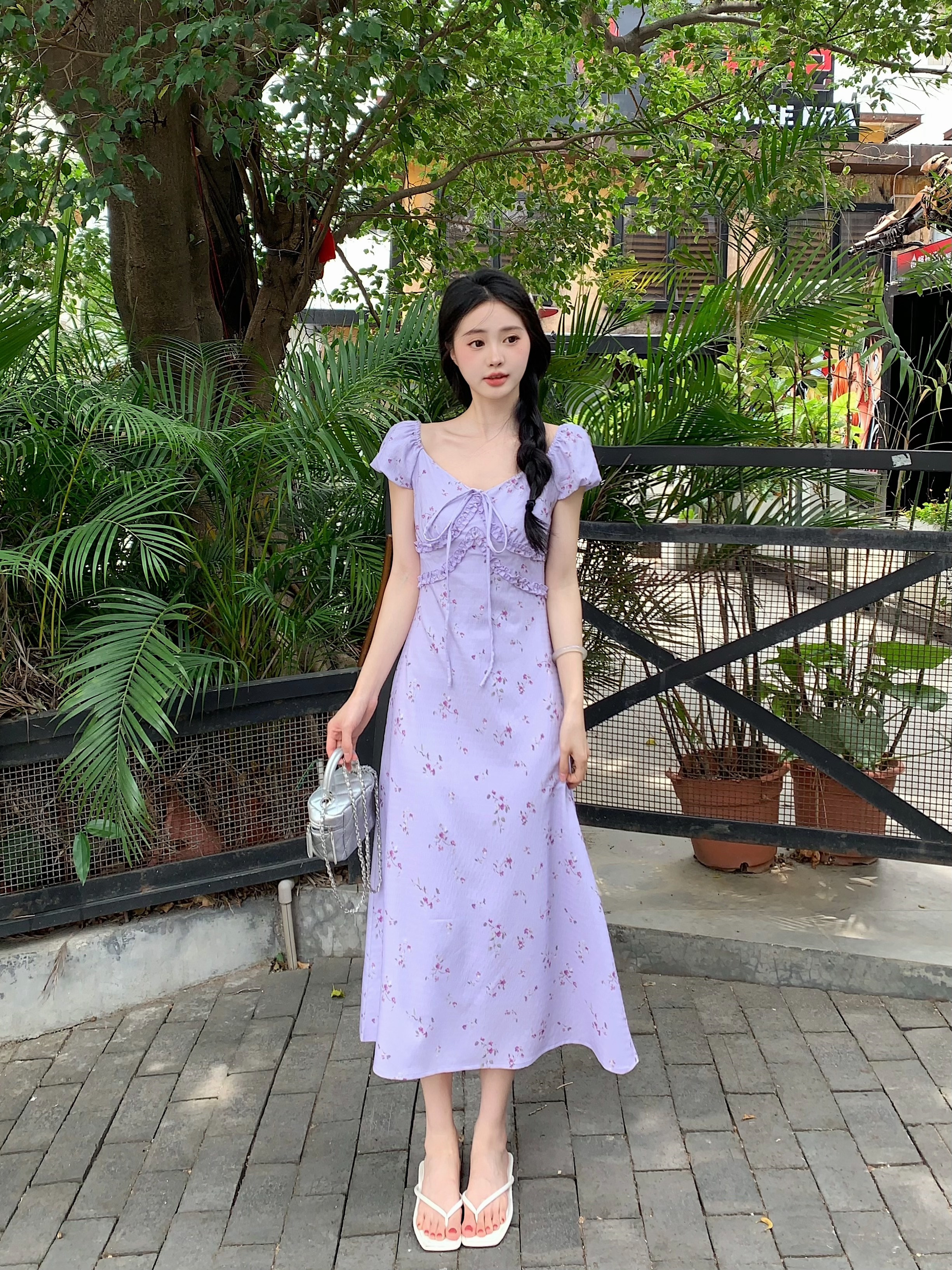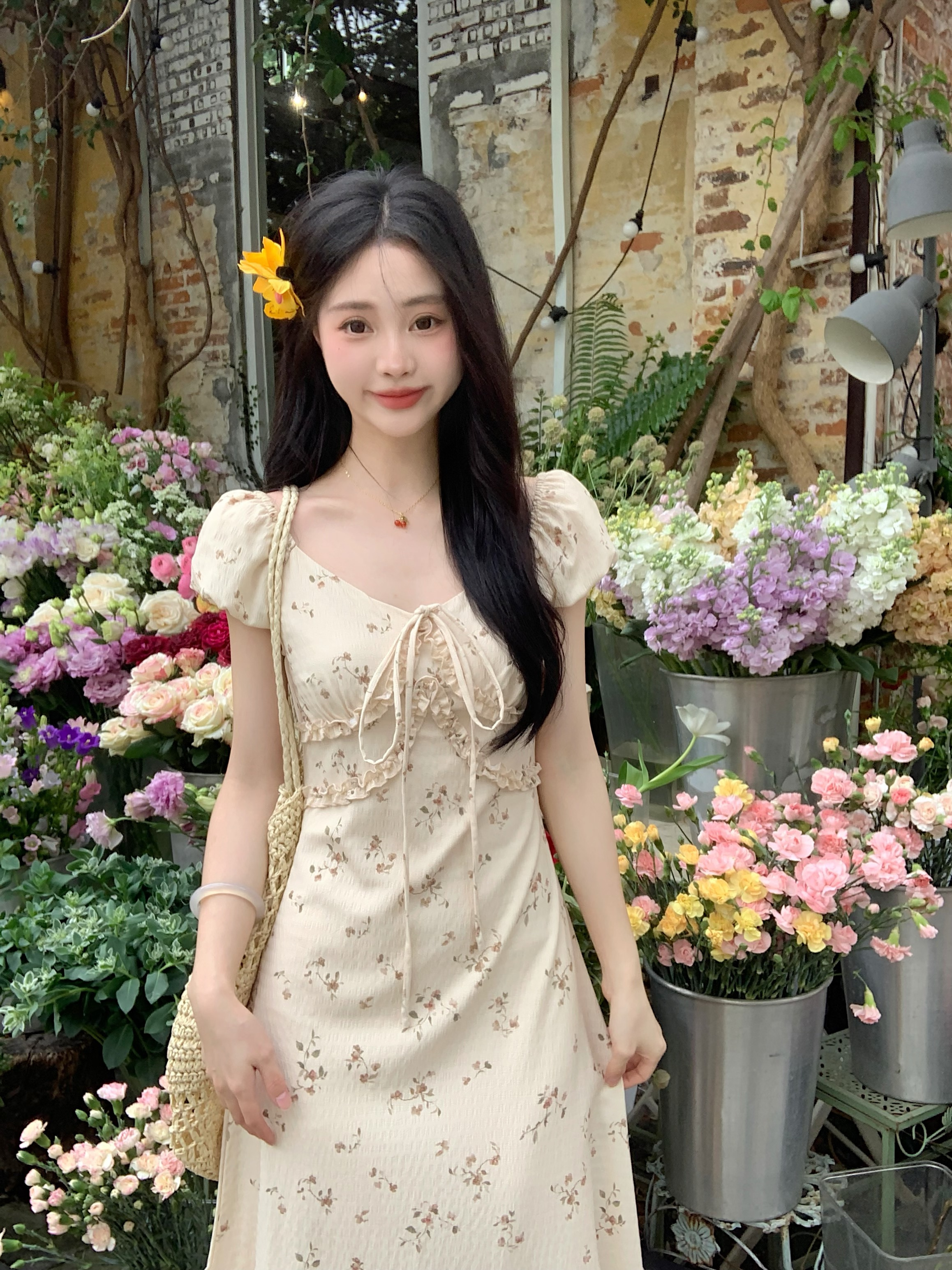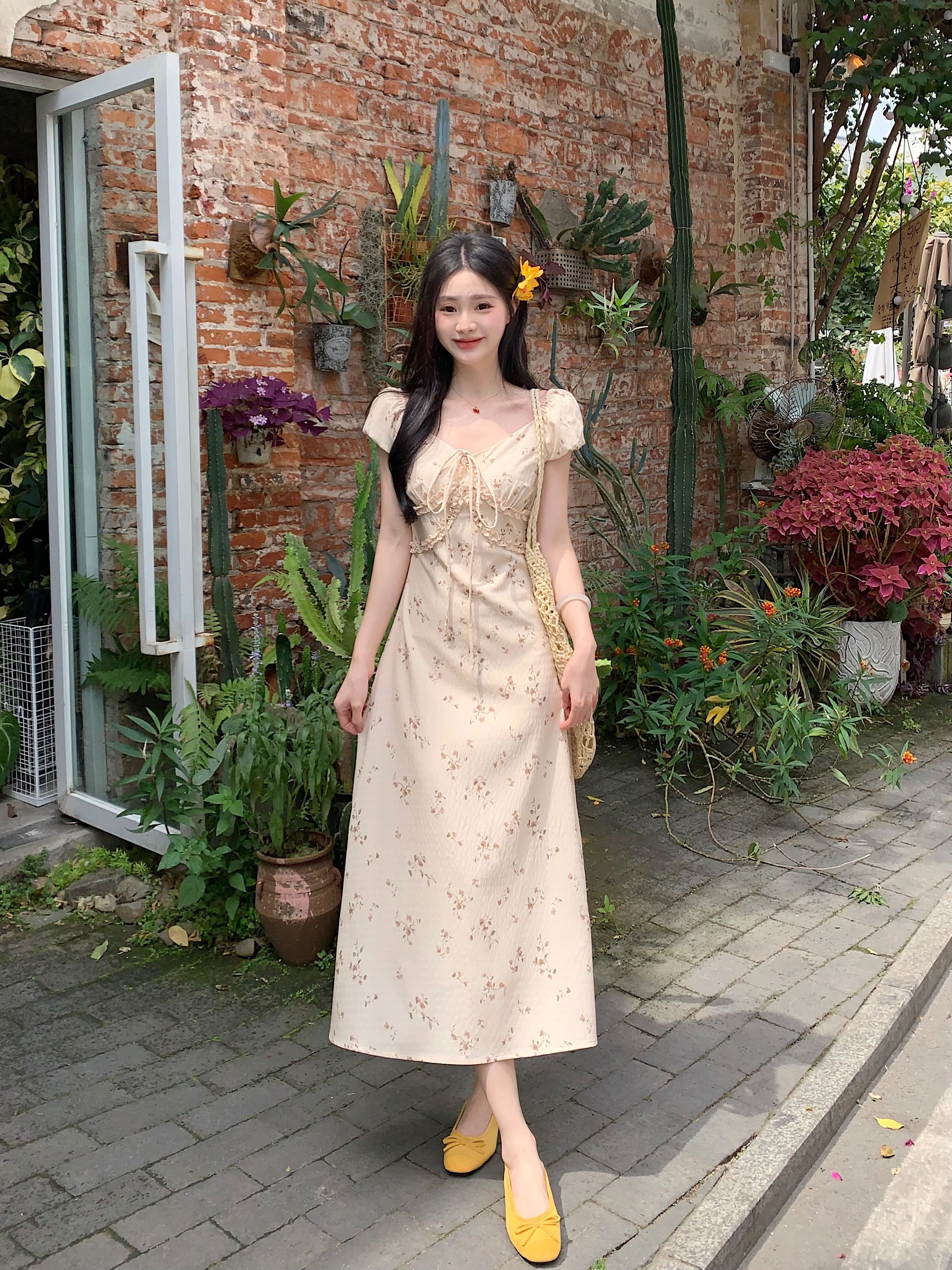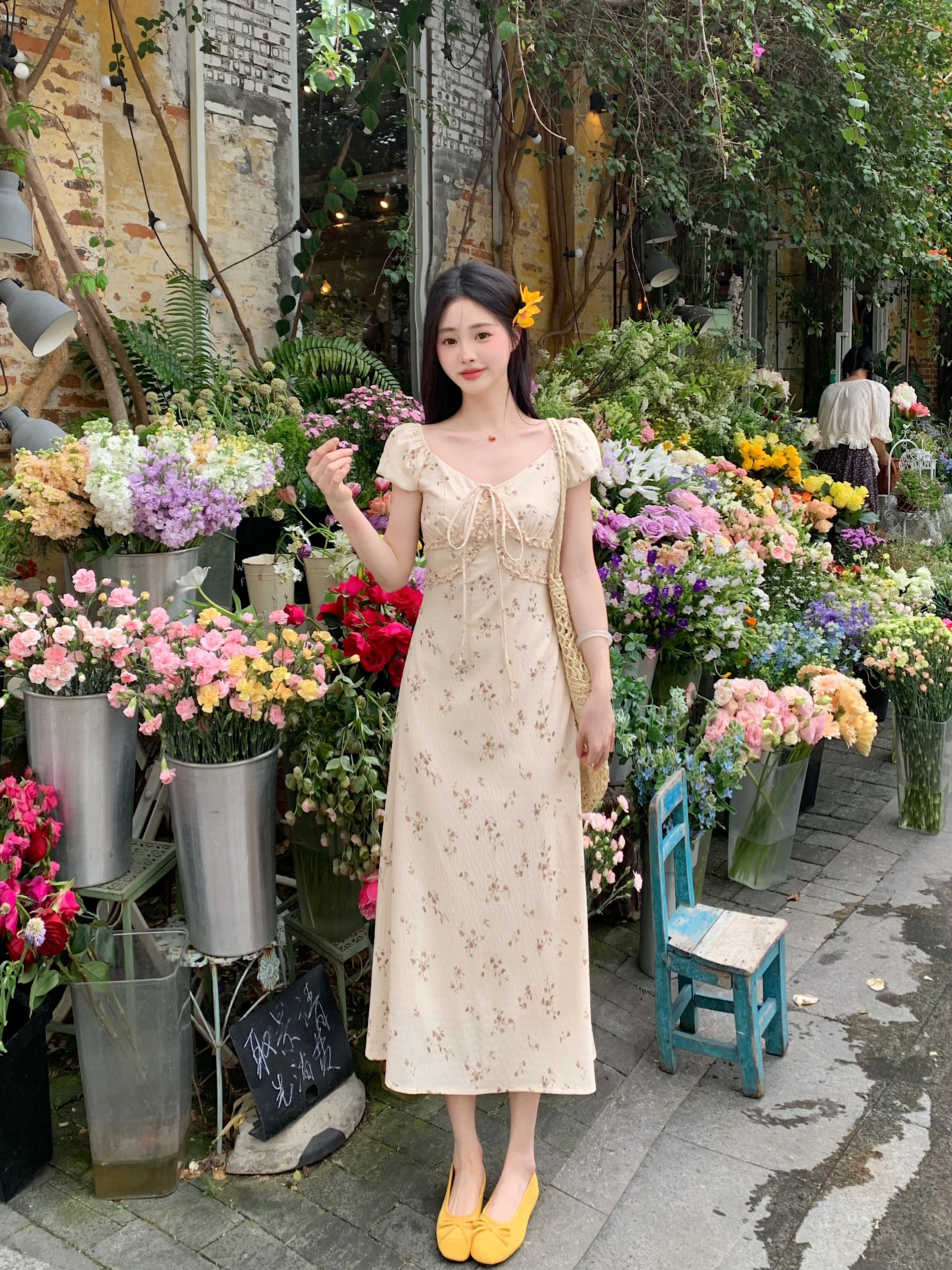 RY3914# 大码法式绝美V领碎花连衣裙女2026夏季气质收腰长裙茶歇裙度假裙