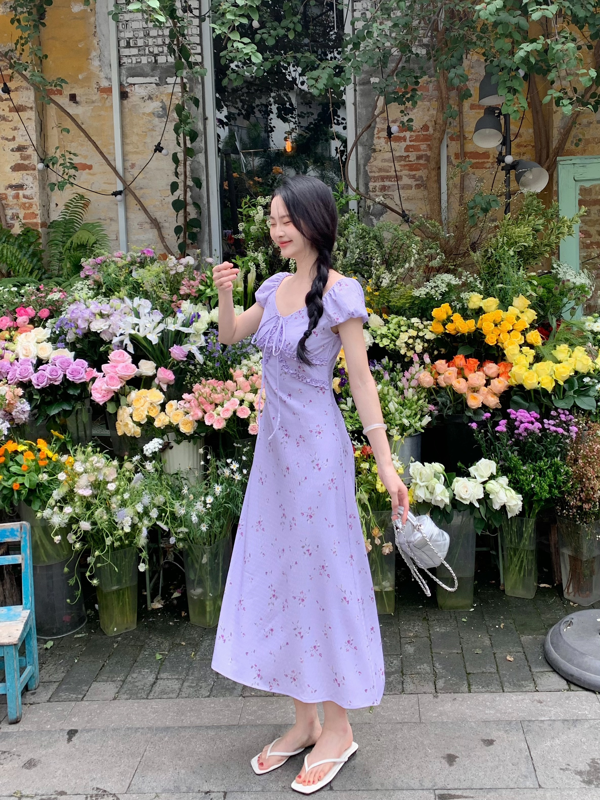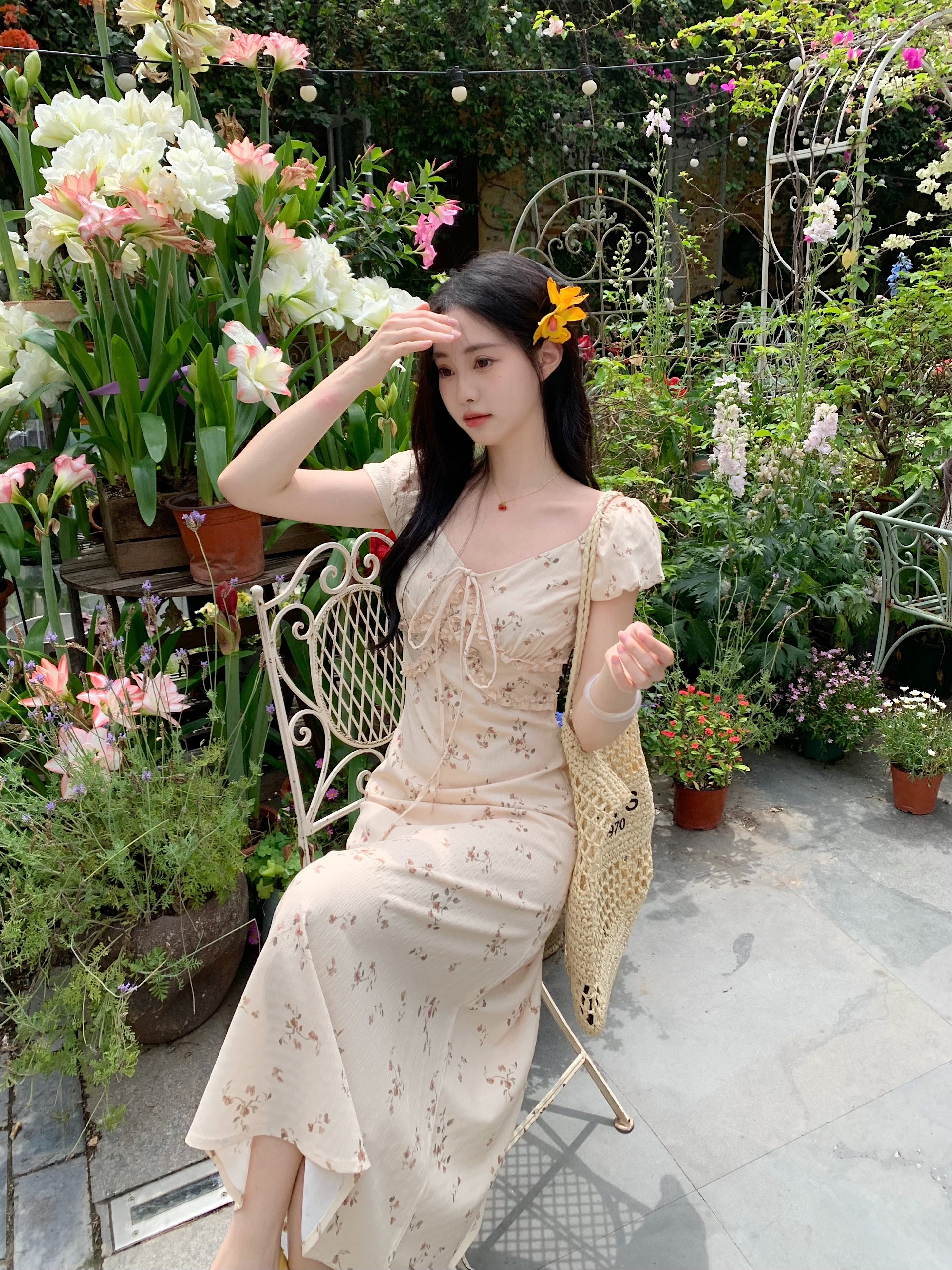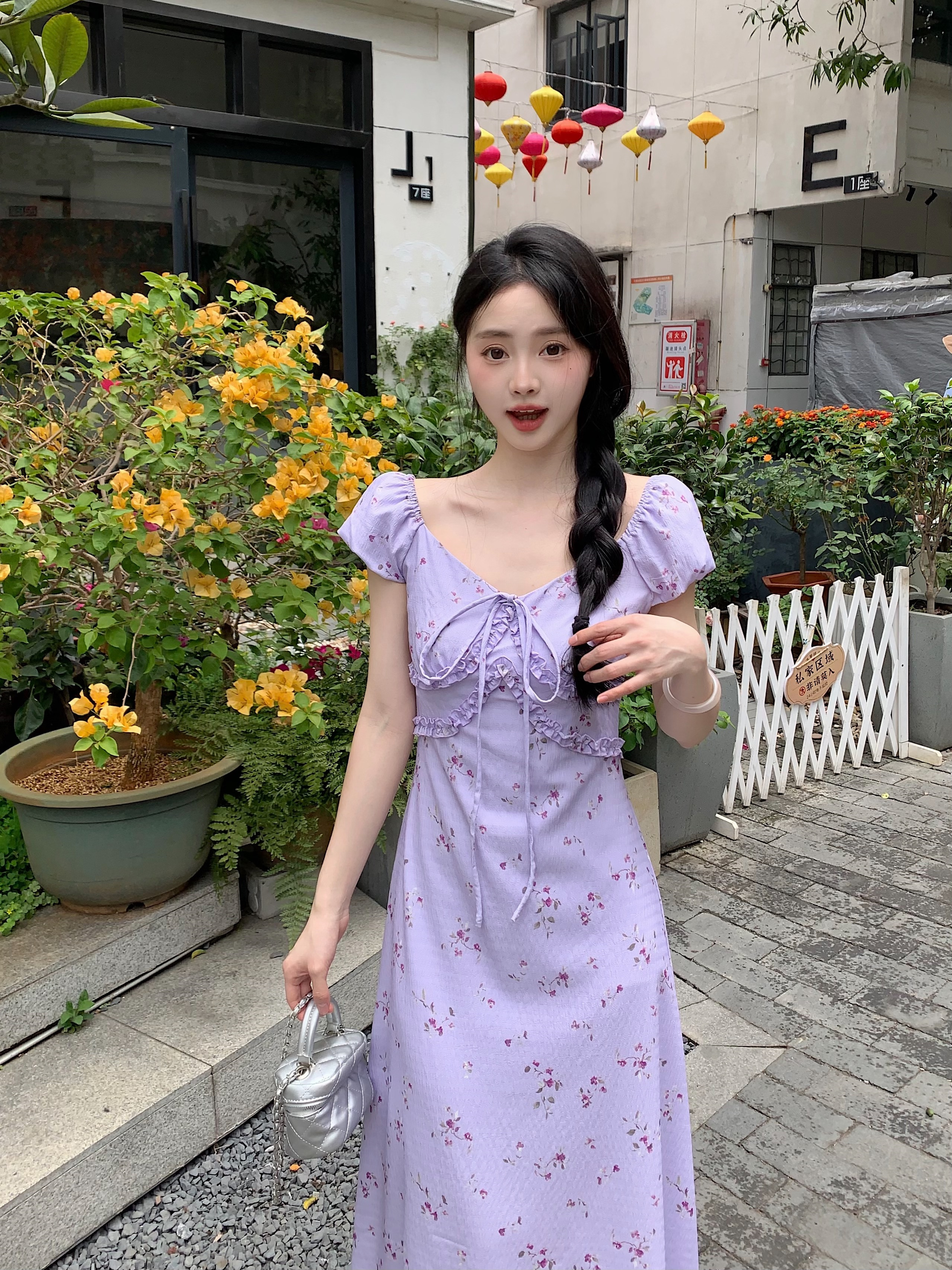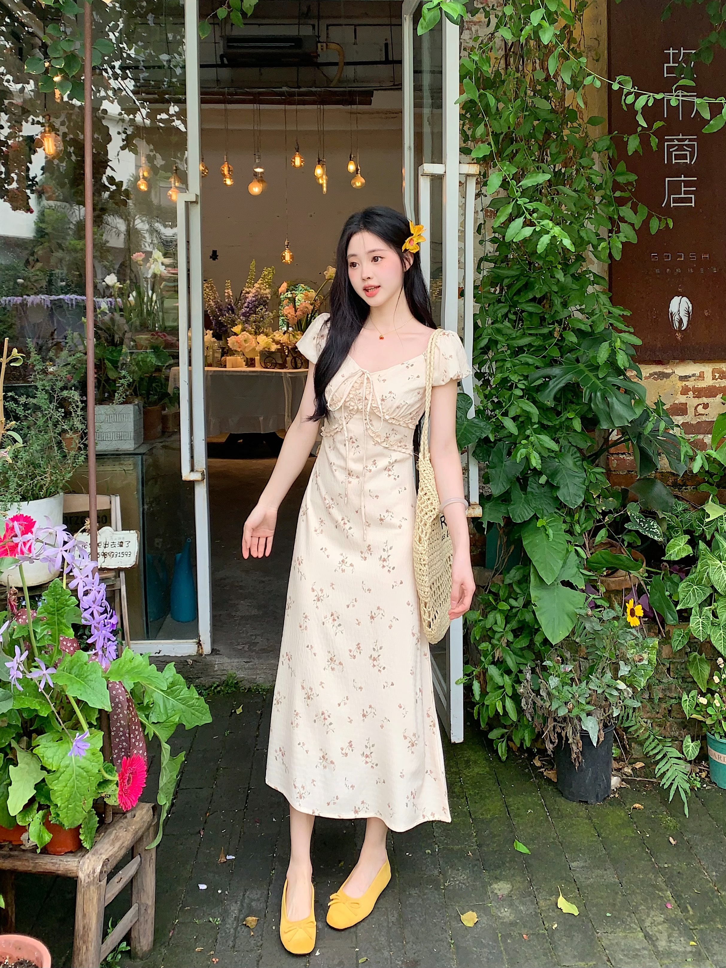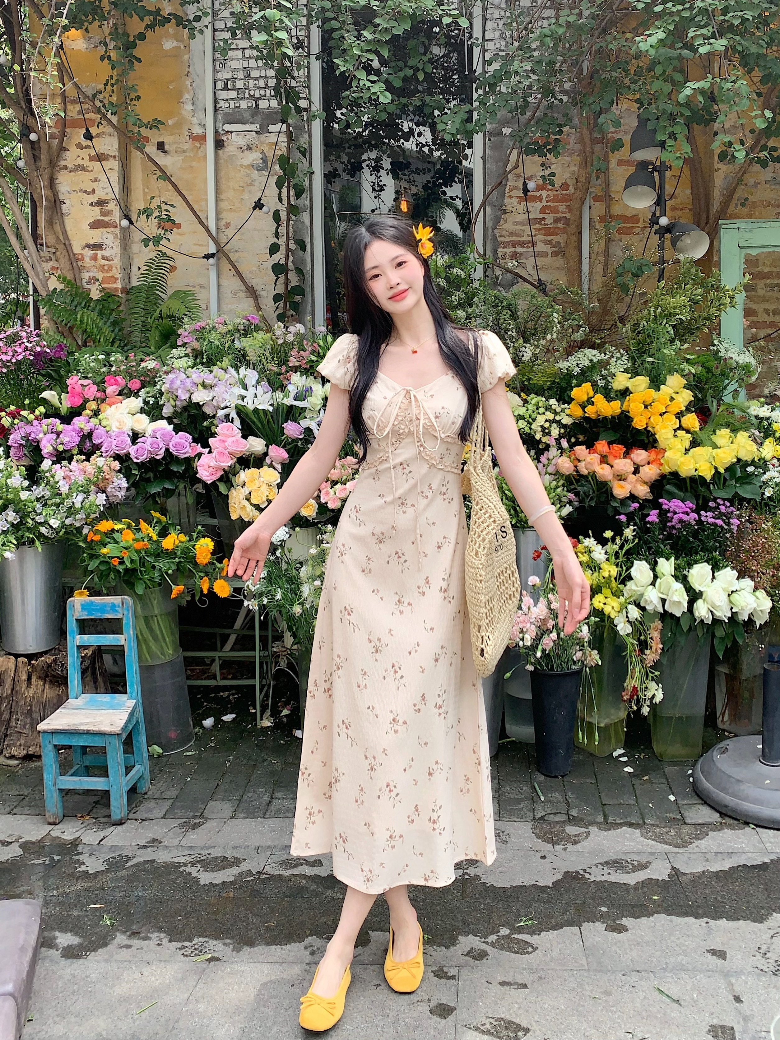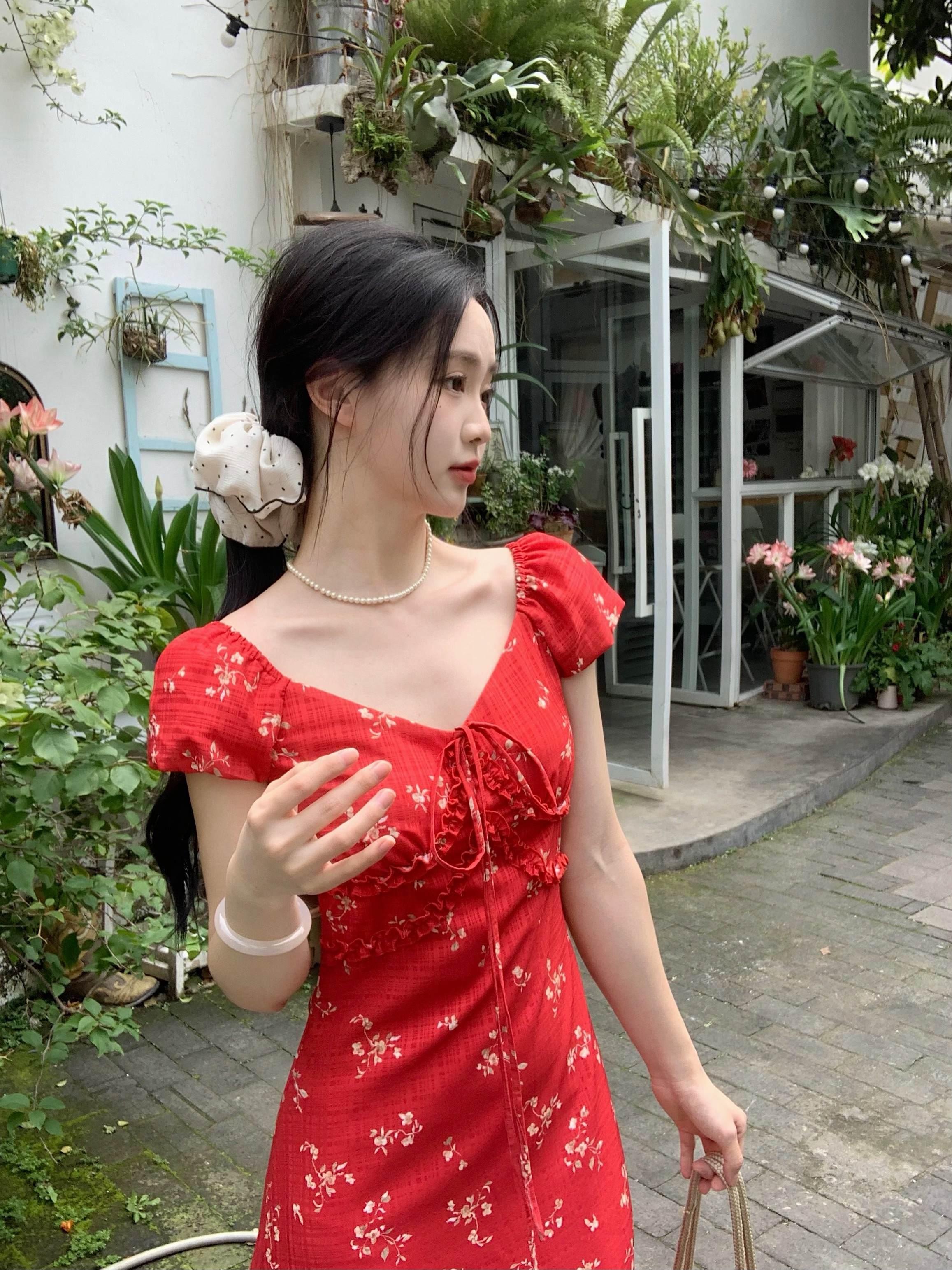 RY3914# 大码法式绝美V领碎花连衣裙女2026夏季气质收腰长裙茶歇裙度假裙