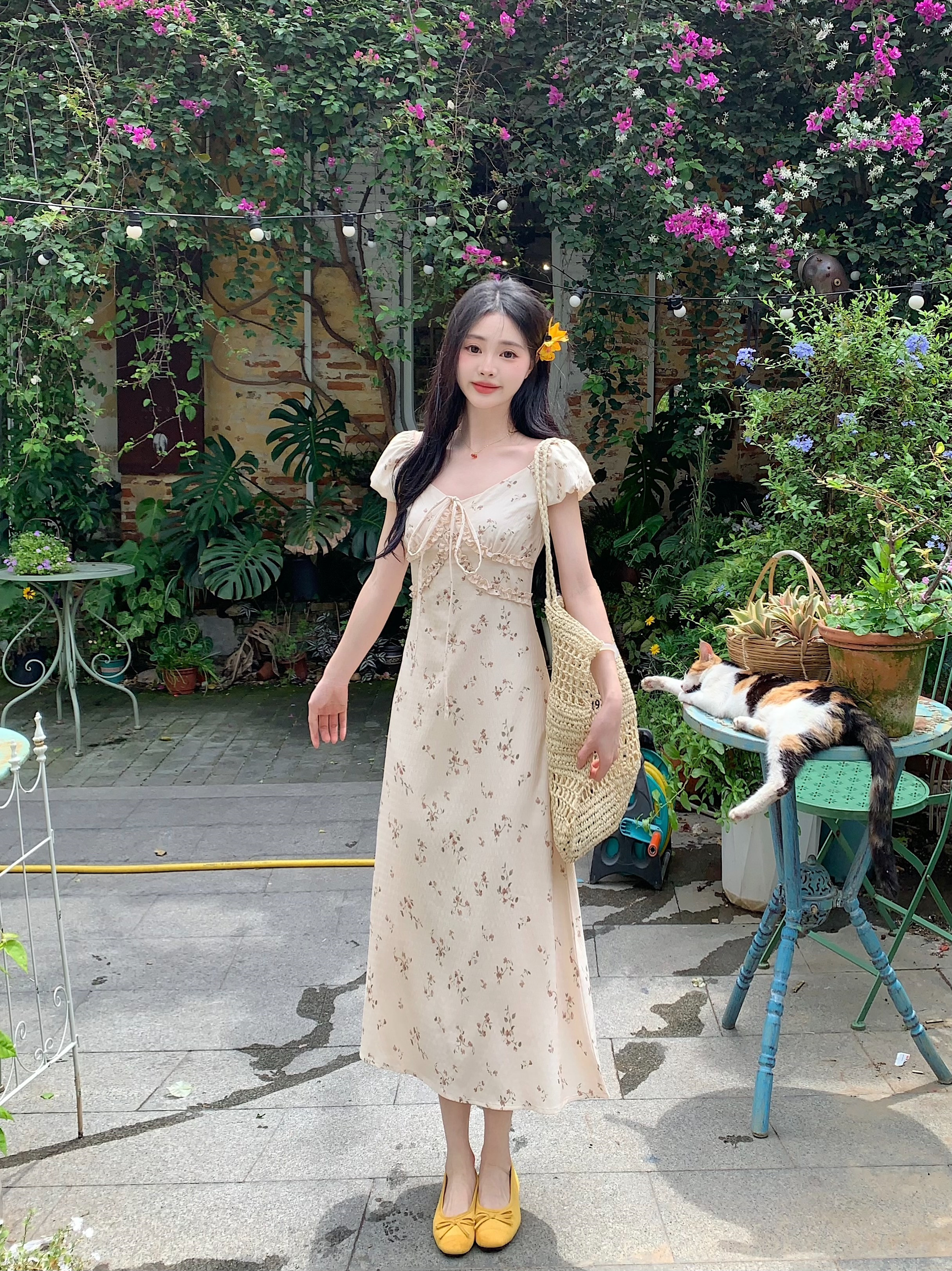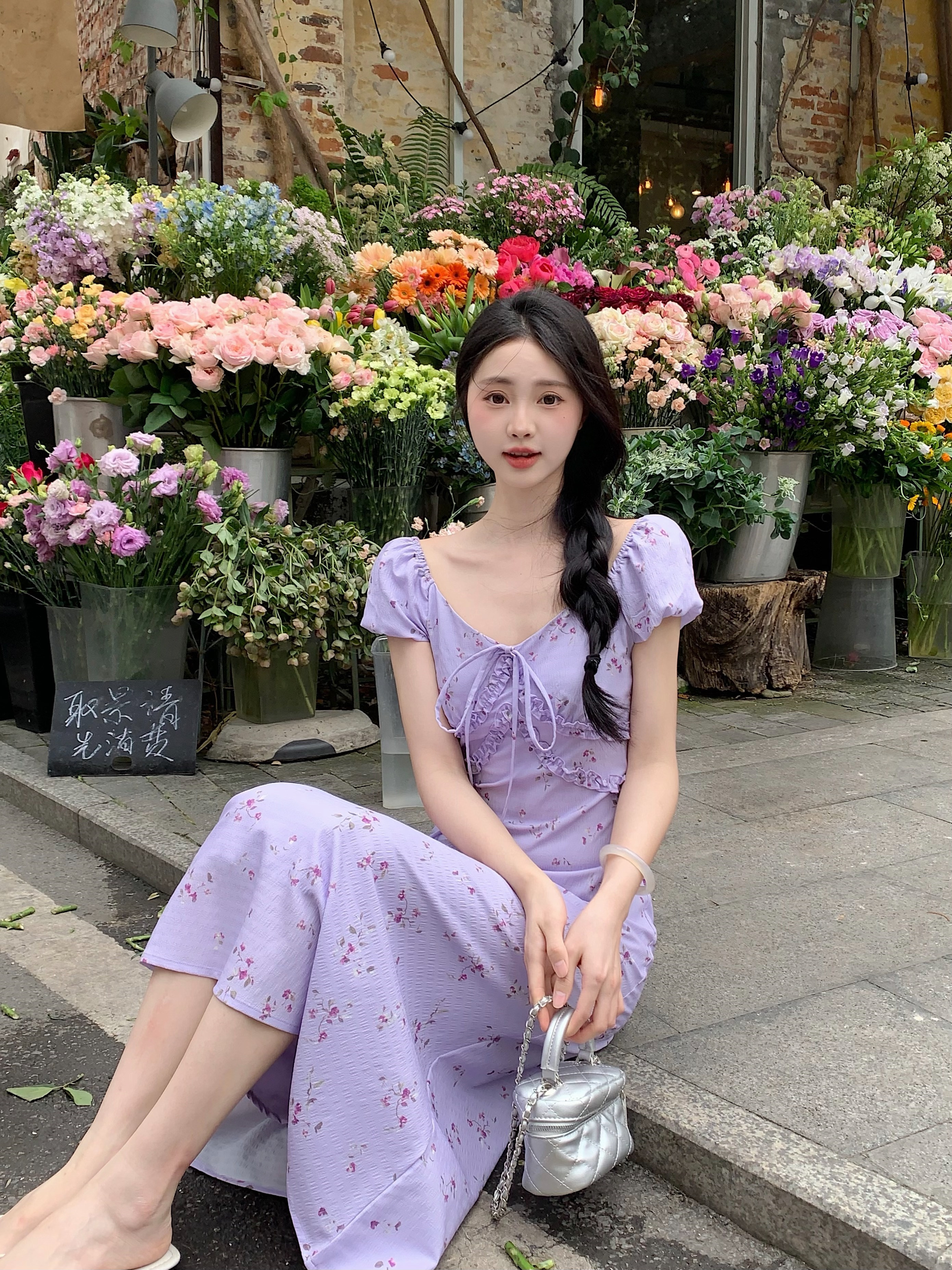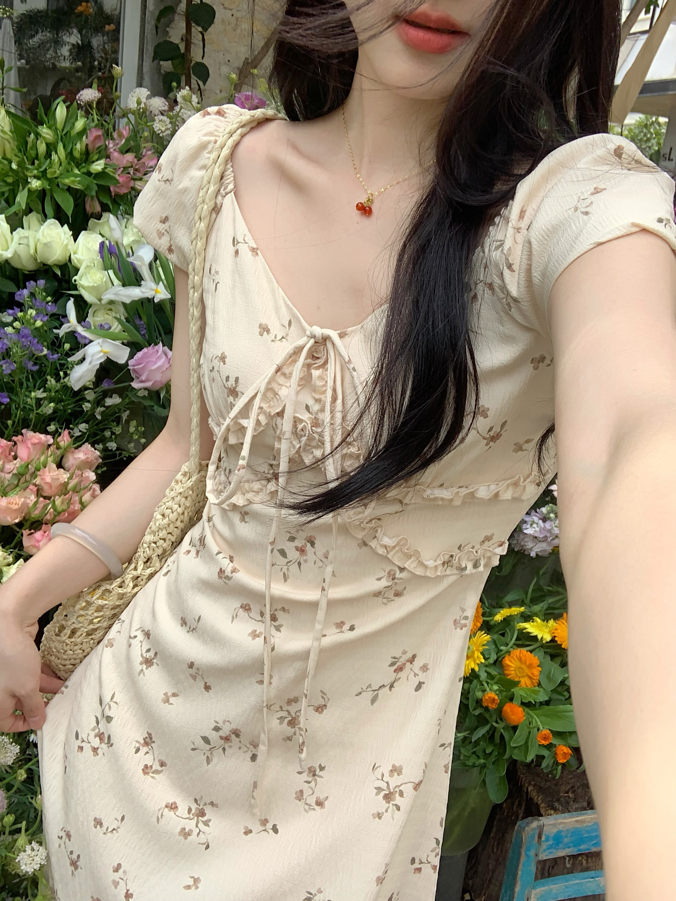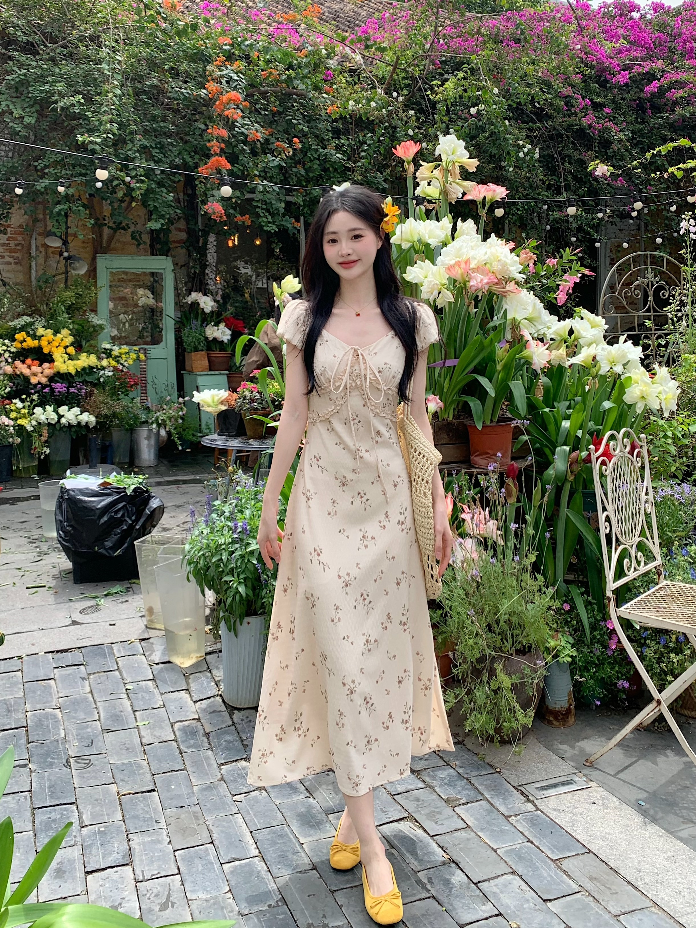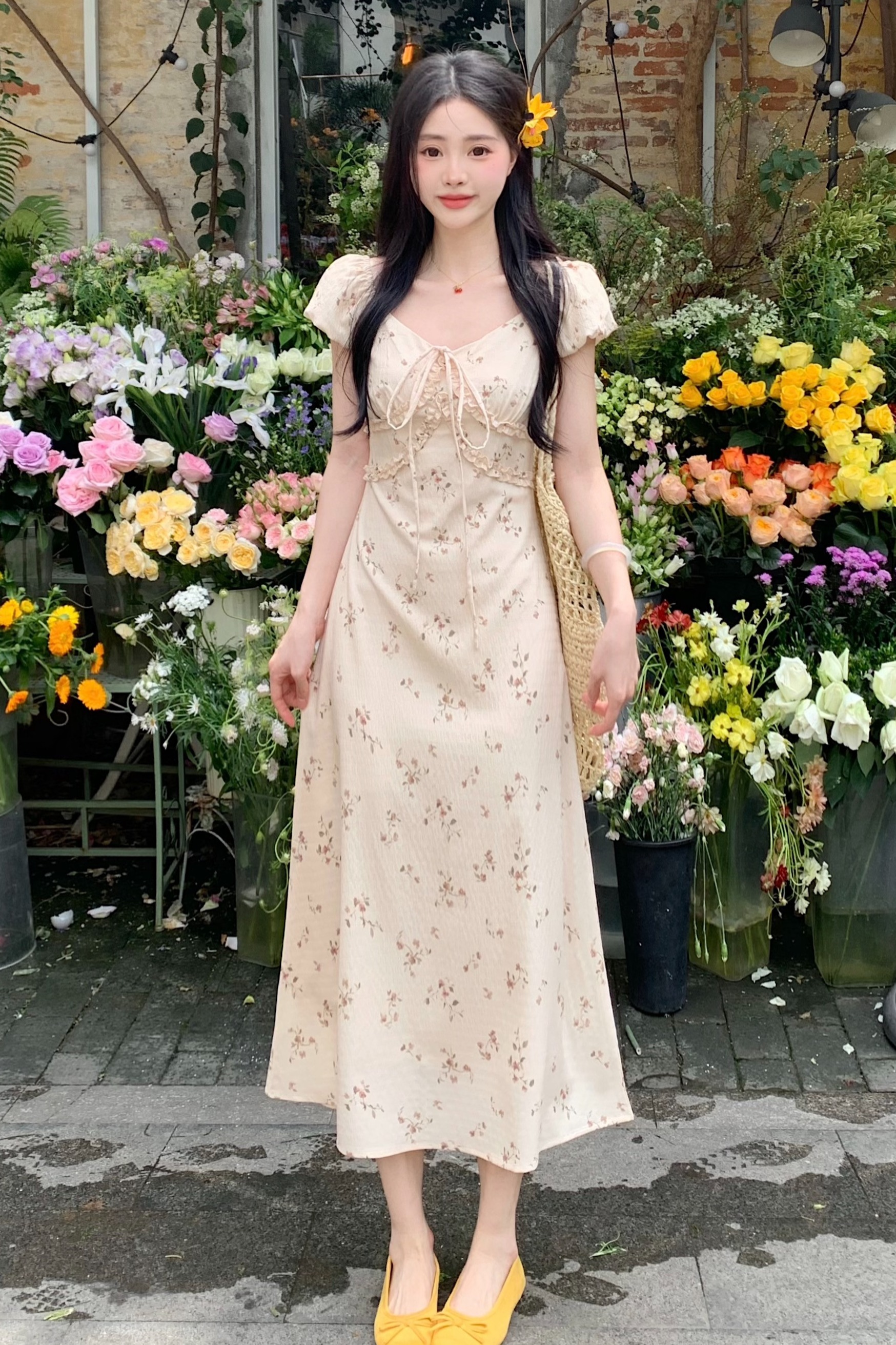 RY3914# 大码法式绝美V领碎花连衣裙女2026夏季气质收腰长裙茶歇裙度假裙