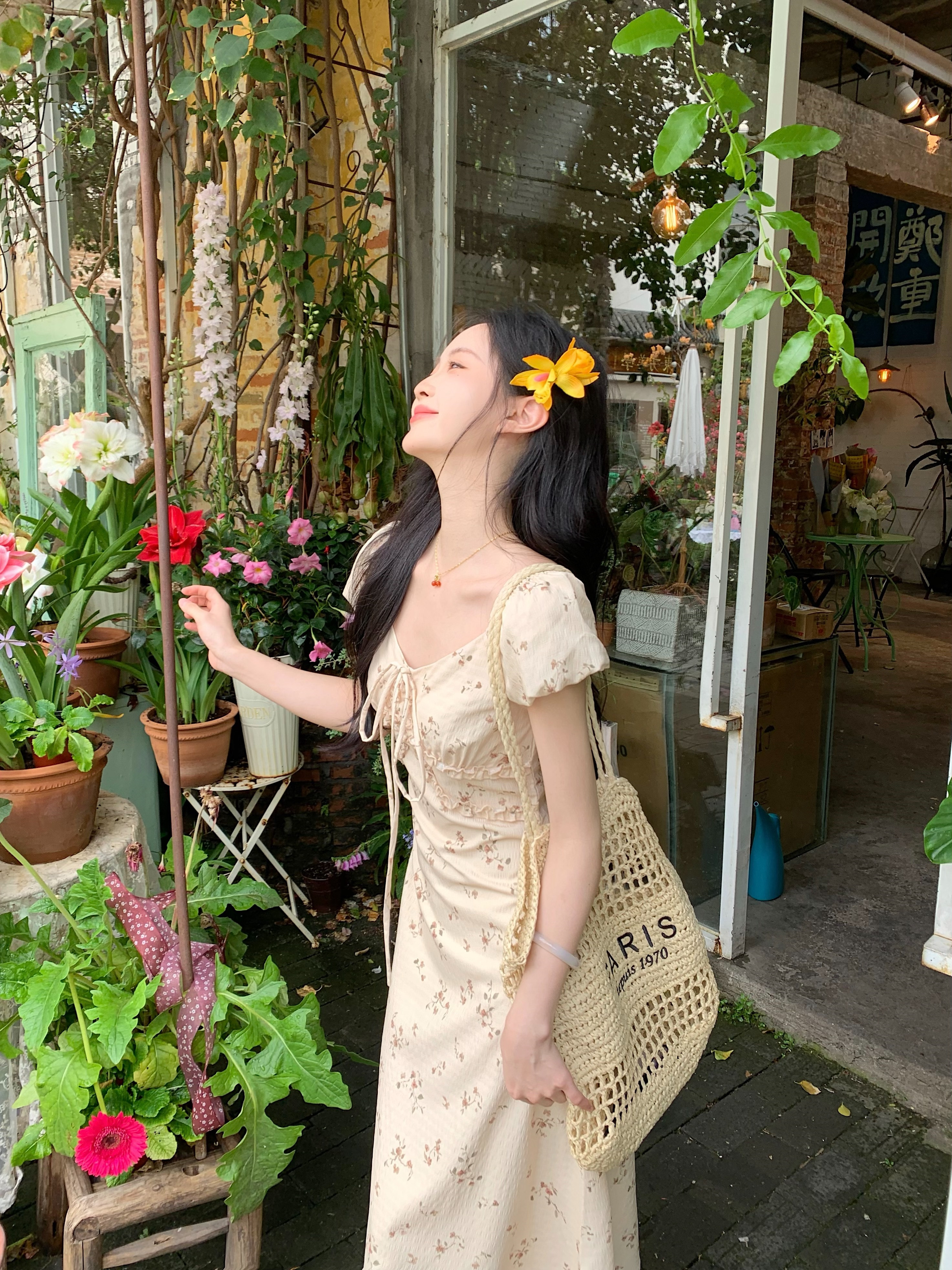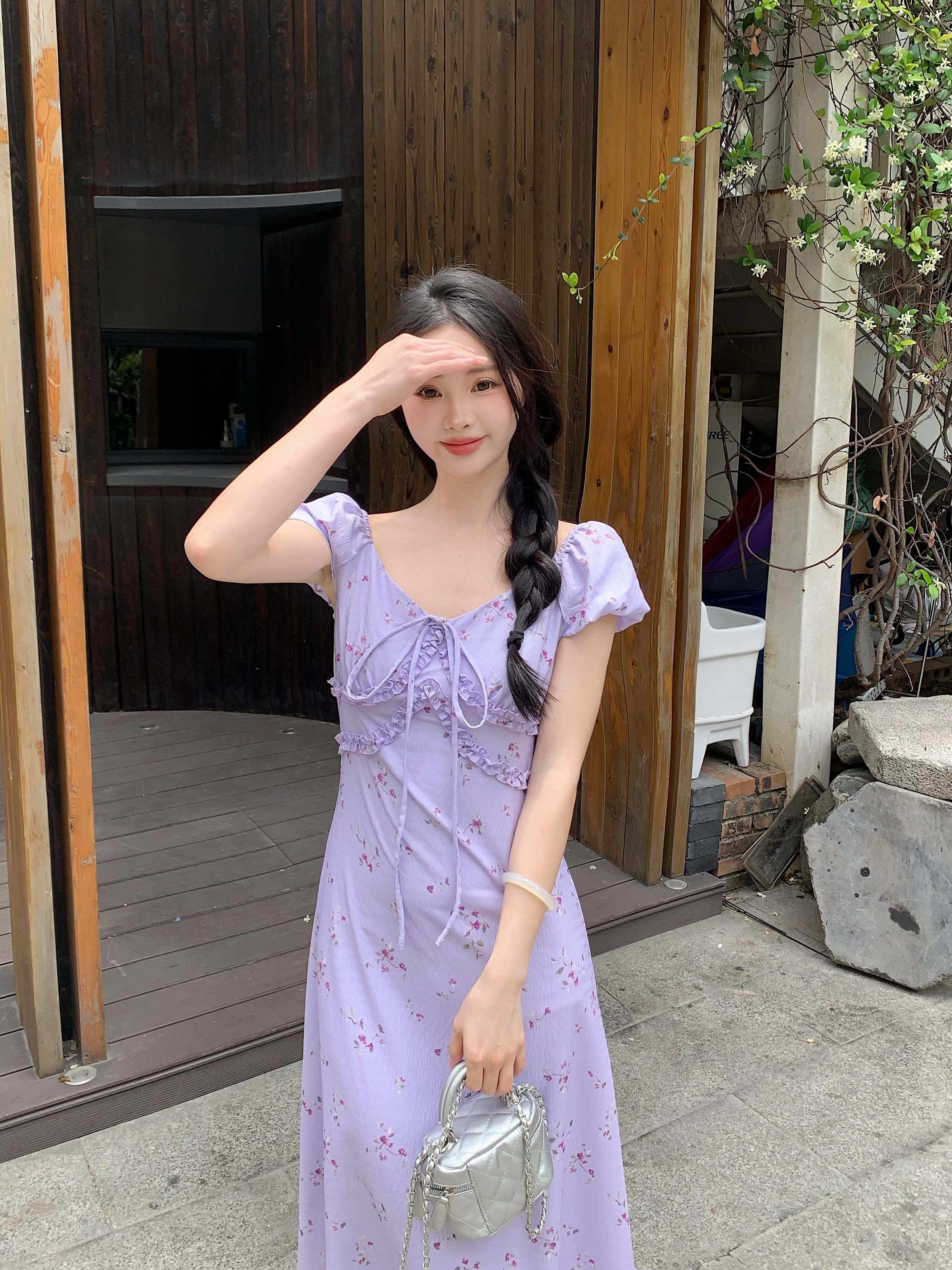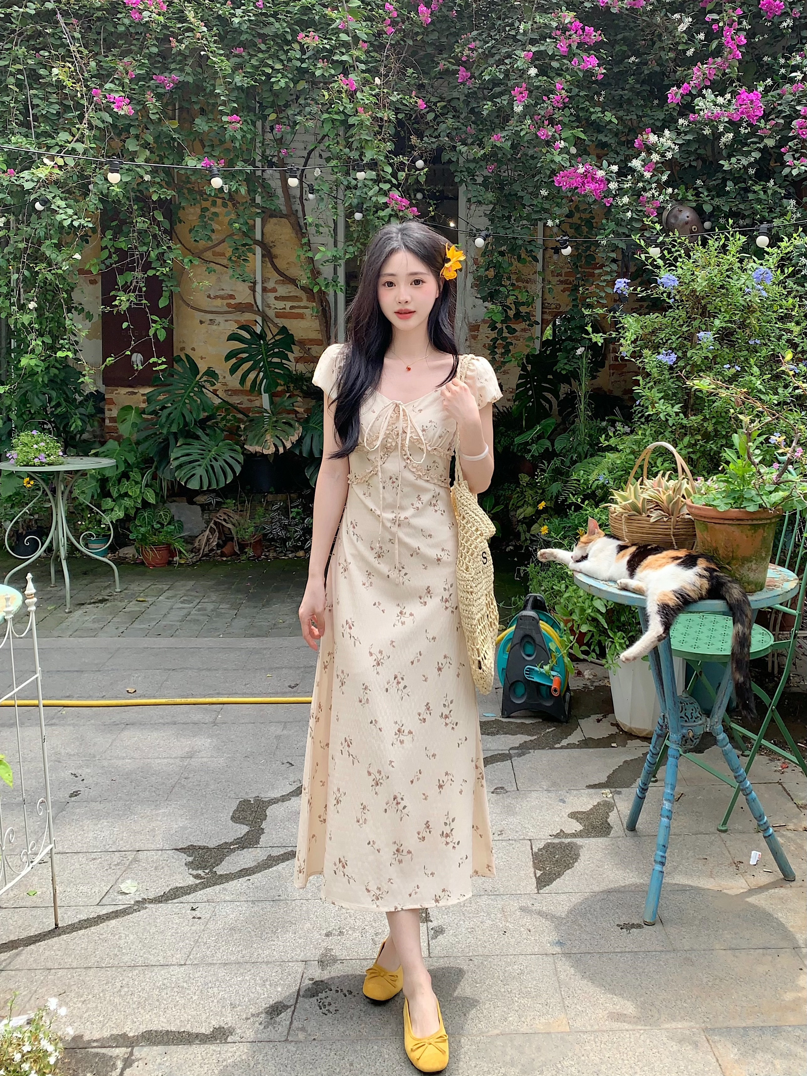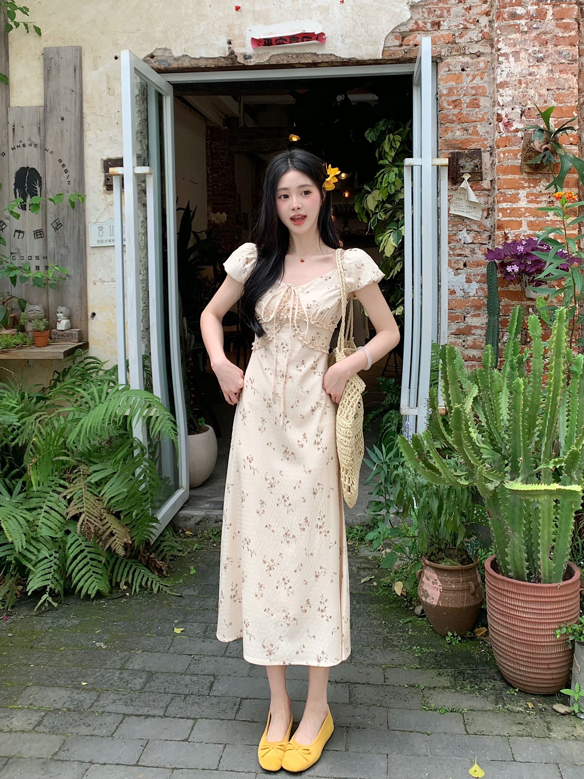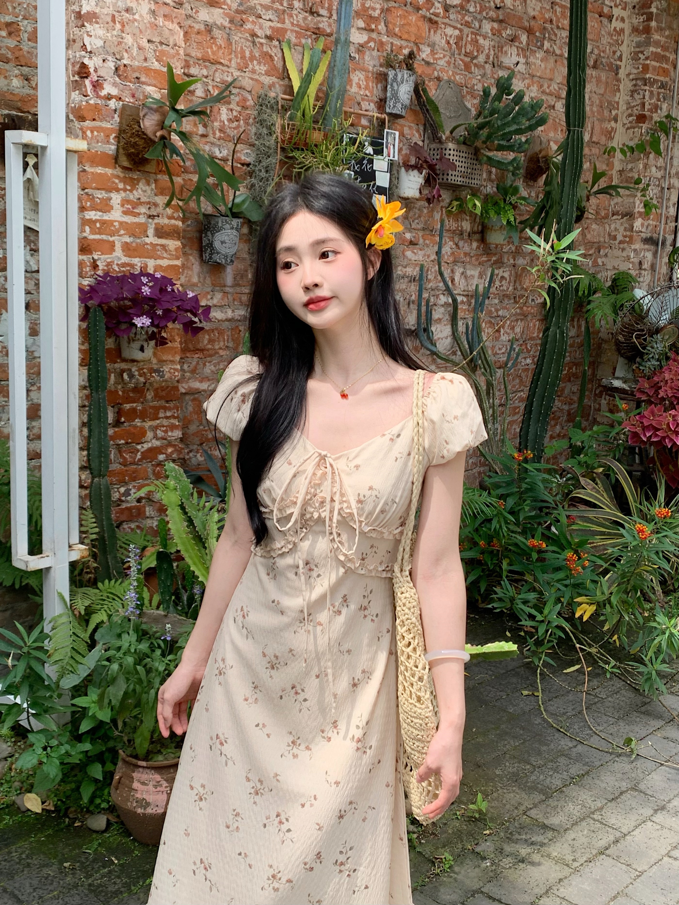 RY3914# 大码法式绝美V领碎花连衣裙女2026夏季气质收腰长裙茶歇裙度假裙