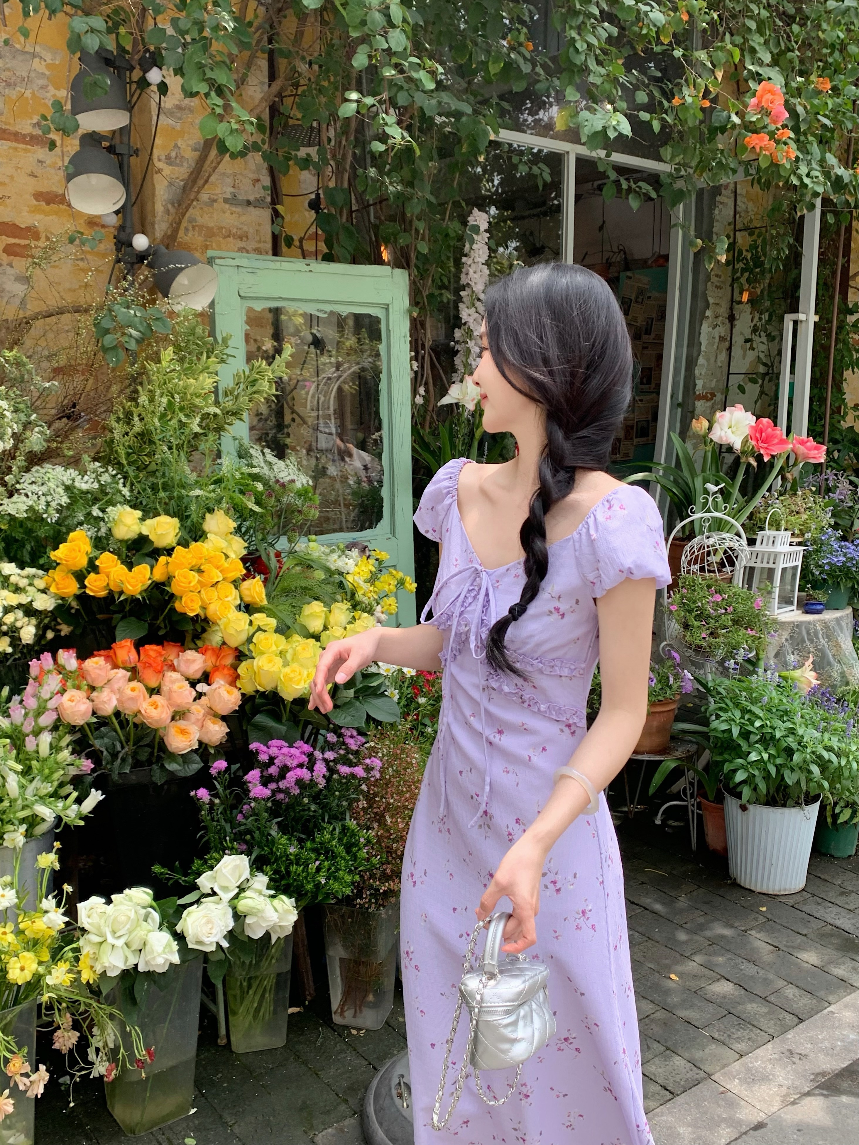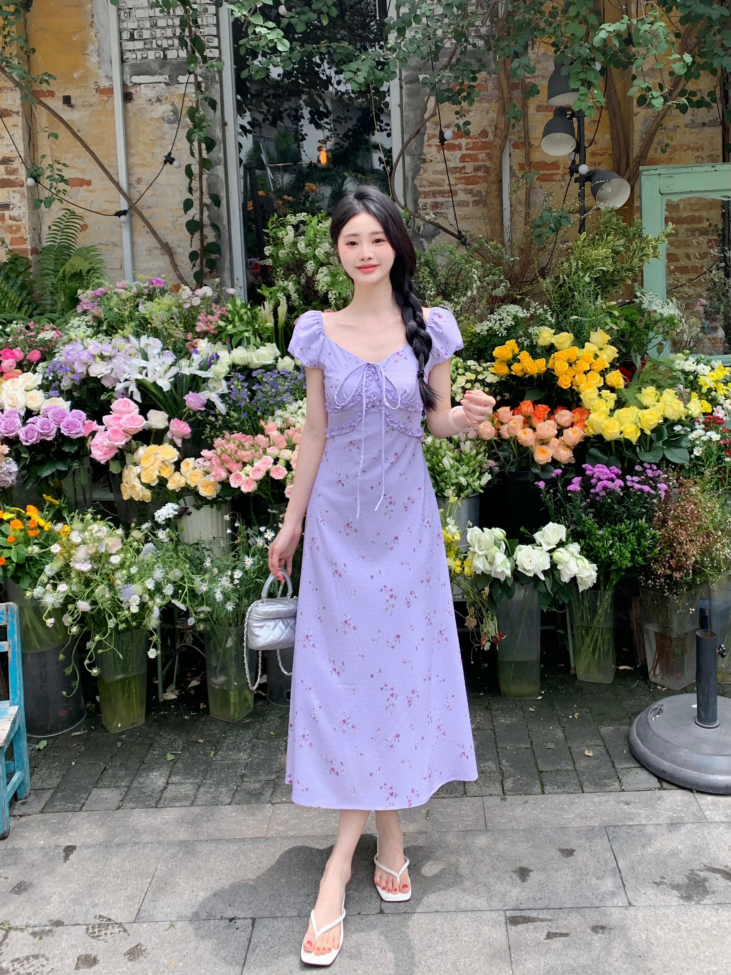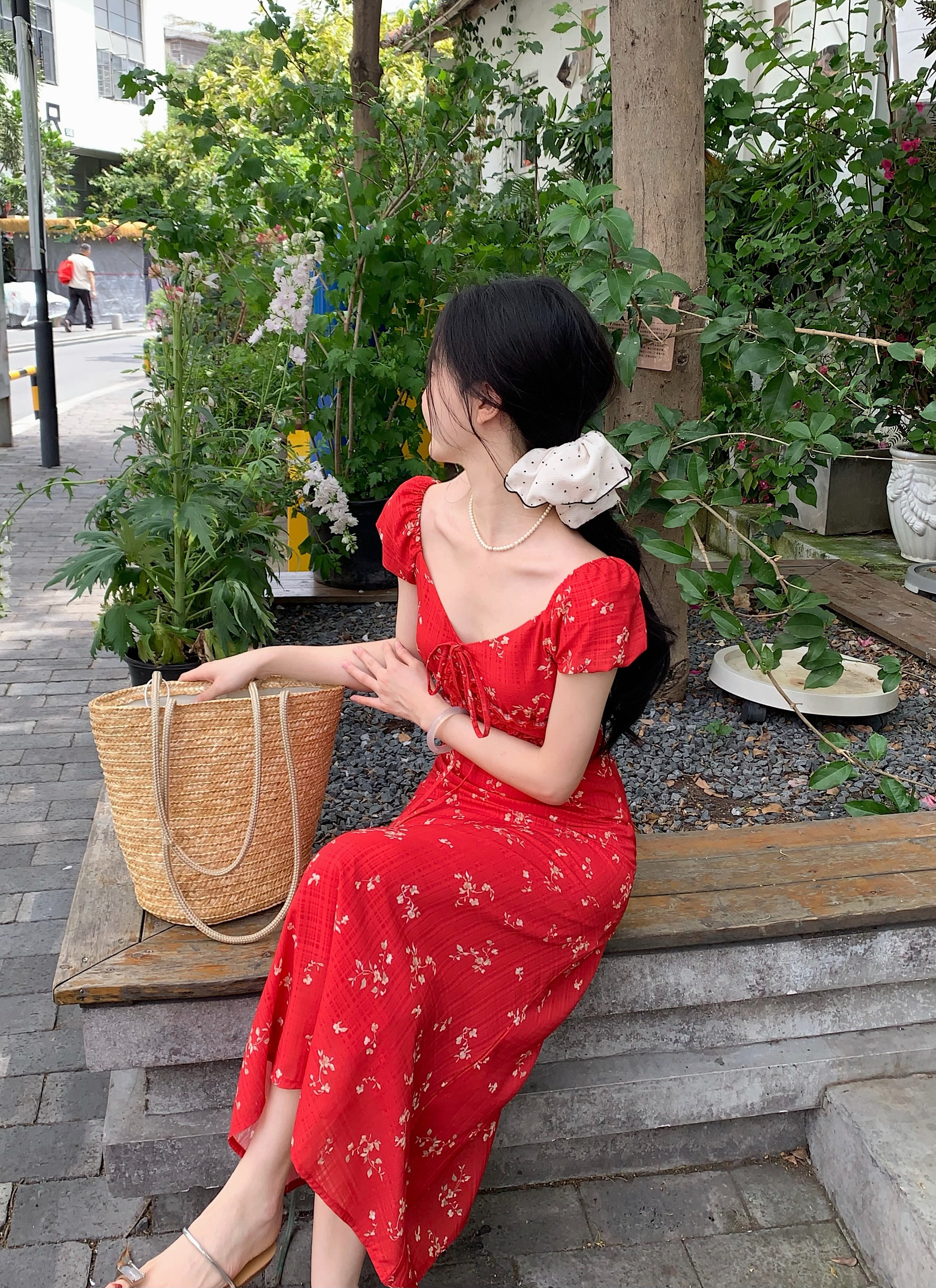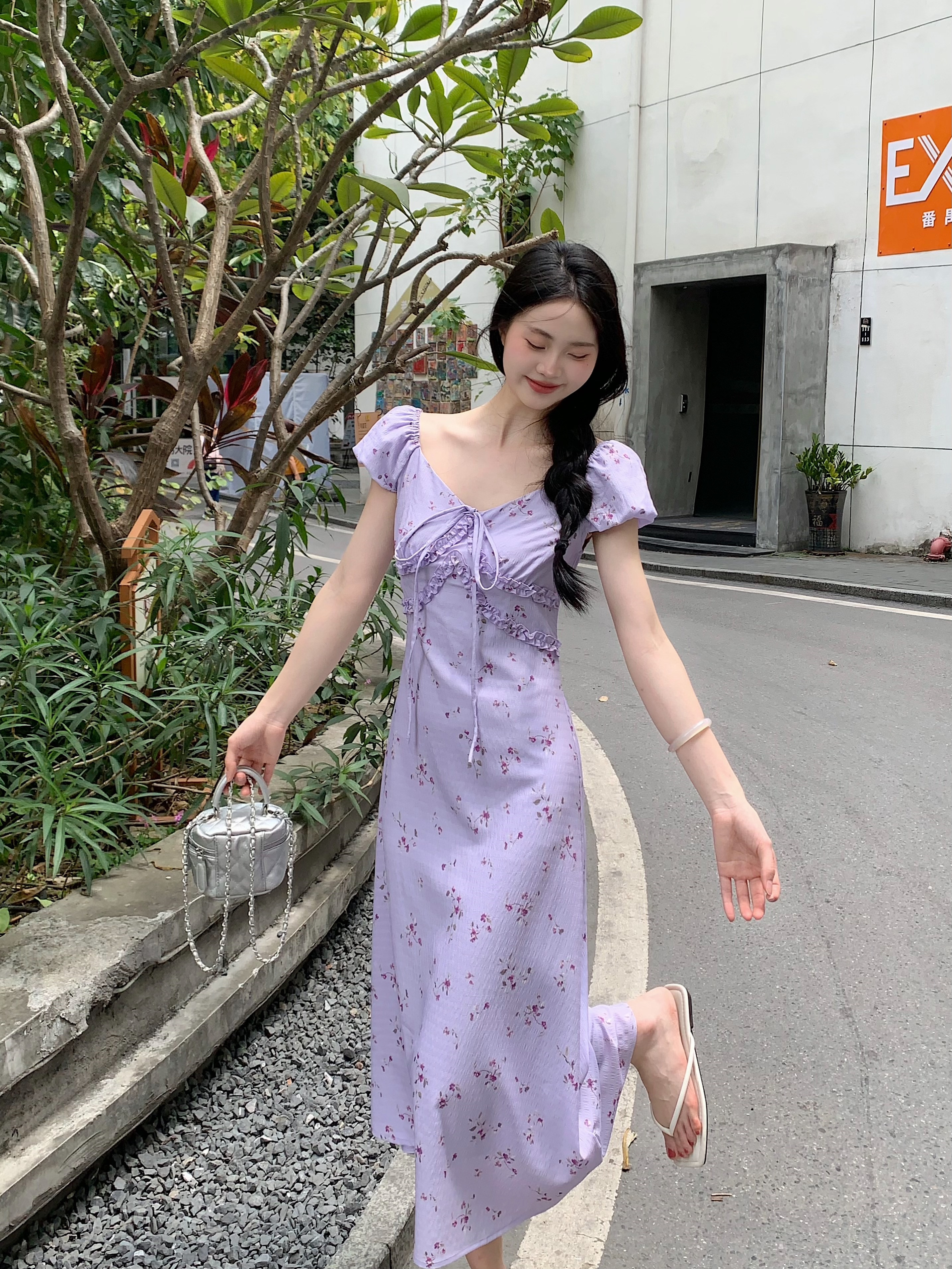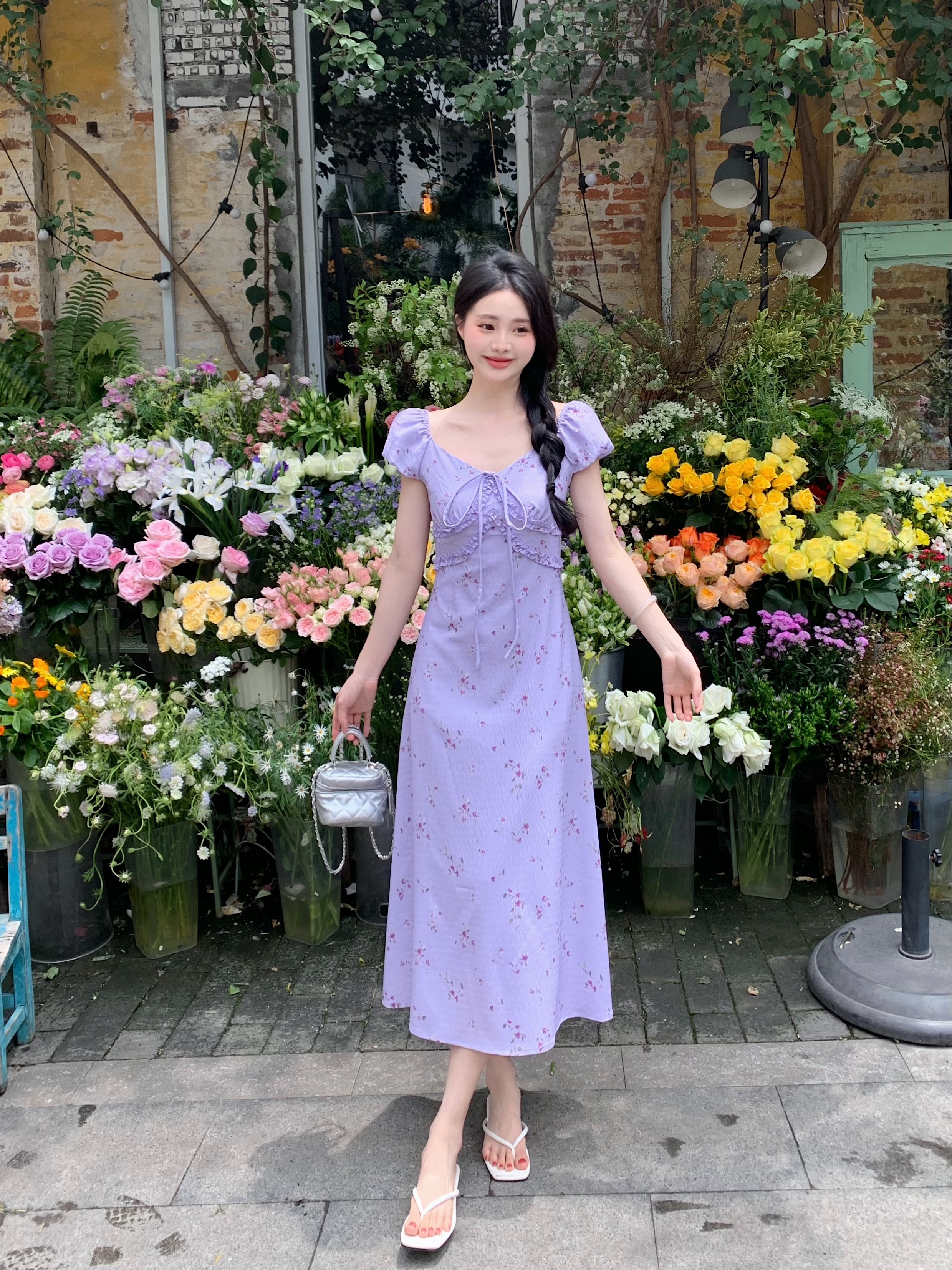 RY3914# 大码法式绝美V领碎花连衣裙女2026夏季气质收腰长裙茶歇裙度假裙