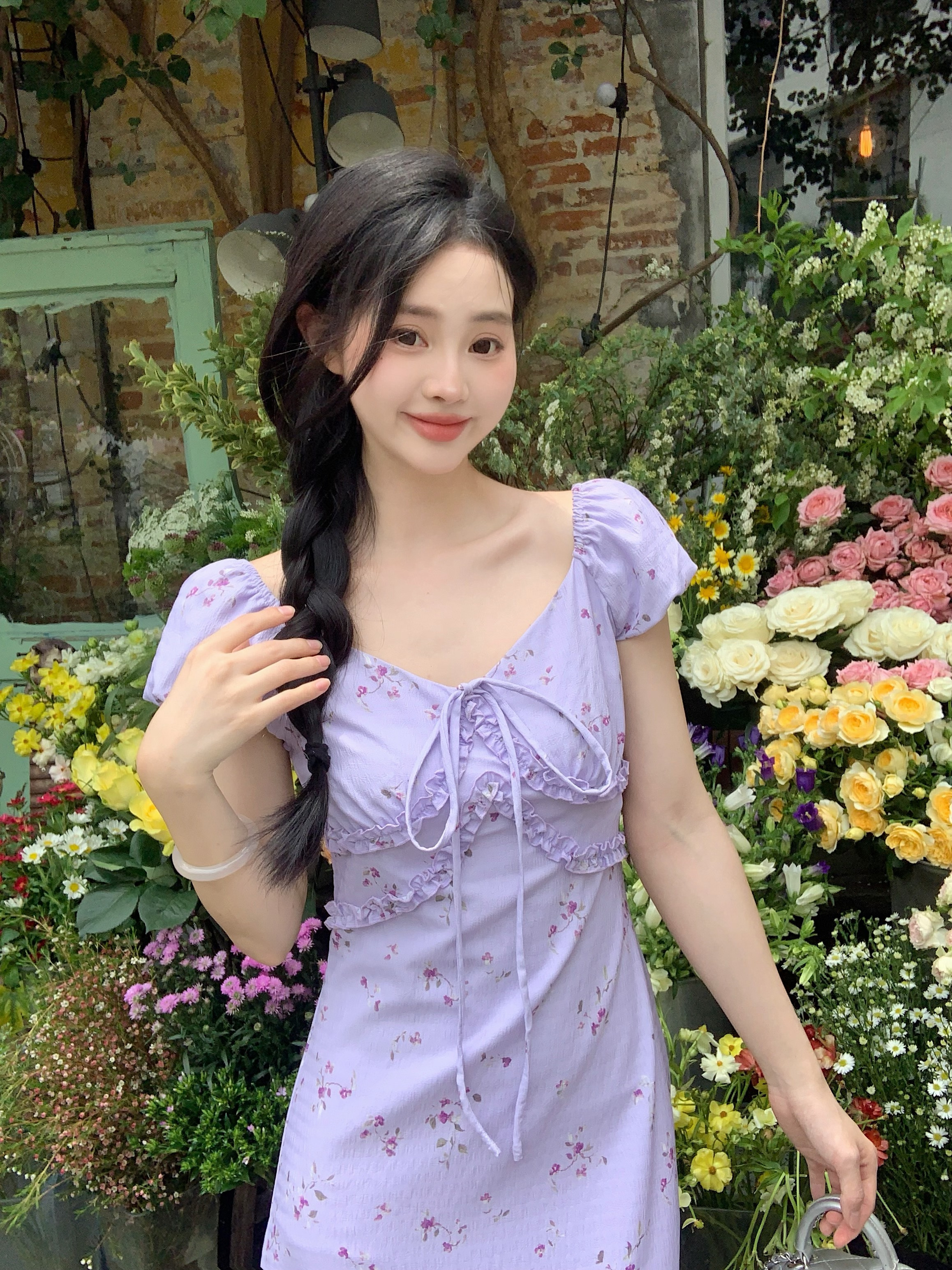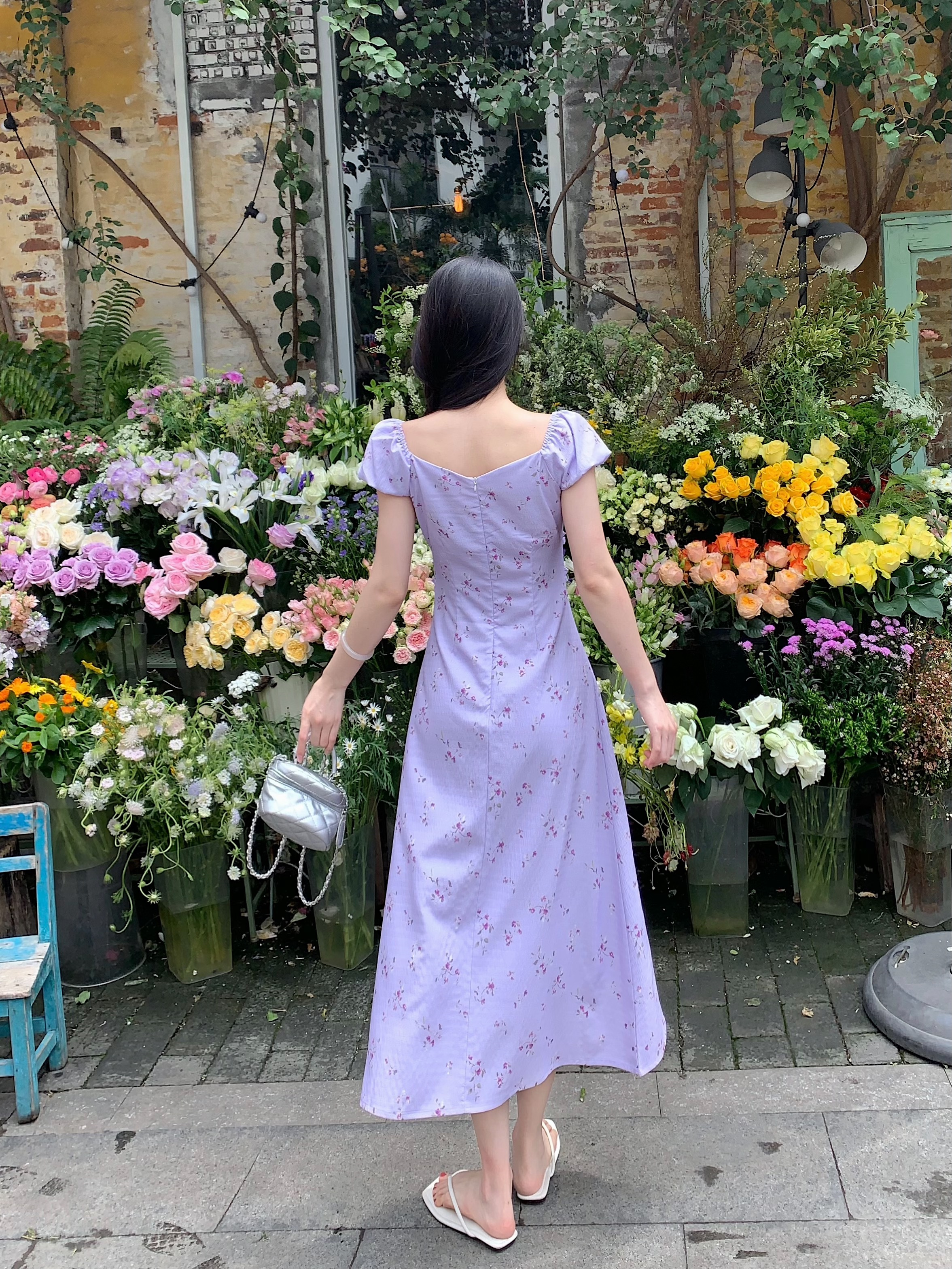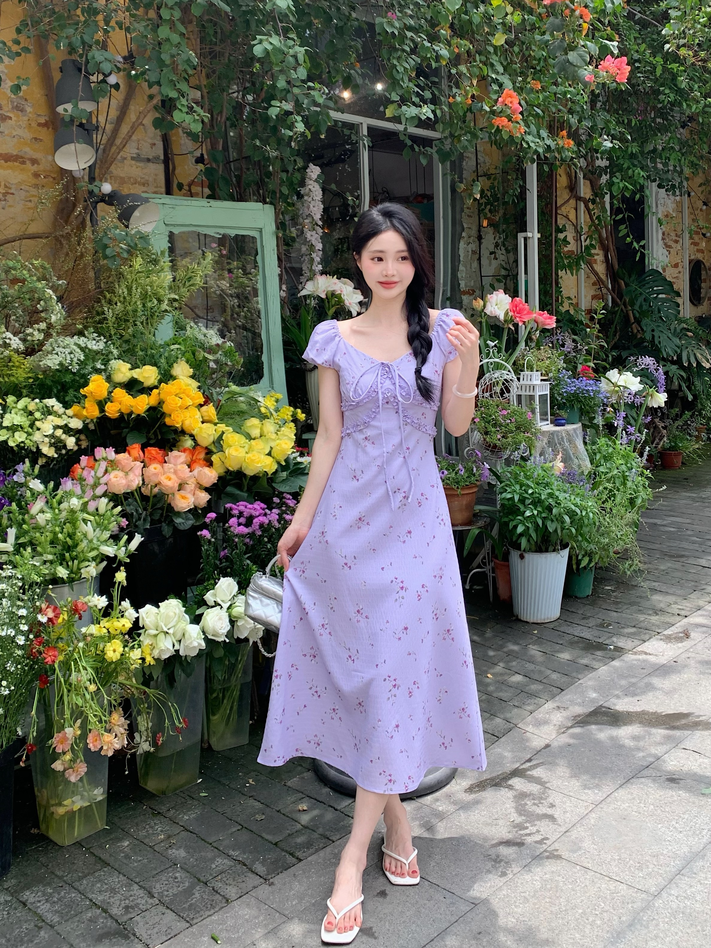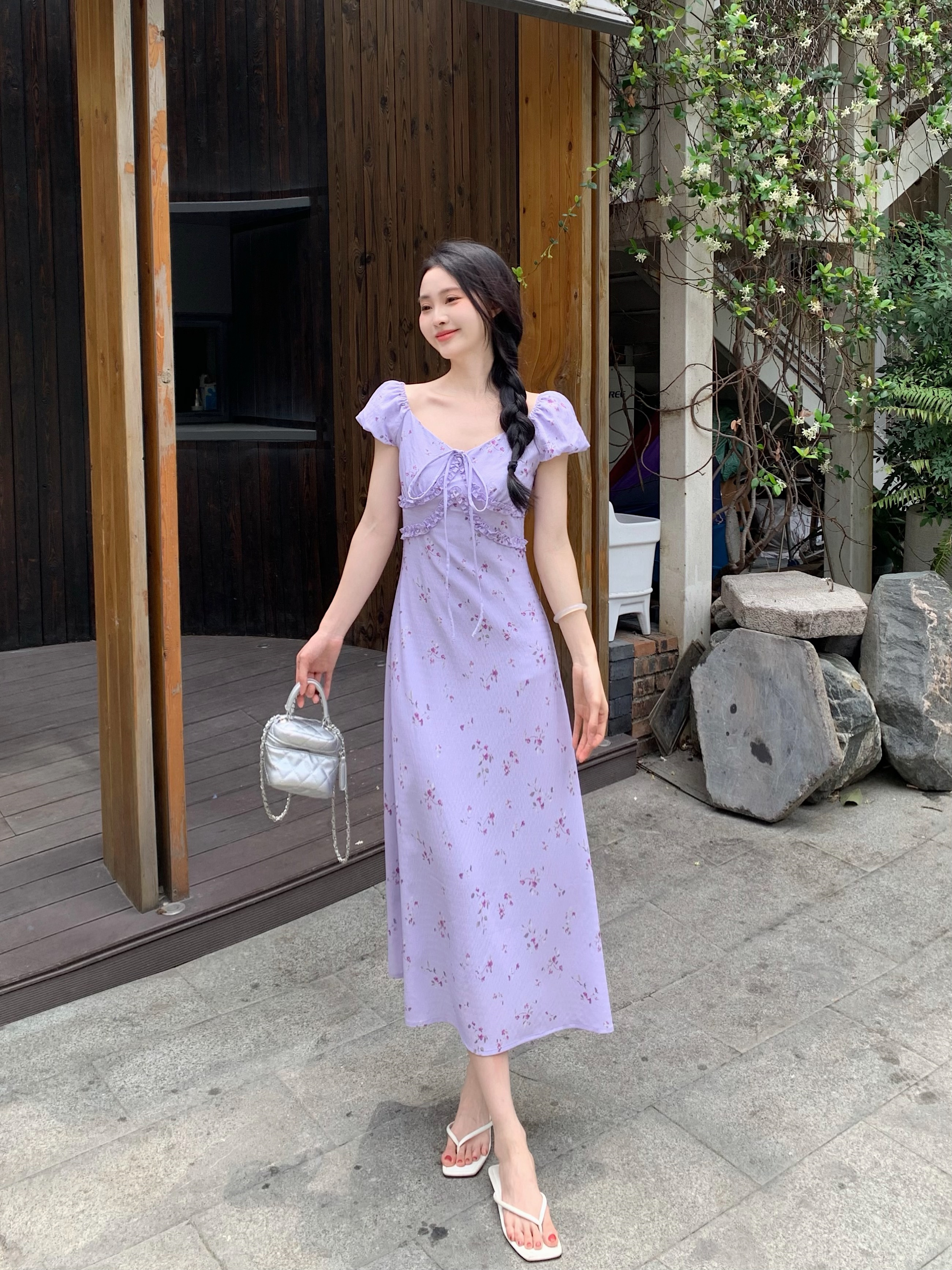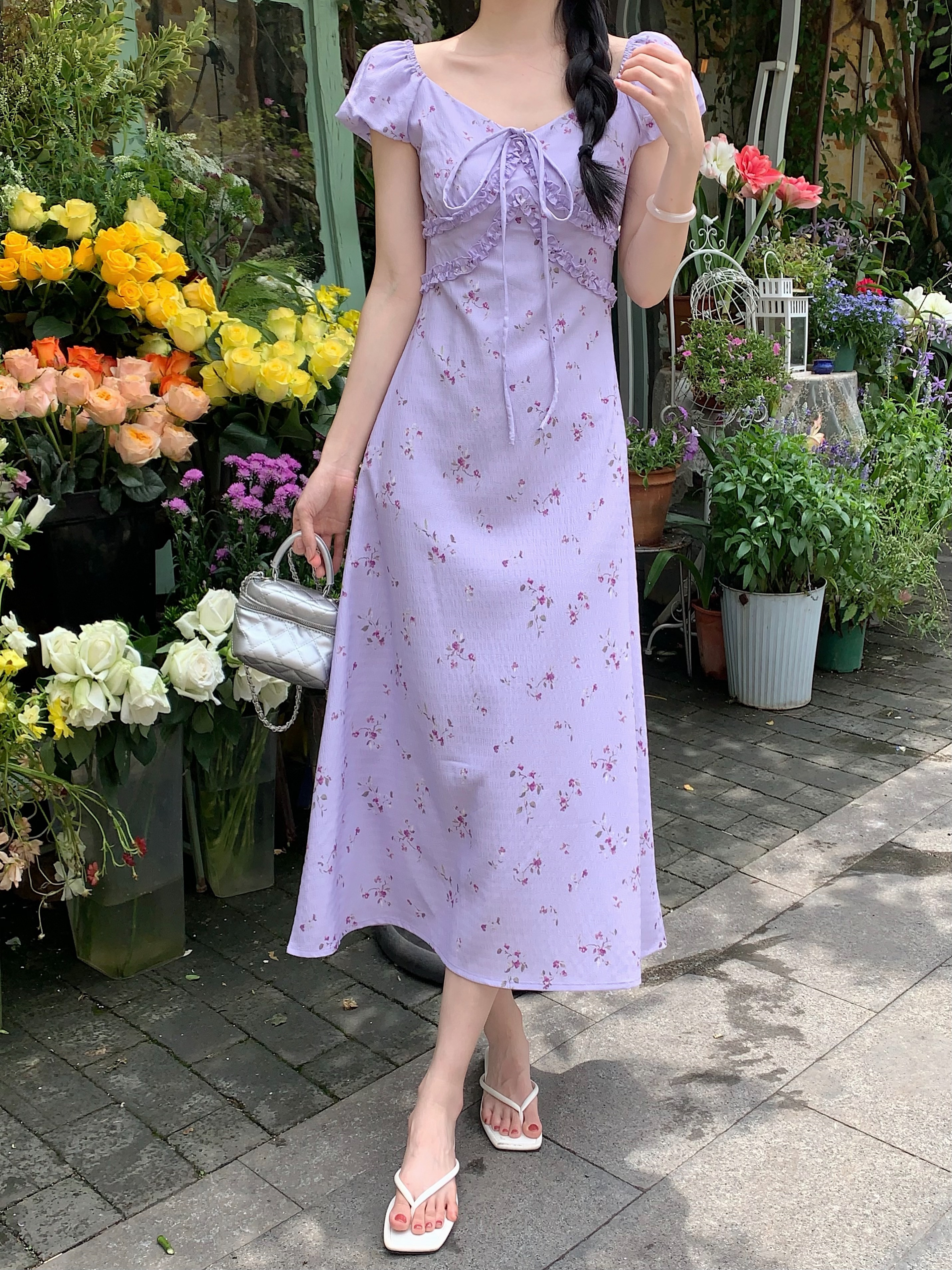RY3914# 大码法式绝美V领碎花连衣裙女2026夏季气质收腰长裙茶歇裙度假裙