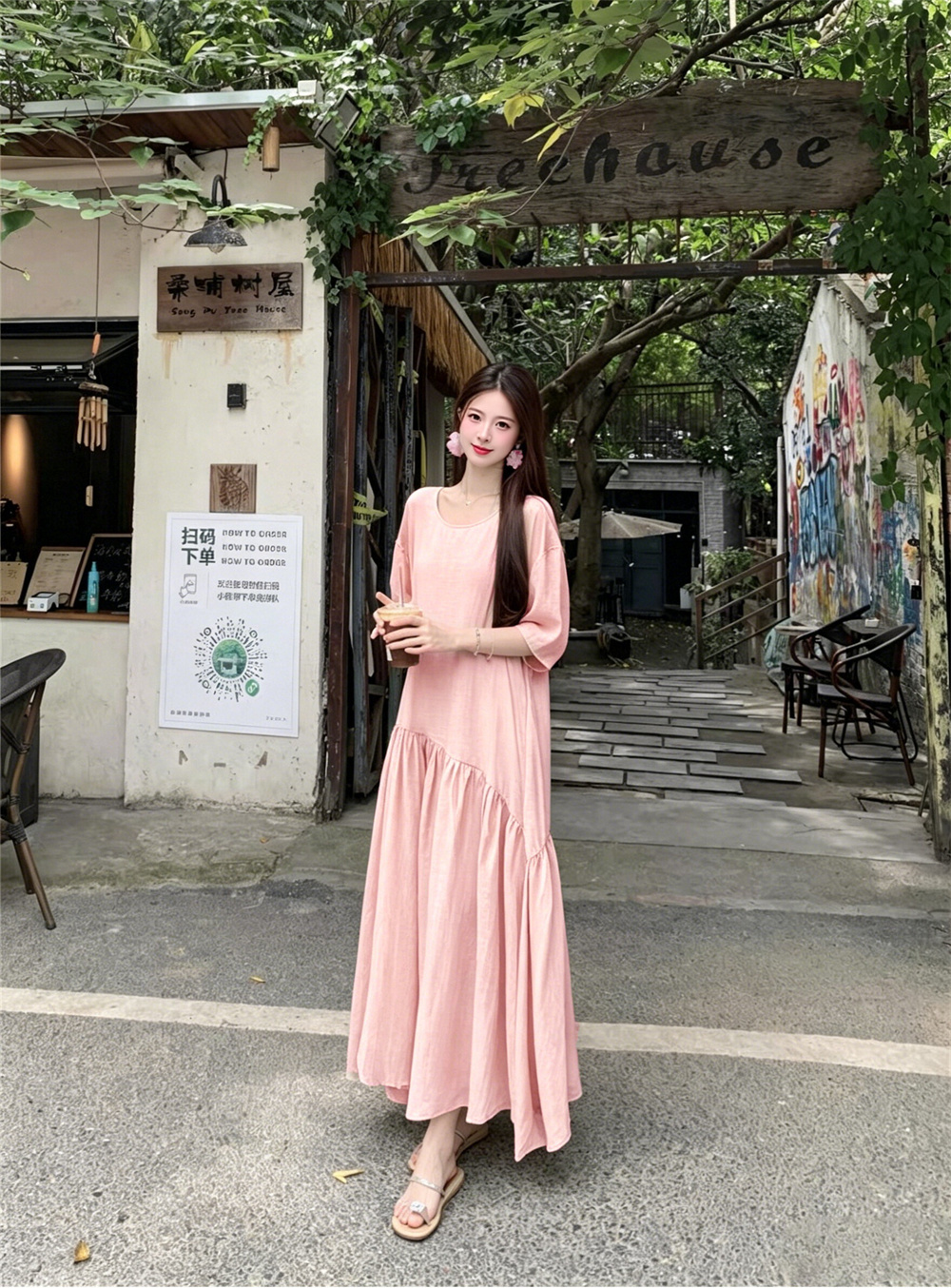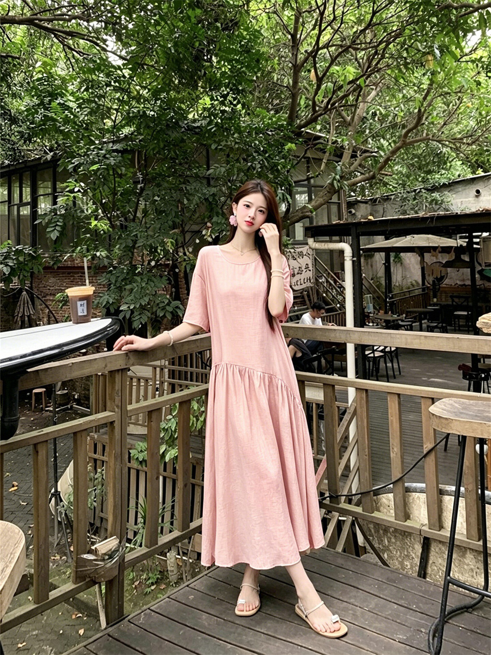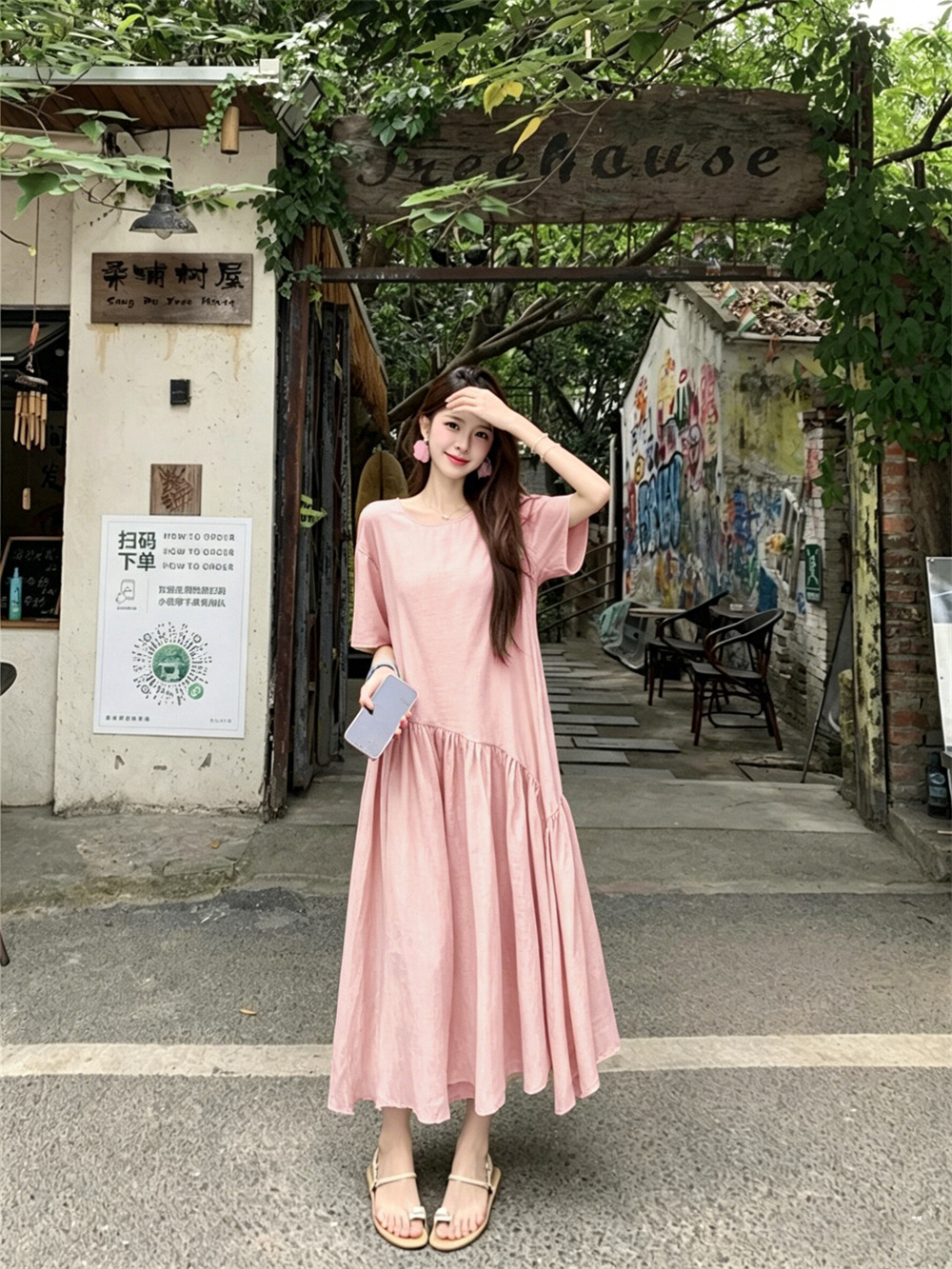 RY3918# 实拍~2026春夏新款韩版百搭设计感小众长款连衣裙