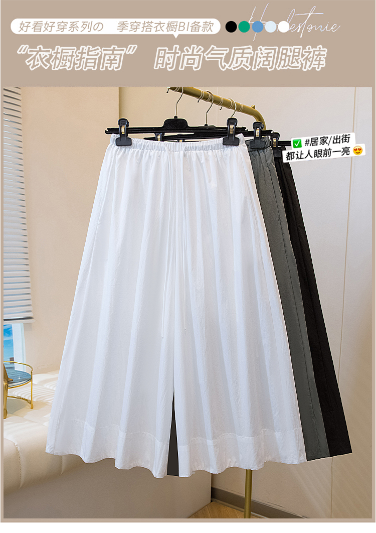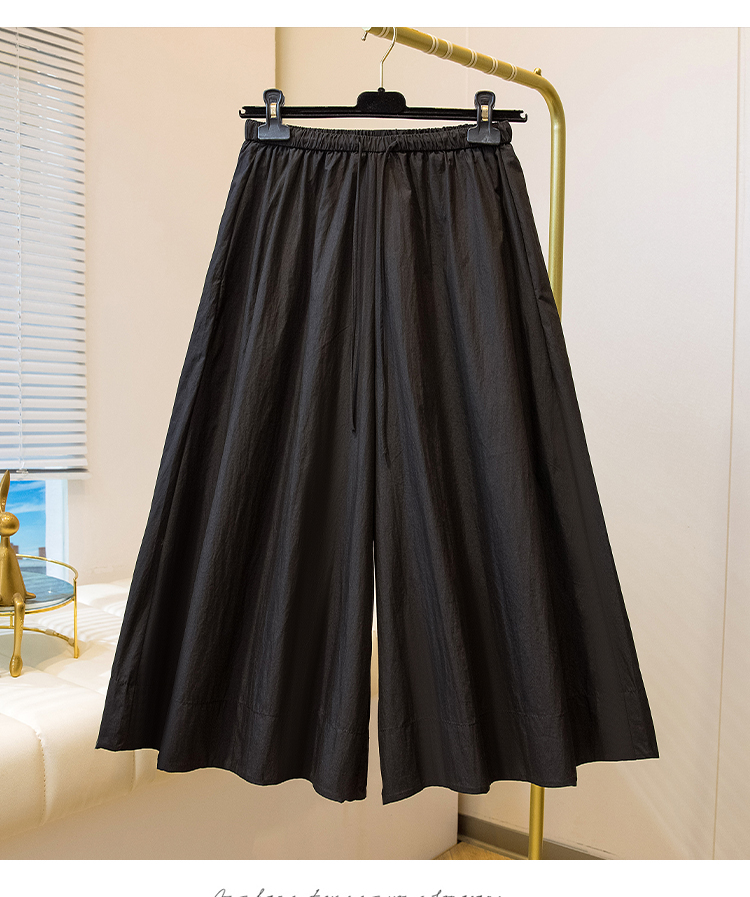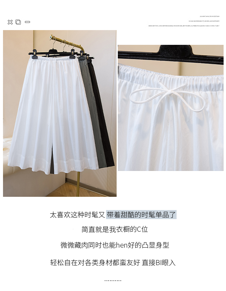 RY3921# 大码胖MM2026夏净版阔腿裤老钱风松紧腰休闲慵懒风垂坠感七分裙裤