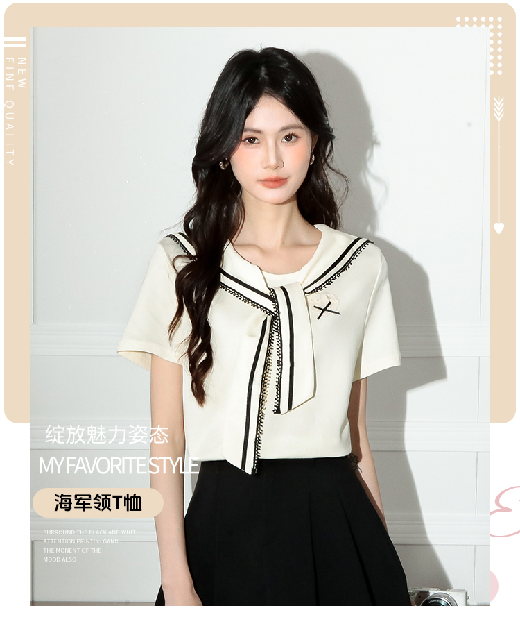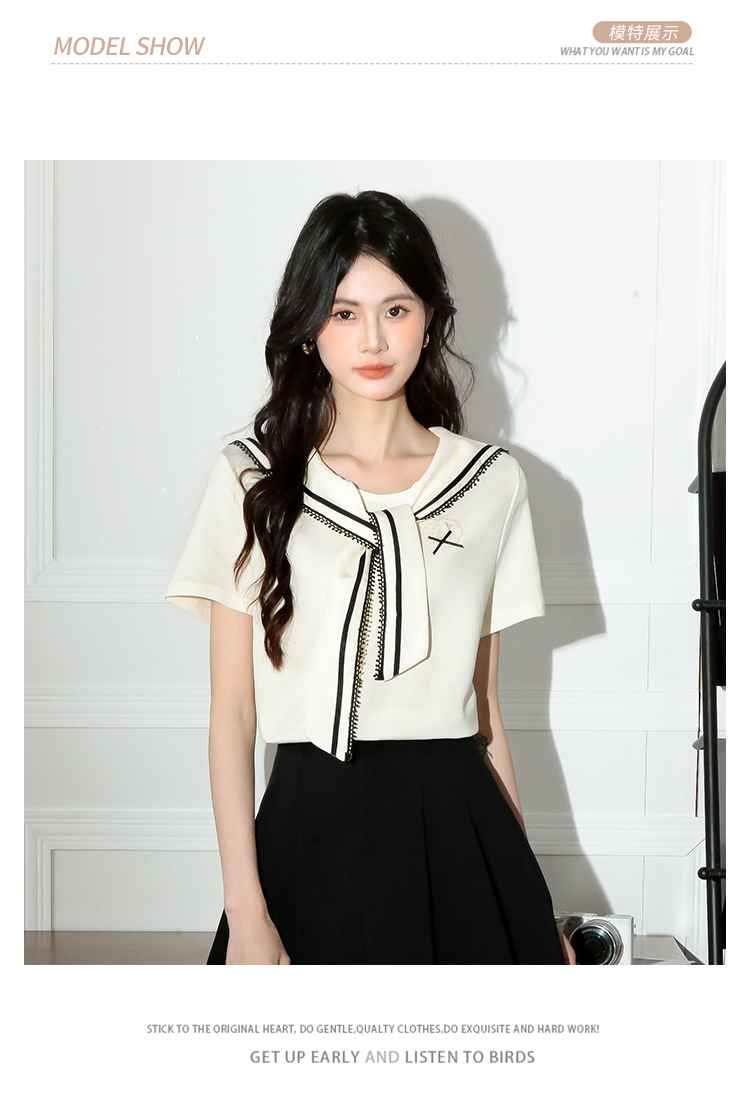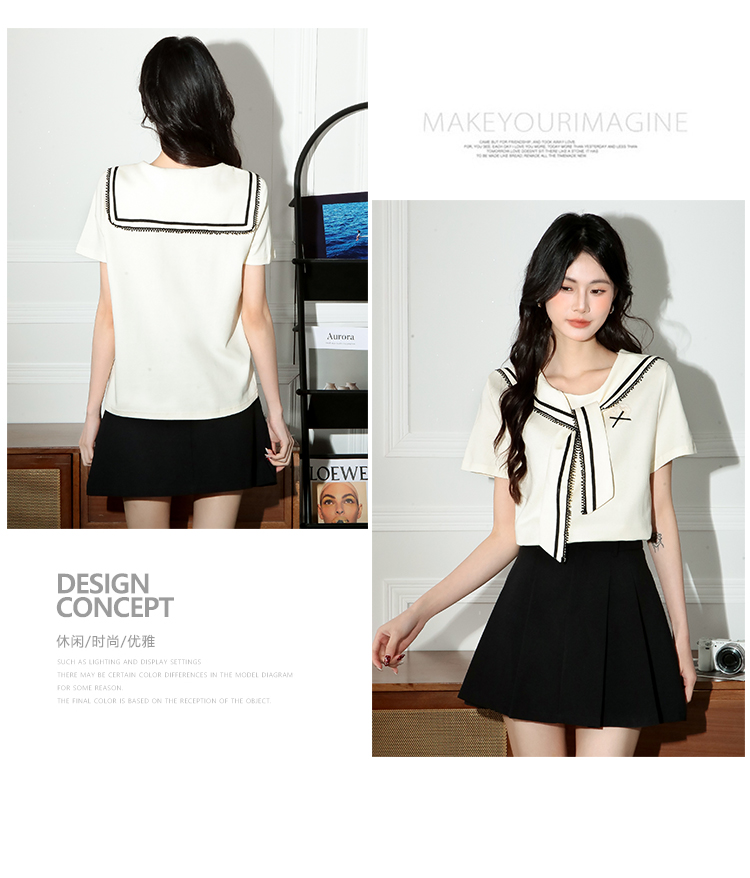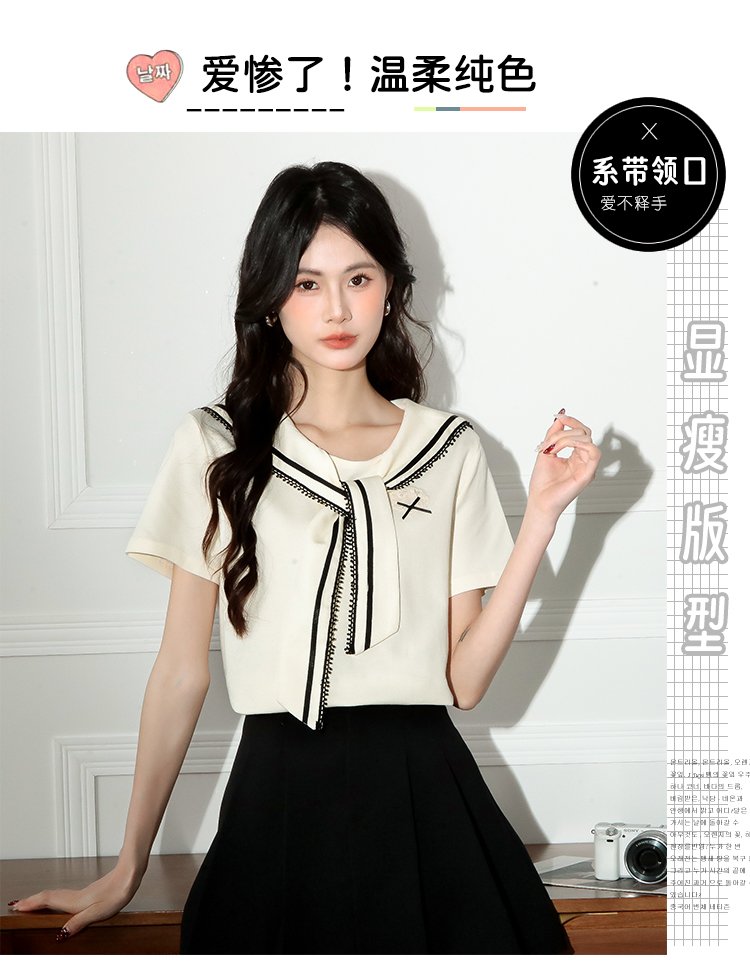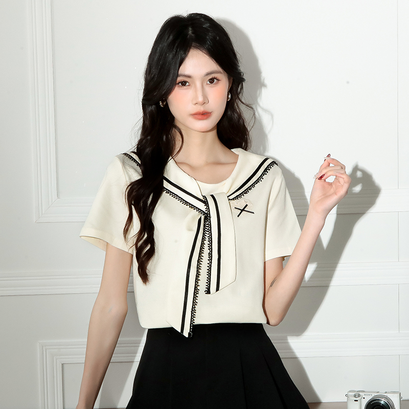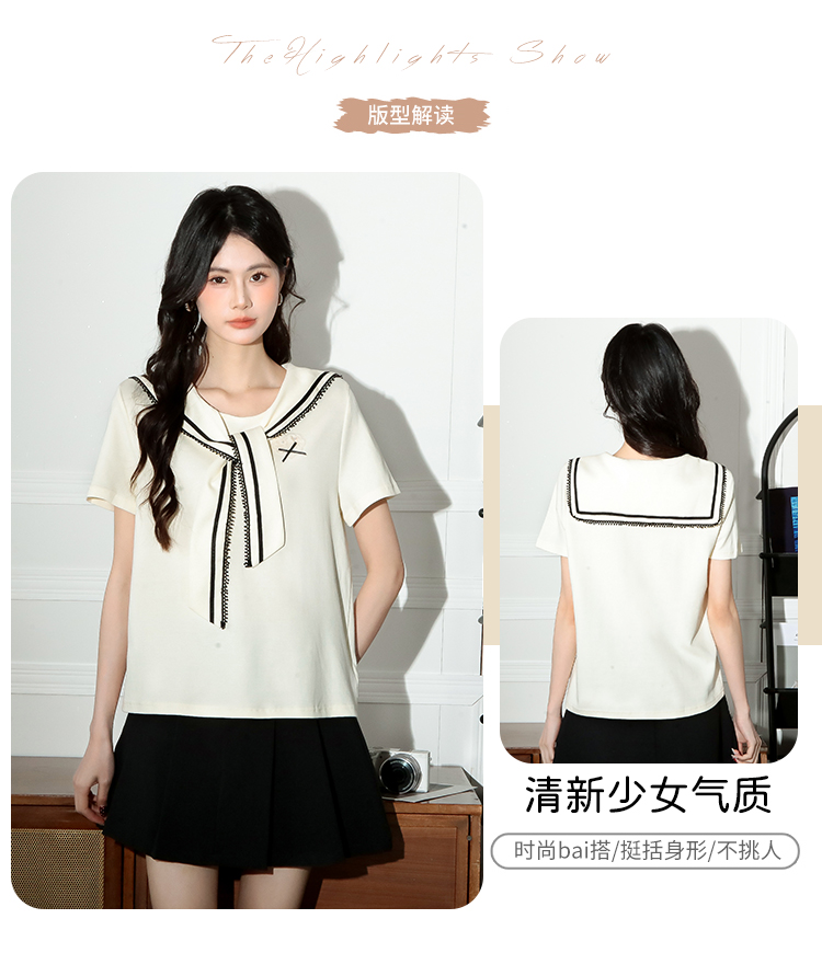 RY3934# 实拍!2026夏季新款有货海军风学院风女上衣