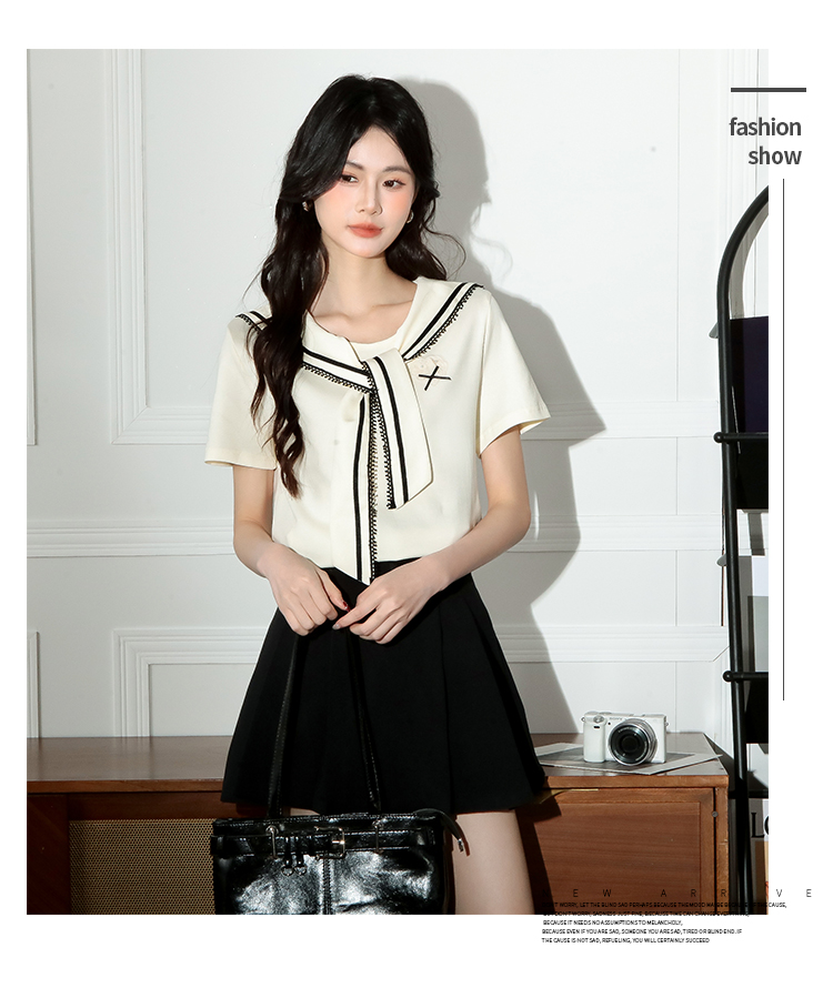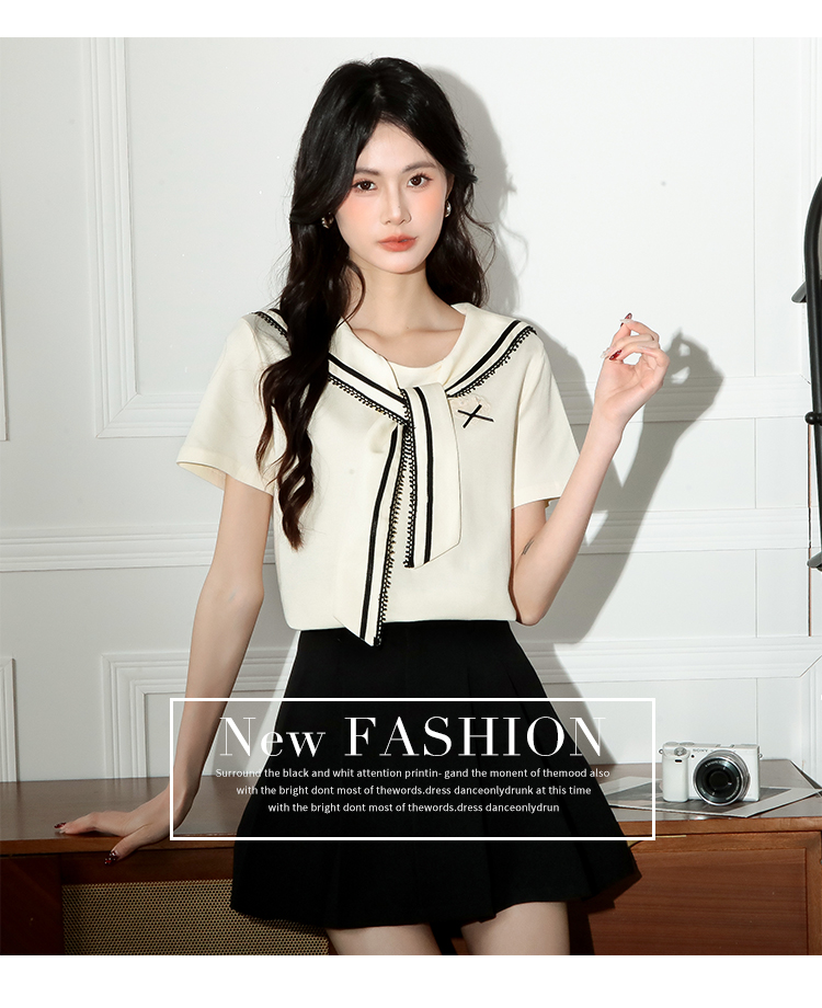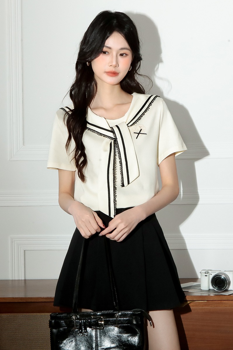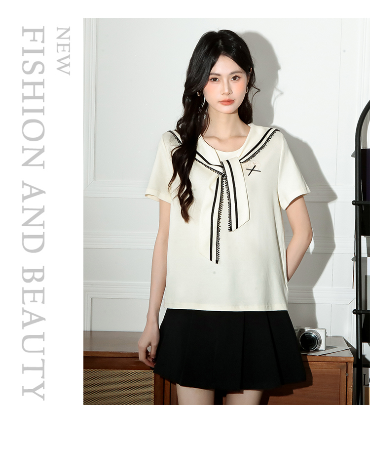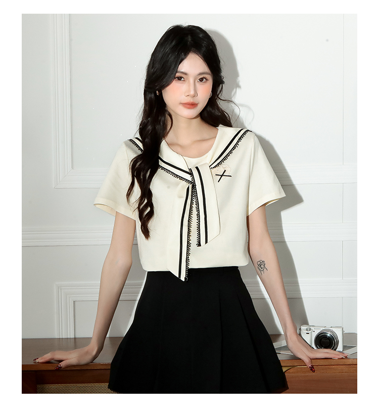 RY3934# 实拍!2026夏季新款有货海军风学院风女上衣
