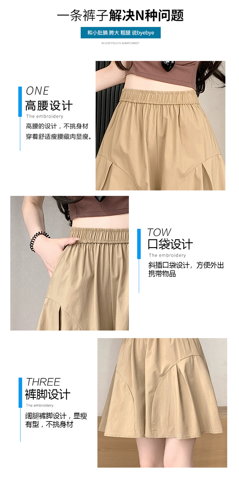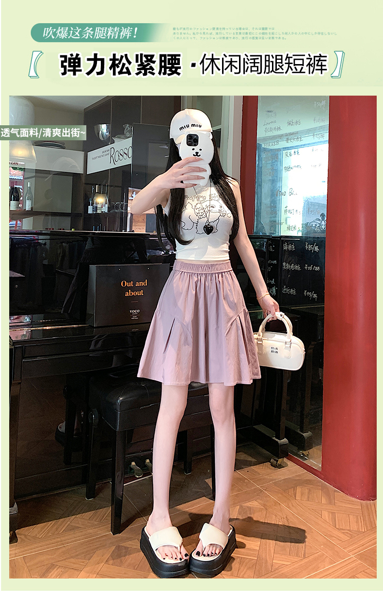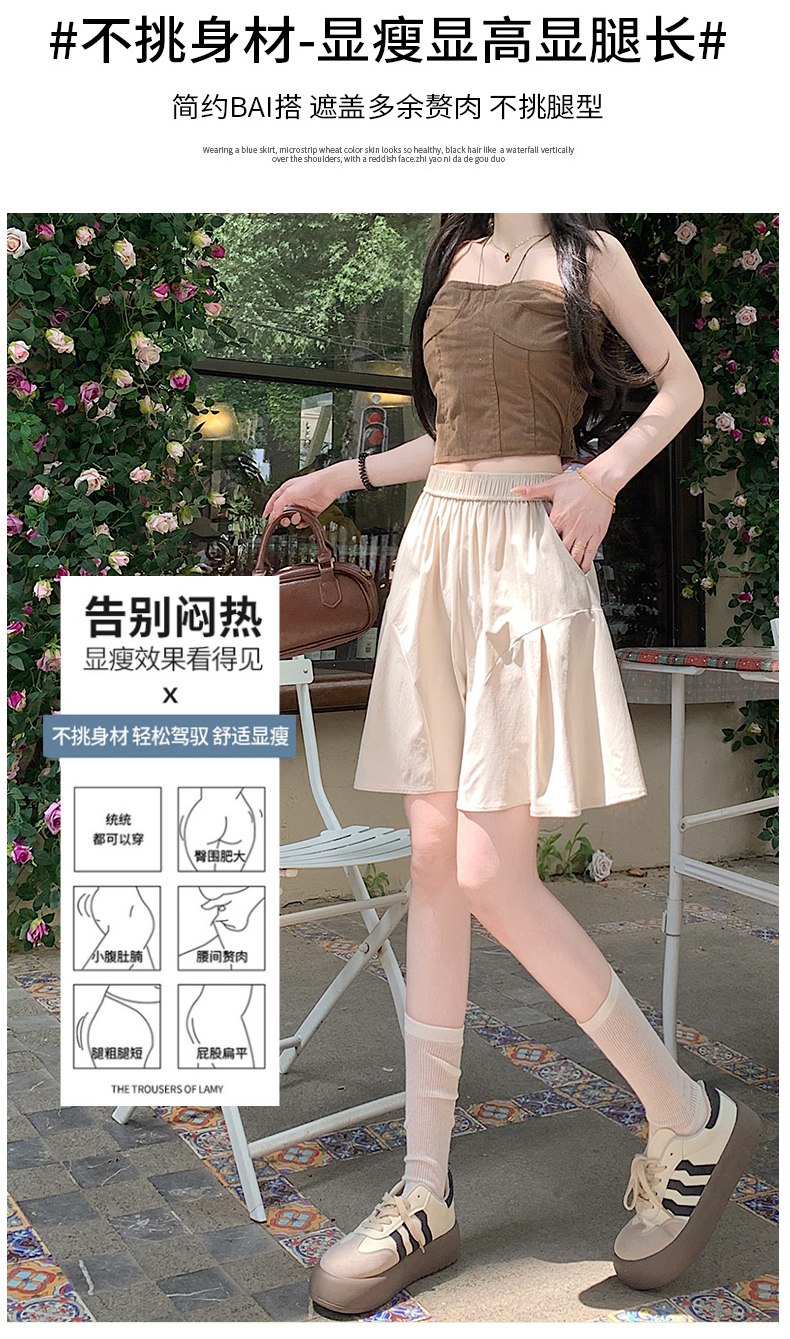 RY3943# 夏季薄款时尚休闲冰丝弹力阔腿五分裙裤