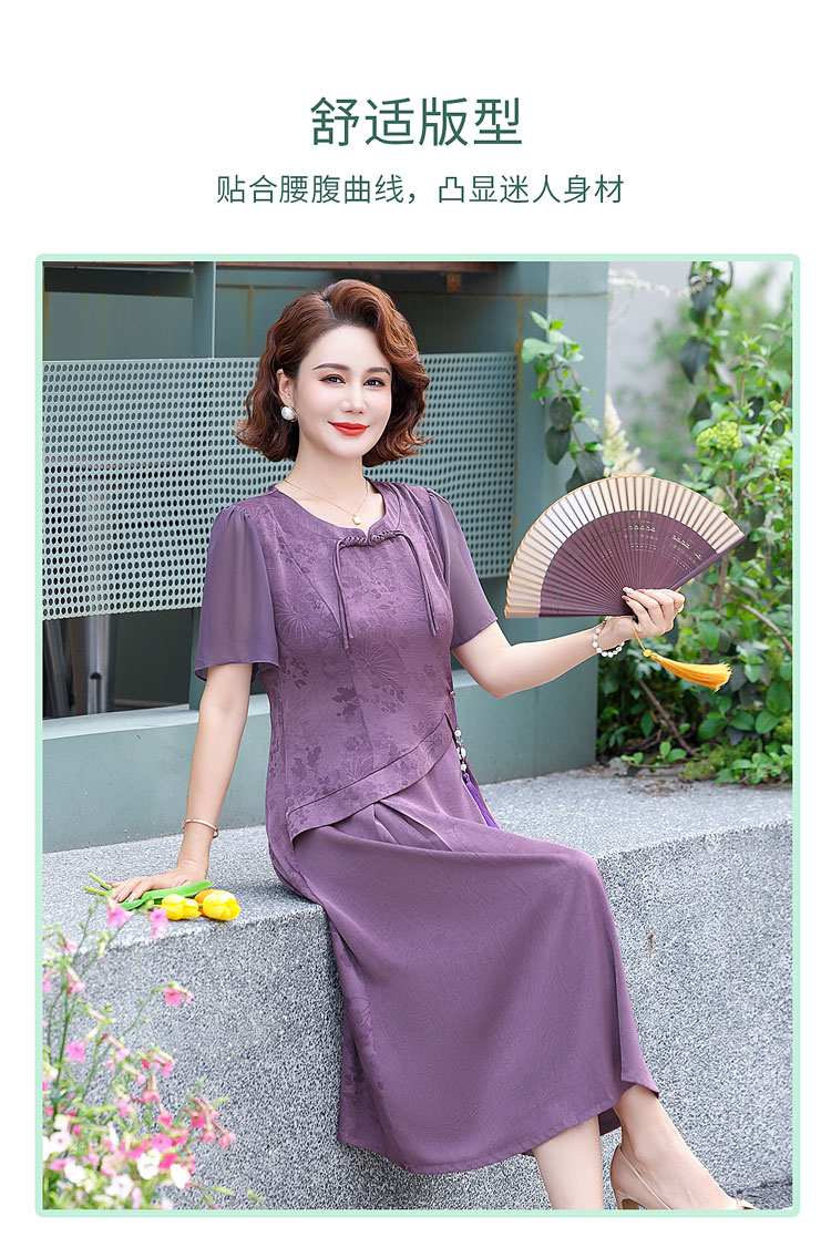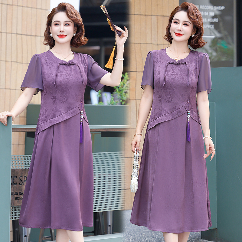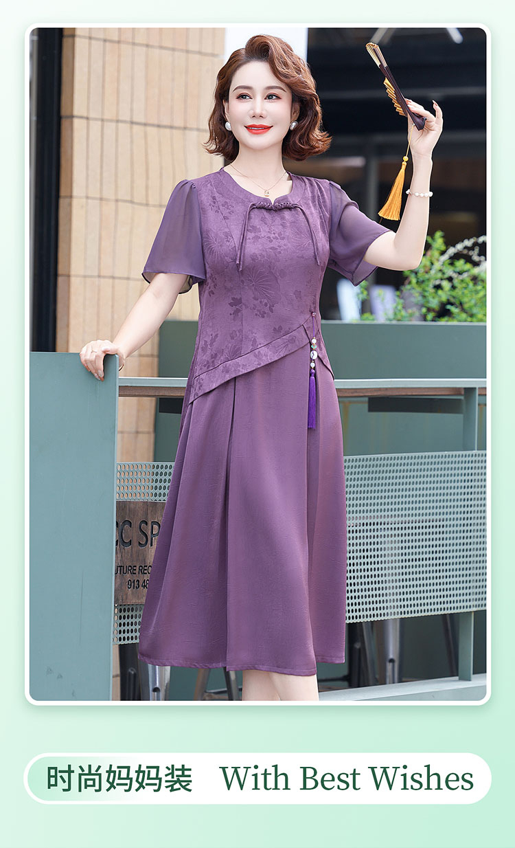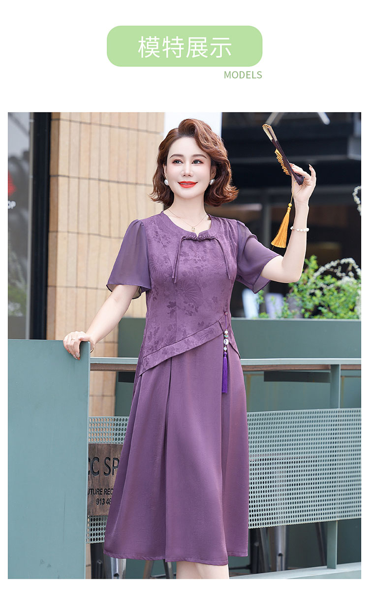 RY3958# 气质妈妈夏装国风改良旗袍连衣裙阔太太高贵裙子中老年女洋气短袖