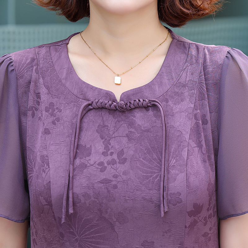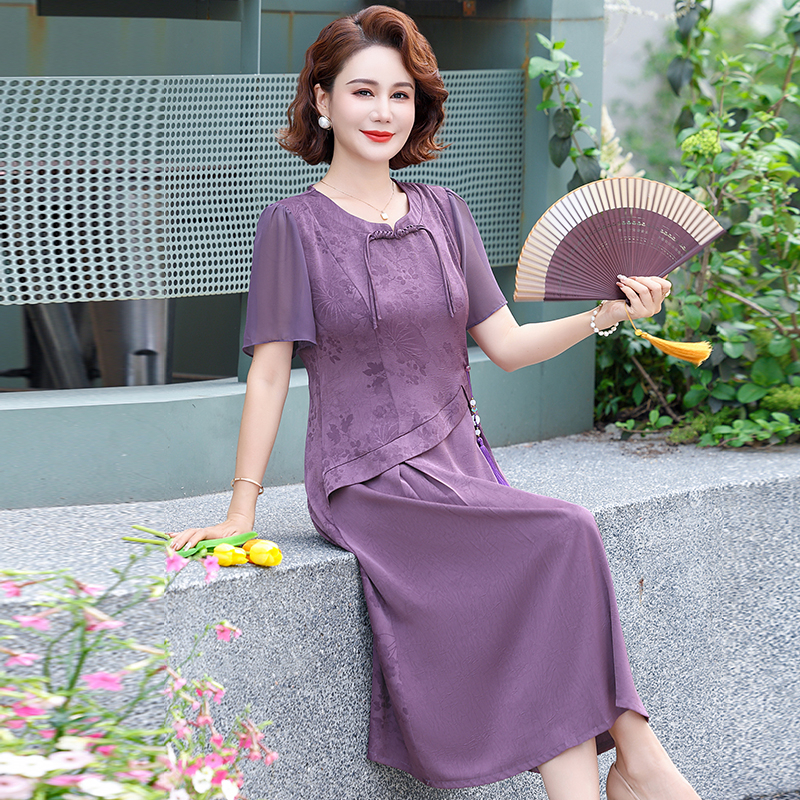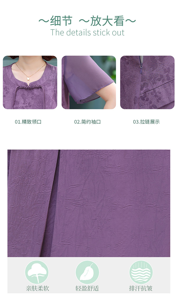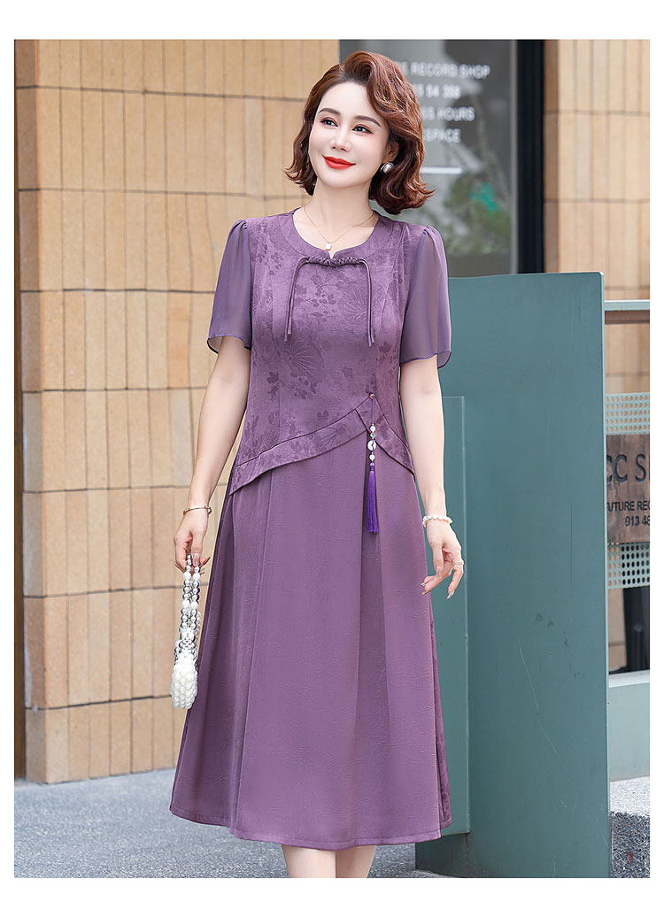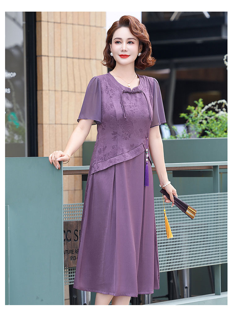 RY3958# 气质妈妈夏装国风改良旗袍连衣裙阔太太高贵裙子中老年女洋气短袖