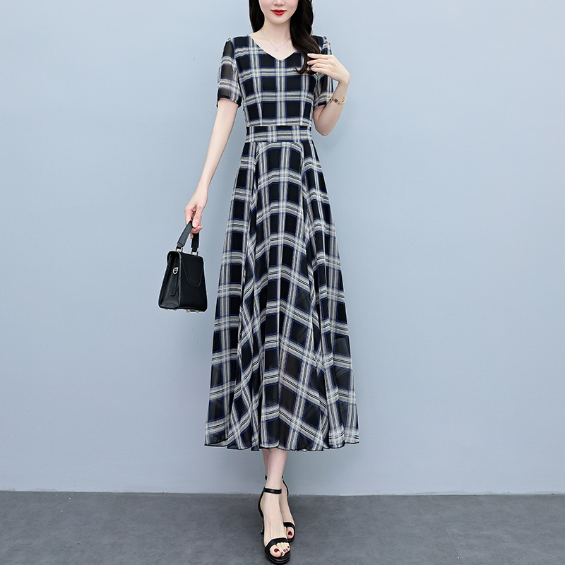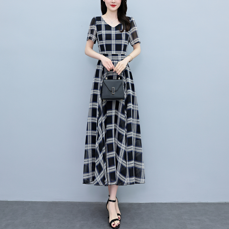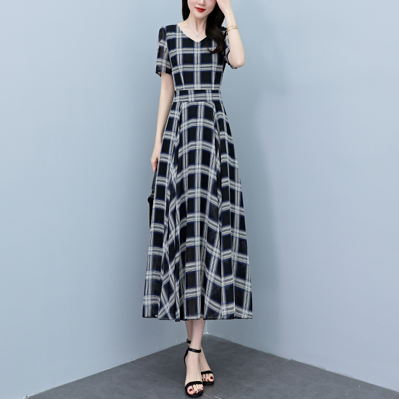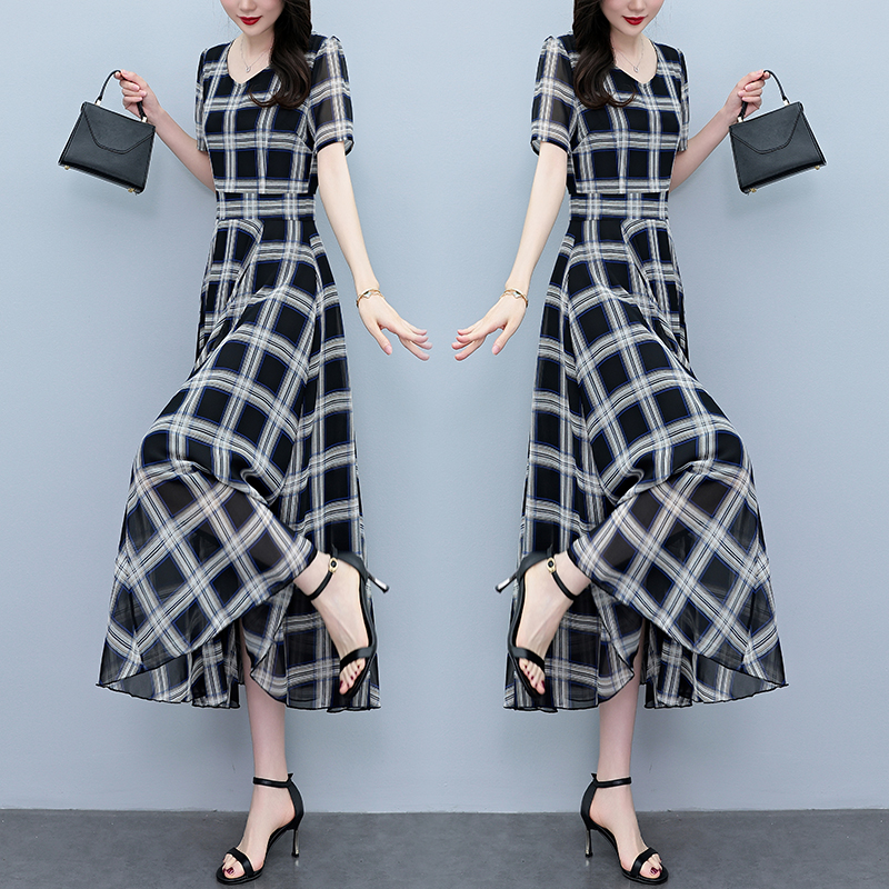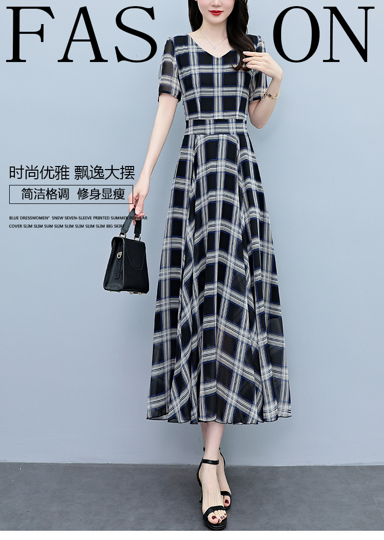 RY3964# 2026夏季新款印花雪纺连衣裙女夏长款大码胖mm显瘦印花遮肚长裙子