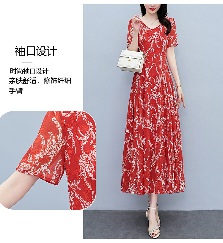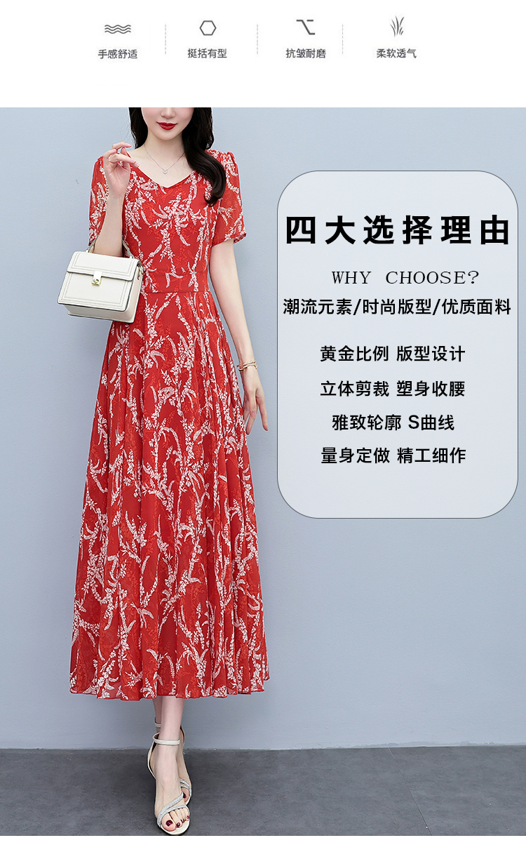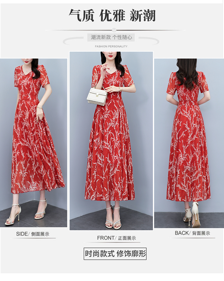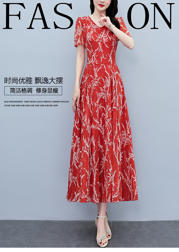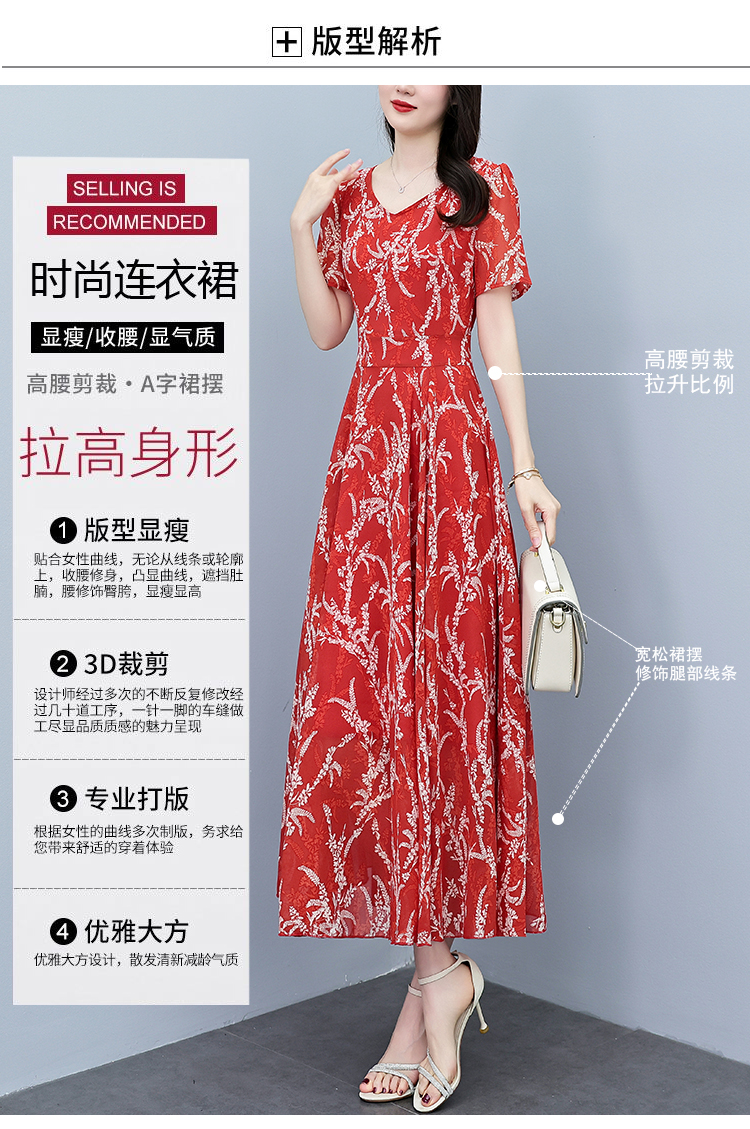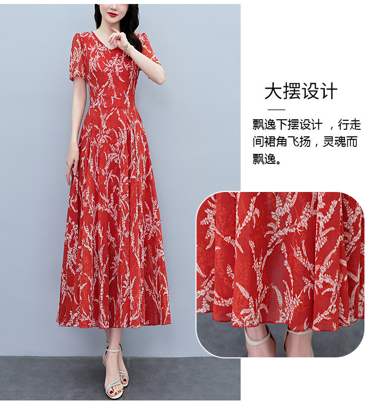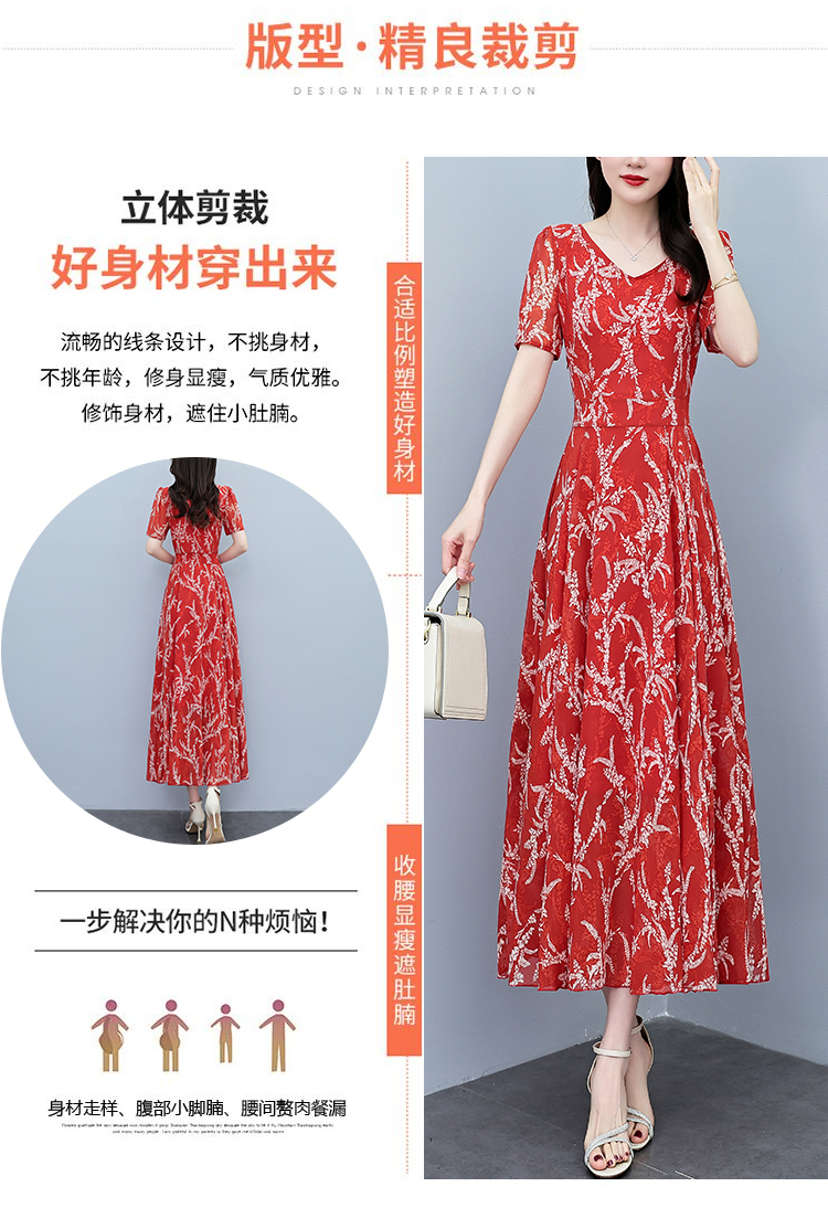 RY3965# 2026夏季新款印花雪纺连衣裙女夏长款大码胖mm显瘦印花遮肚长裙子