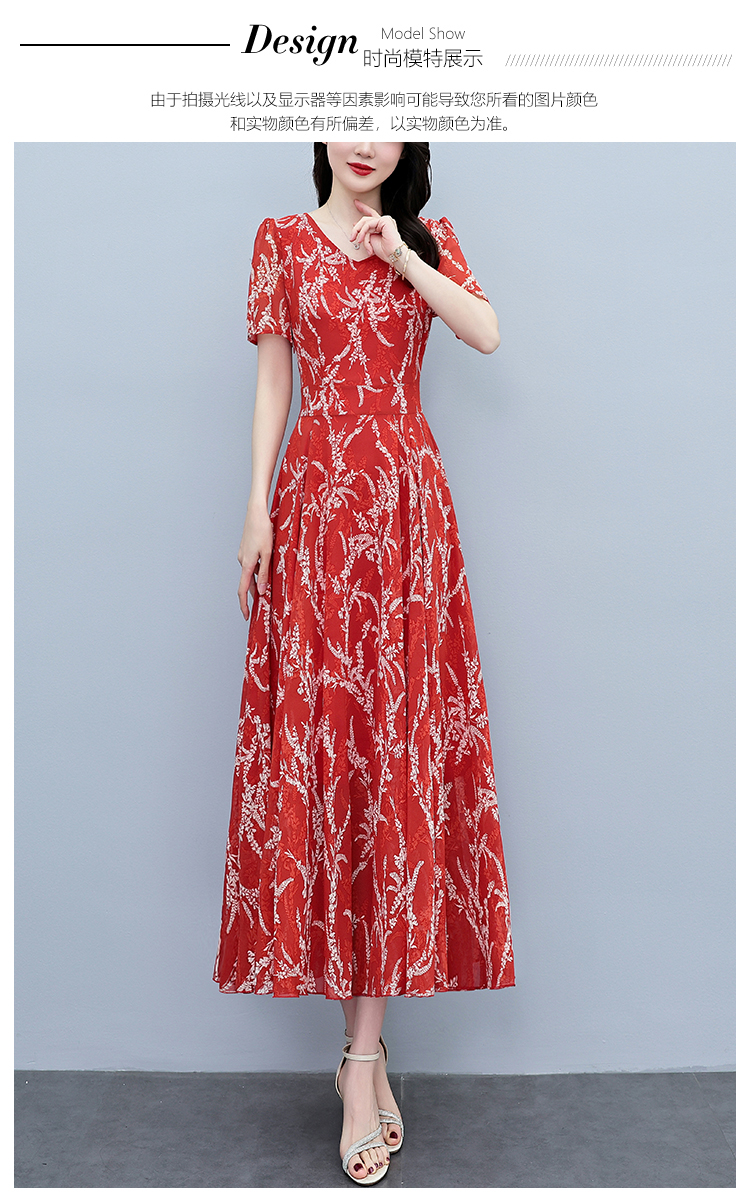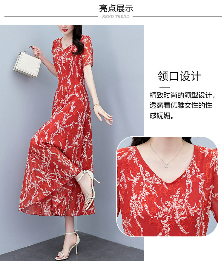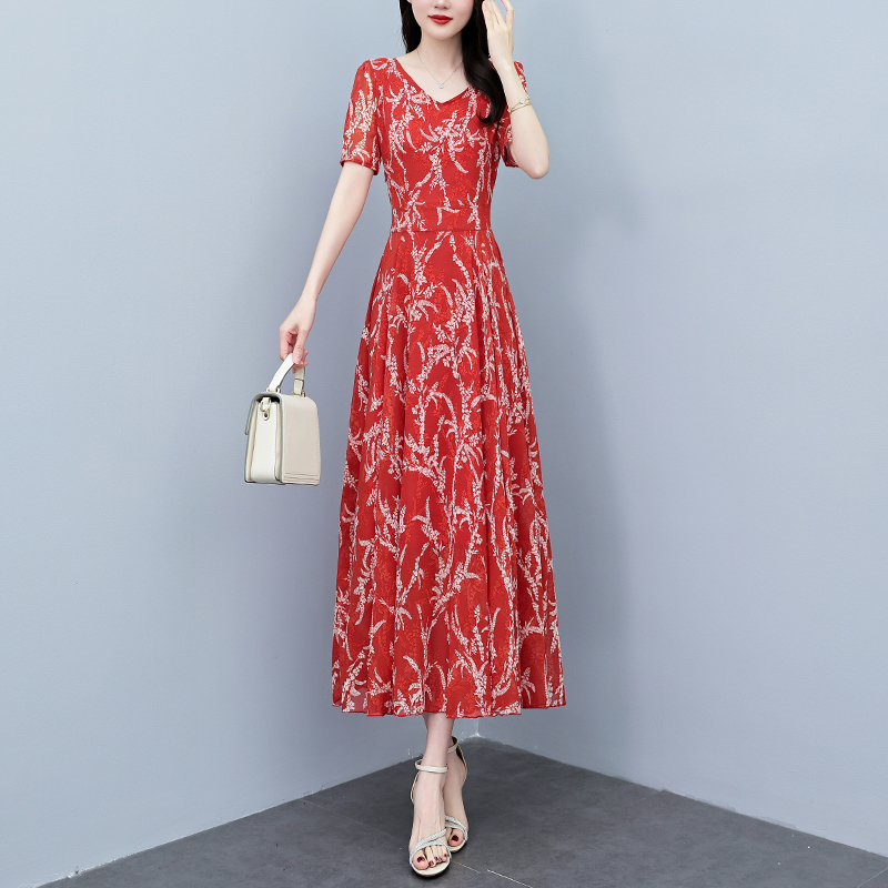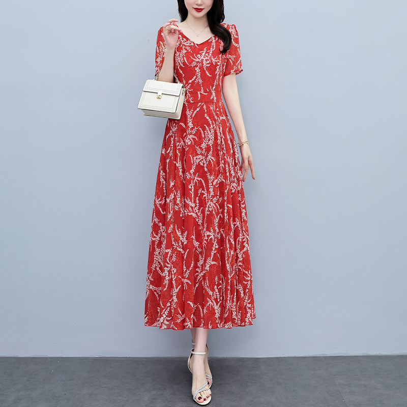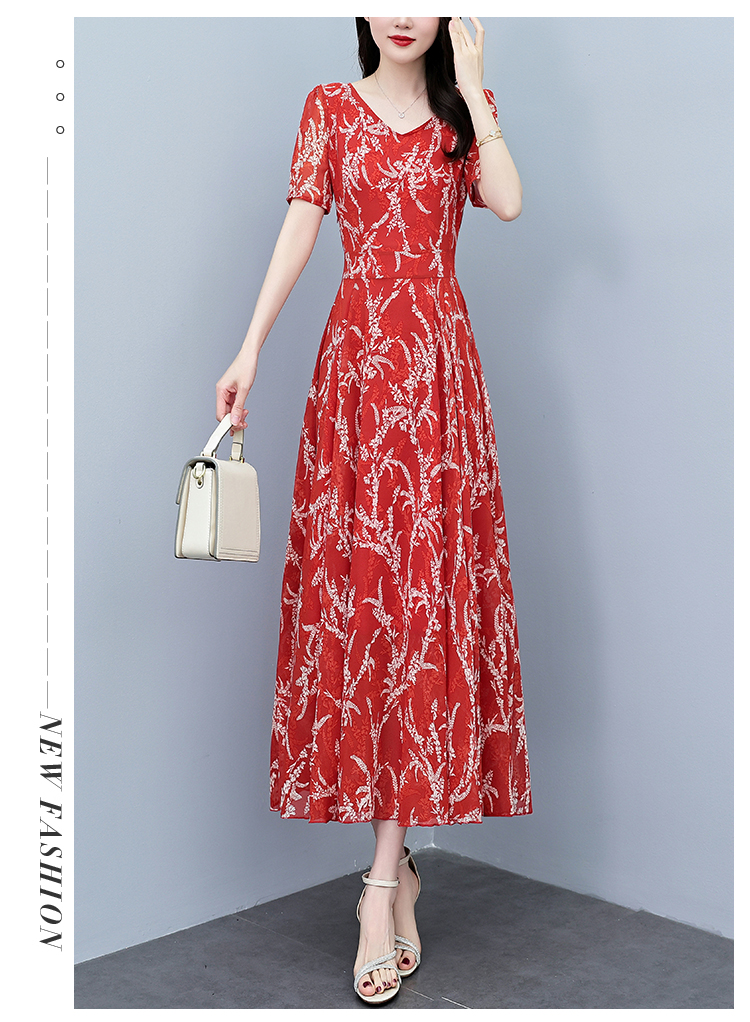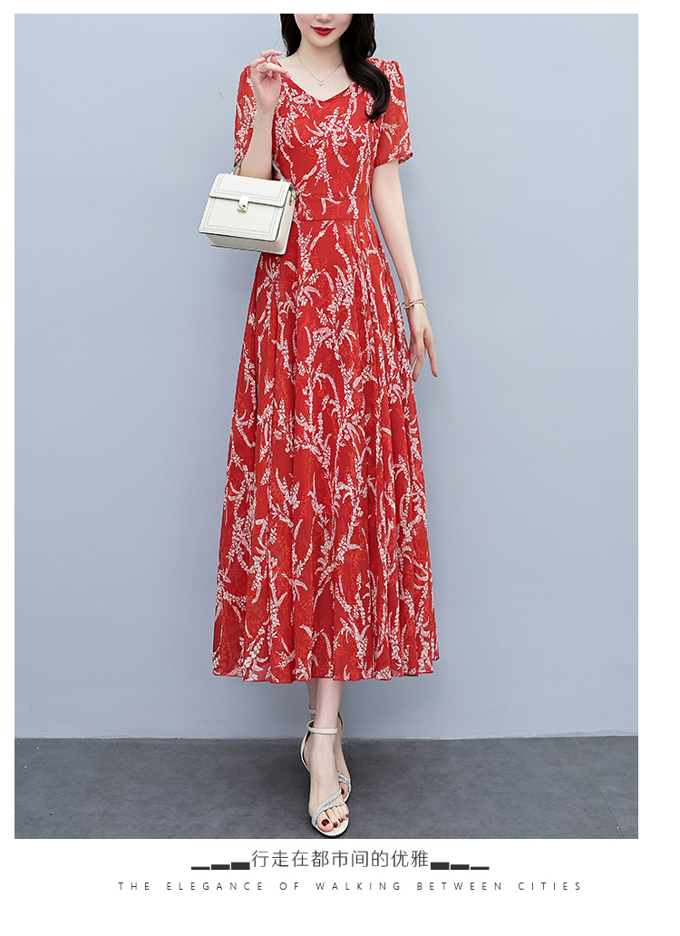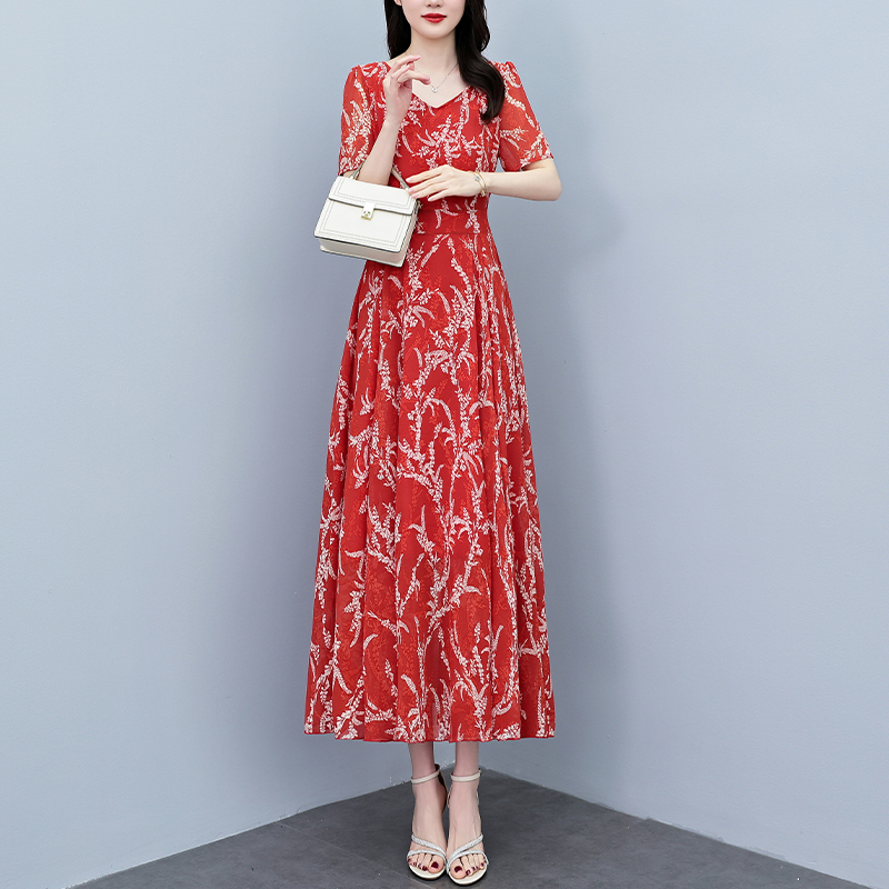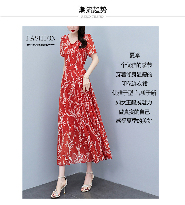 RY3965# 2026夏季新款印花雪纺连衣裙女夏长款大码胖mm显瘦印花遮肚长裙子