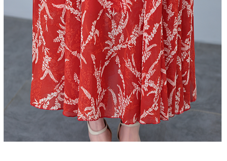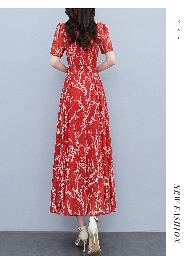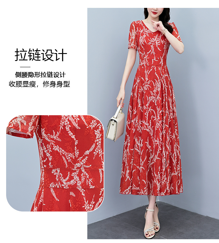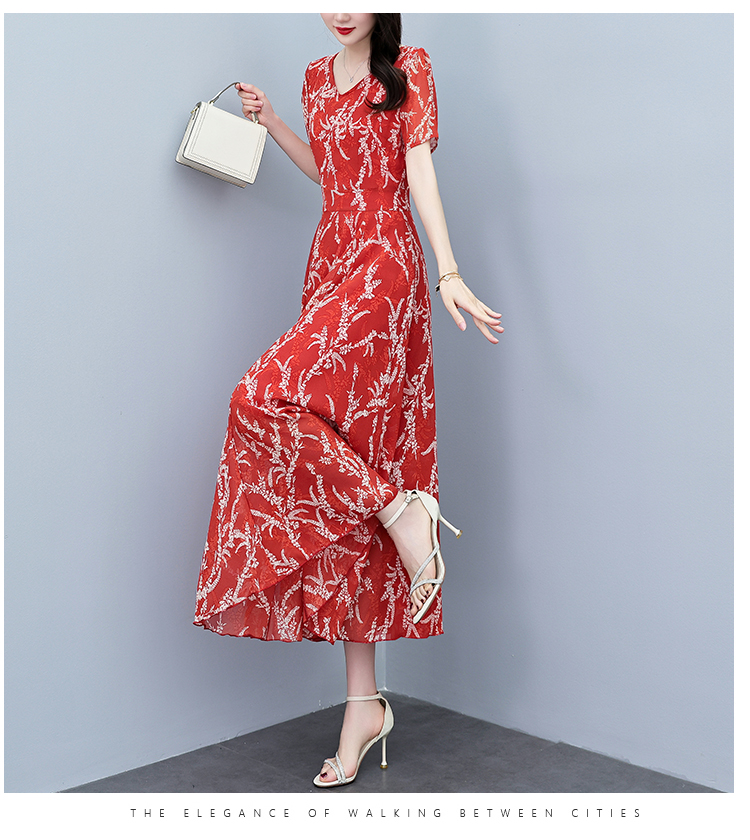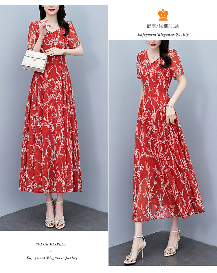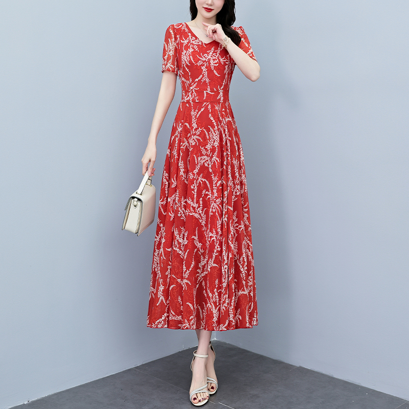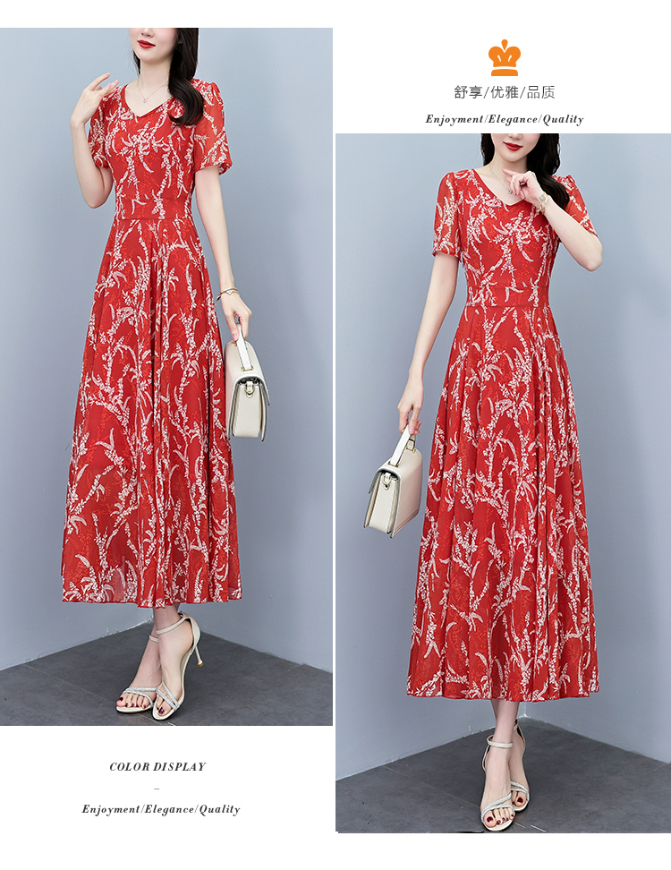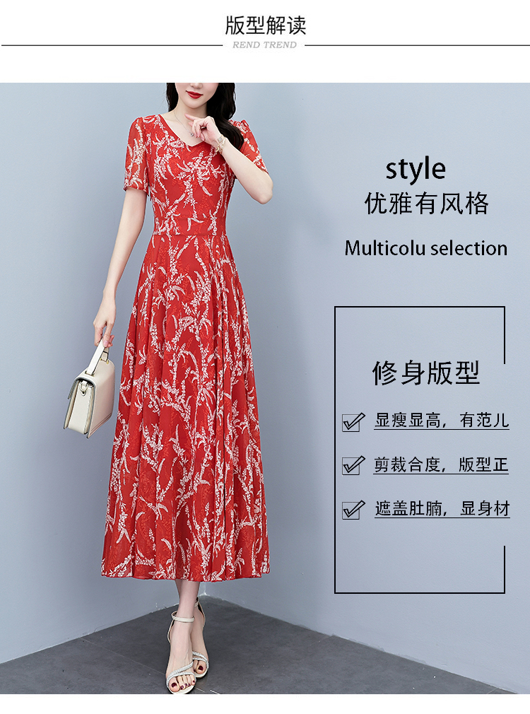 RY3965# 2026夏季新款印花雪纺连衣裙女夏长款大码胖mm显瘦印花遮肚长裙子