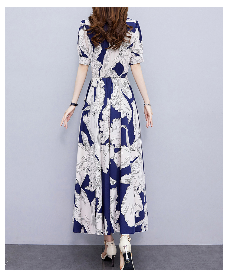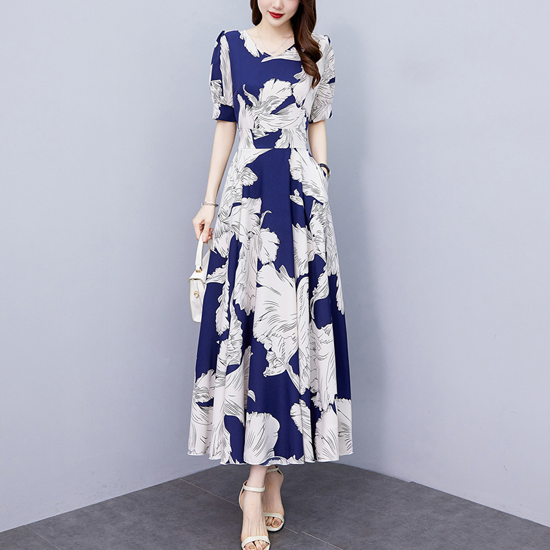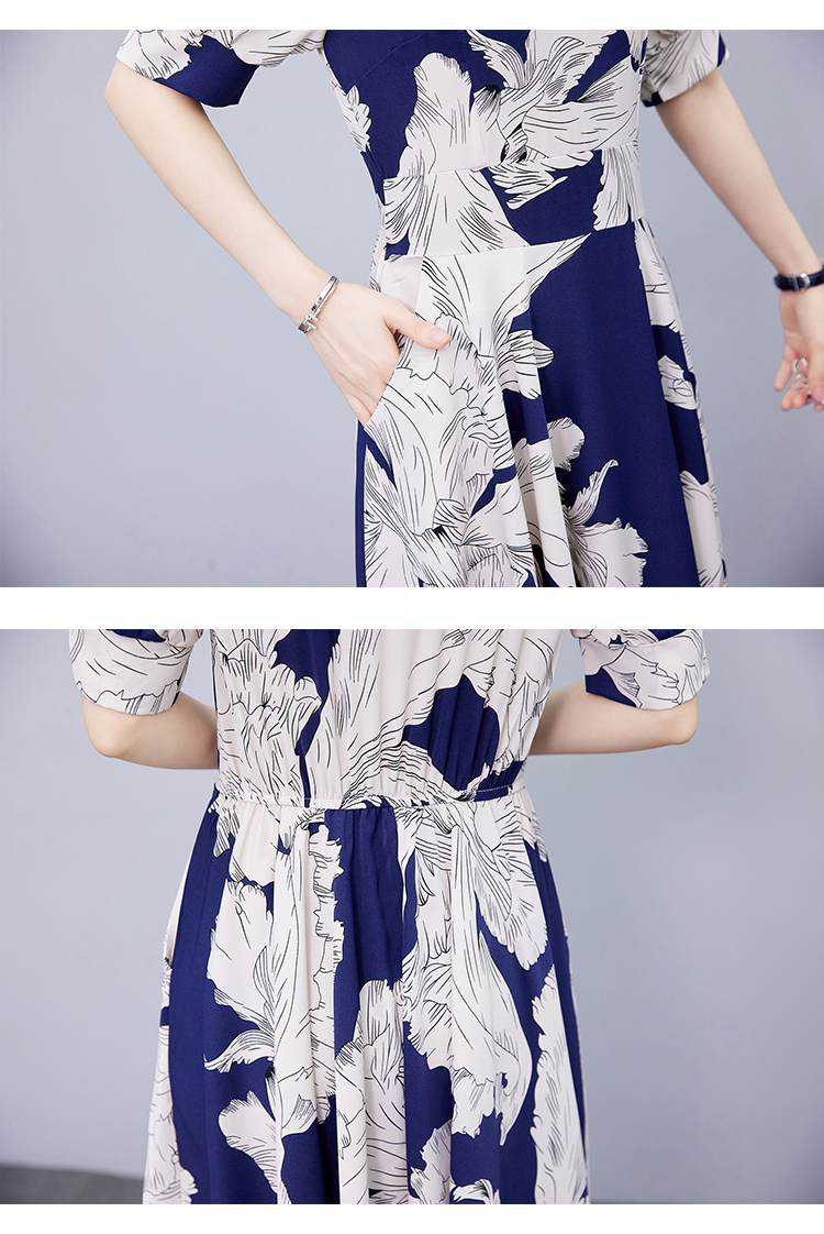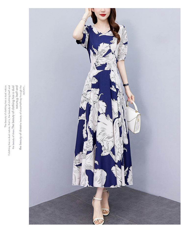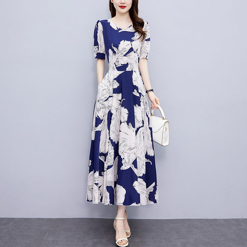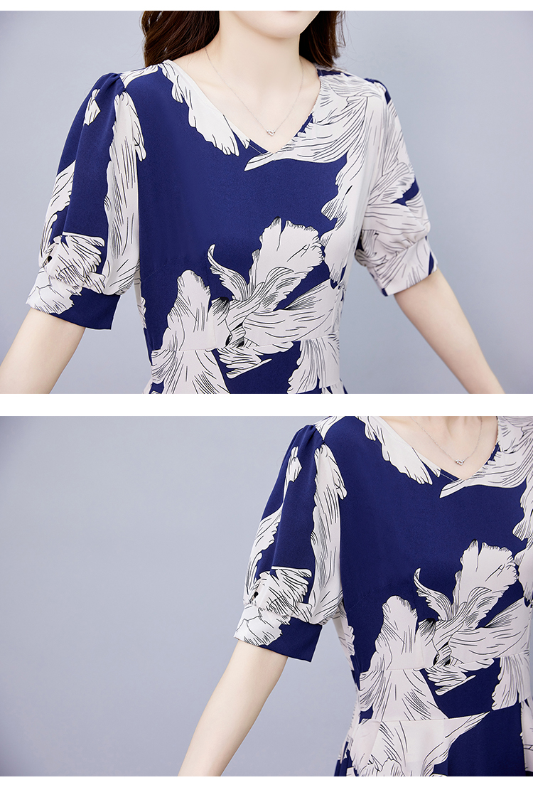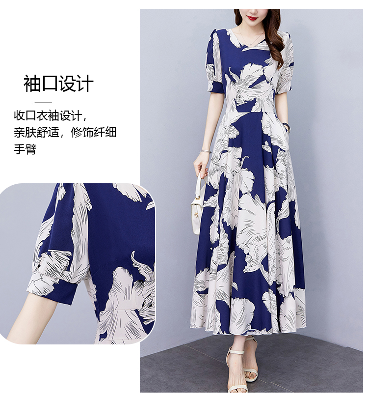RY3962# 圆点波点雪纺中长款修身显瘦黑色气质大码女装胖mm短袖连衣裙...