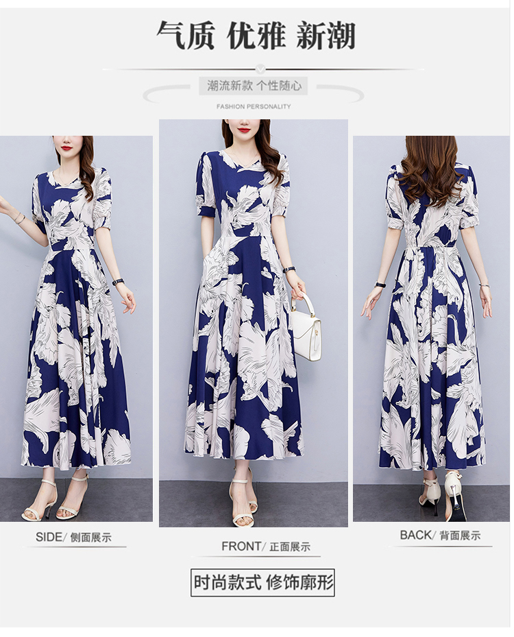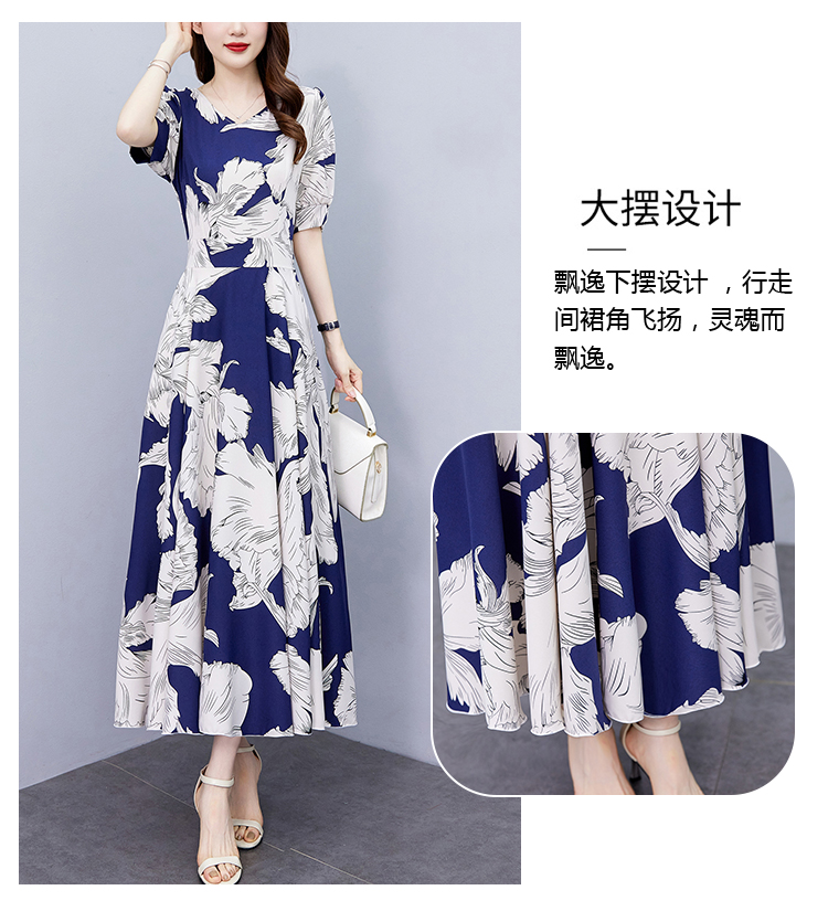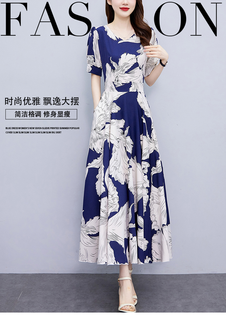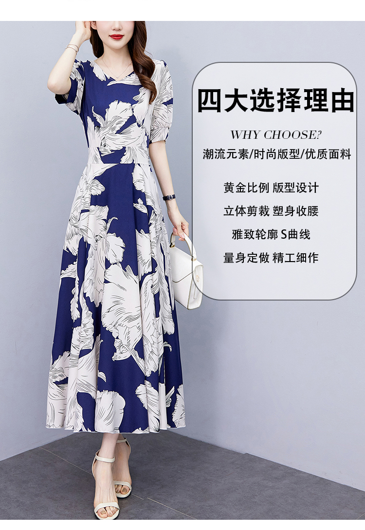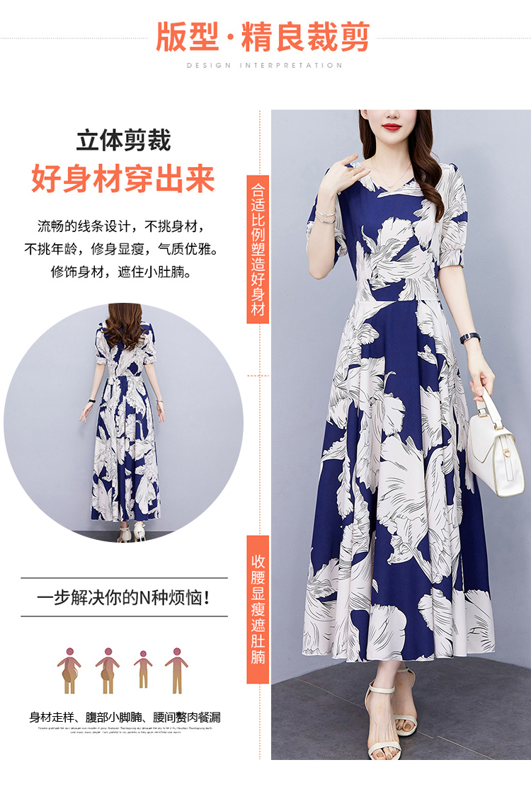 RY3966# 实拍#连衣裙女夏长款2026夏季新款缎面大码胖mm收腰显瘦过膝长裙