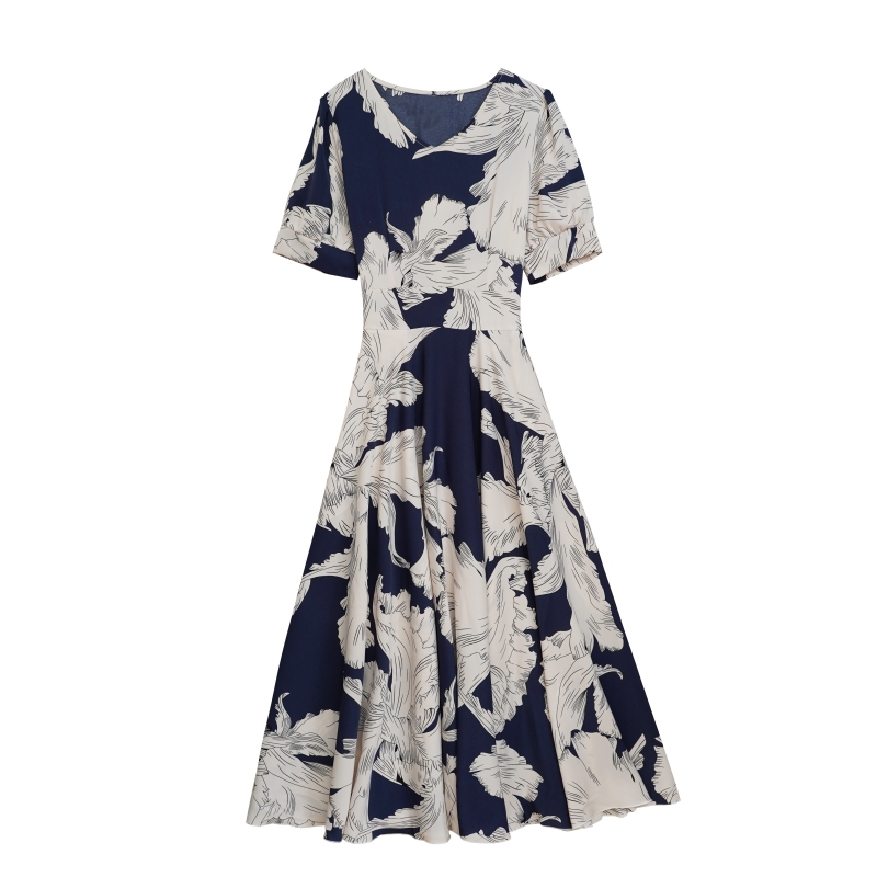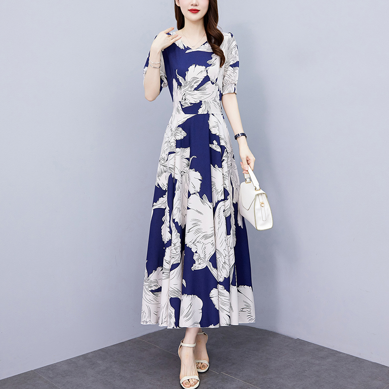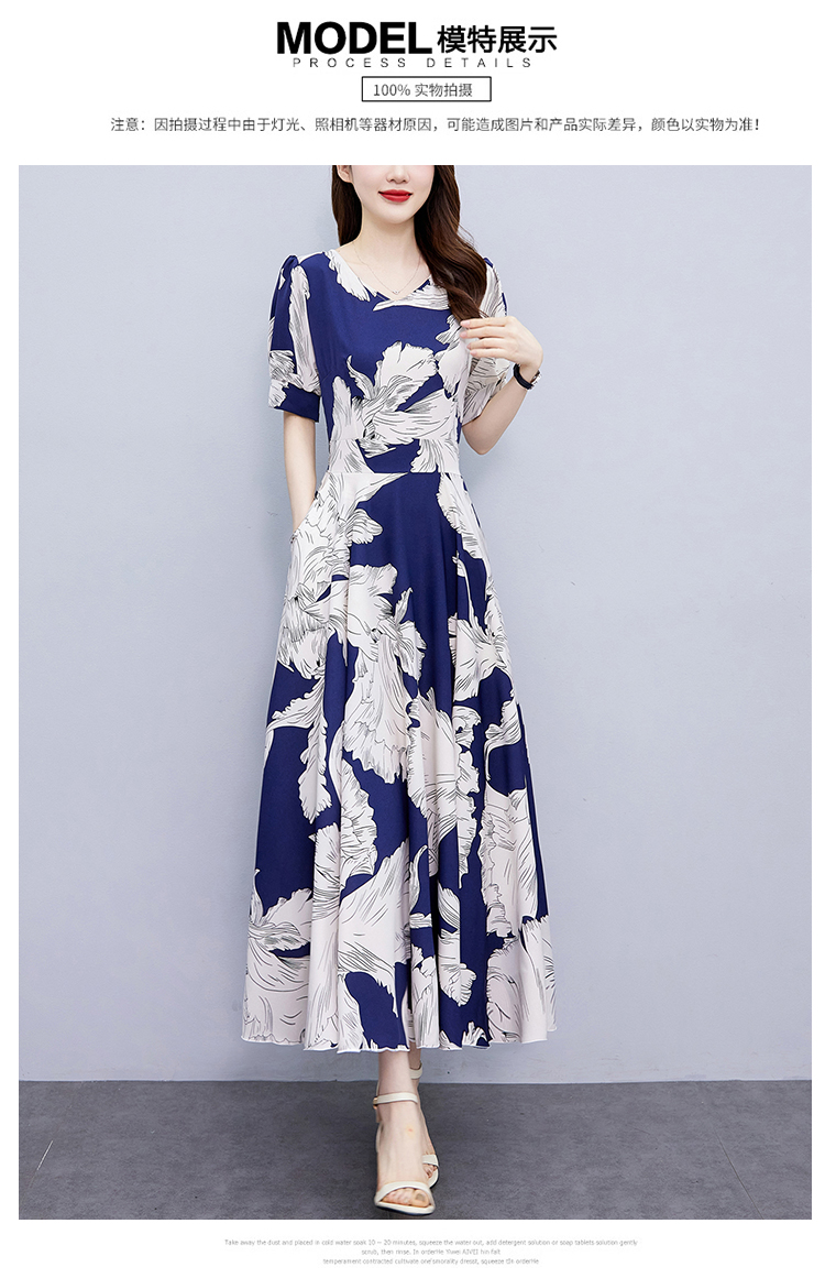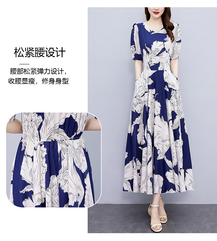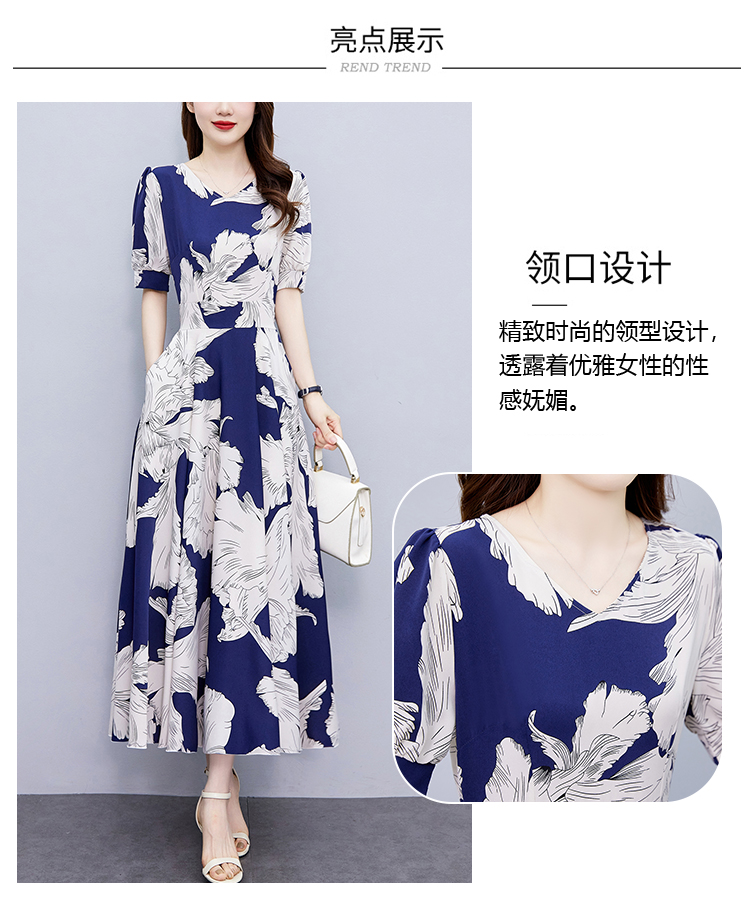 RY3966# 实拍#连衣裙女夏长款2026夏季新款缎面大码胖mm收腰显瘦过膝长裙