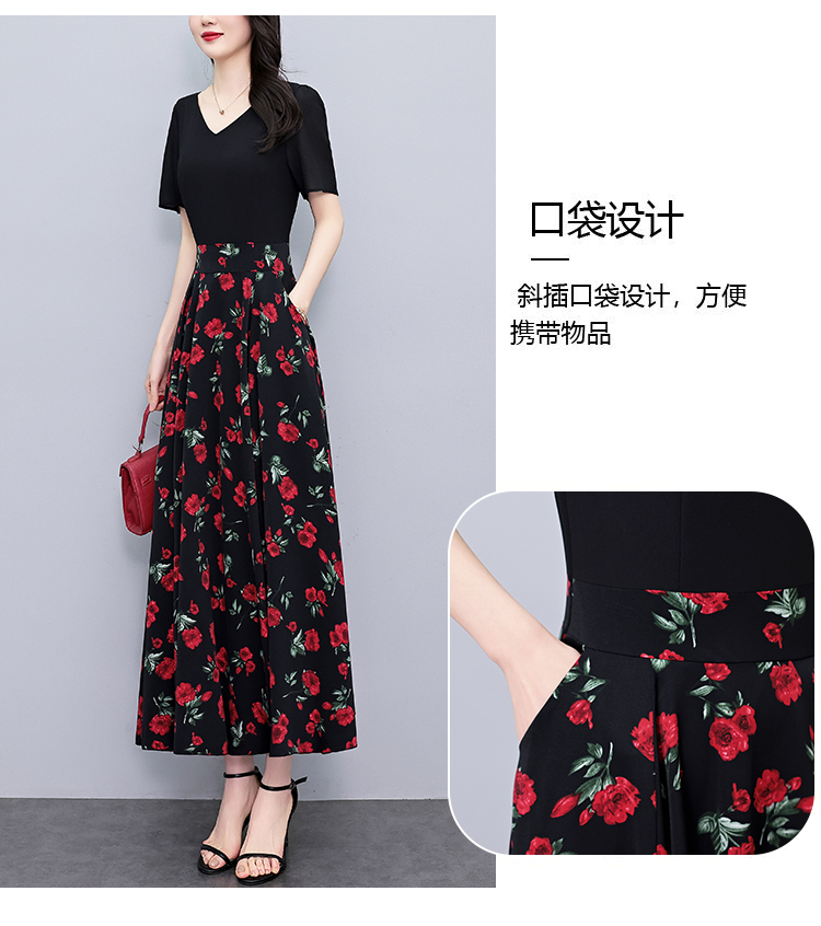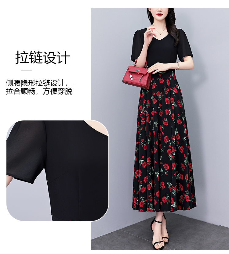 RY3983# 2026夏季大码女装胖mm雪纺碎花短袖修身显瘦中年妈妈遮肚...
