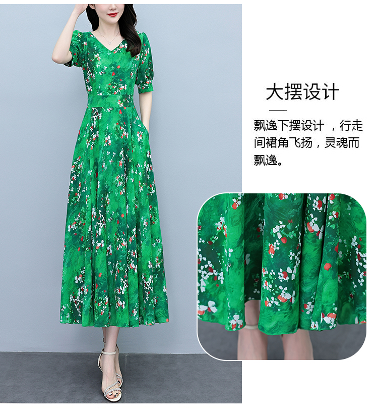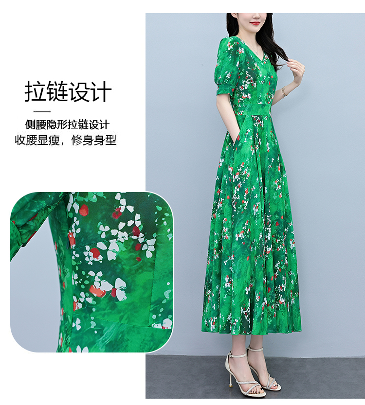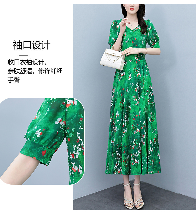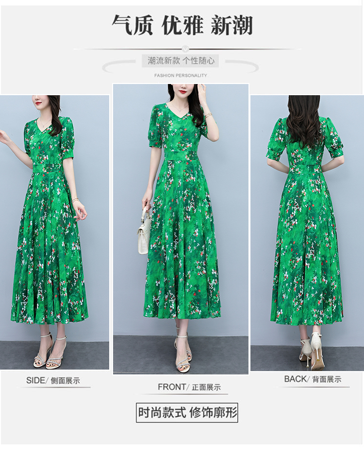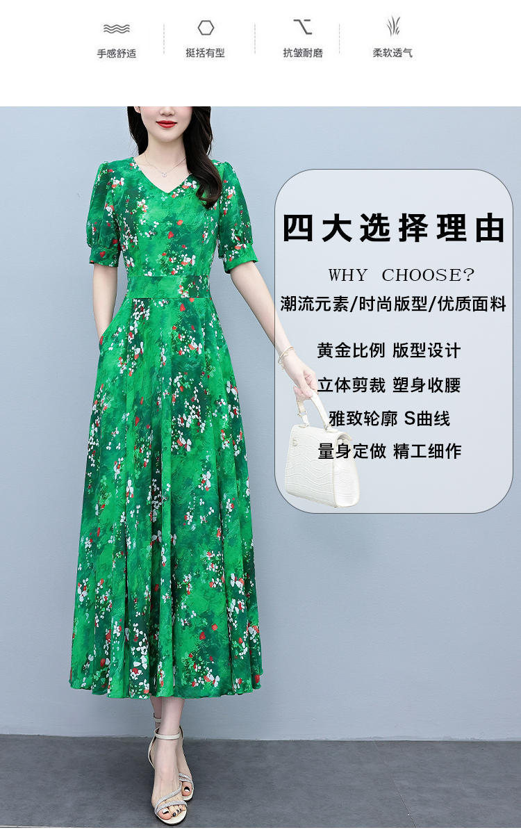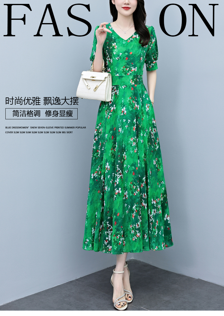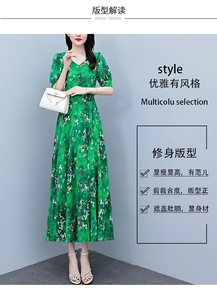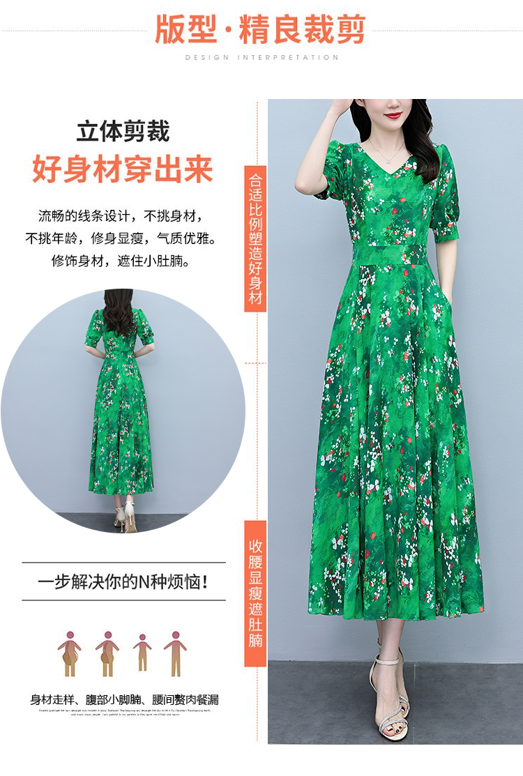 RY3971# 真丝连衣裙女夏长款2026夏季新款缎面大码胖mm收腰显瘦过膝长裙子