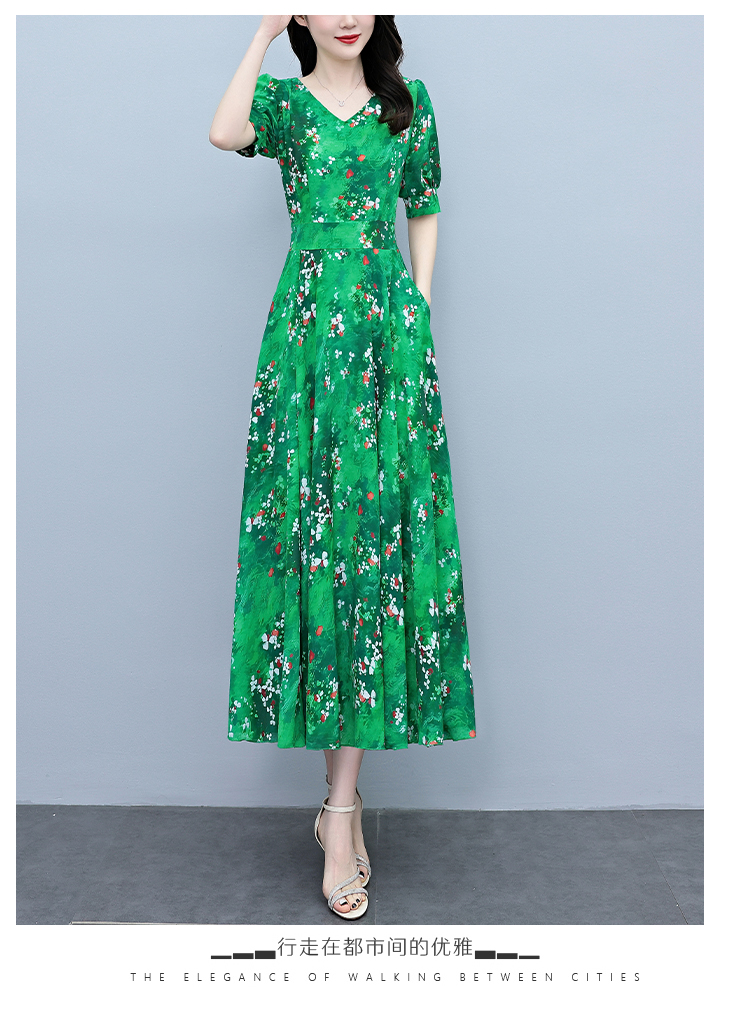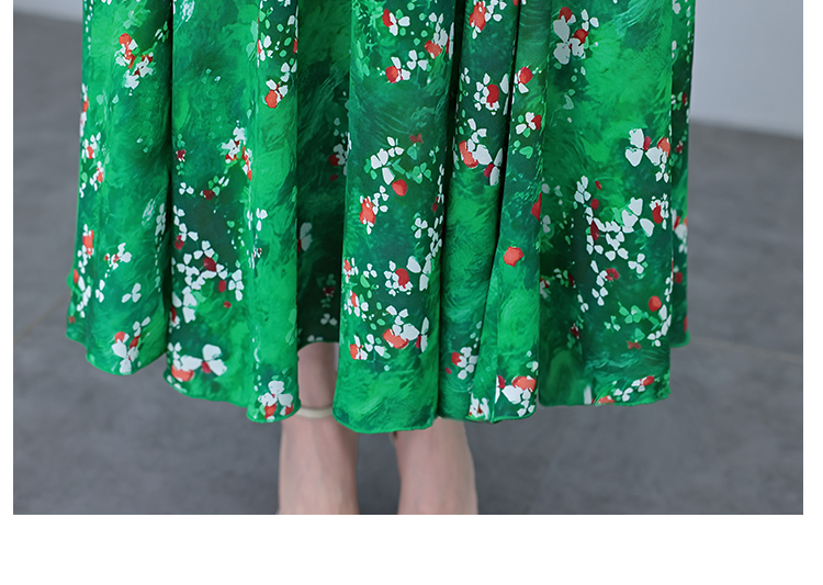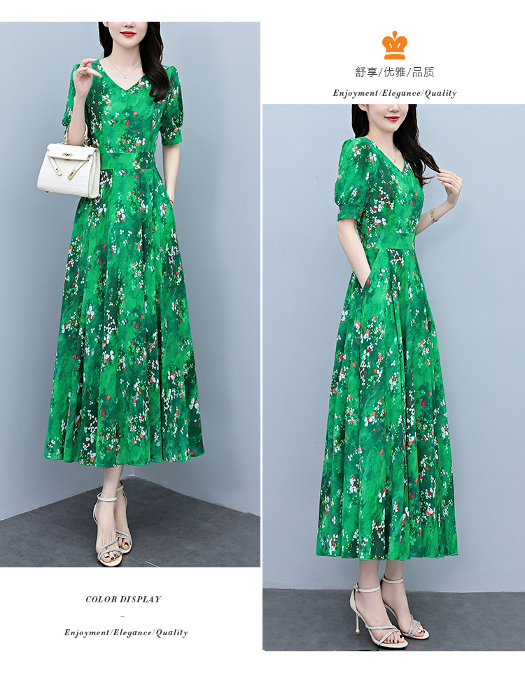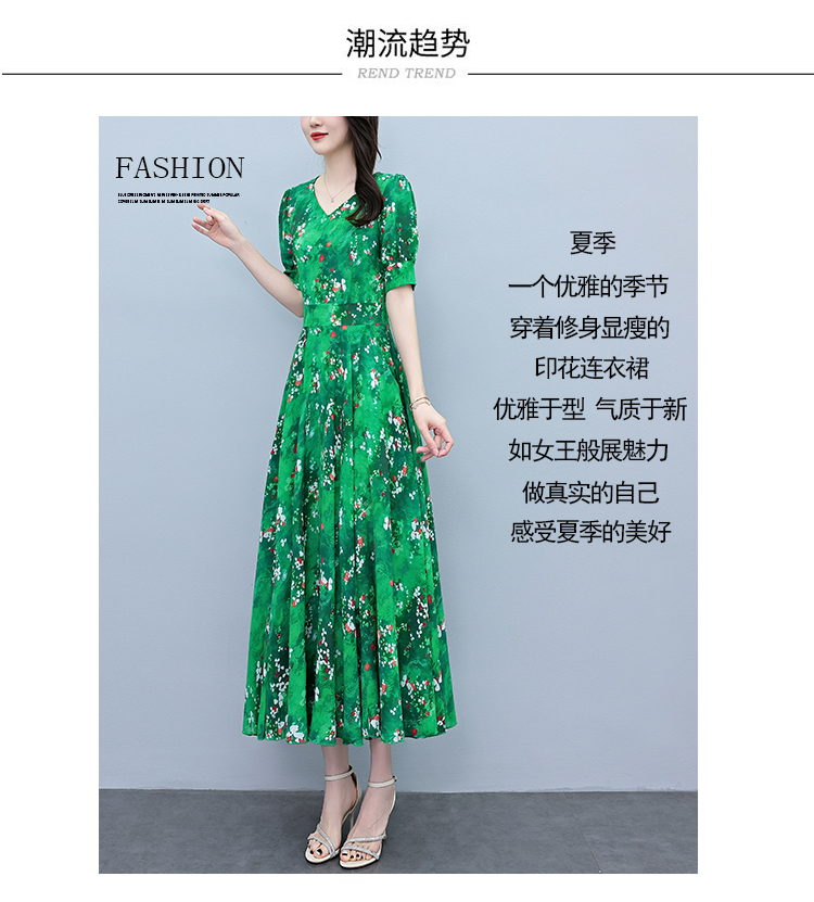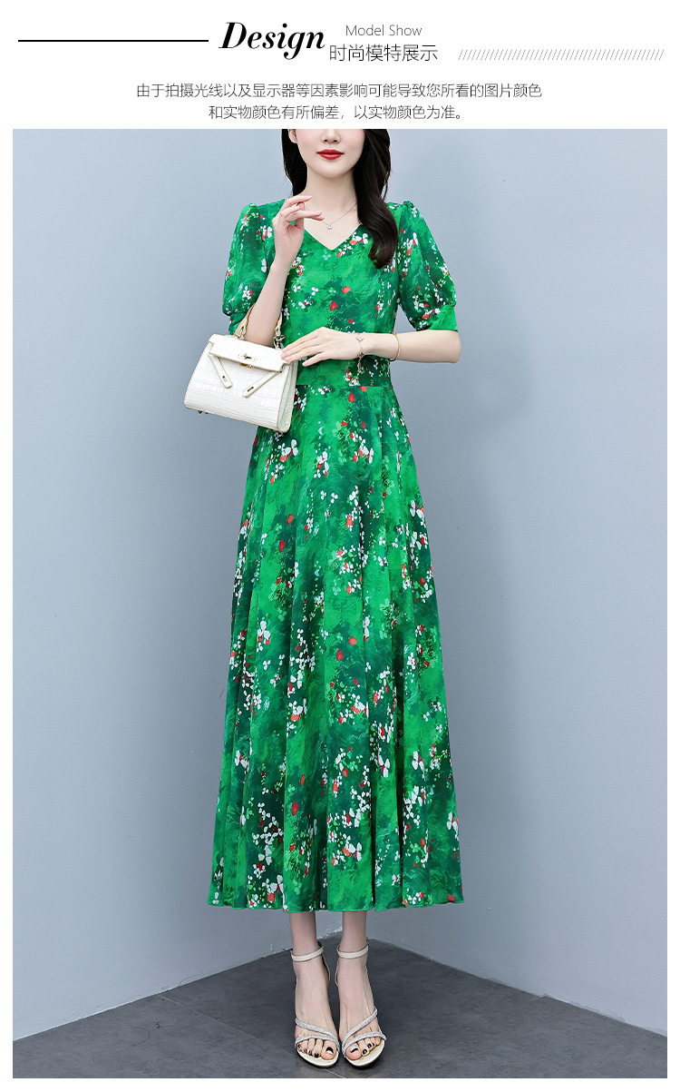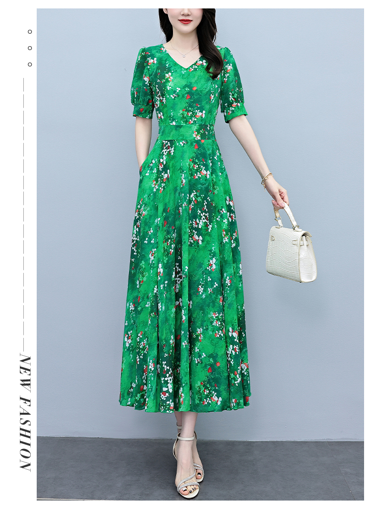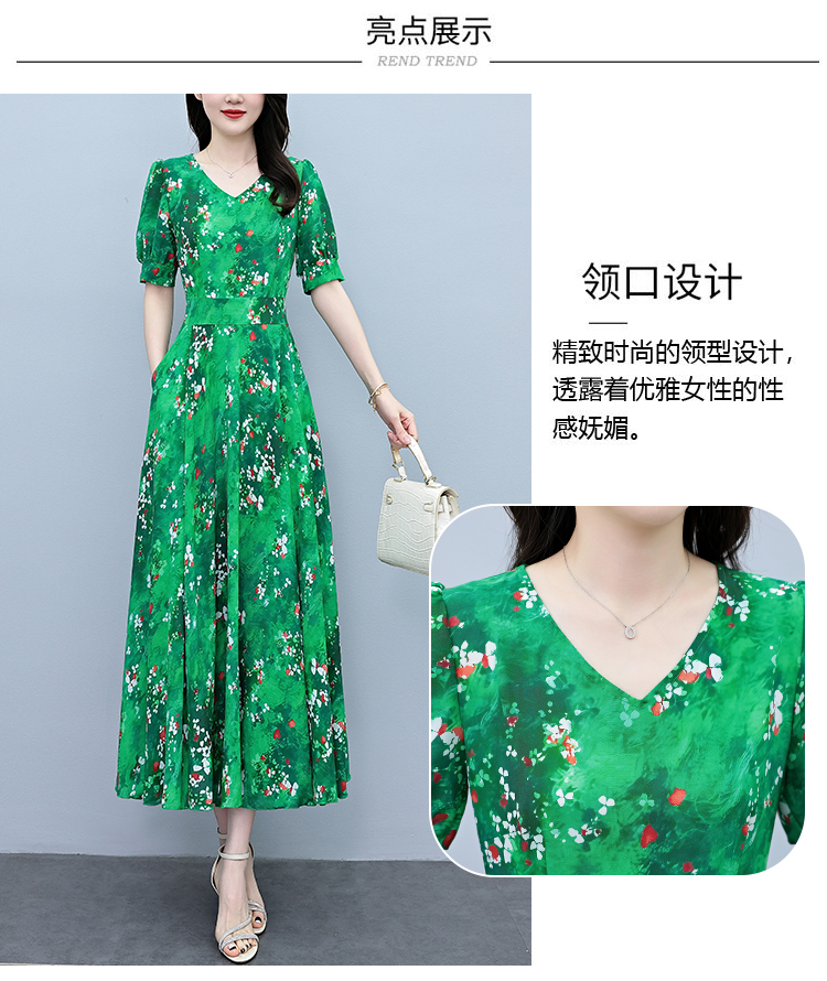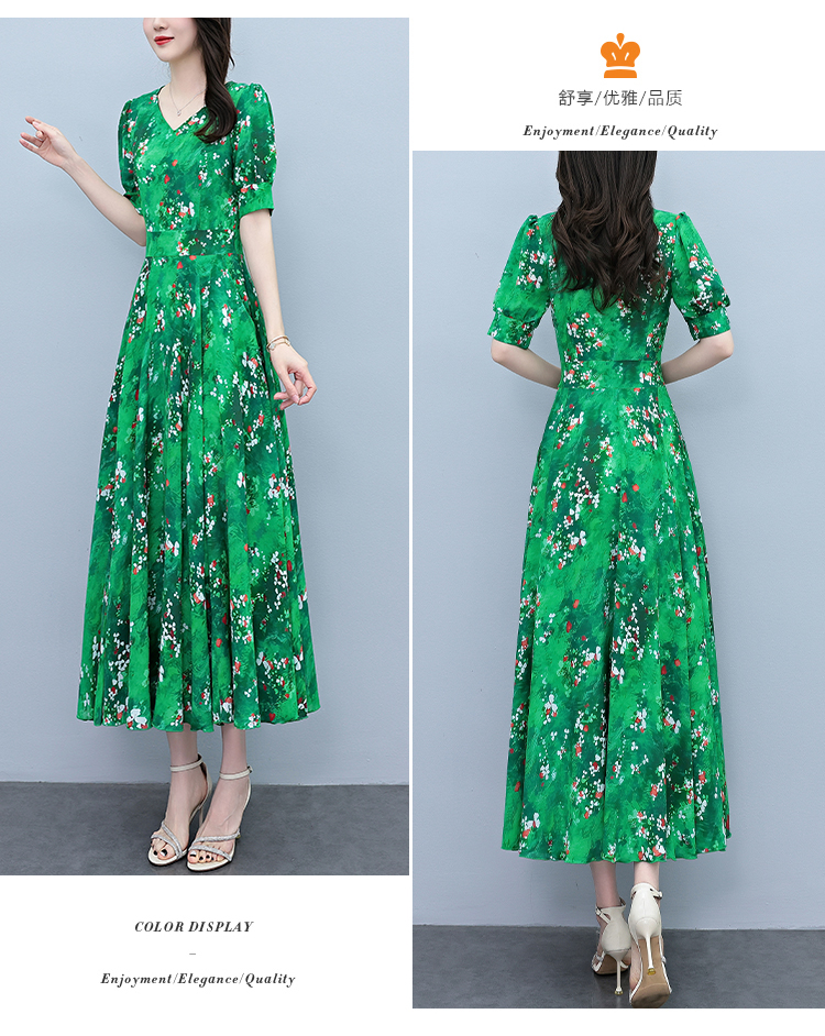 RY3971# 真丝连衣裙女夏长款2026夏季新款缎面大码胖mm收腰显瘦过膝长裙子