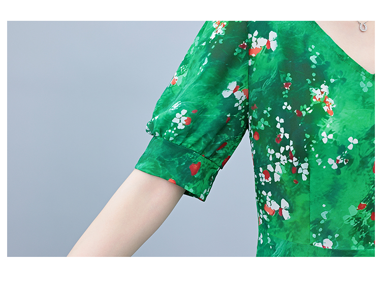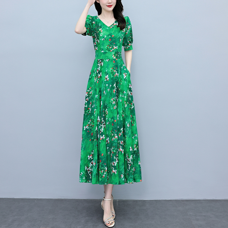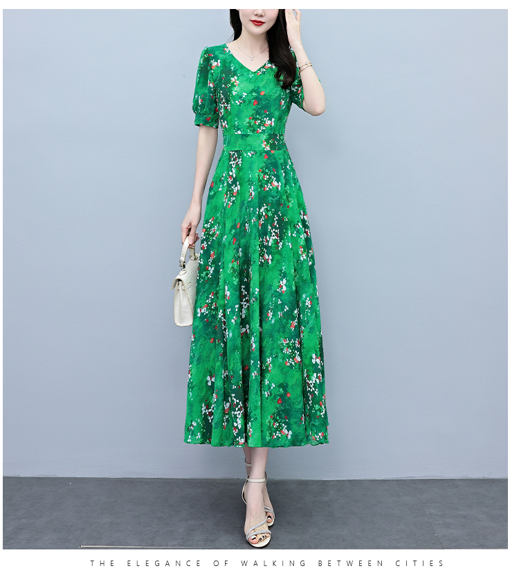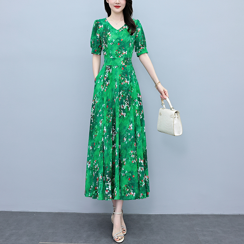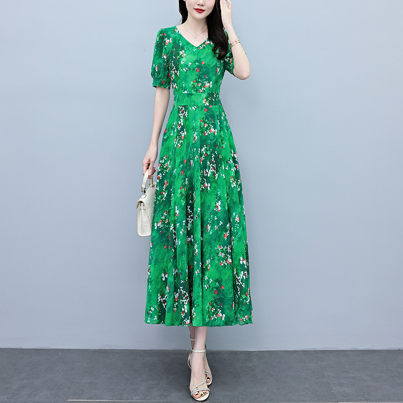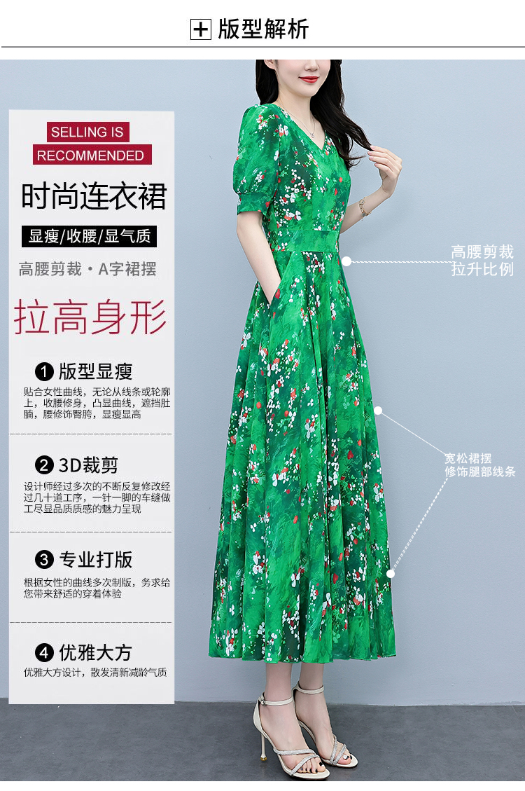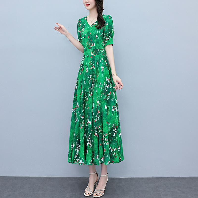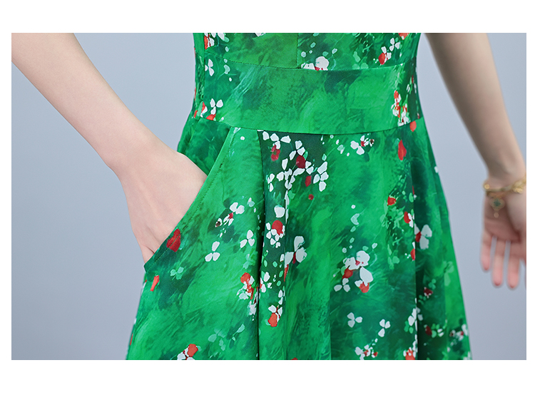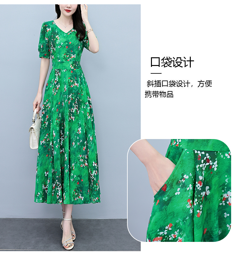 RY3971# 真丝连衣裙女夏长款2026夏季新款缎面大码胖mm收腰显瘦过膝长裙子