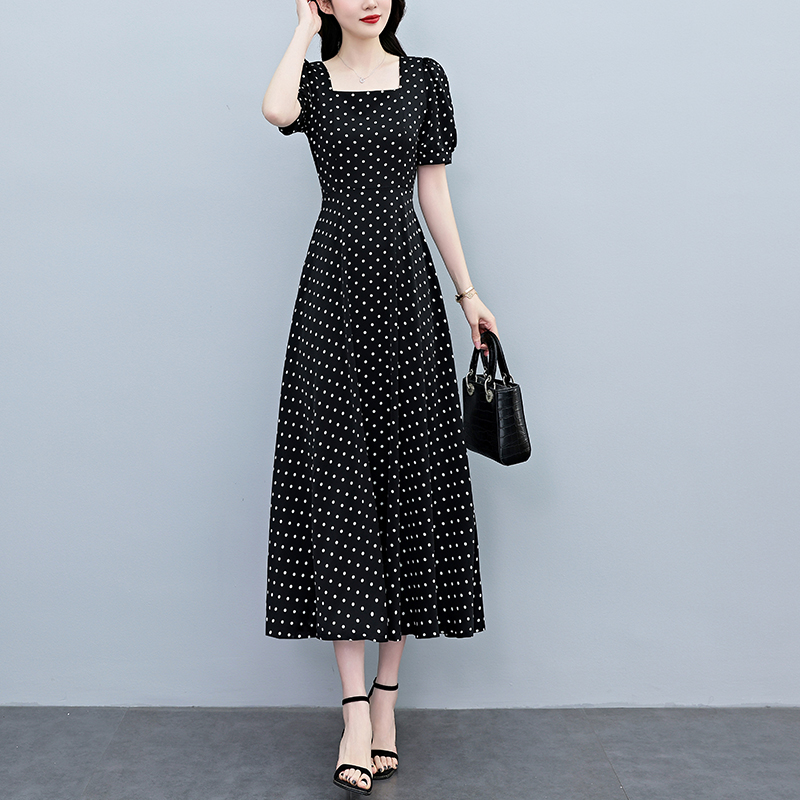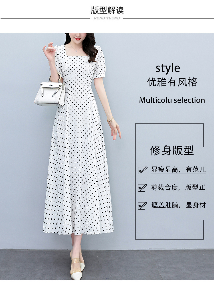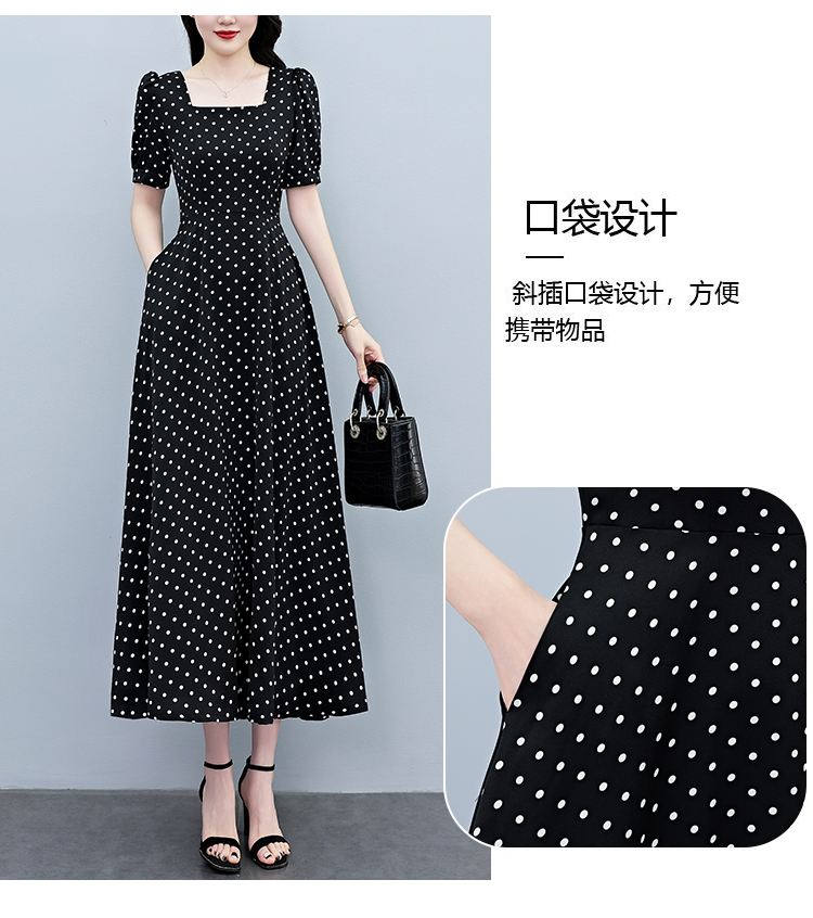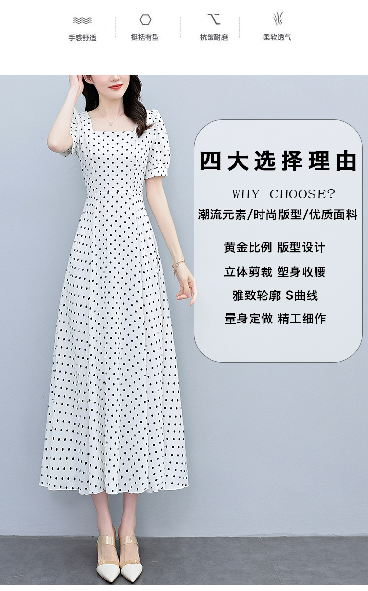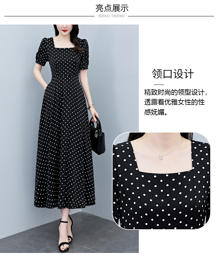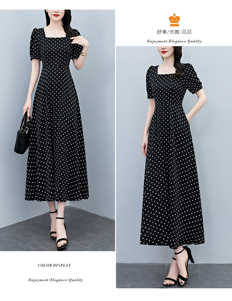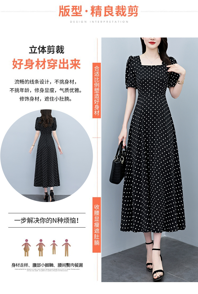 RY3972# 2026夏季新款波点连衣裙女夏长款缎面大码胖mm收腰显瘦过膝长裙子