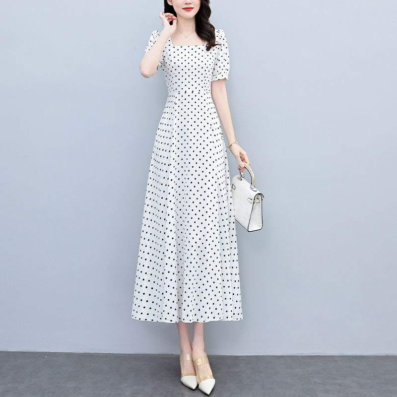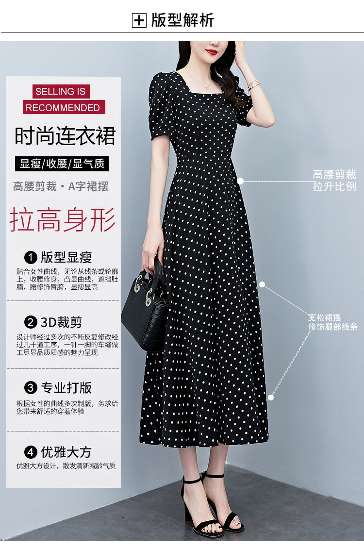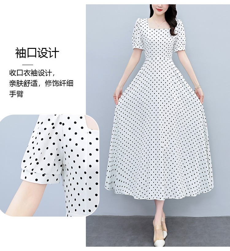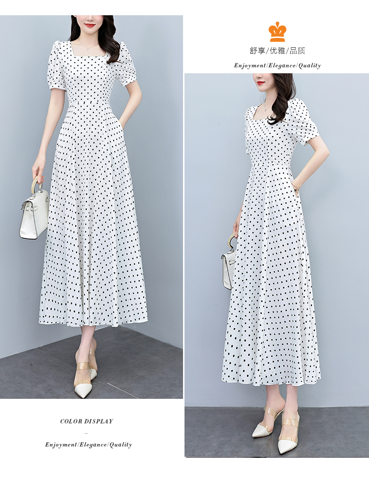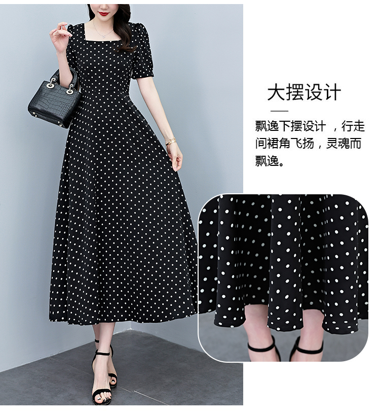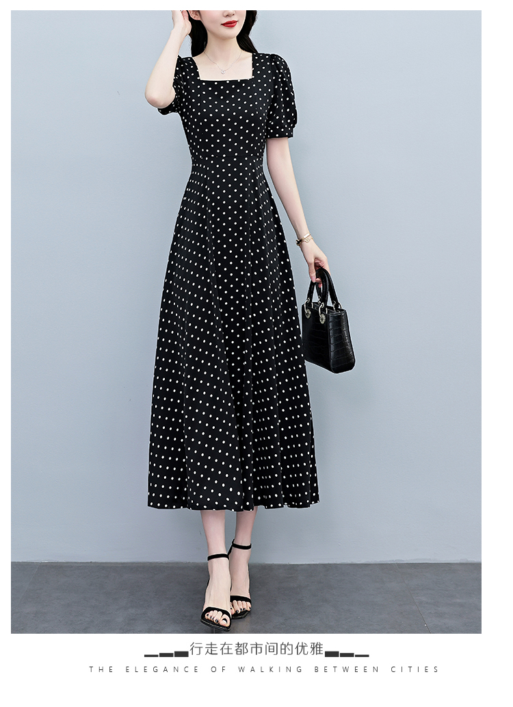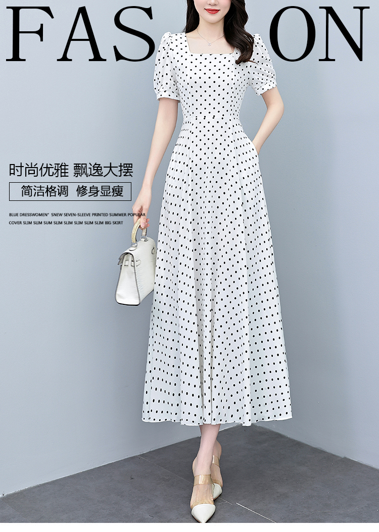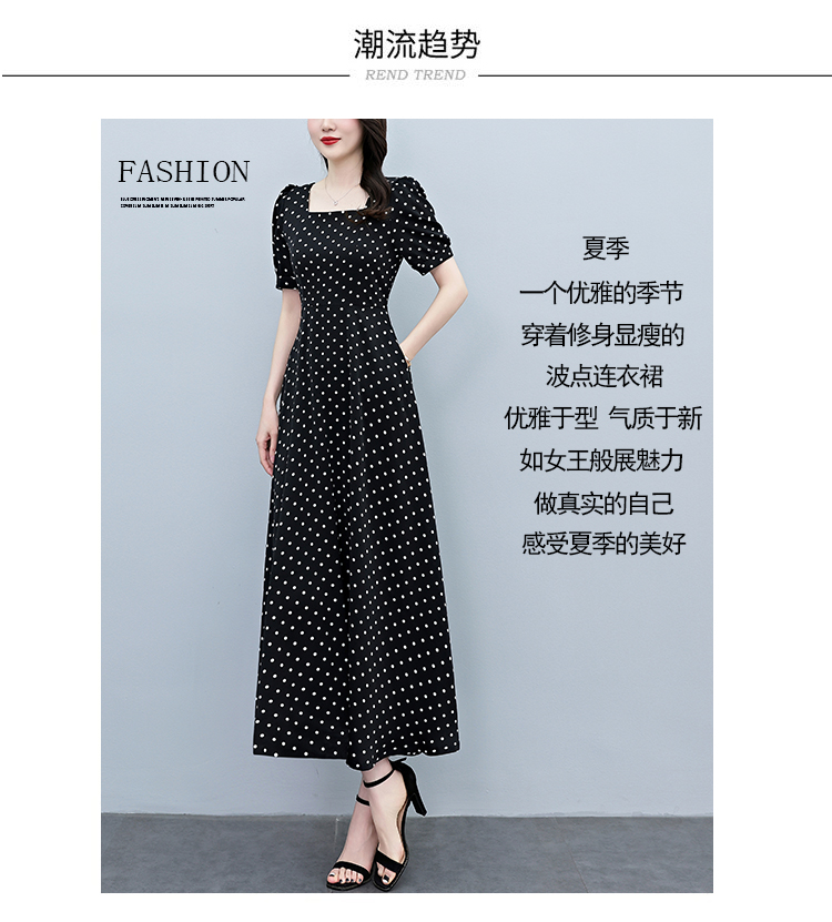 RY3972# 2026夏季新款波点连衣裙女夏长款缎面大码胖mm收腰显瘦过膝长裙子