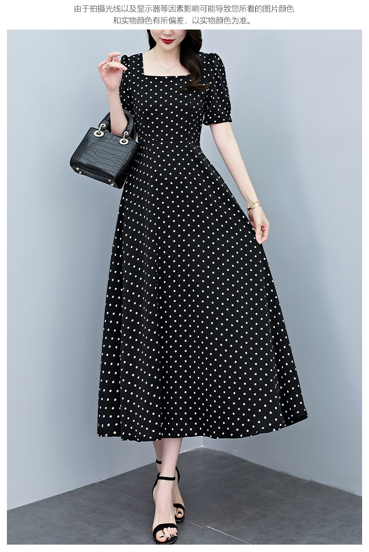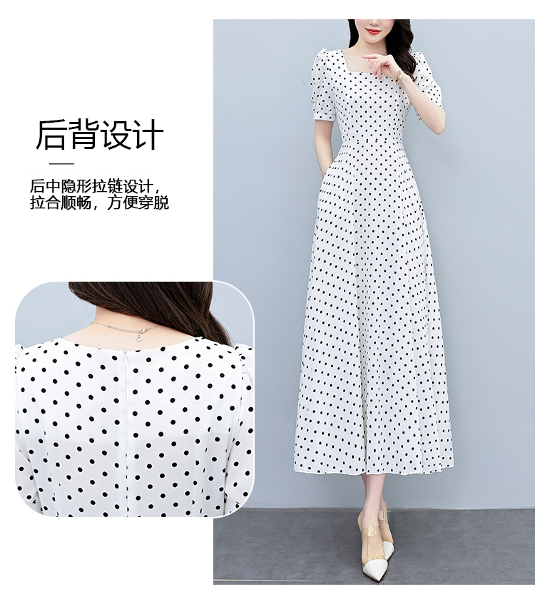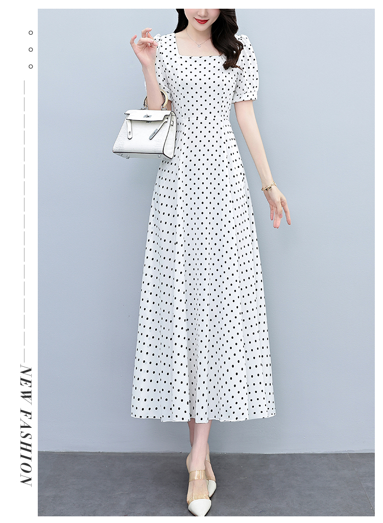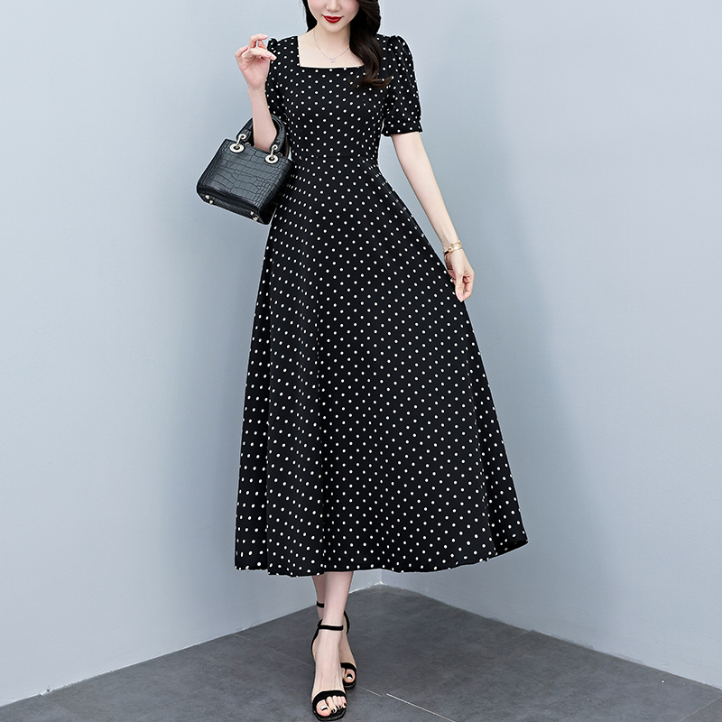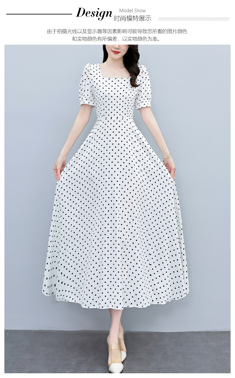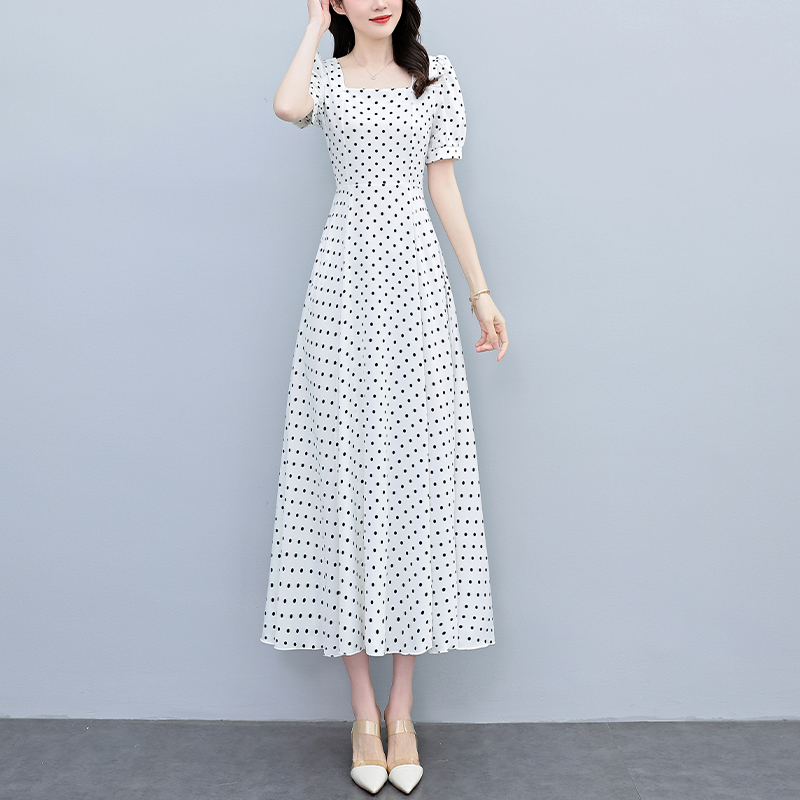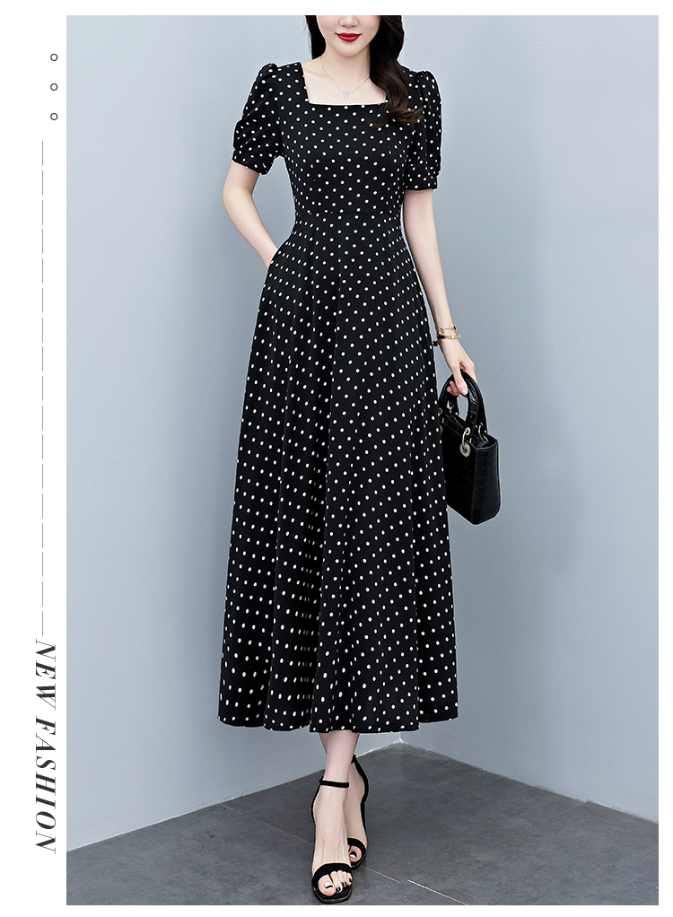RY3972# 2026夏季新款波点连衣裙女夏长款缎面大码胖mm收腰显瘦过膝长裙子
