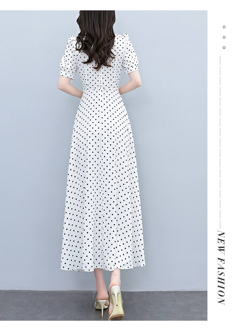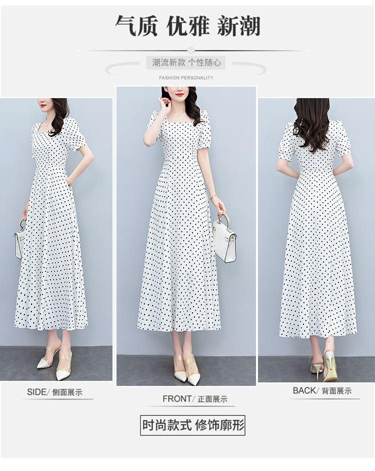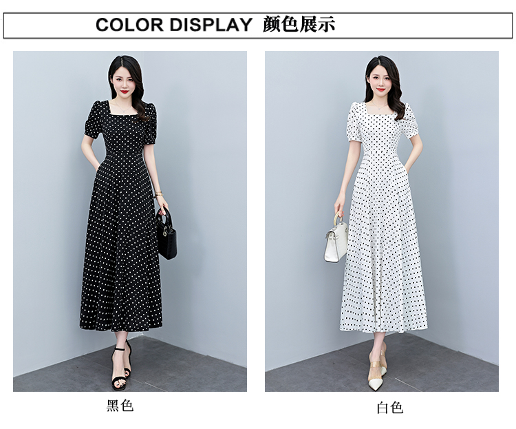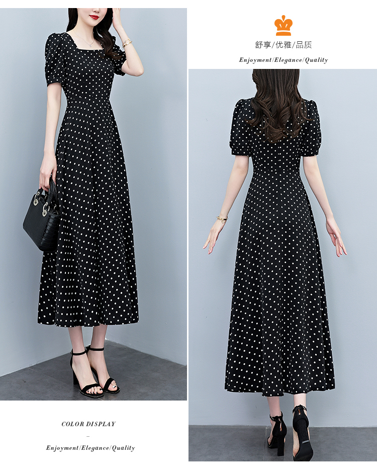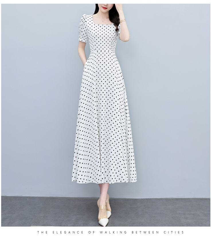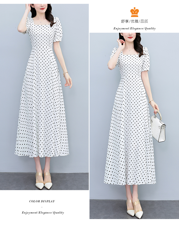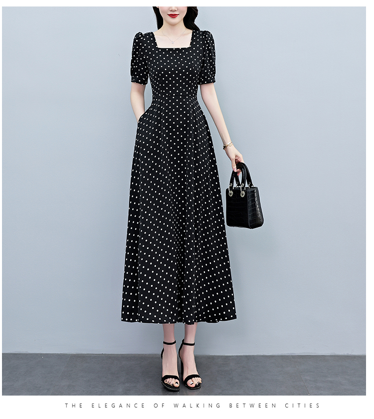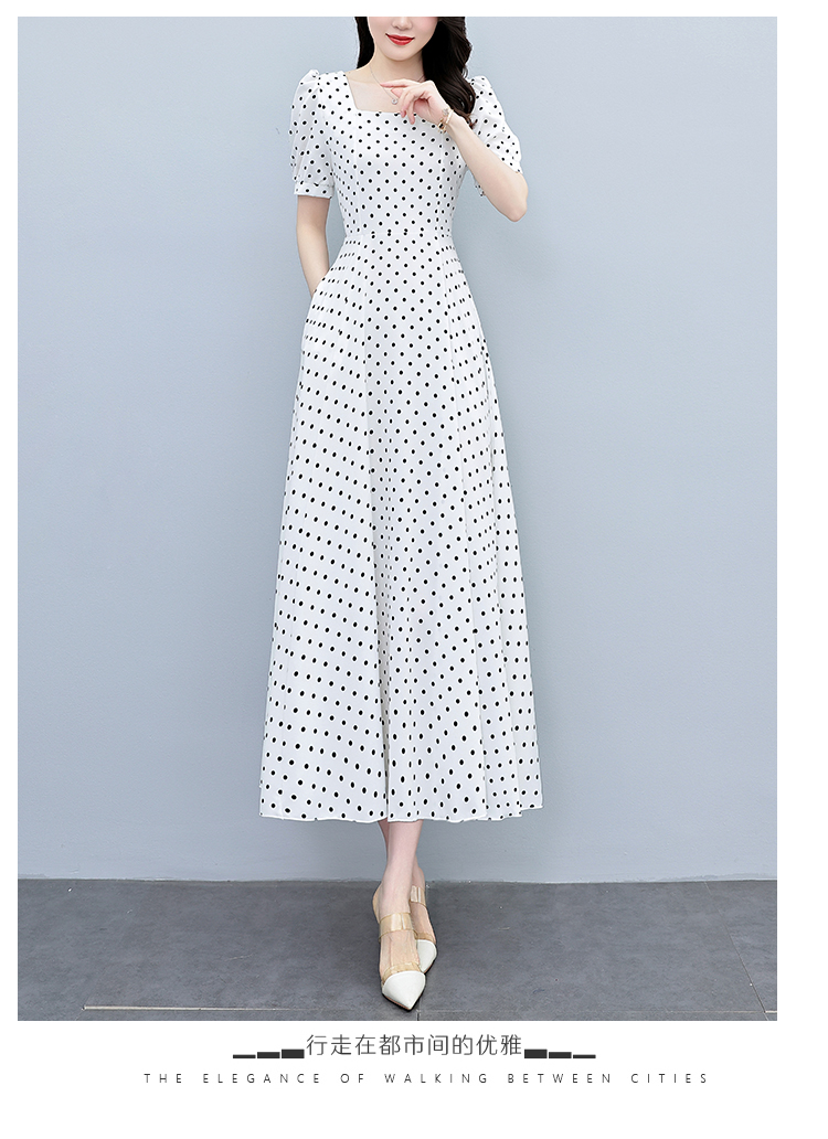 RY3972# 2026夏季新款波点连衣裙女夏长款缎面大码胖mm收腰显瘦过膝长裙子