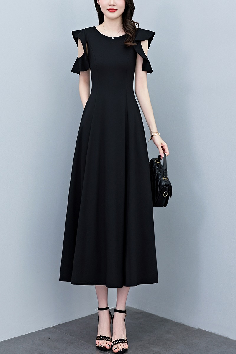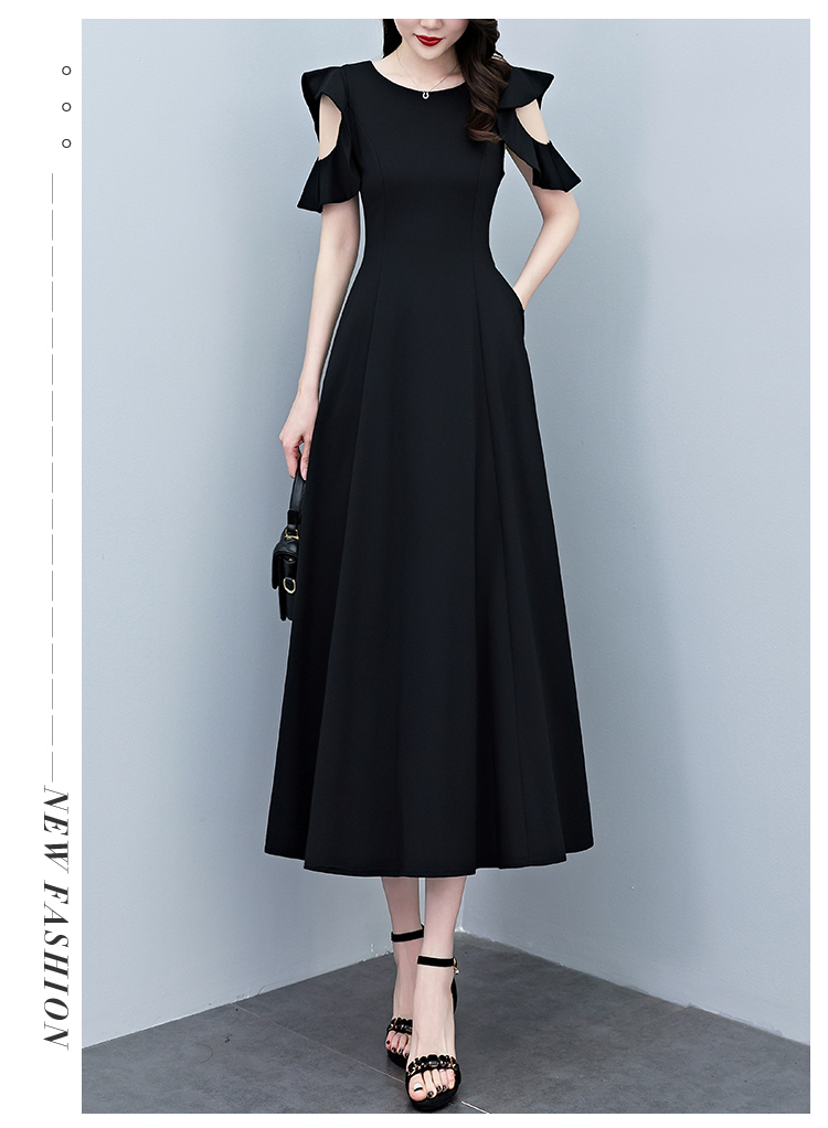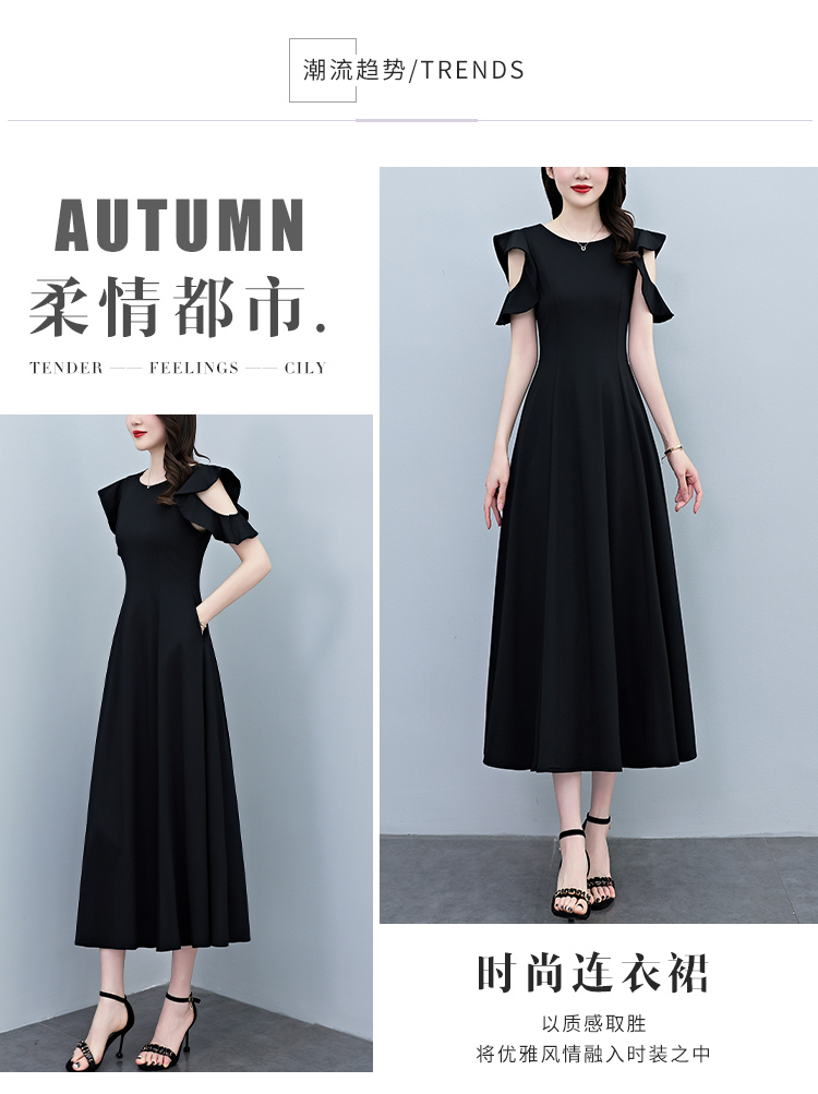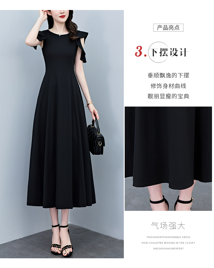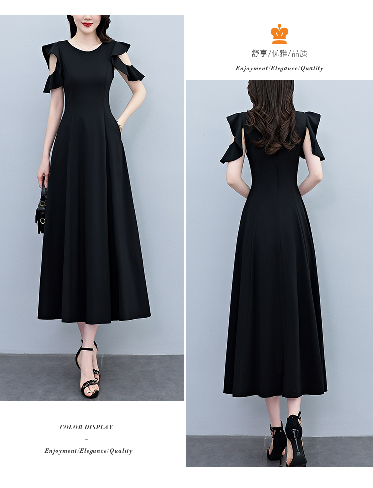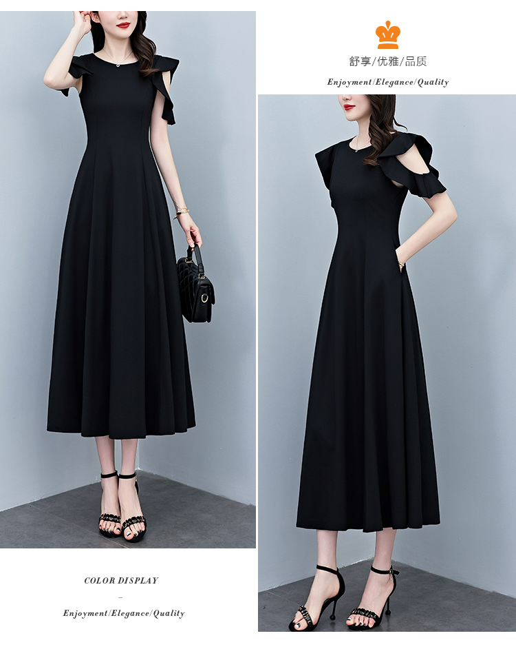 RY3974# 2026夏季新款赫本风黑色连衣裙女夏长款大码收腰显瘦胖mm小黑裙子